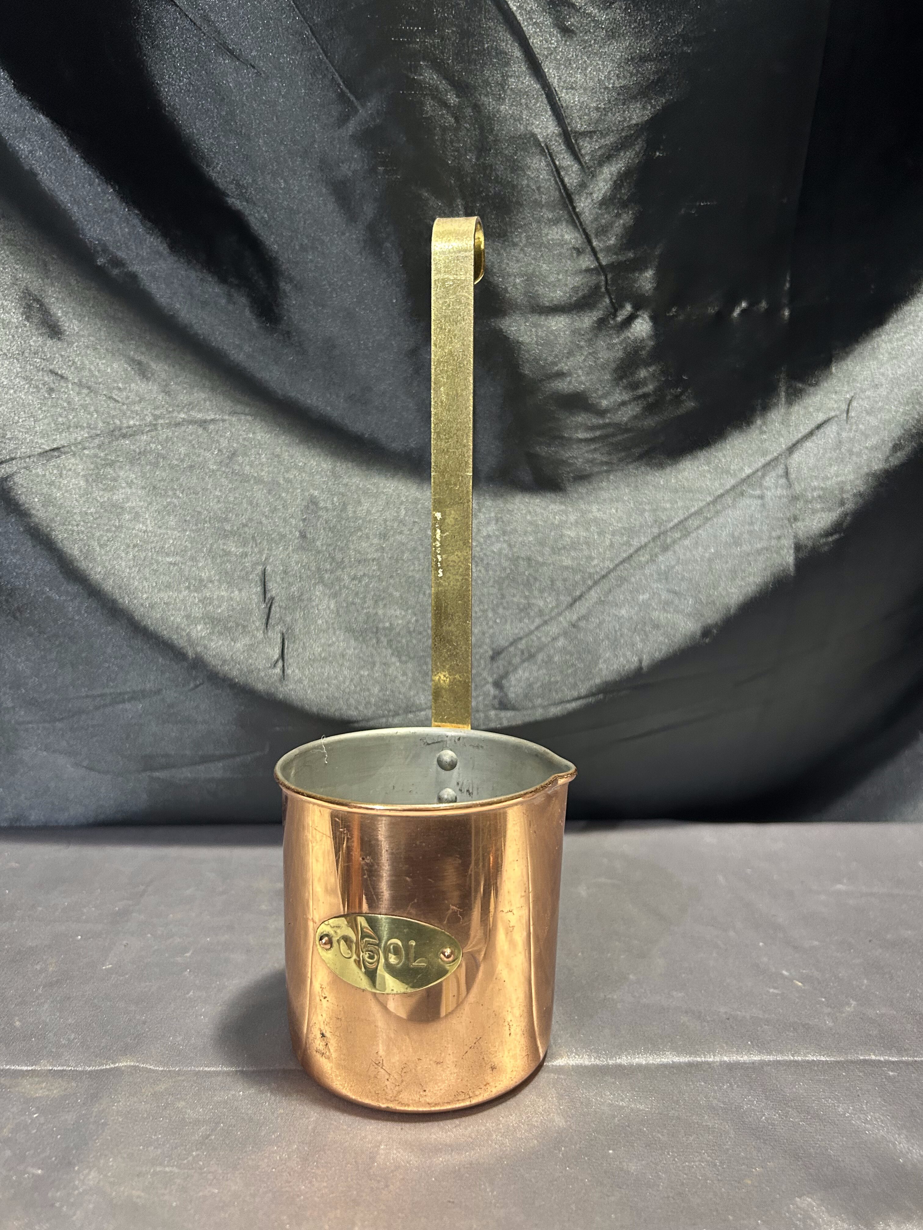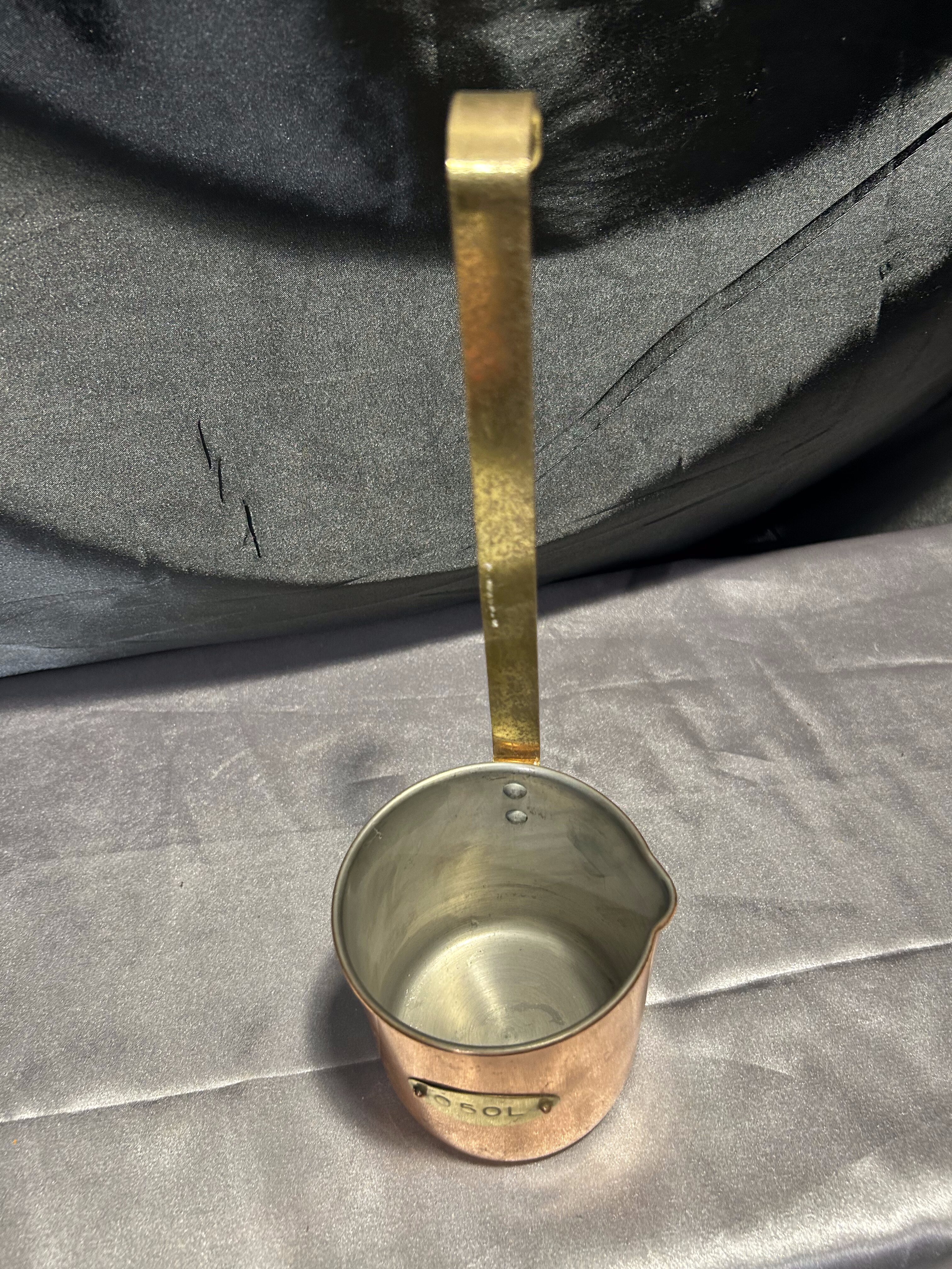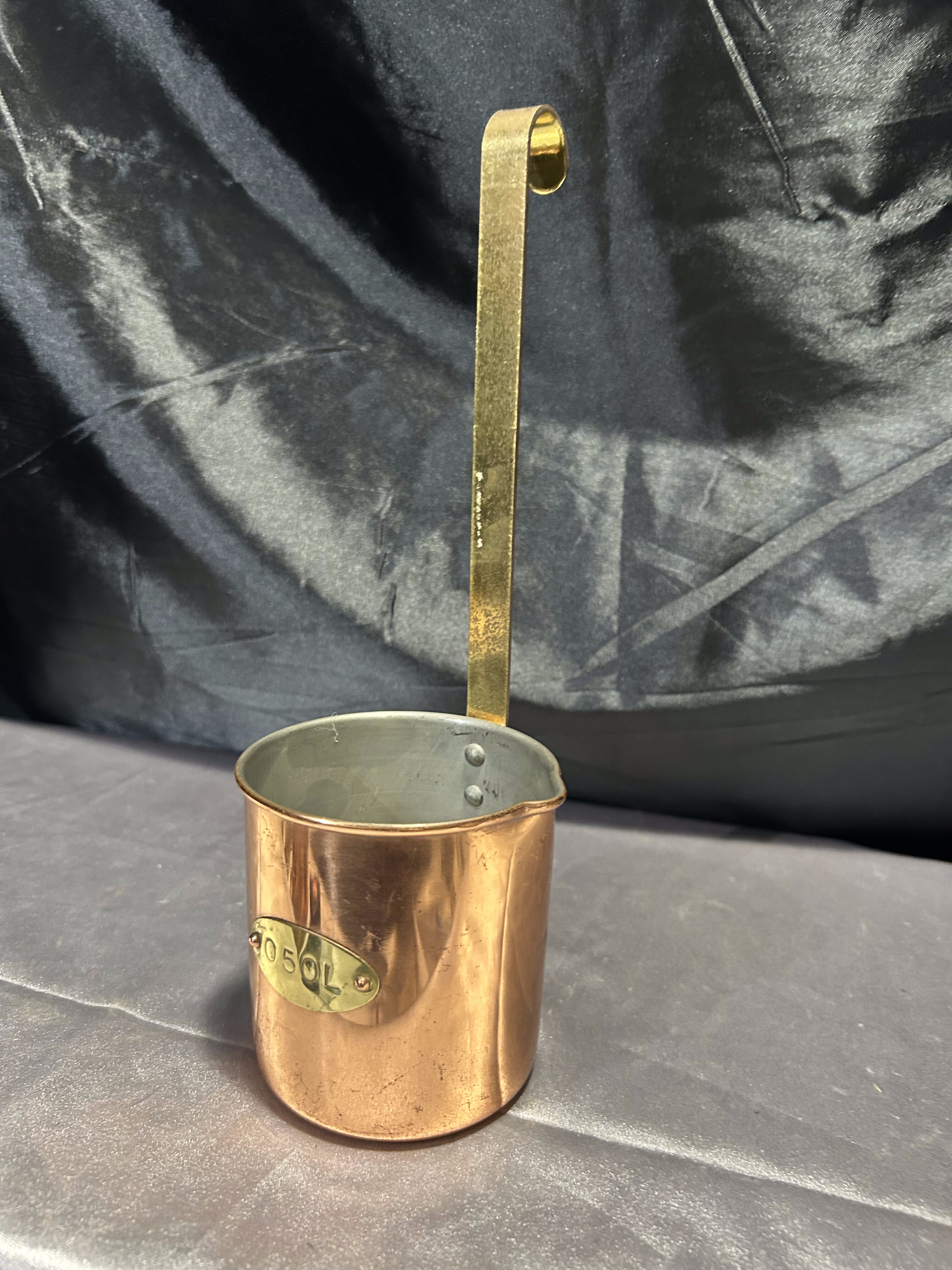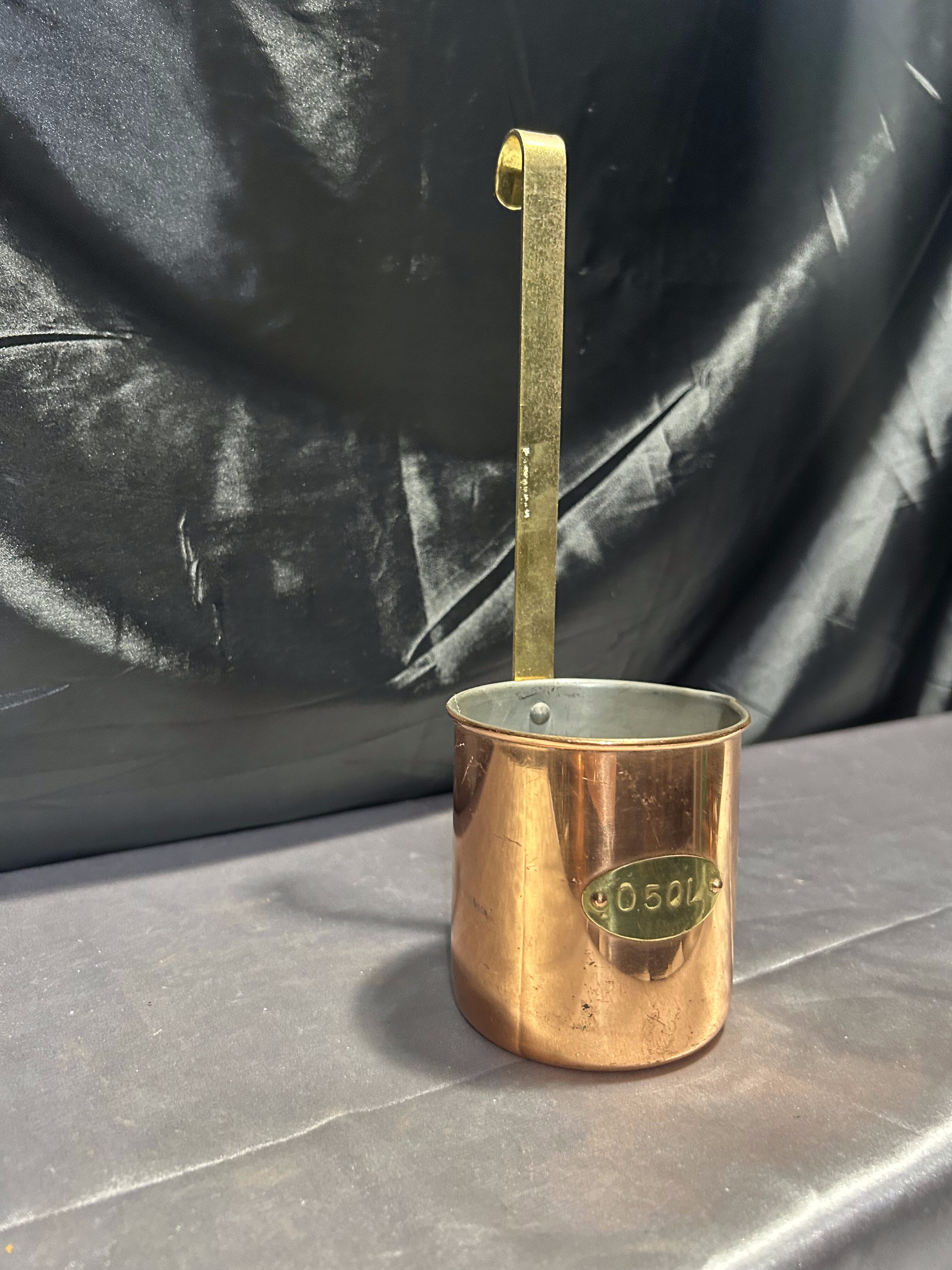 Miedziany czerpak z mosiężną rączką – Napis 0,50 L – Styl rustykalny