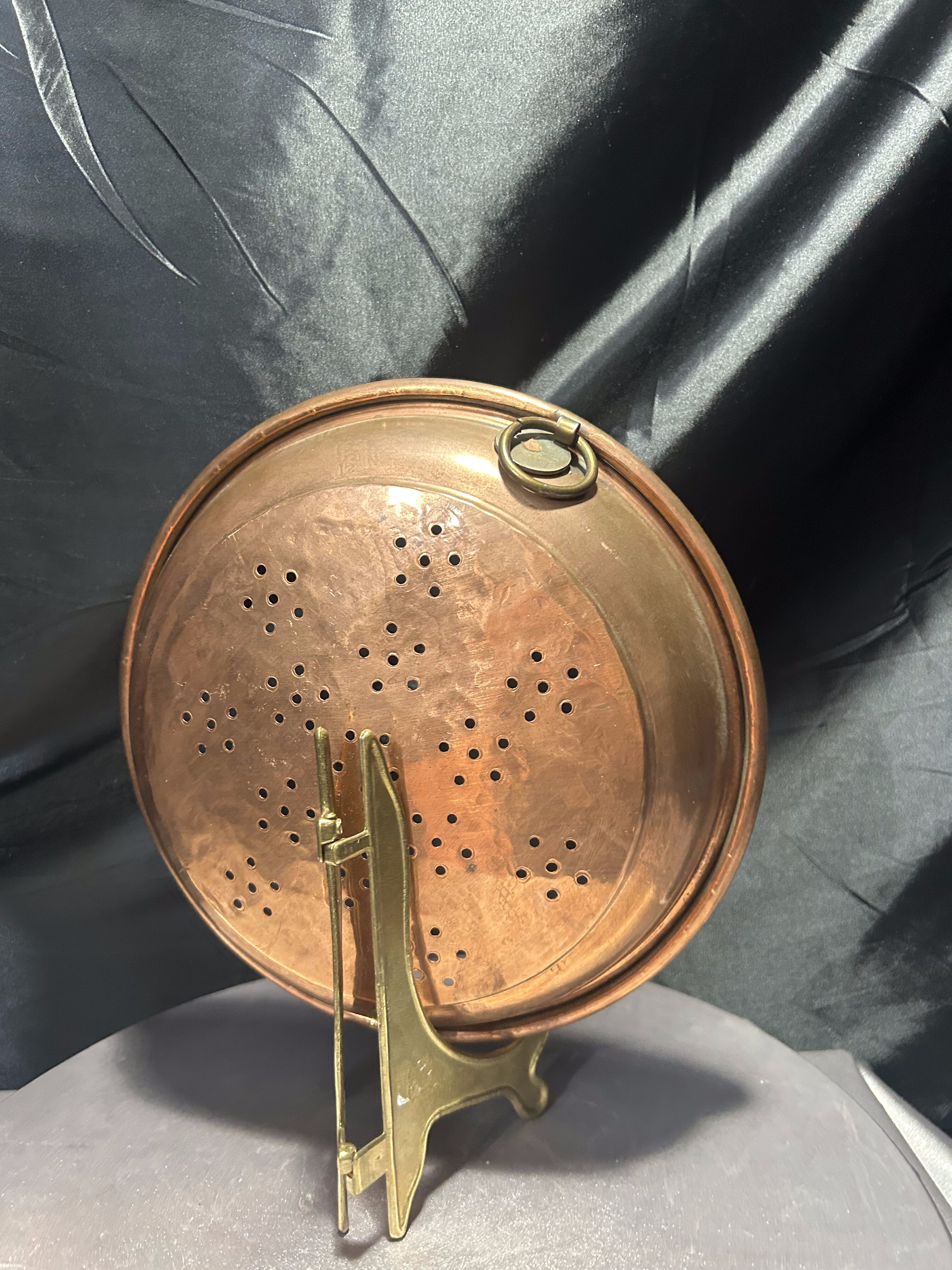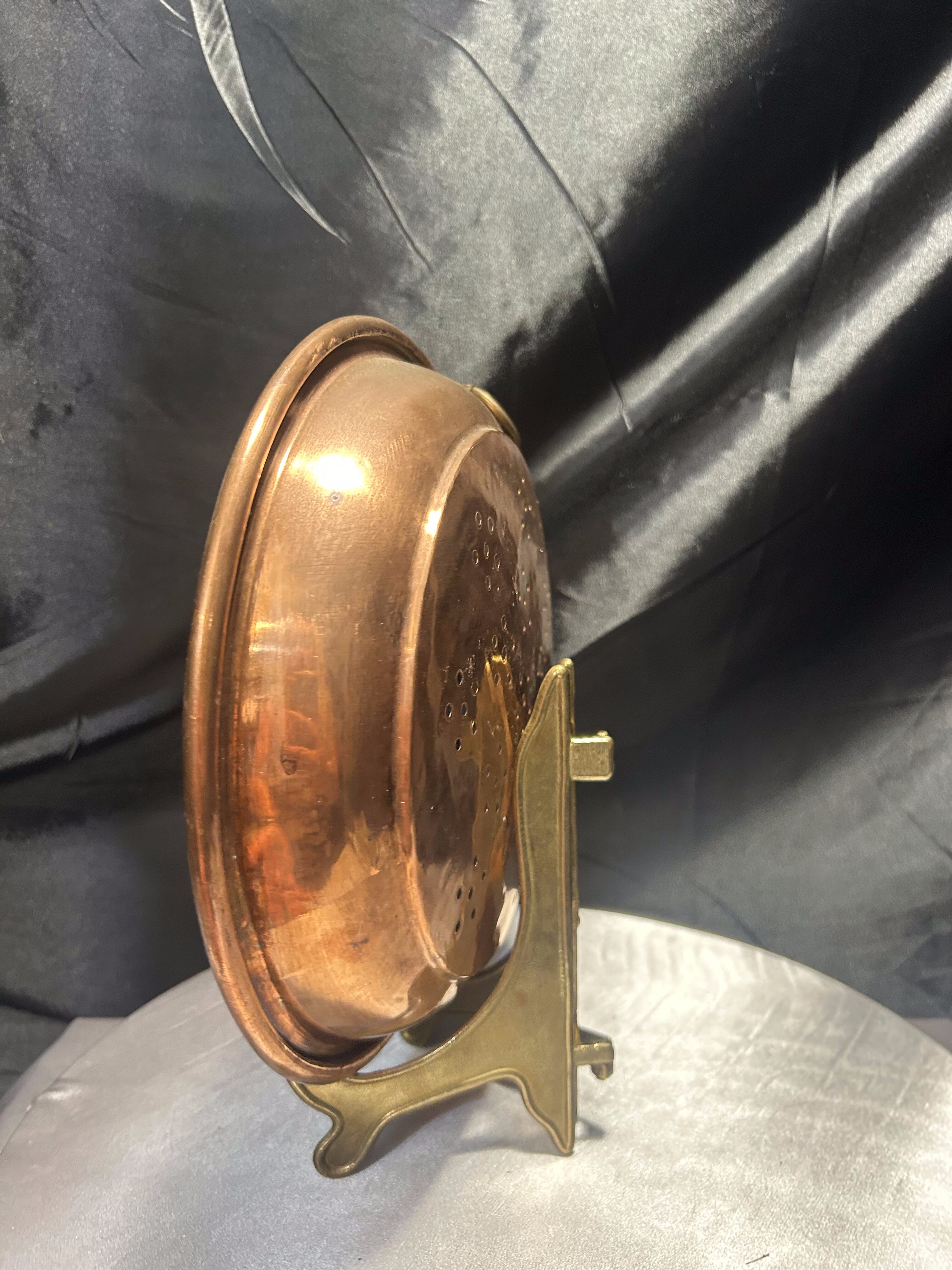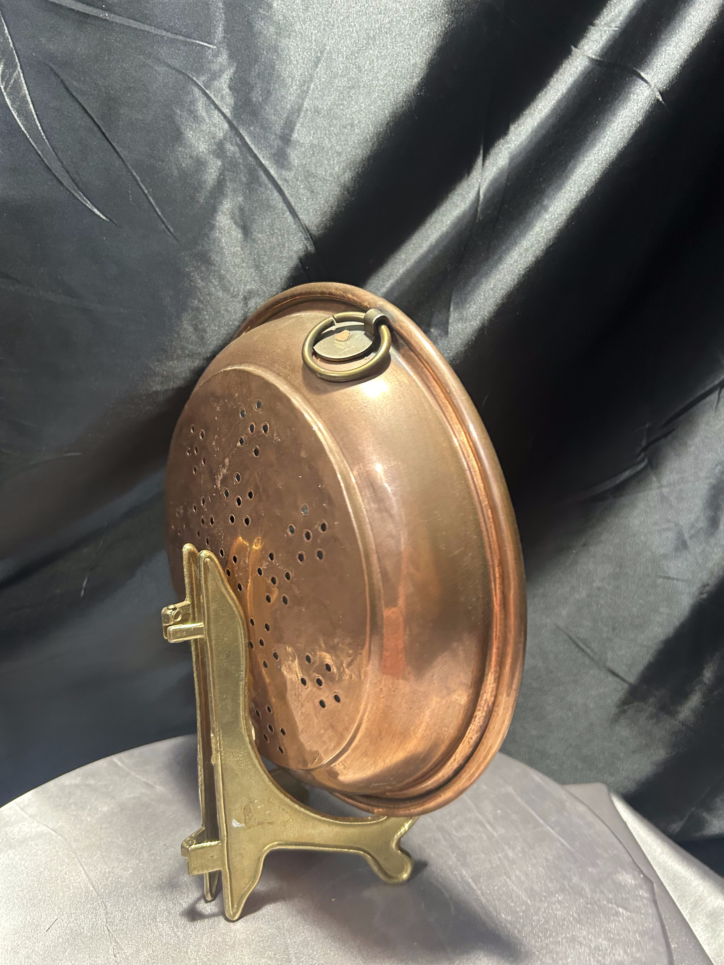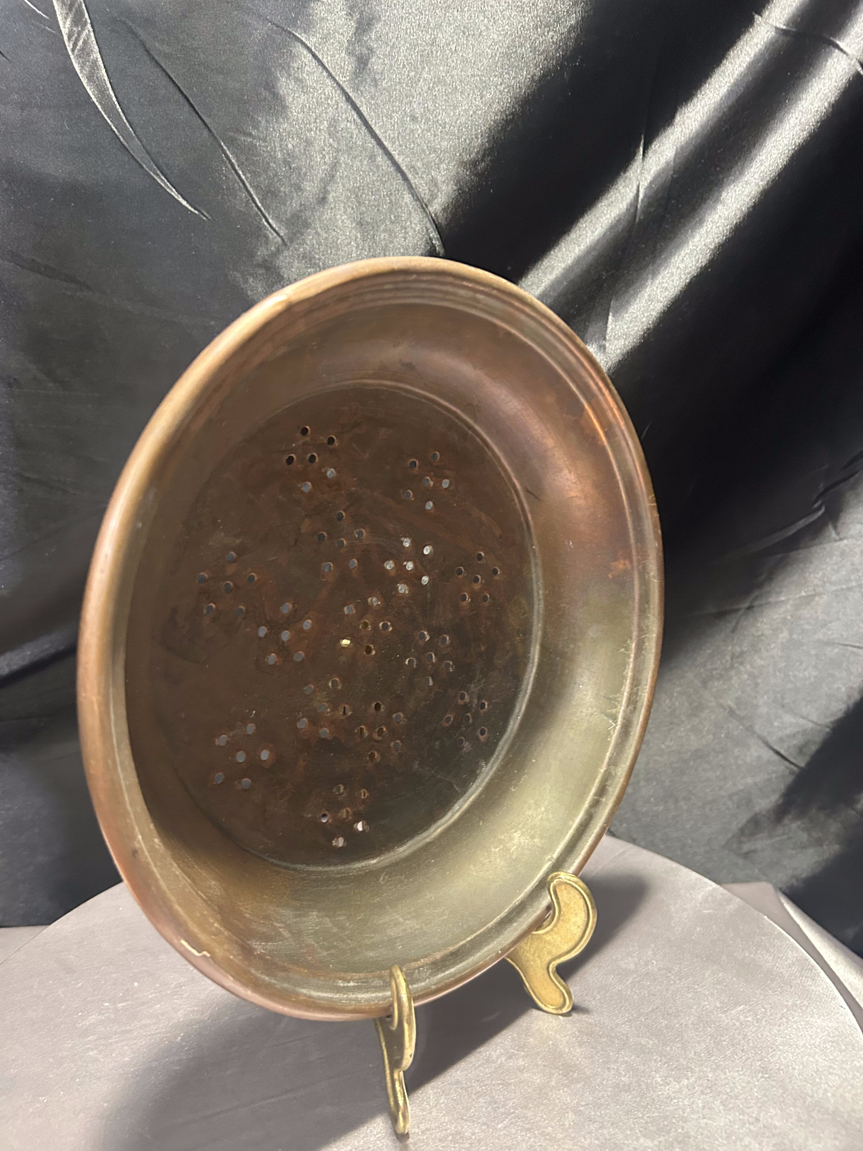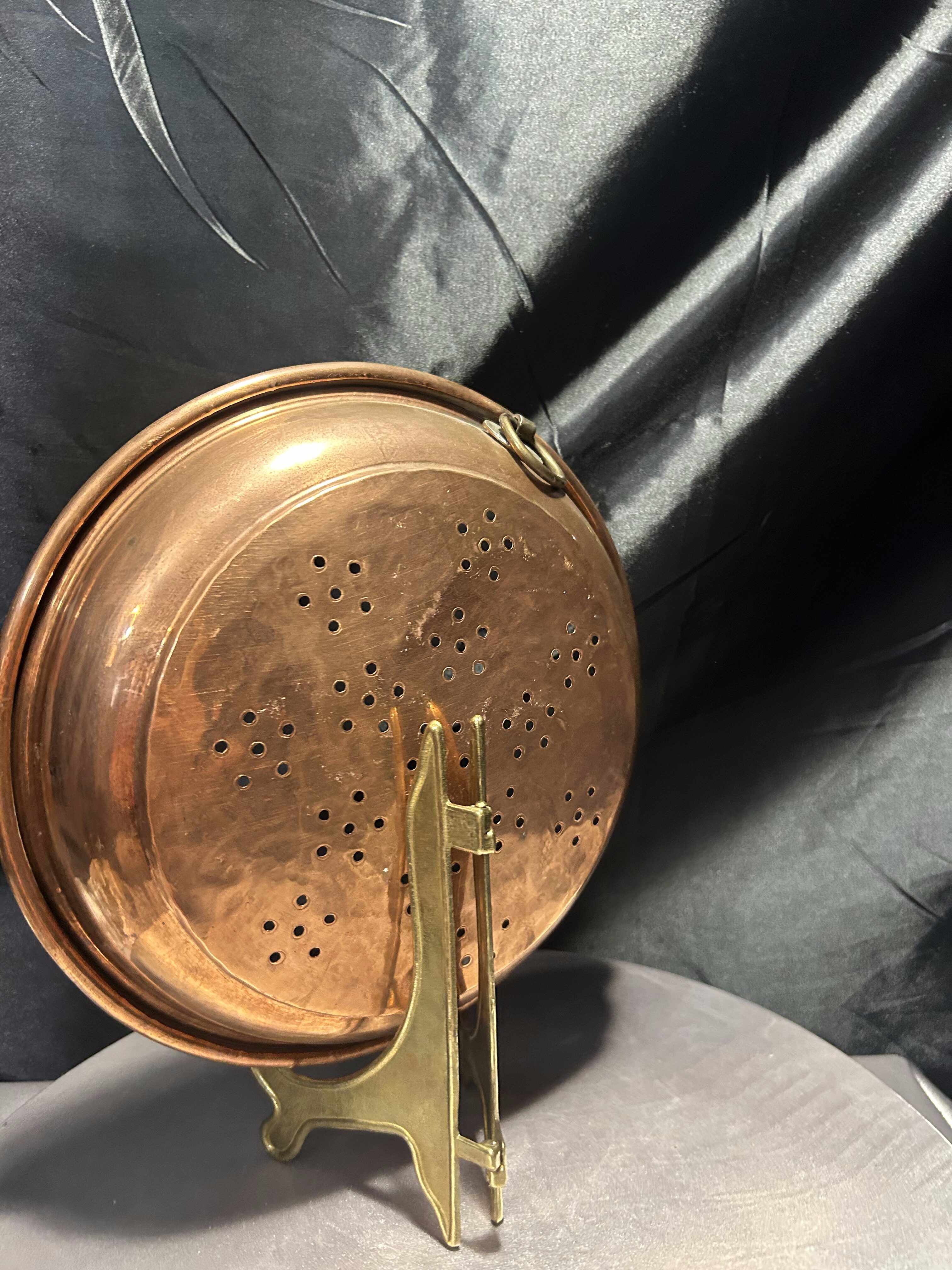 Miedziany durszlak z uchwytem do zawieszenia – rustykalna kuchnia vintage