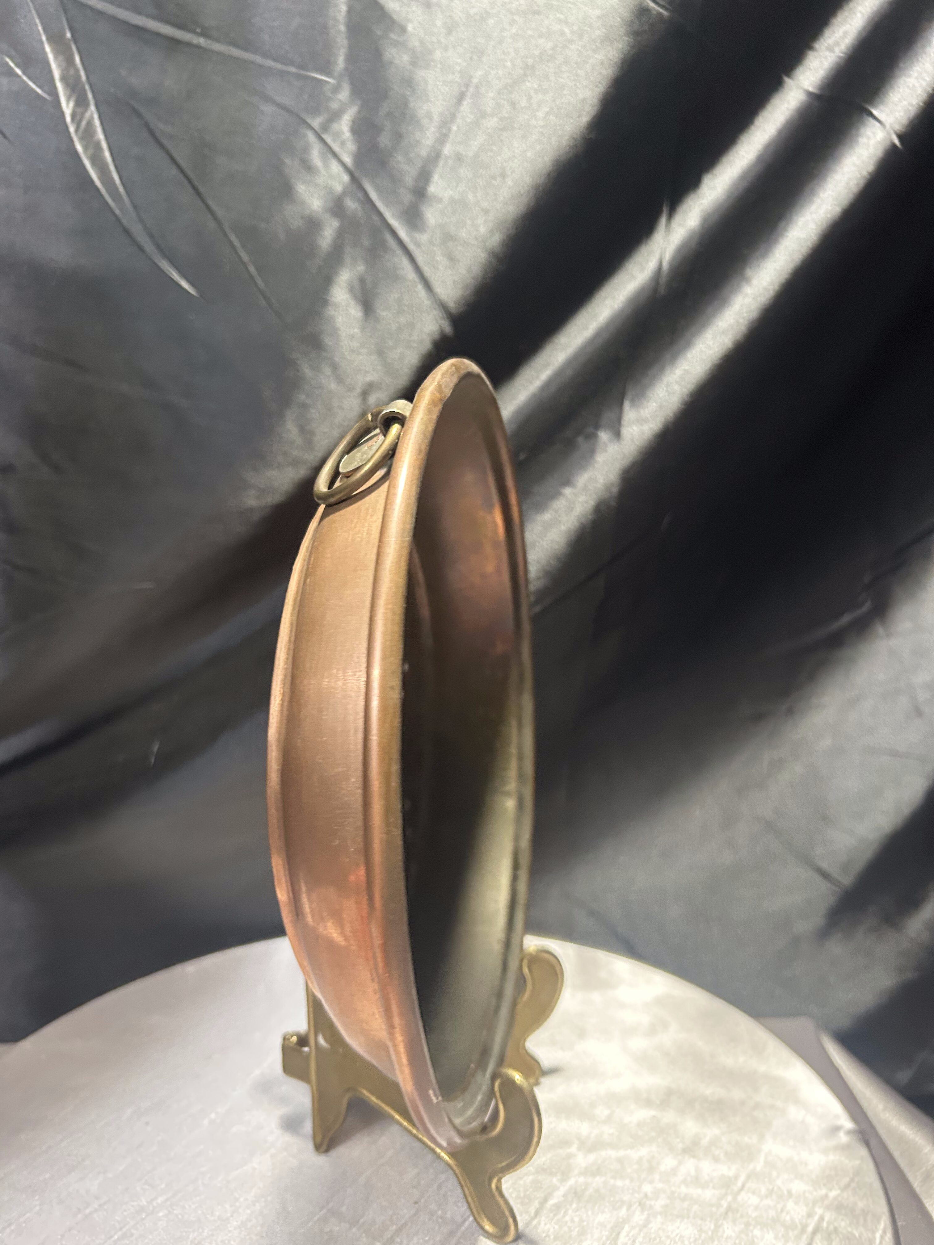 Chochla miedziana z kutą rączką – vintage rondel do zawieszenia