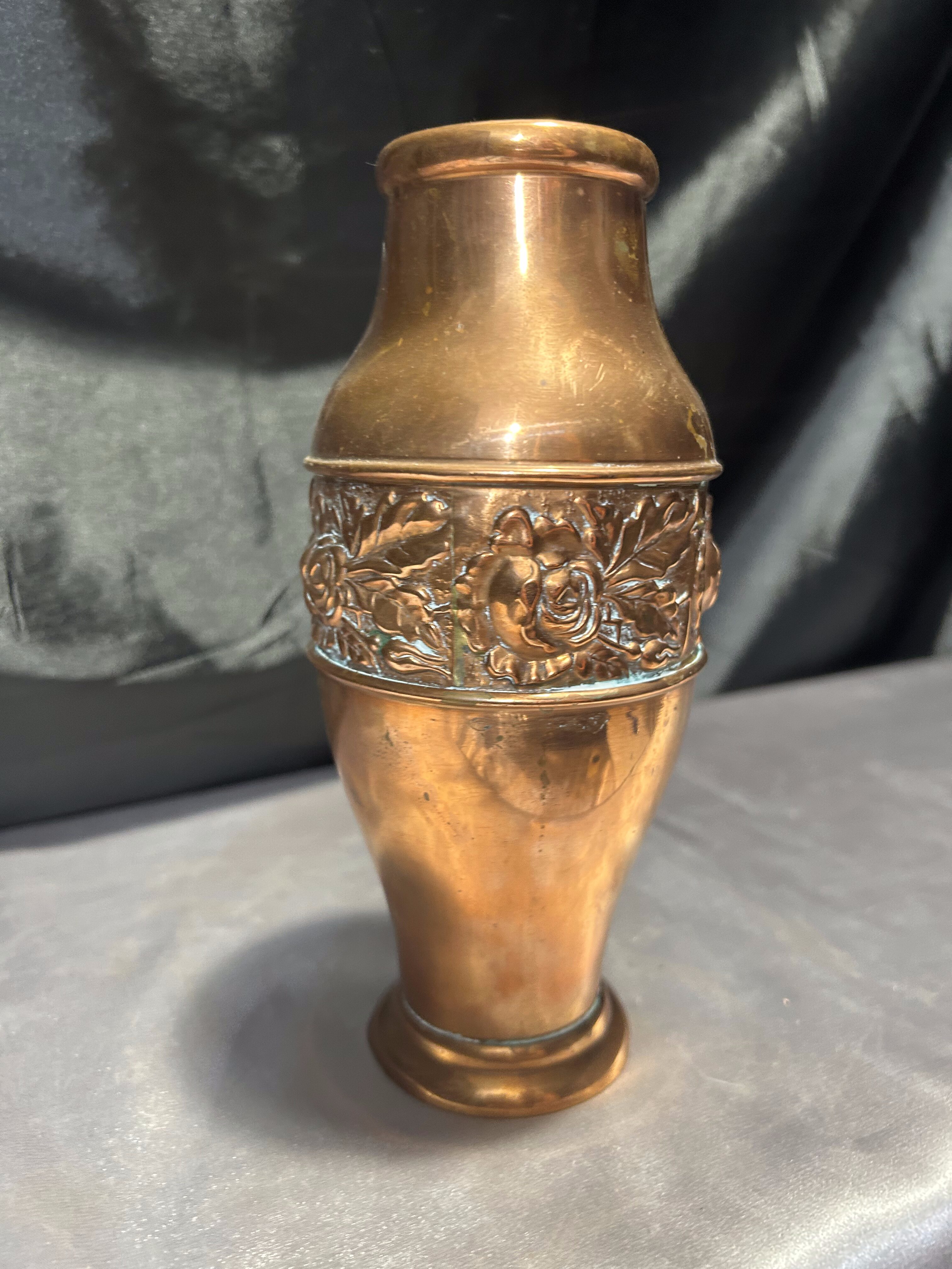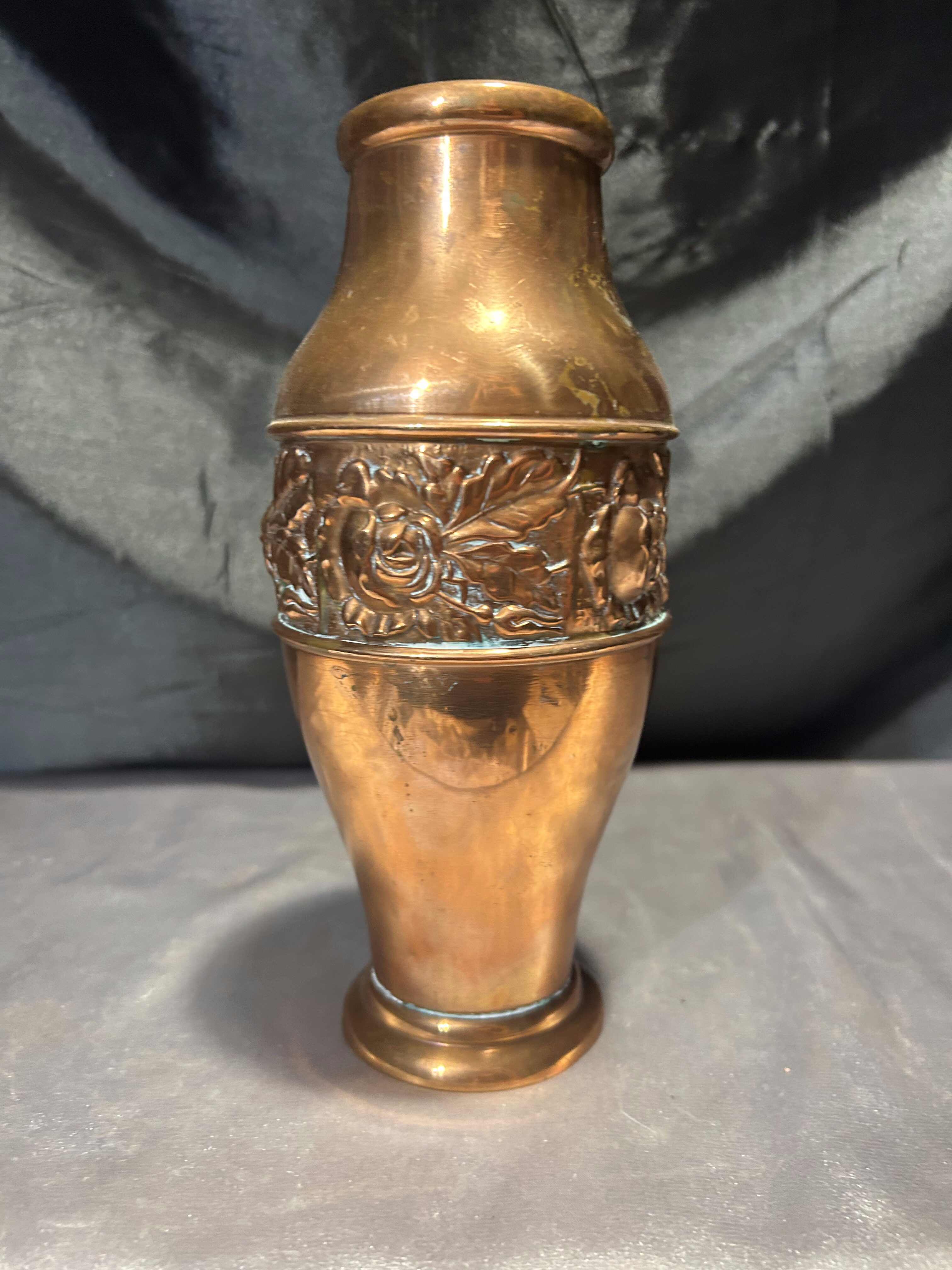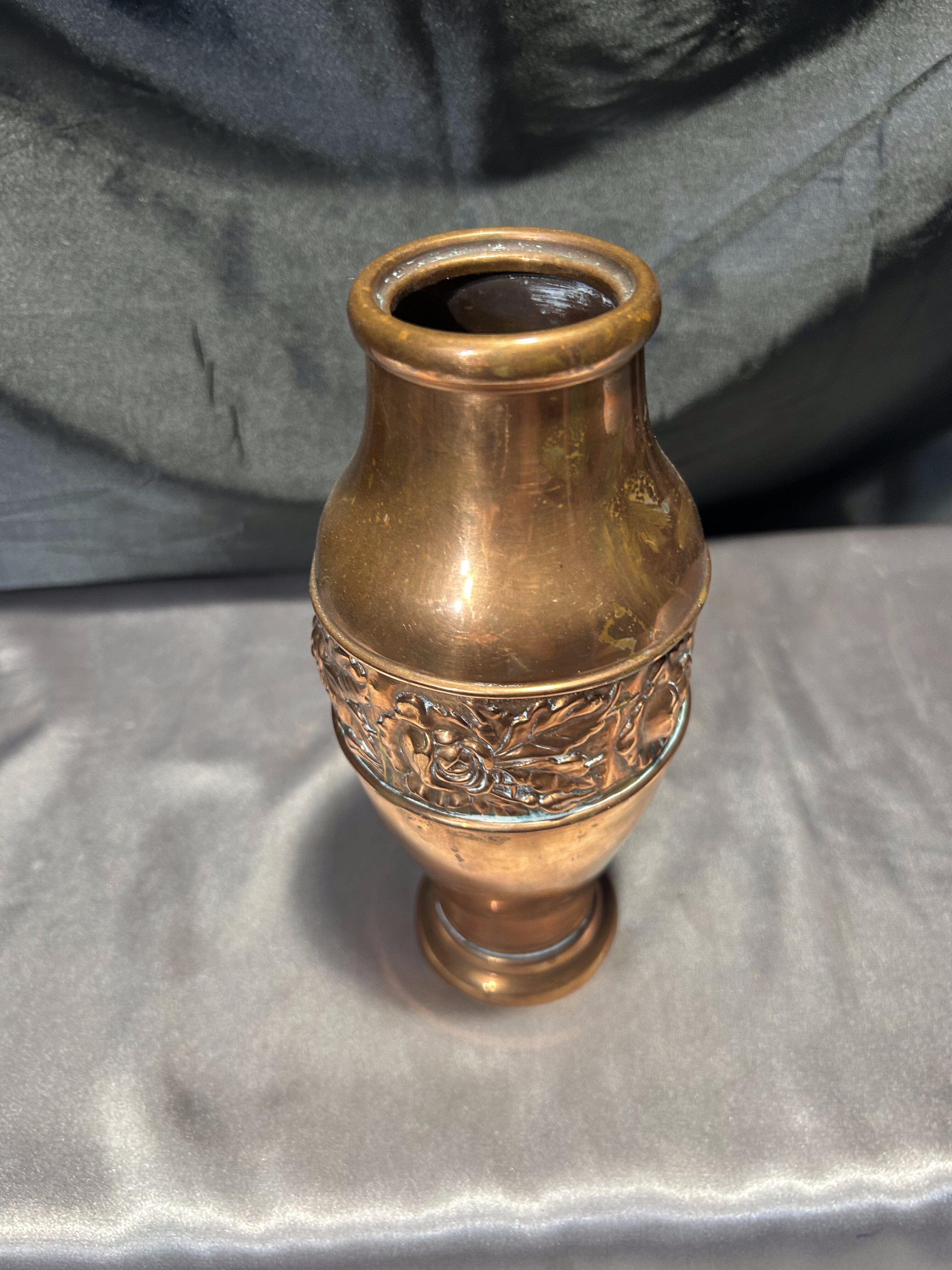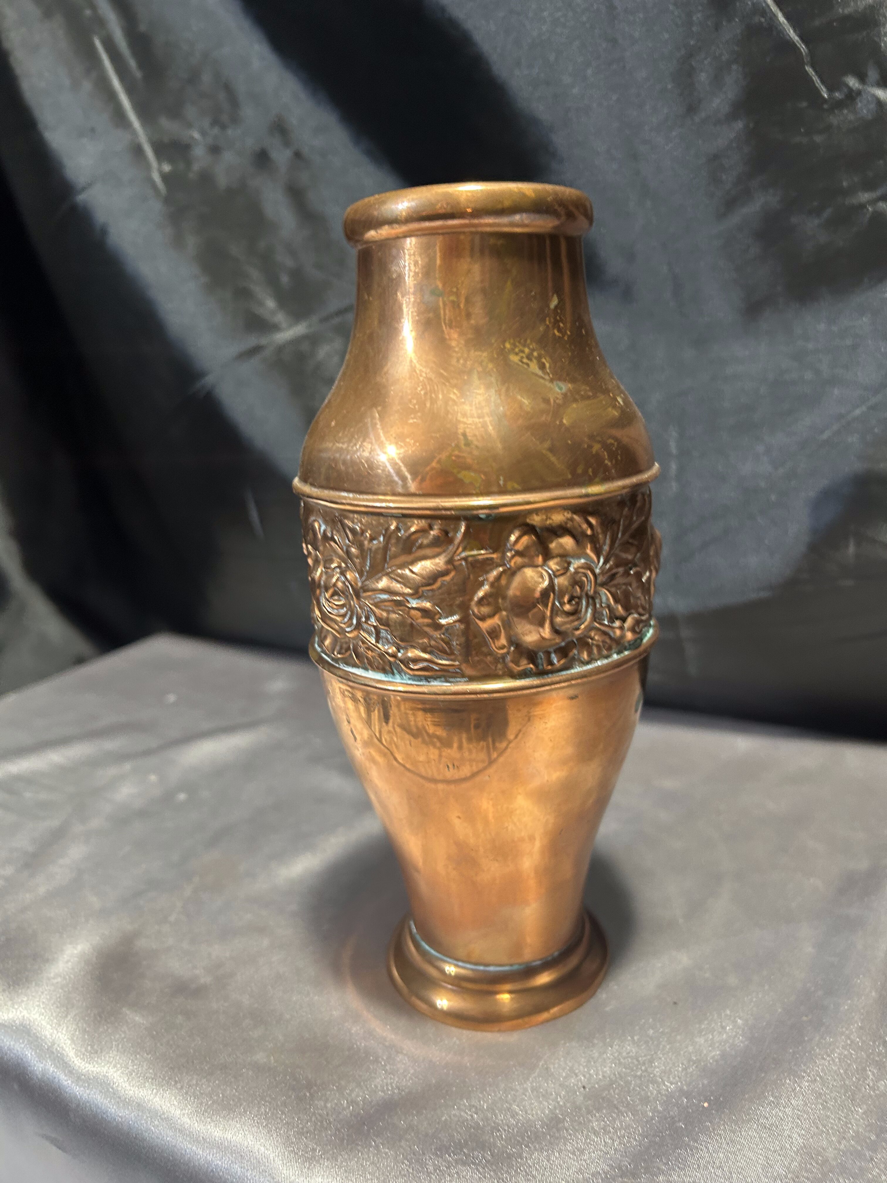 Miedziany Flakon – Wazon Zdobiony z Motywem Róży – Styl Klasyczny