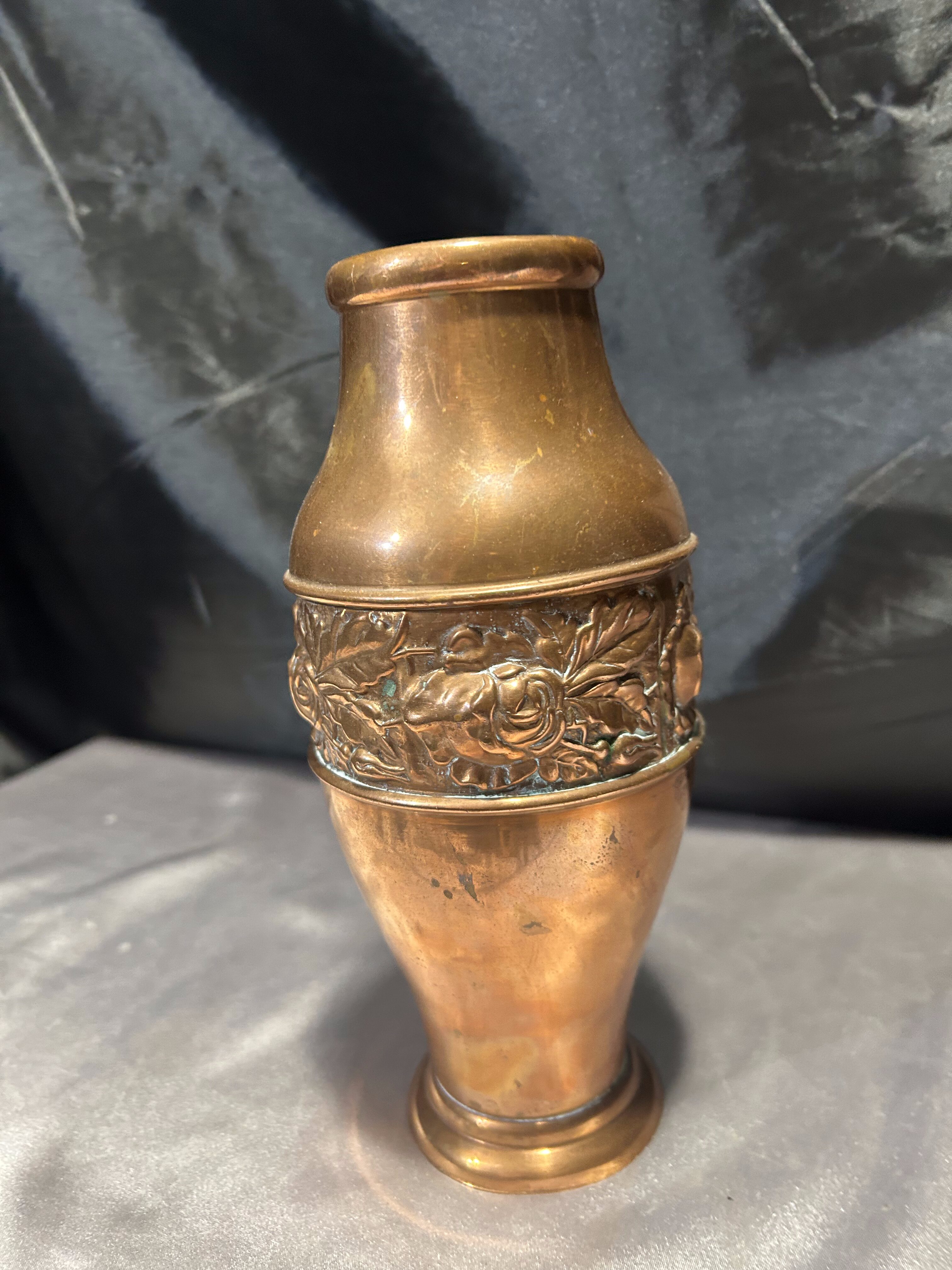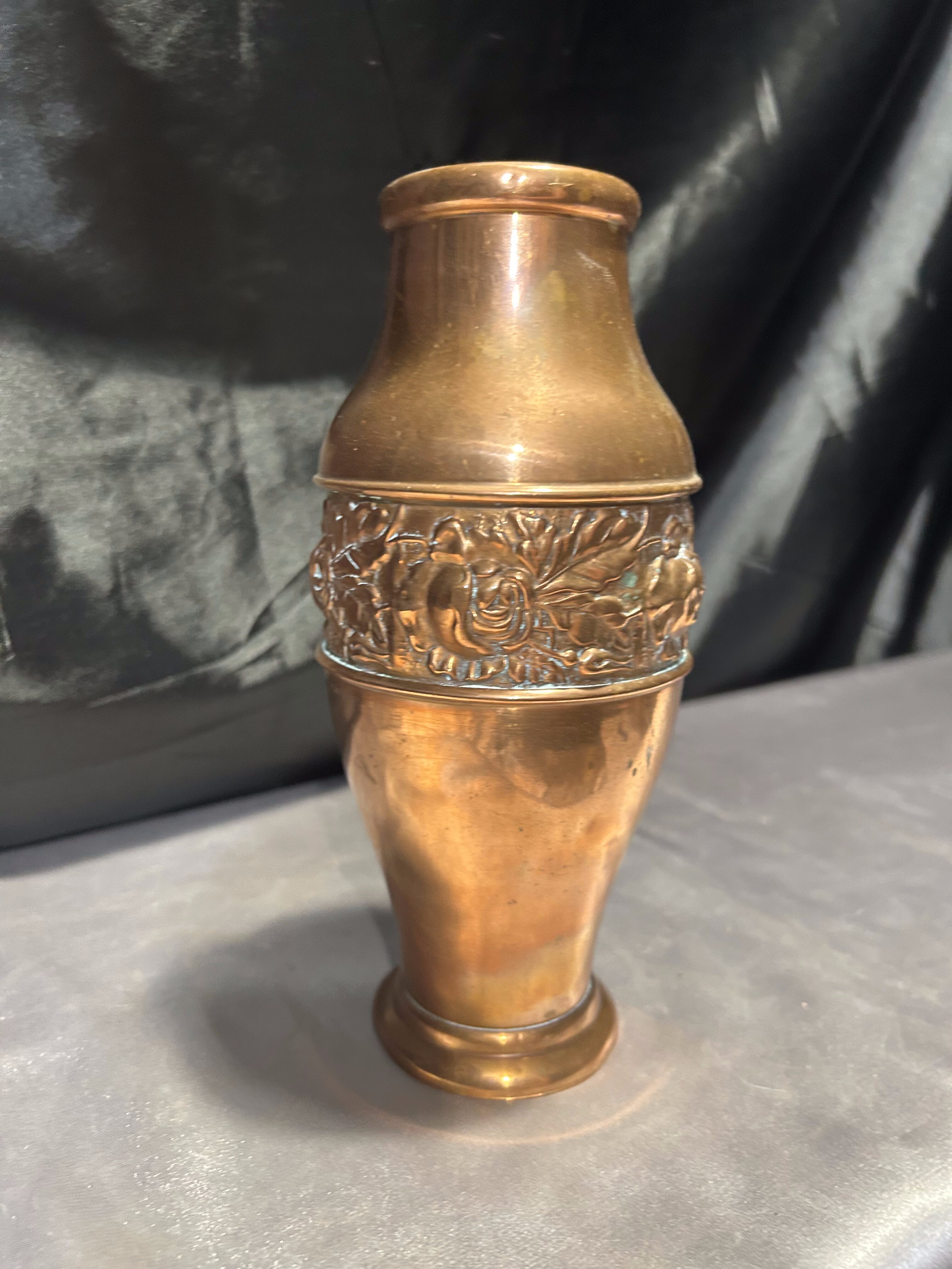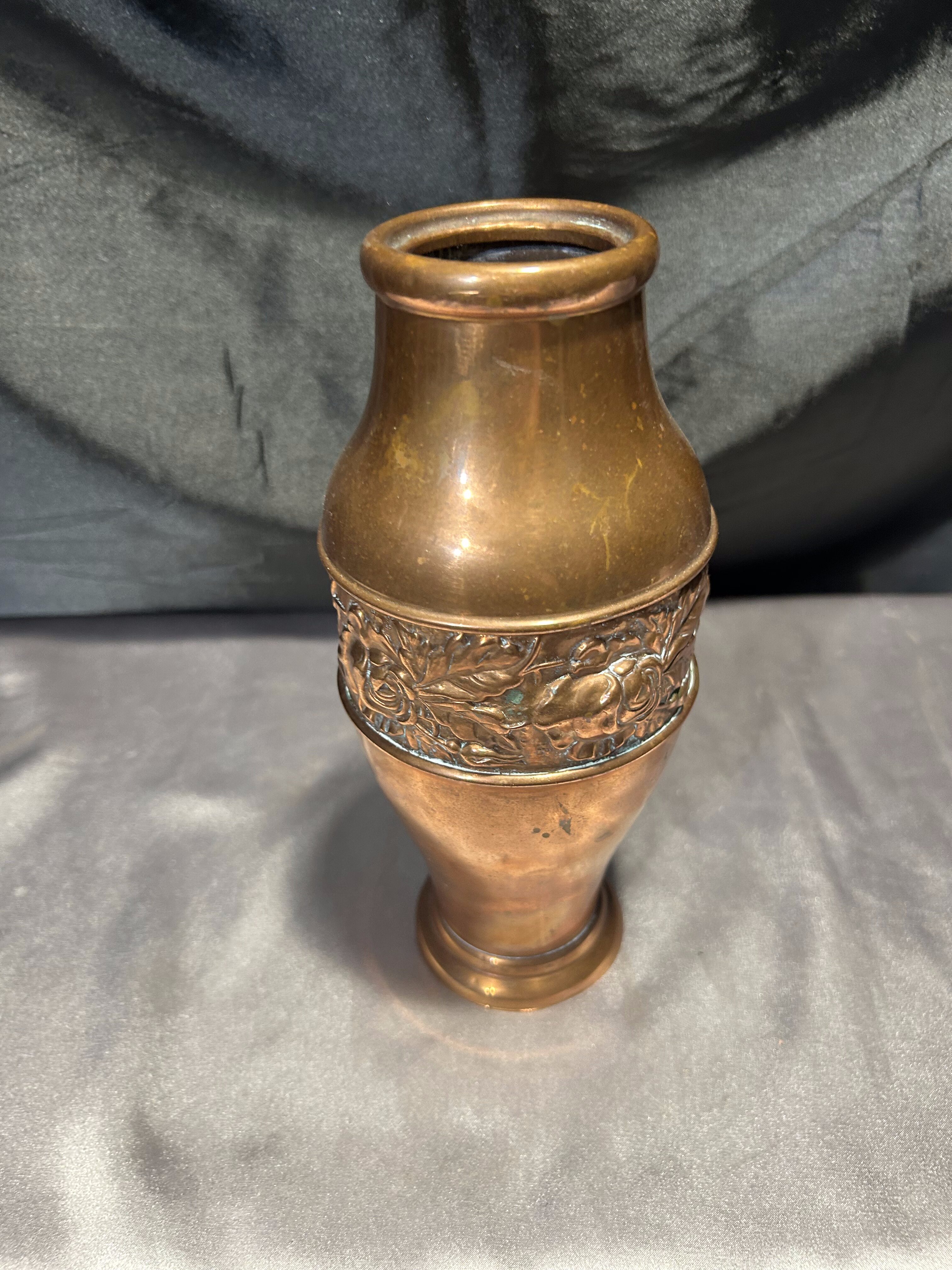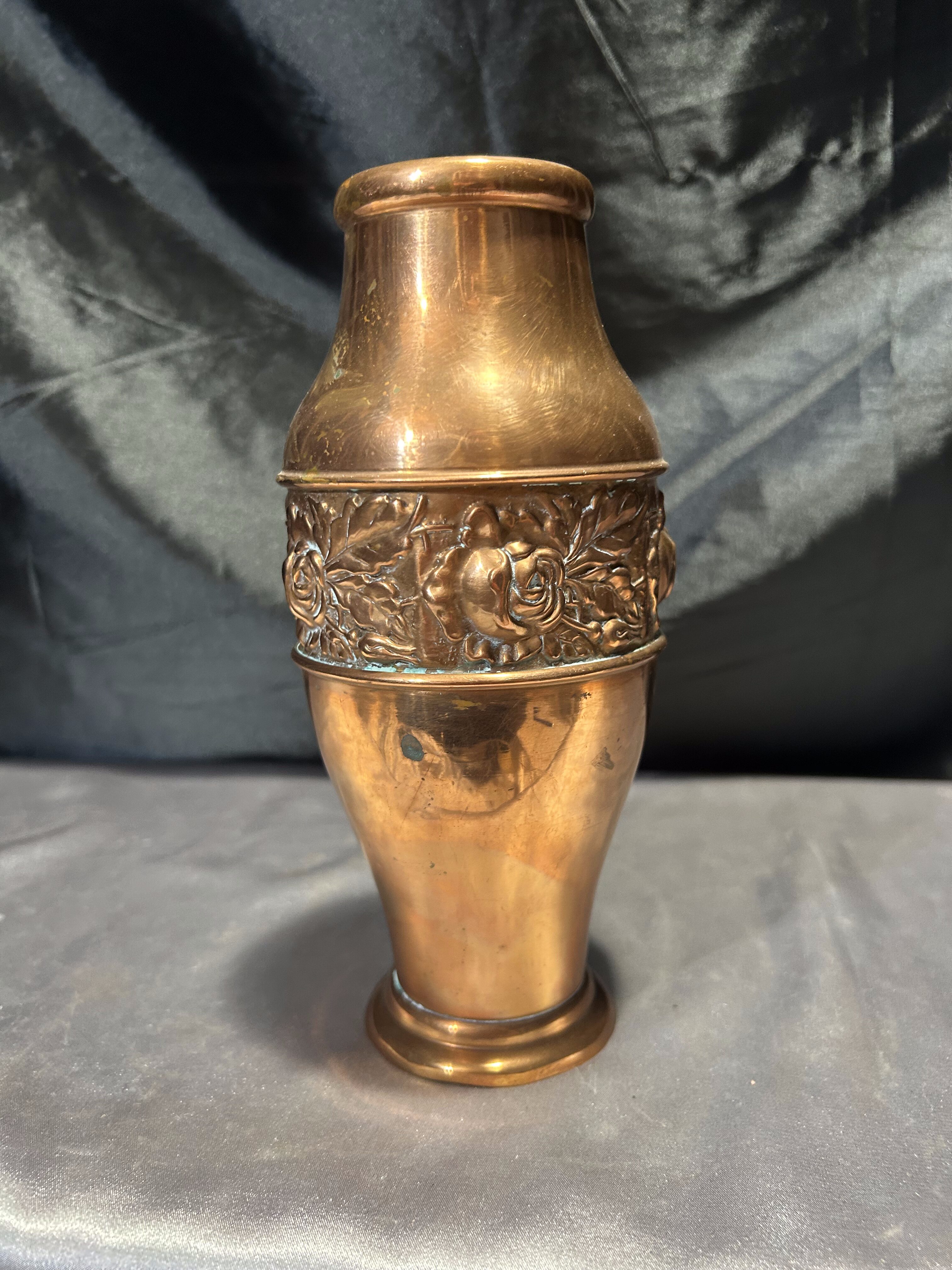 Miedziany Flakon – Wazon Zdobiony z Motywem Róży – Styl Klasyczny