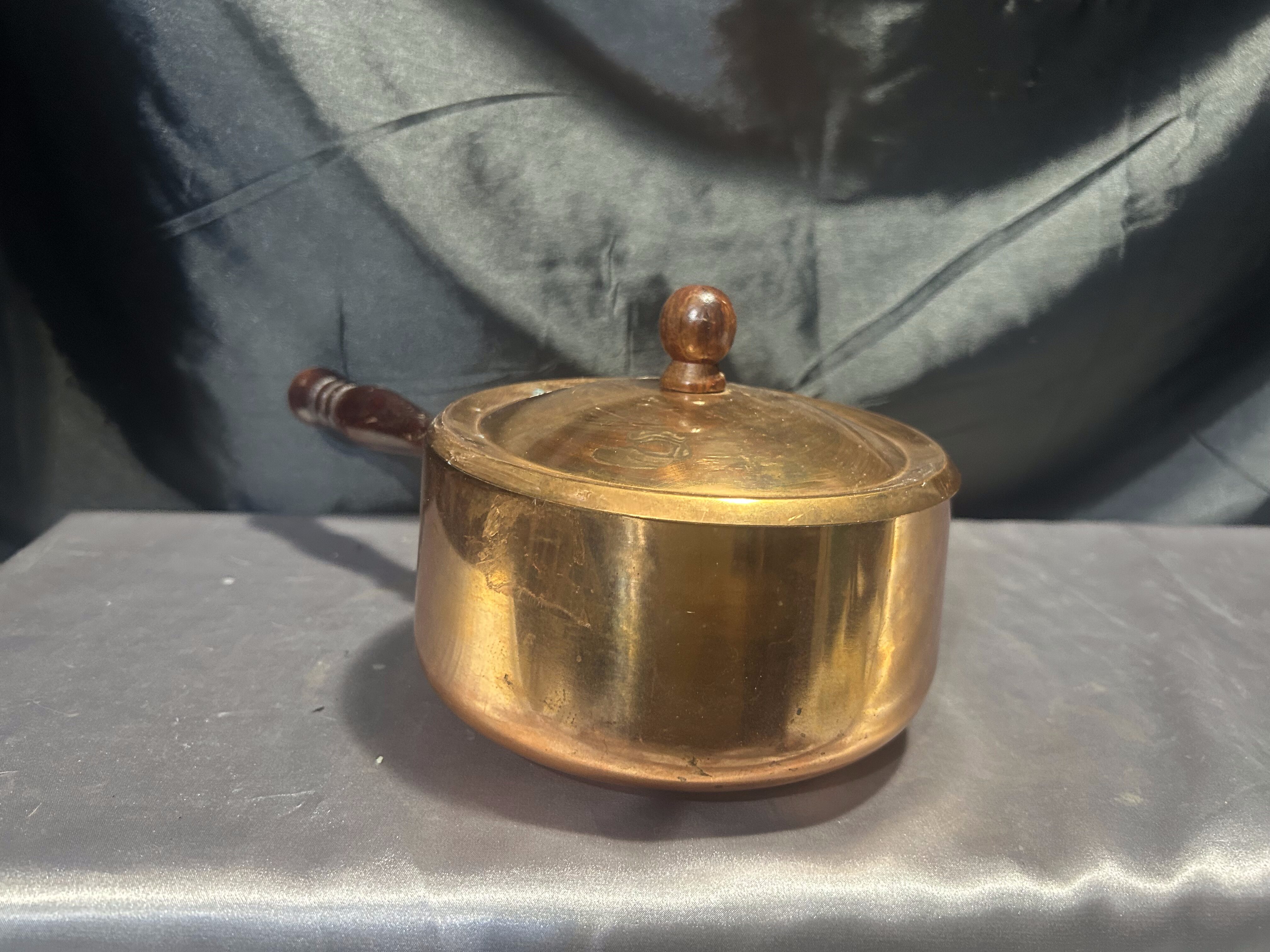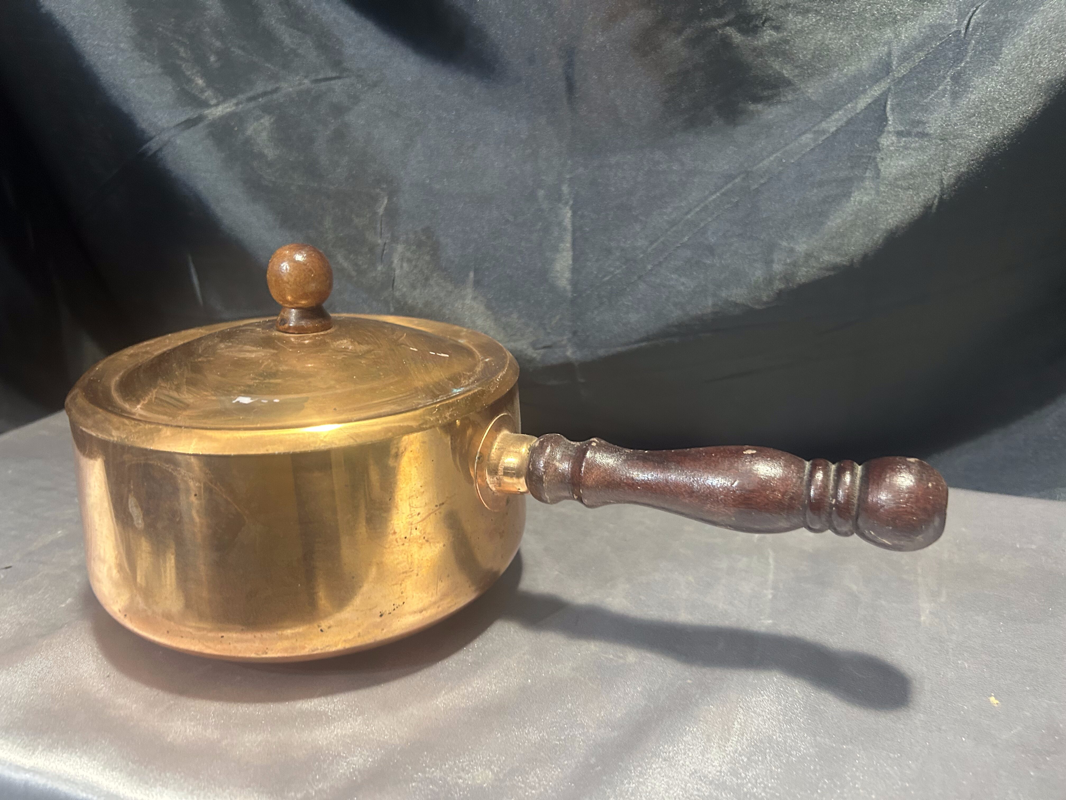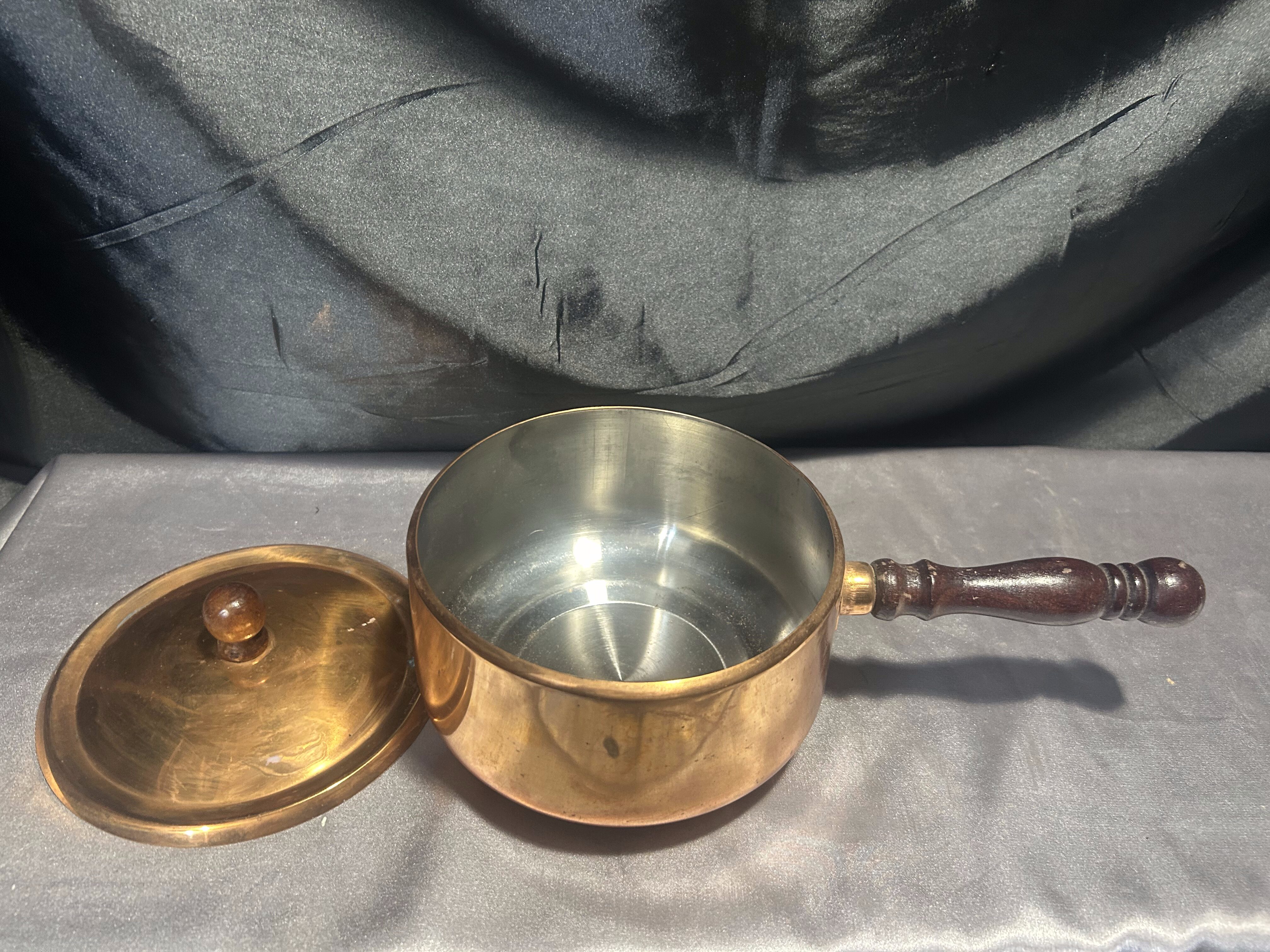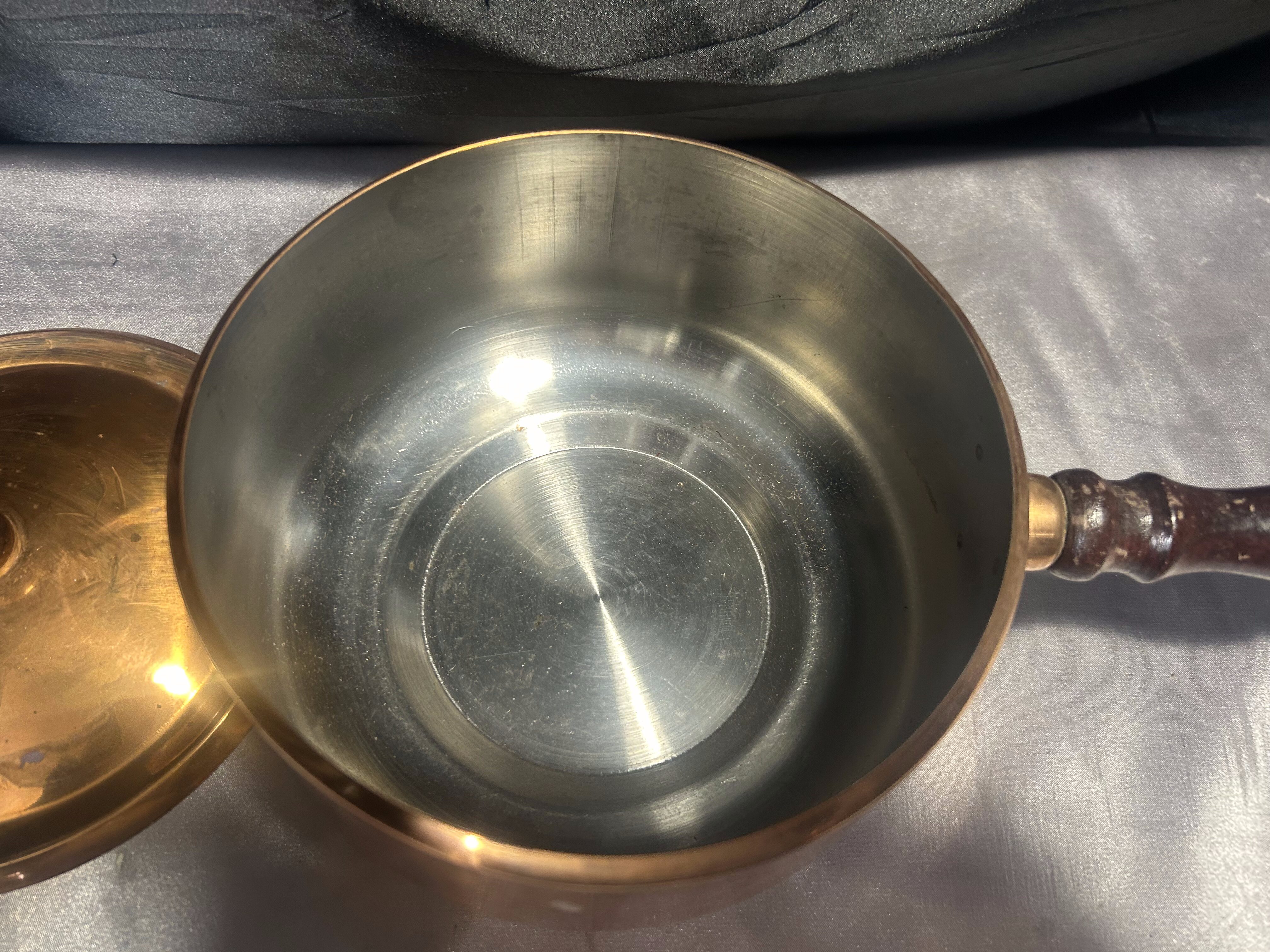 Miedziany Garnek – Rondel z Drewnianą Rączką i Pokrywką – Styl Retro