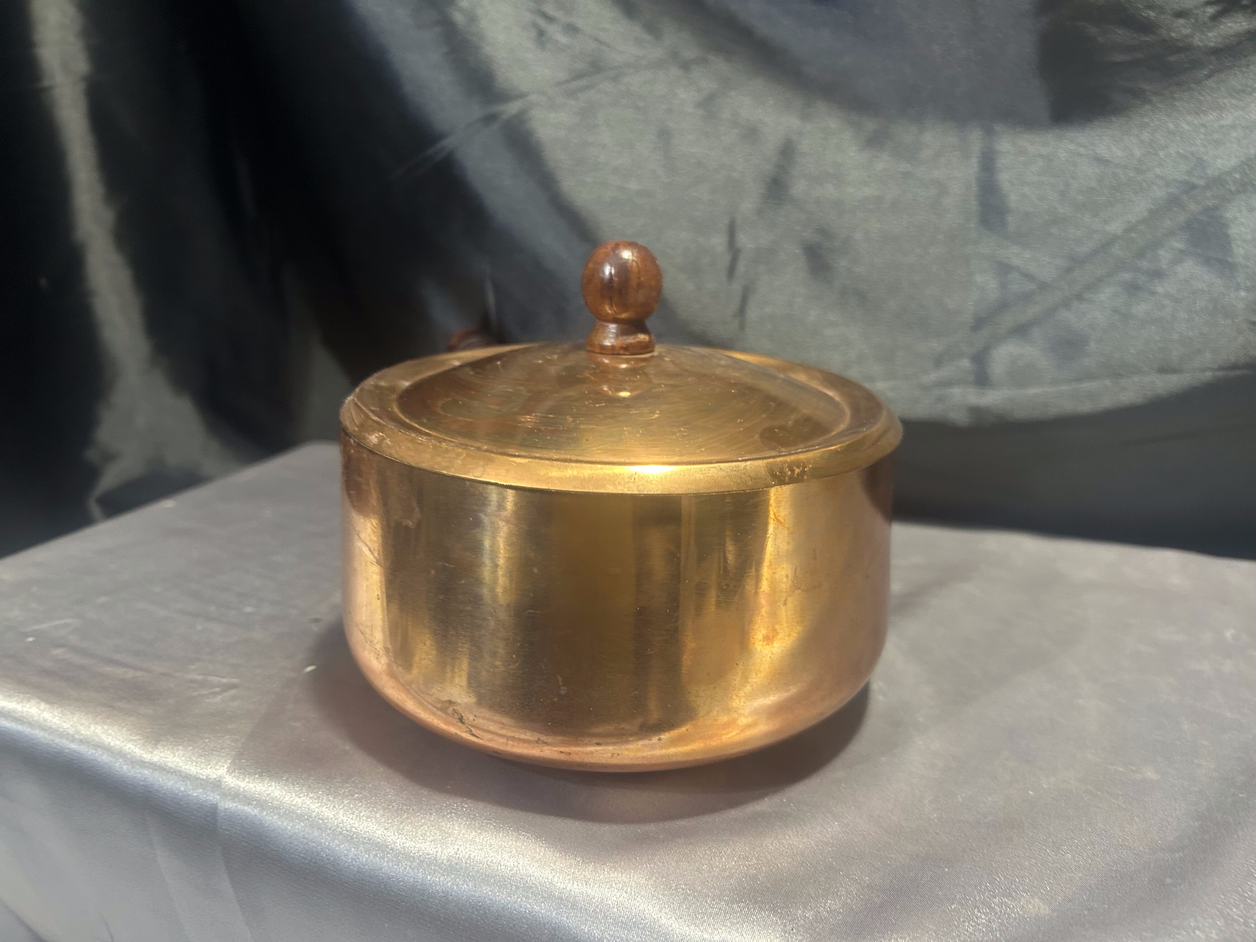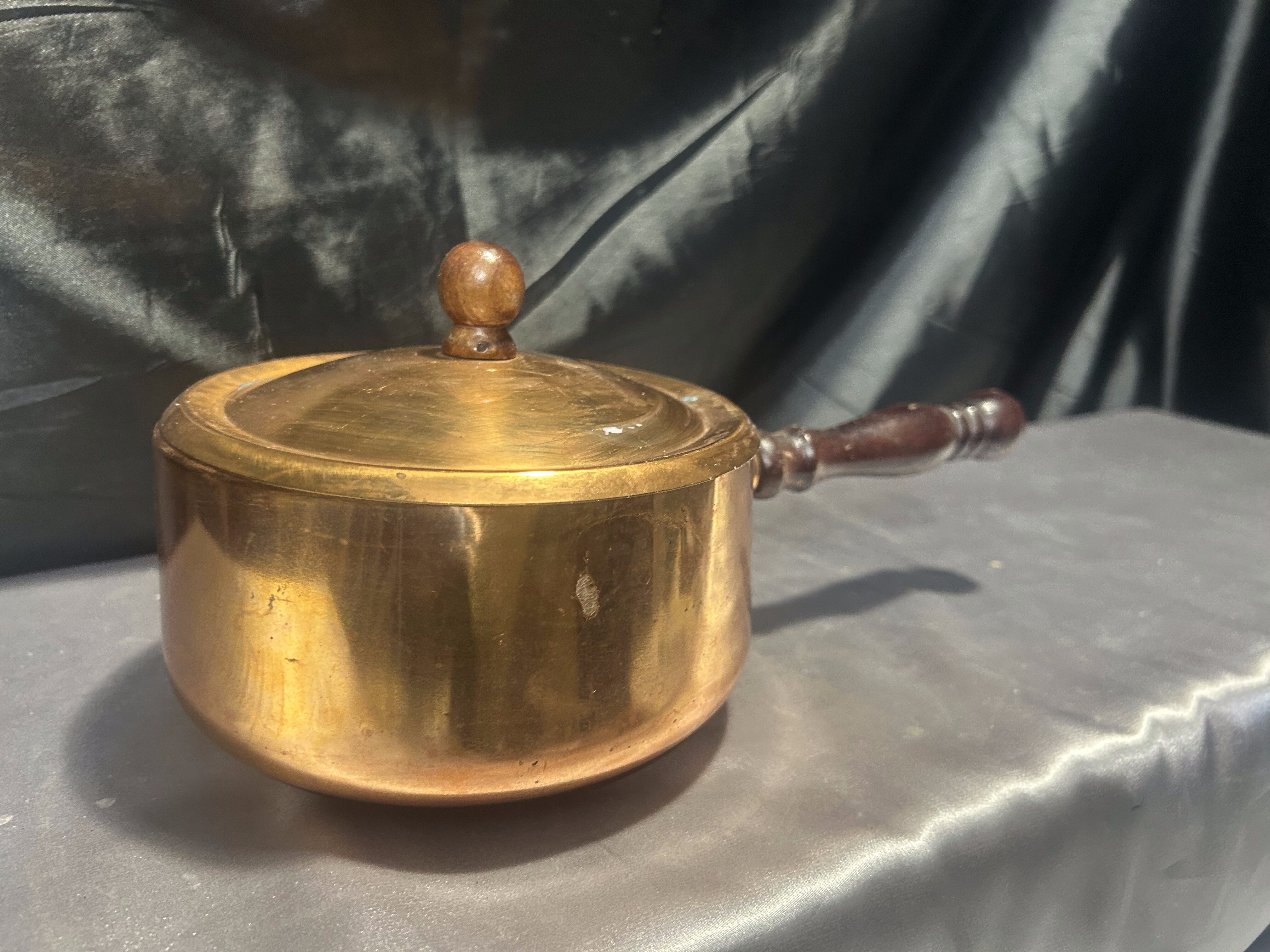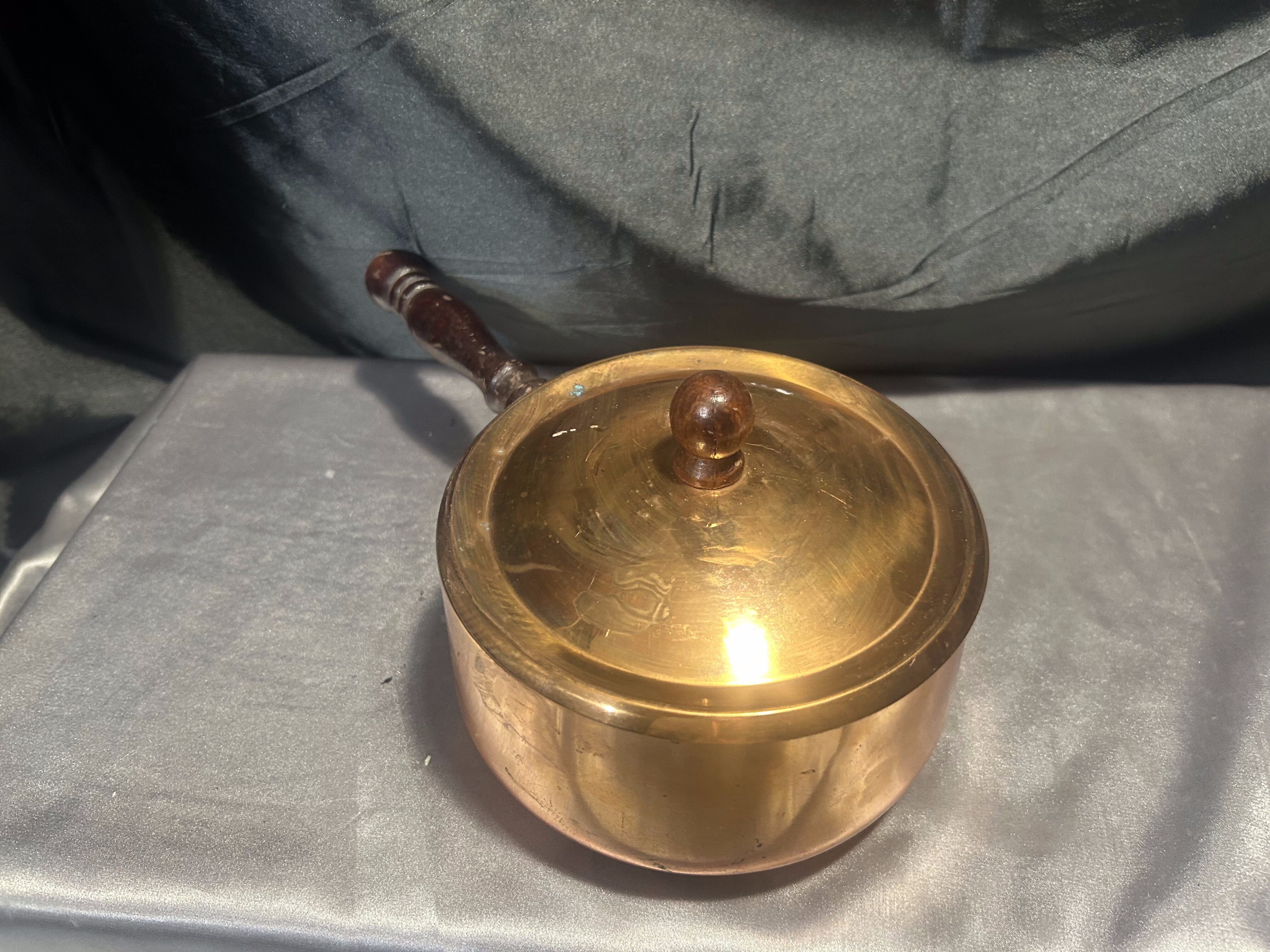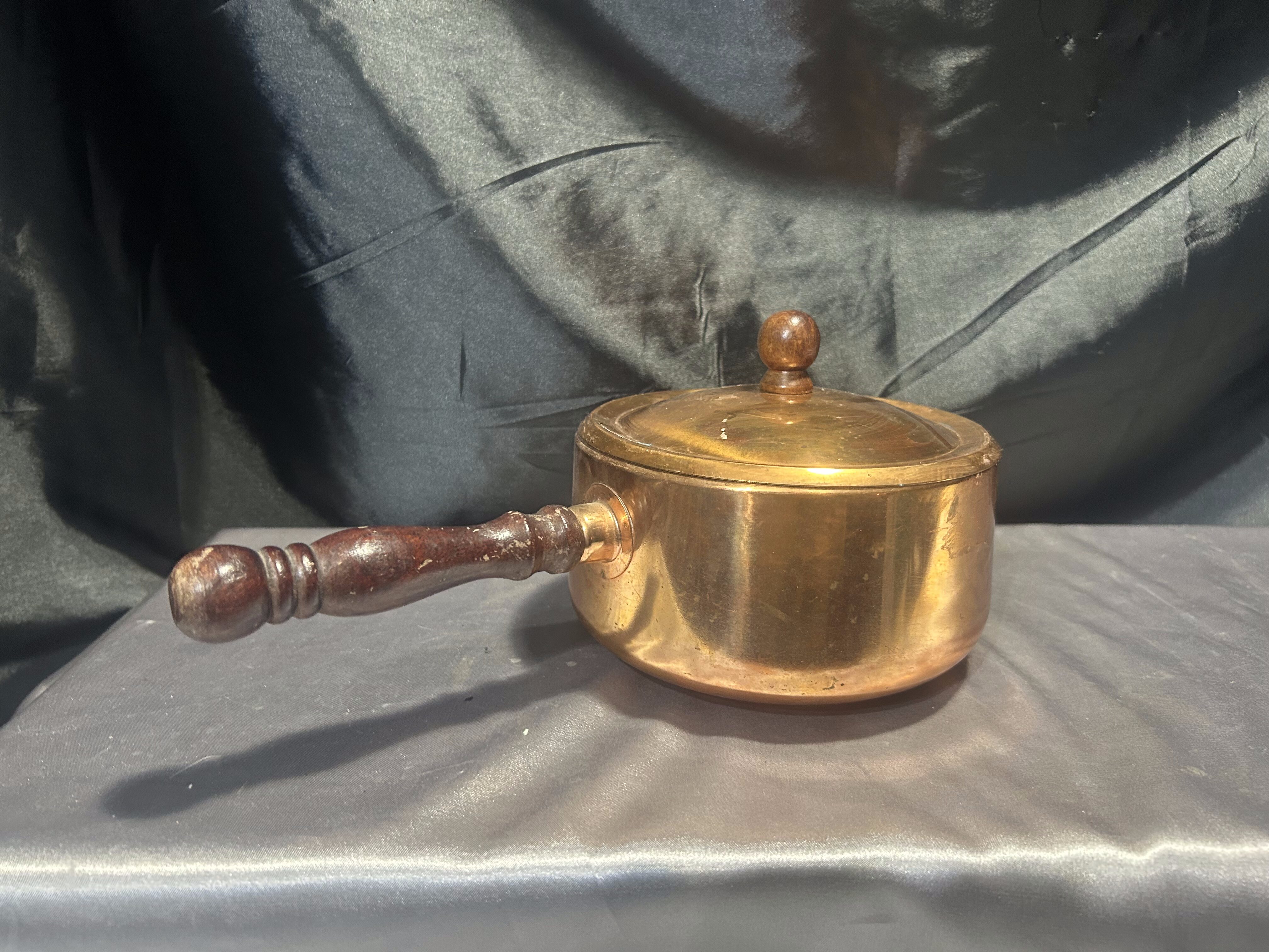 Miedziany Garnek – Rondel z Drewnianą Rączką i Pokrywką – Styl Retro