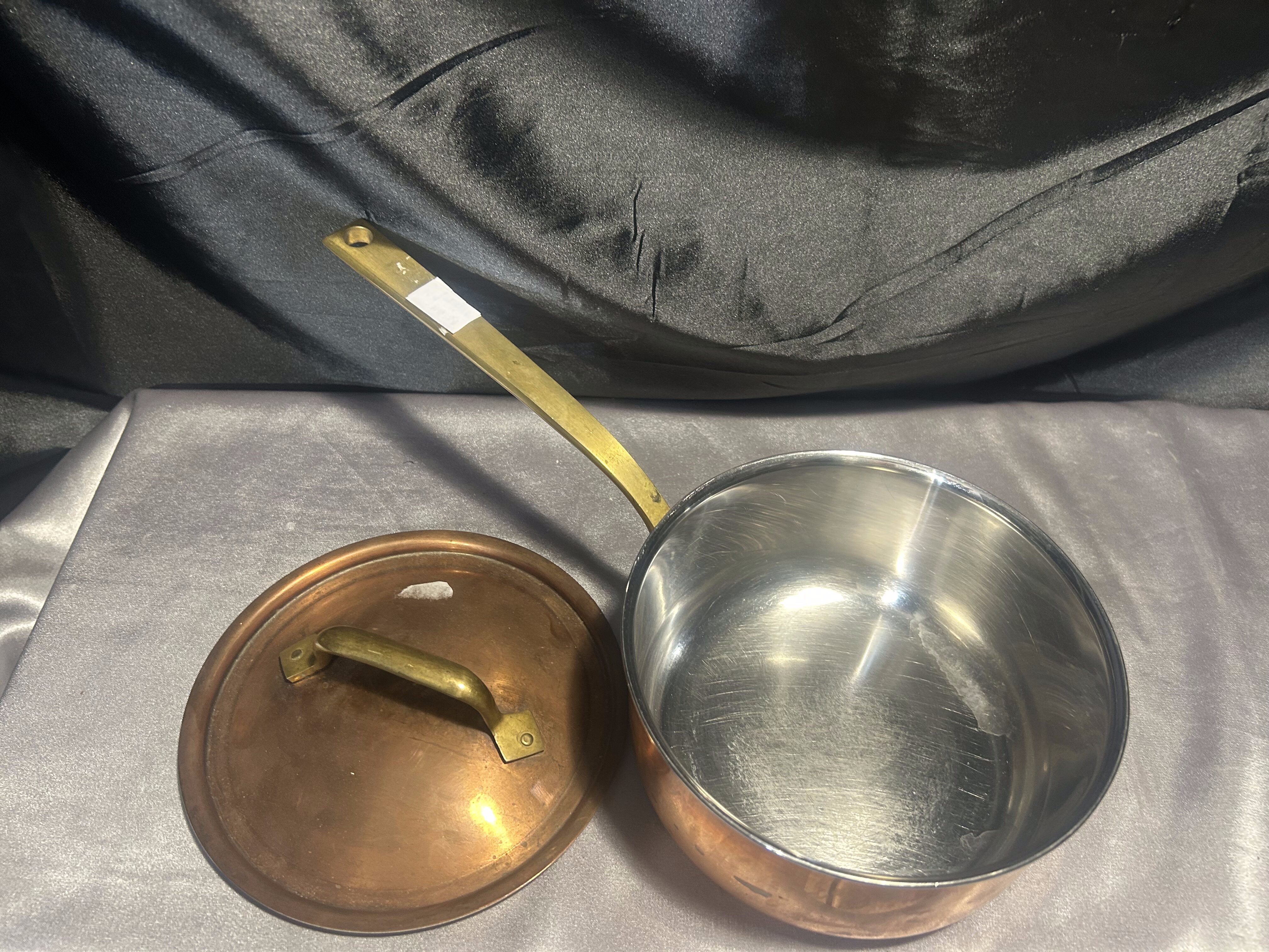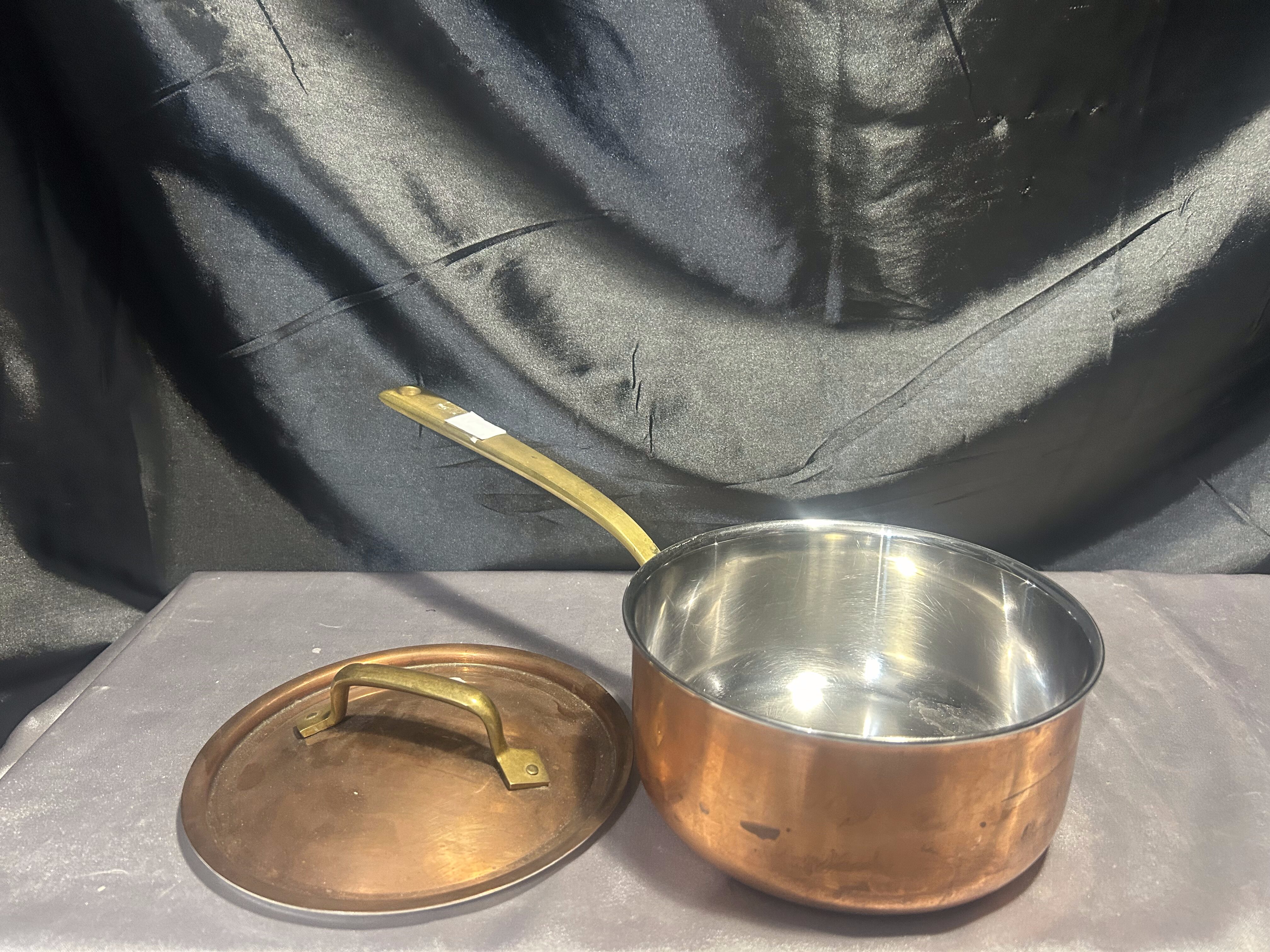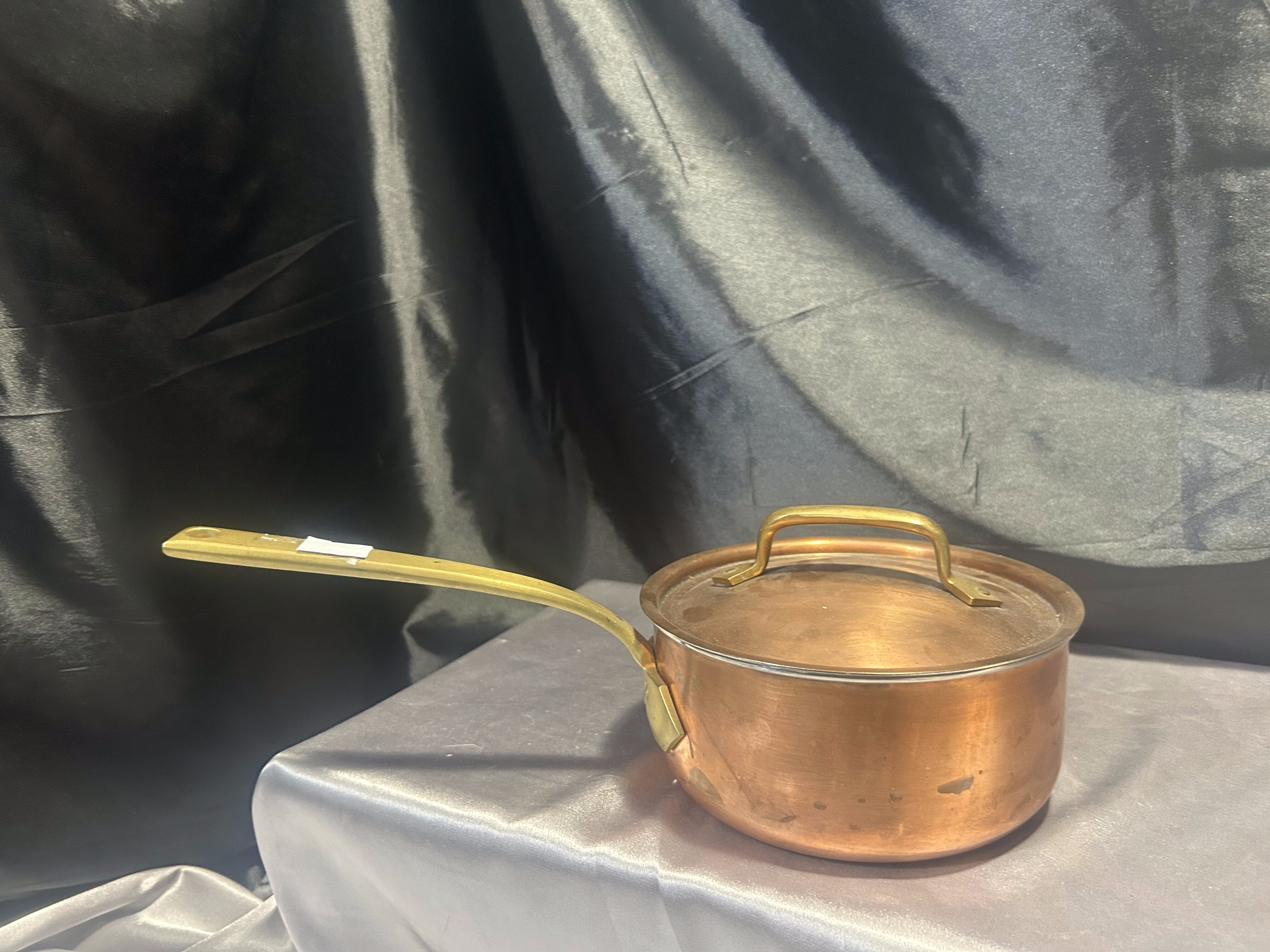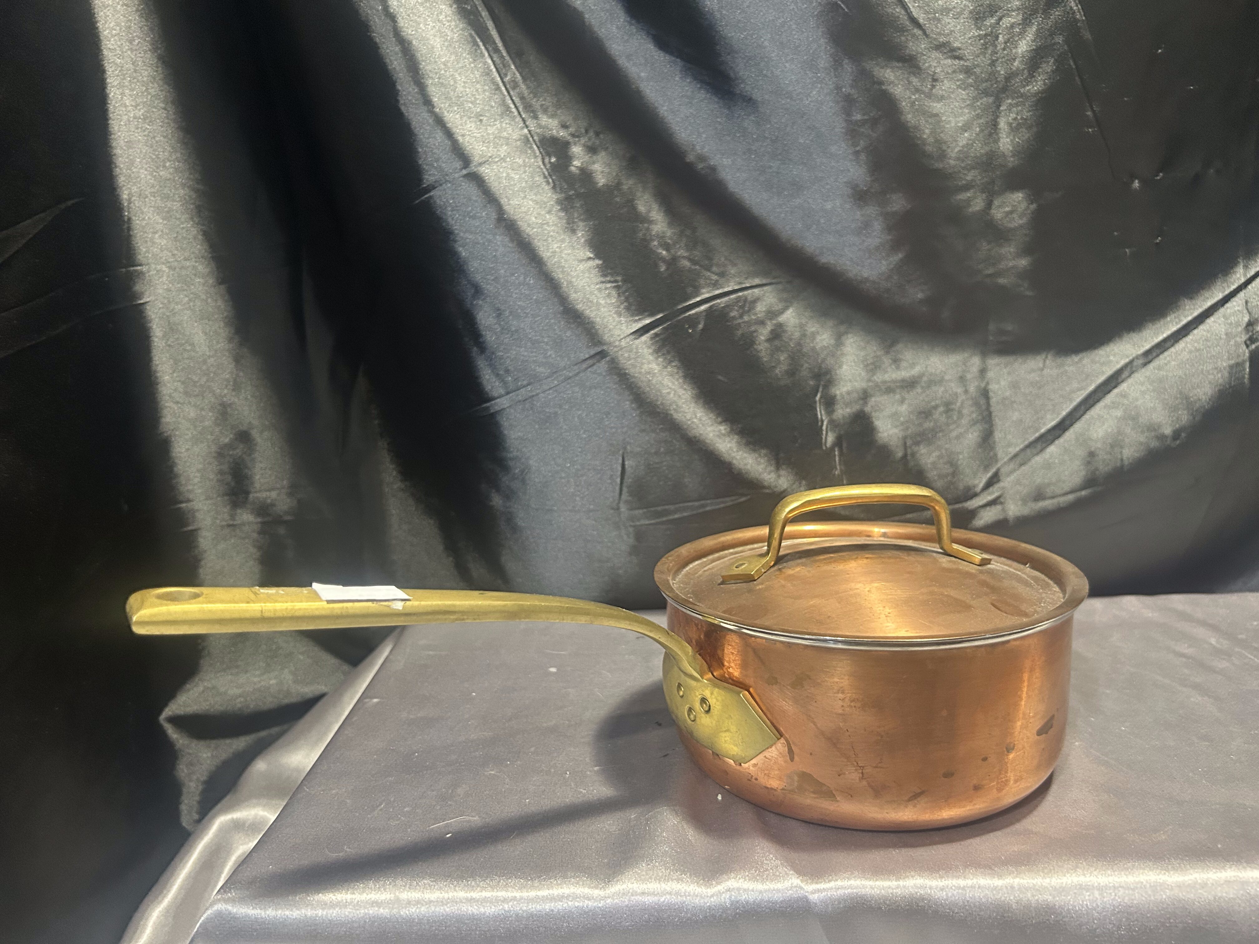 - Miedziany Garnek – Rondel z Pokrywką i Mosiężną Rączką – 1,3 Litra