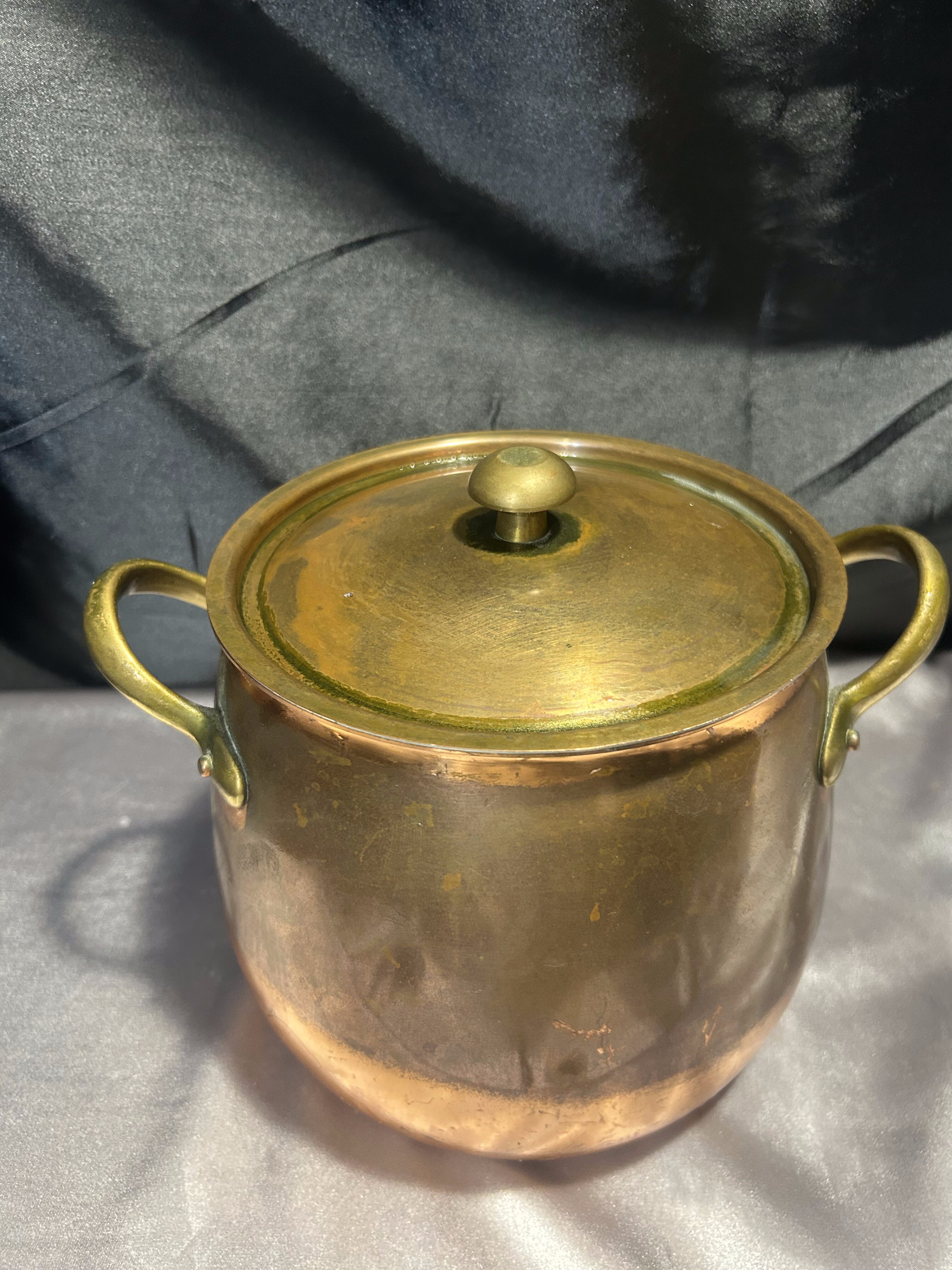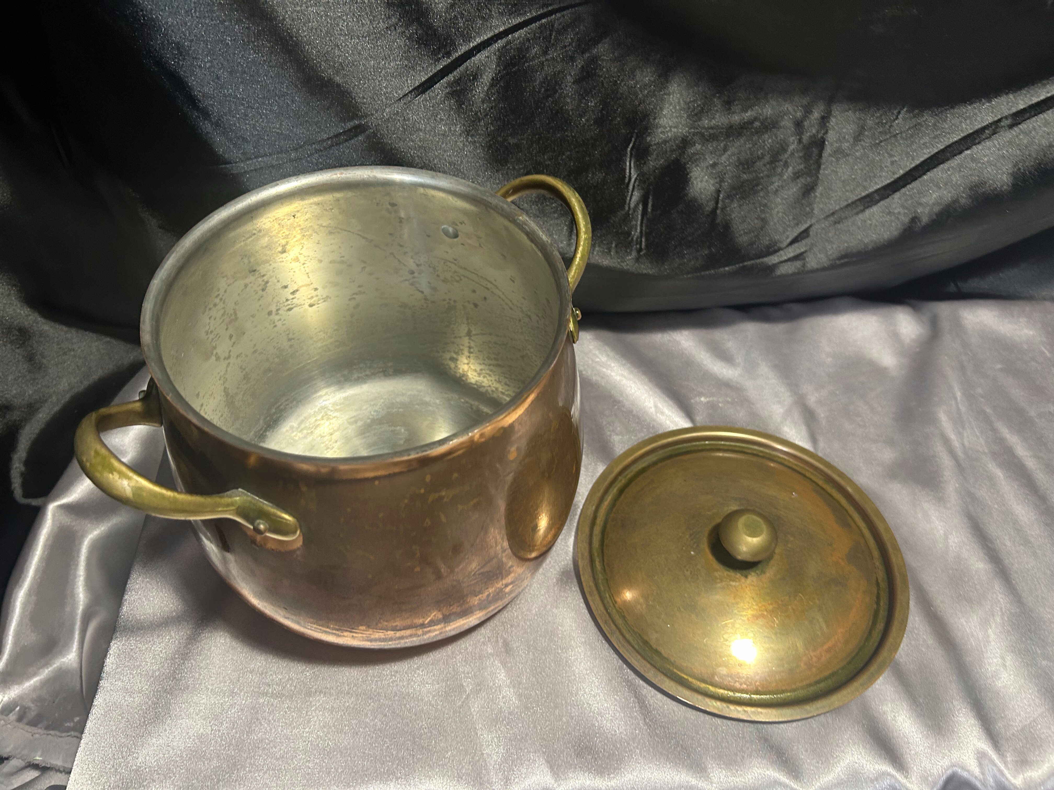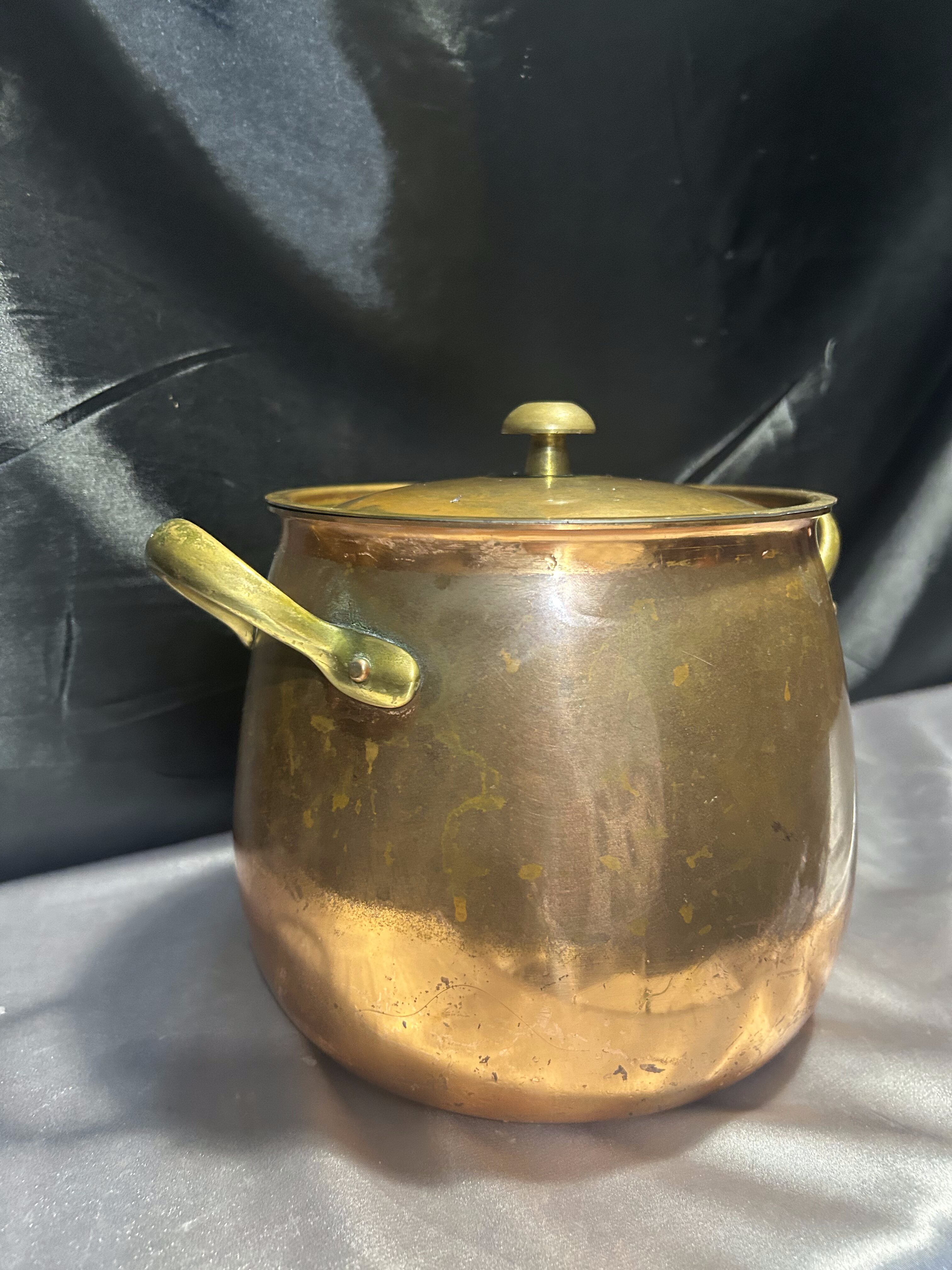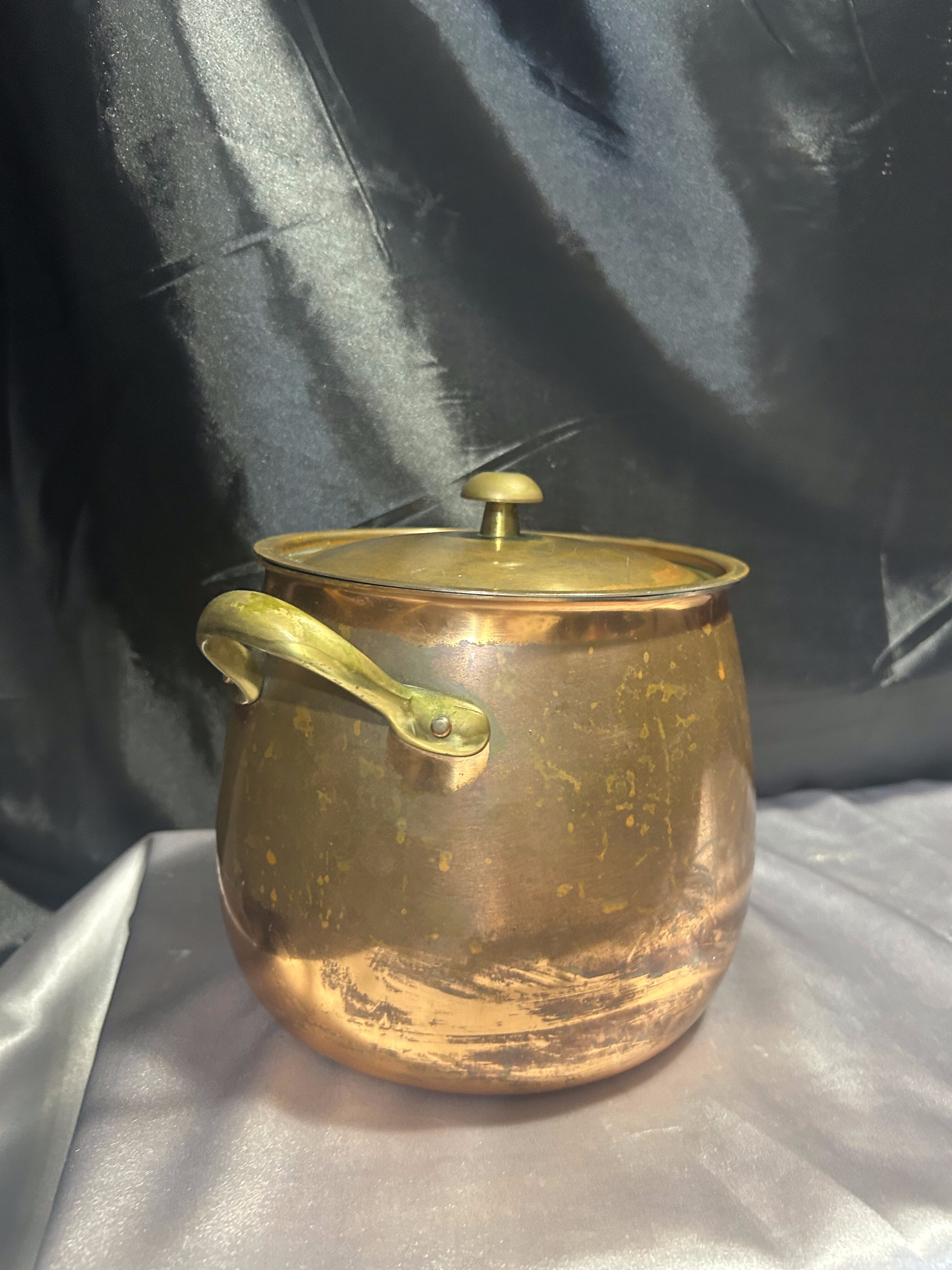 Miedziany Garnek z Pokrywką i Mosiężnymi Uchwytem – Pojemność 3 Litry