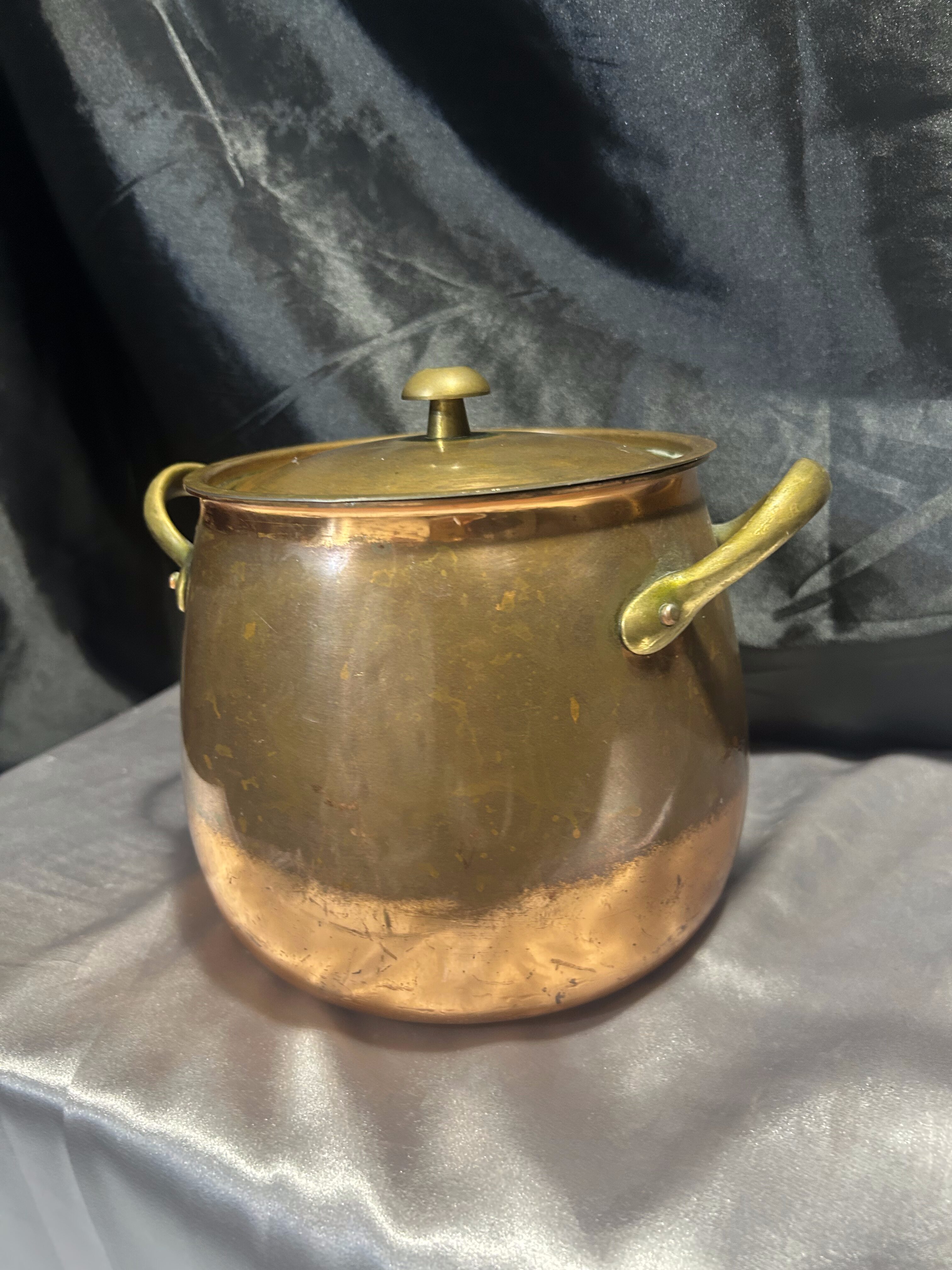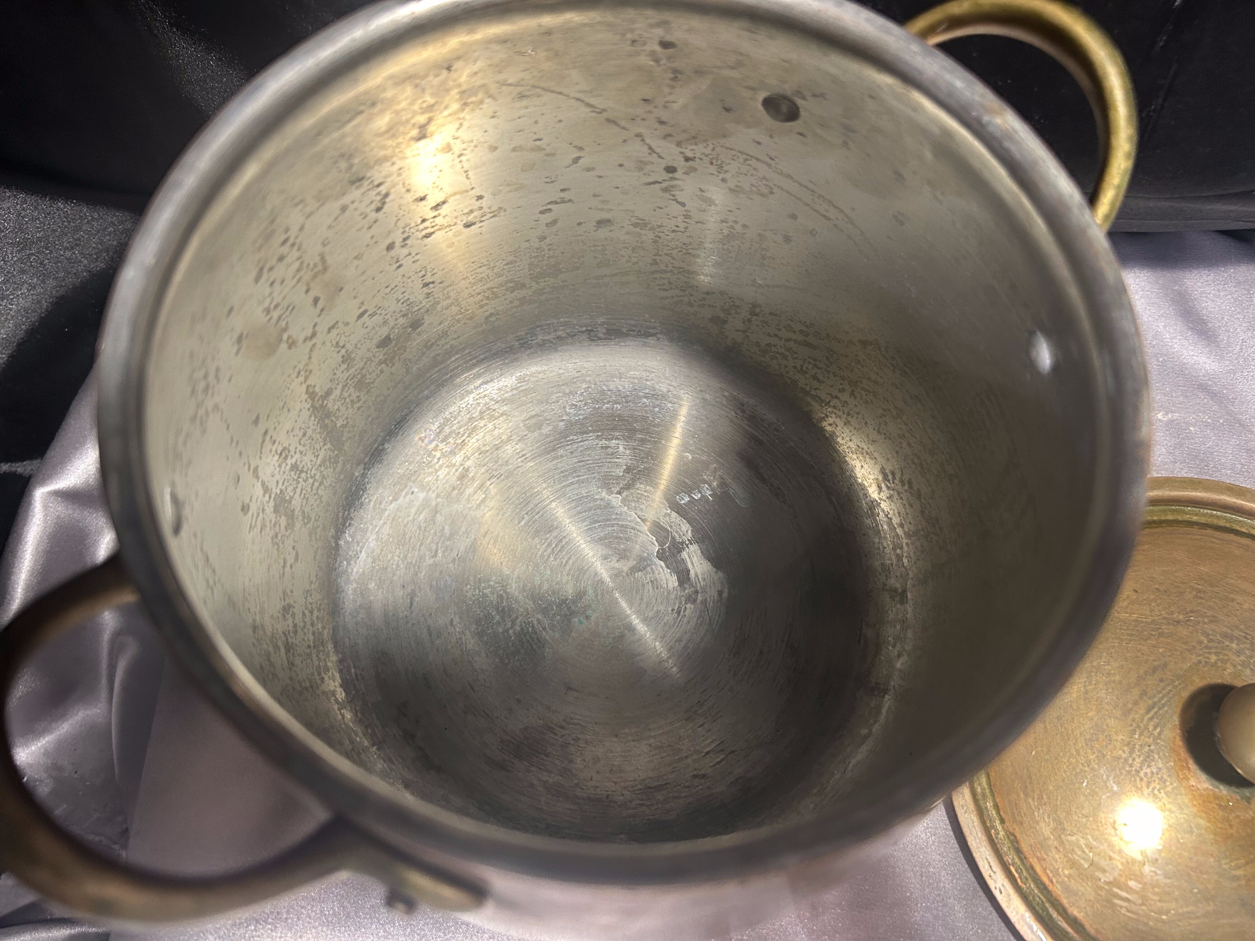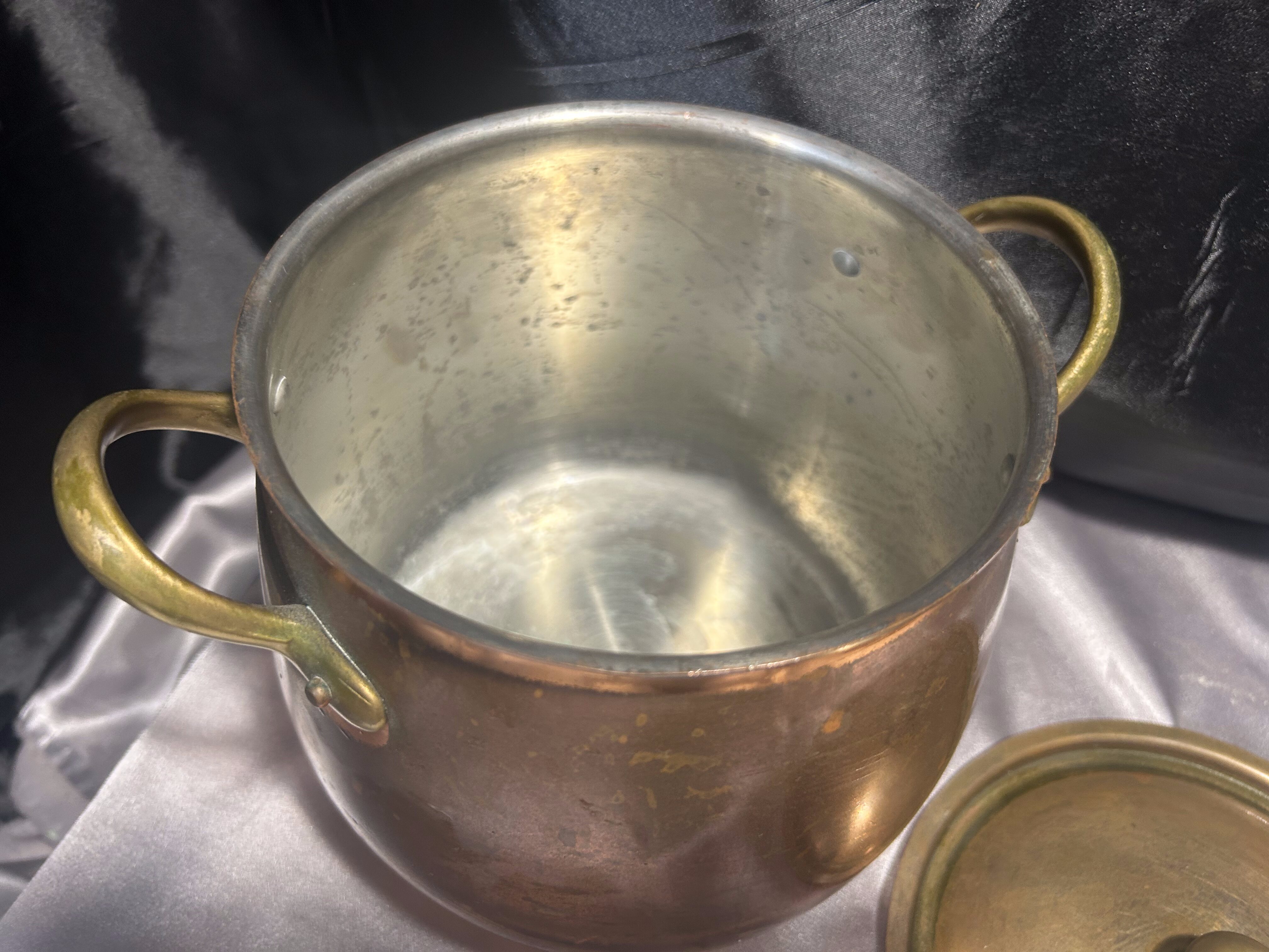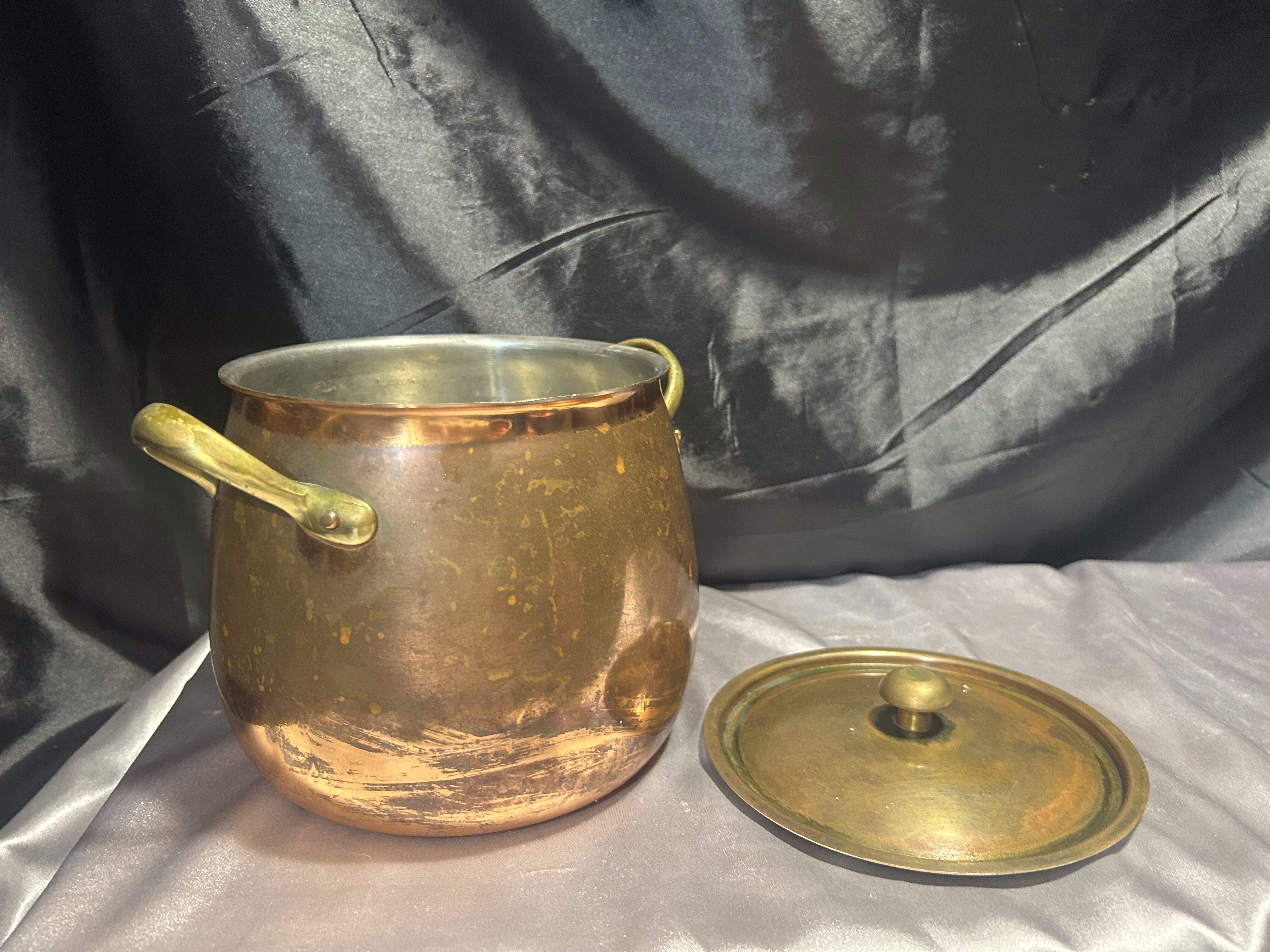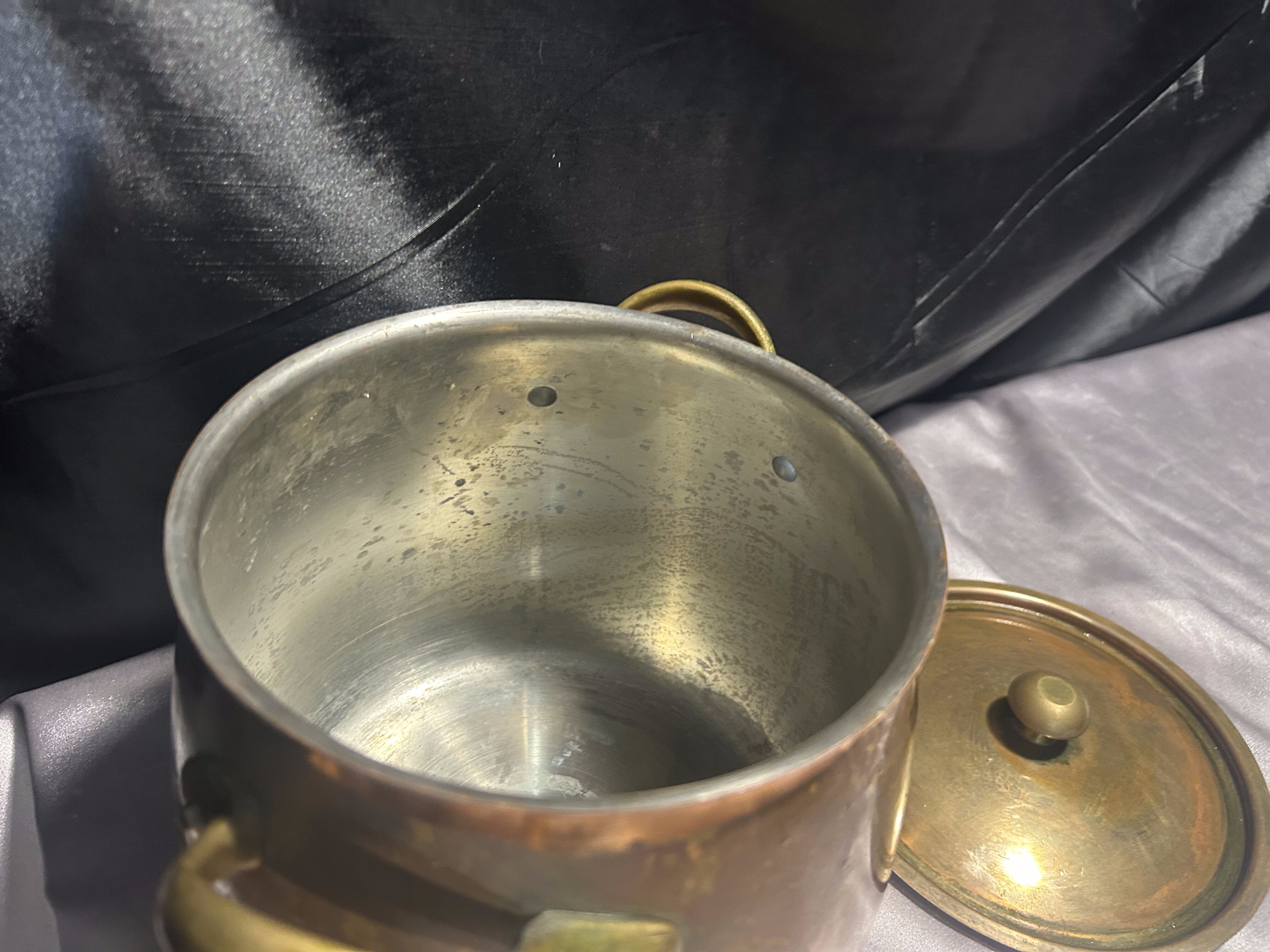 Miedziany Garnek z Pokrywką i Mosiężnymi Uchwytem – Pojemność 3 Litry
