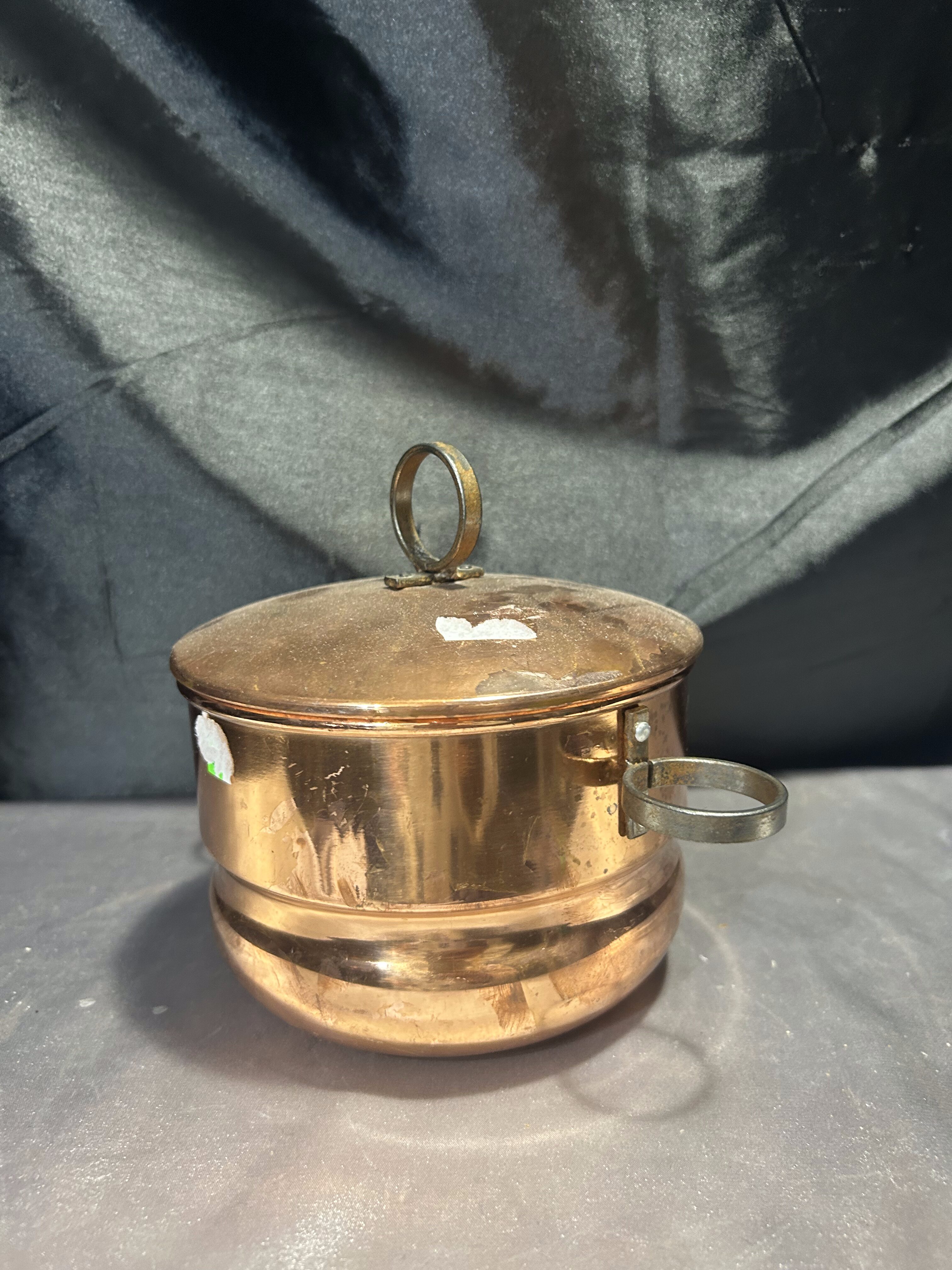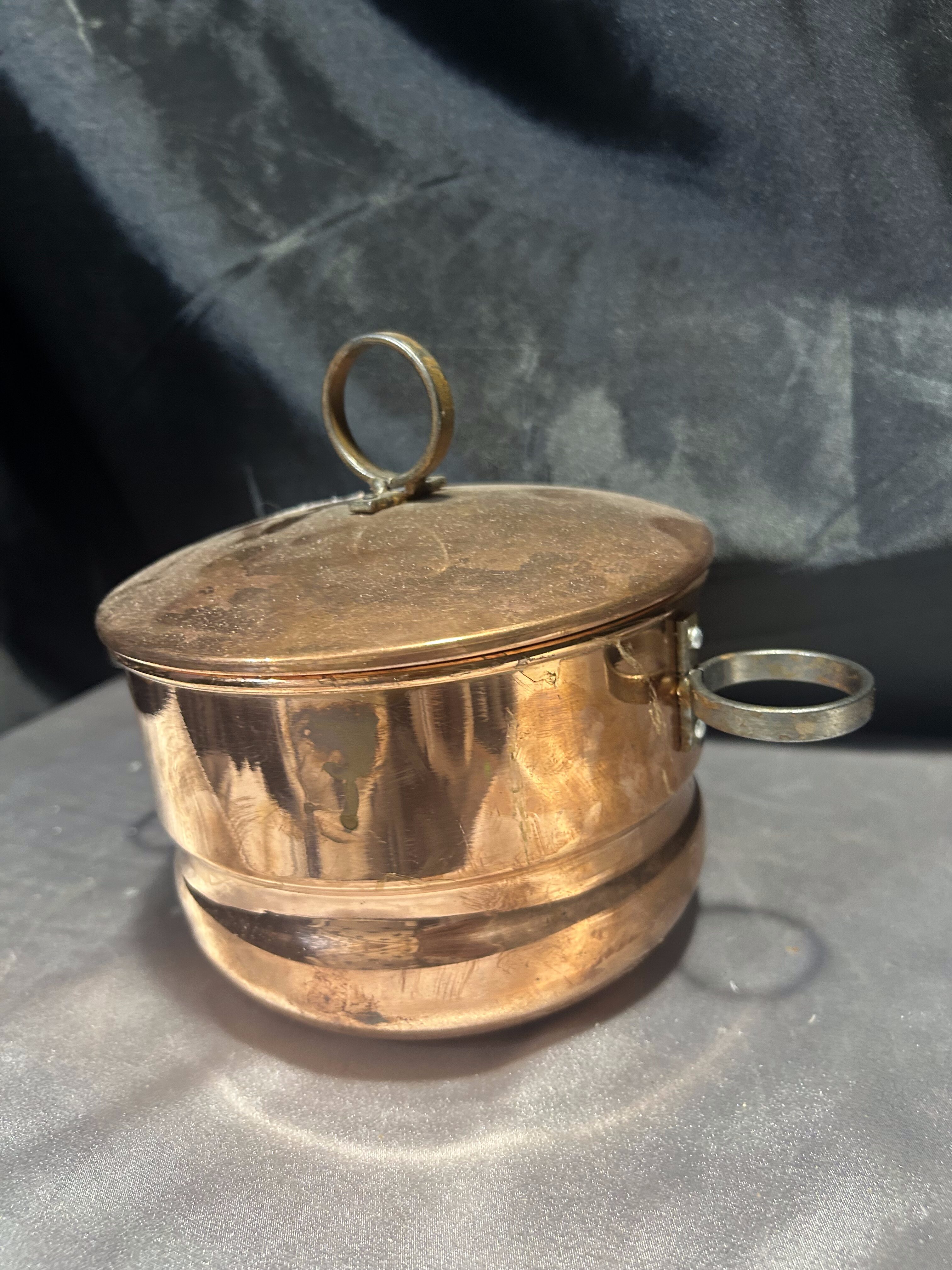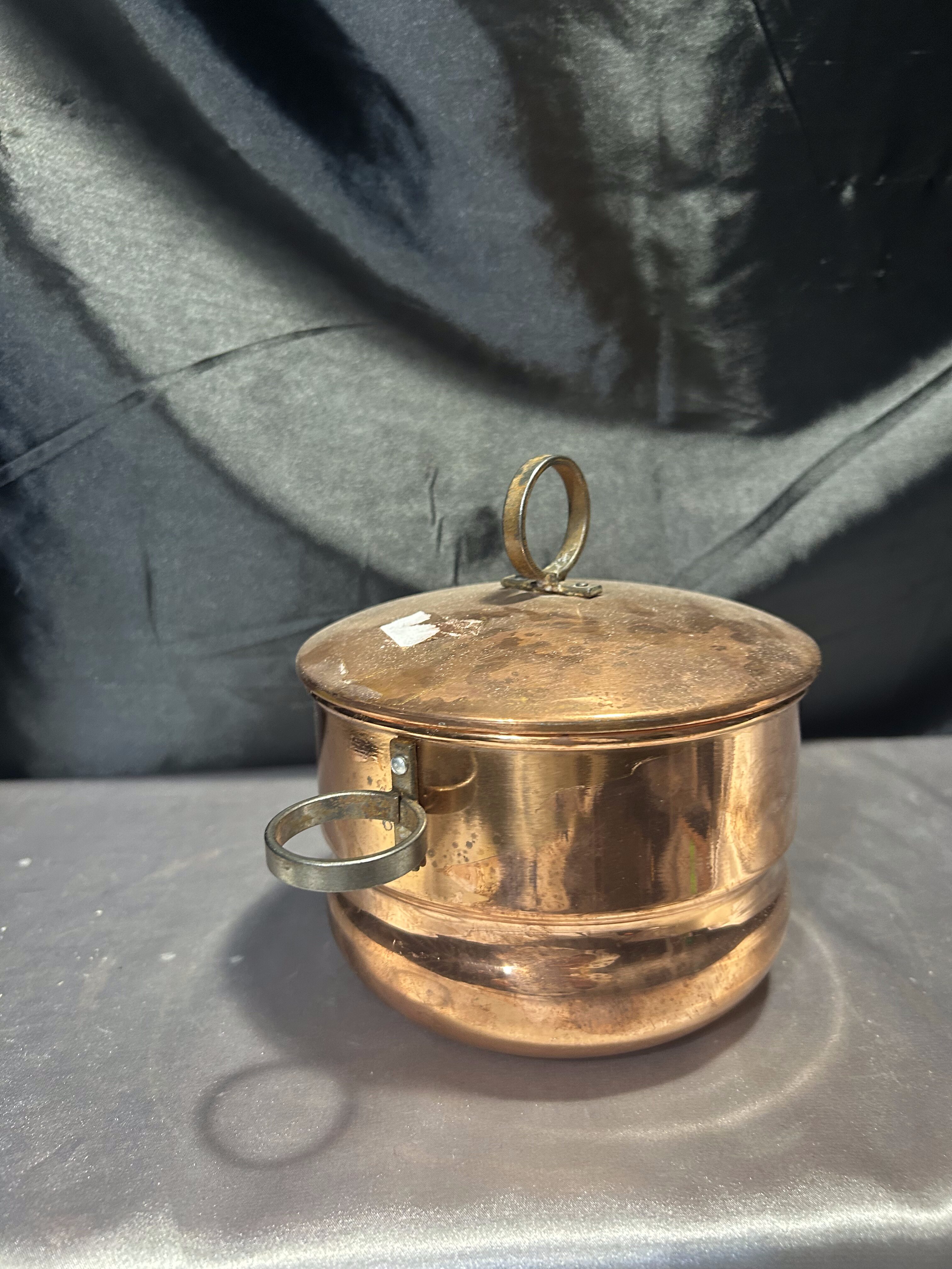 Miedziany Garnek z Pokrywką – Kute Uszy i Kute Kółko, 1 Litr, 455 g