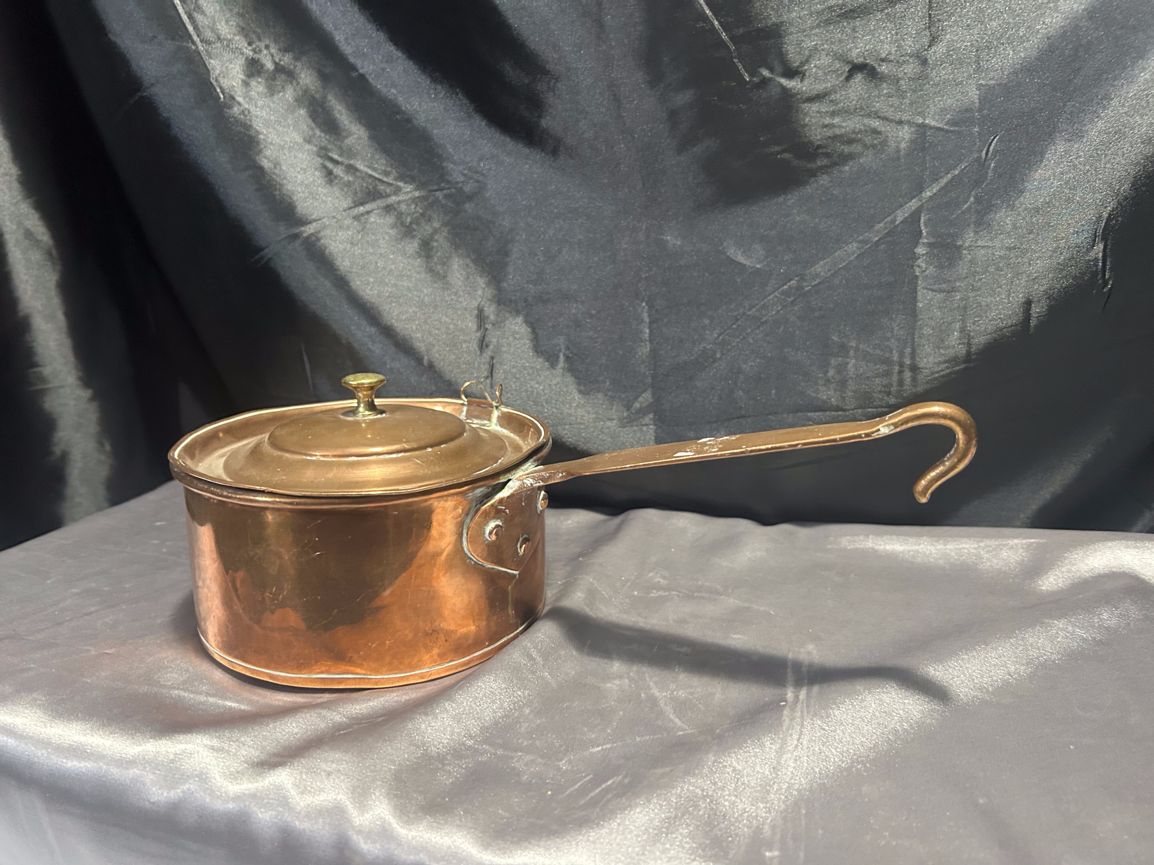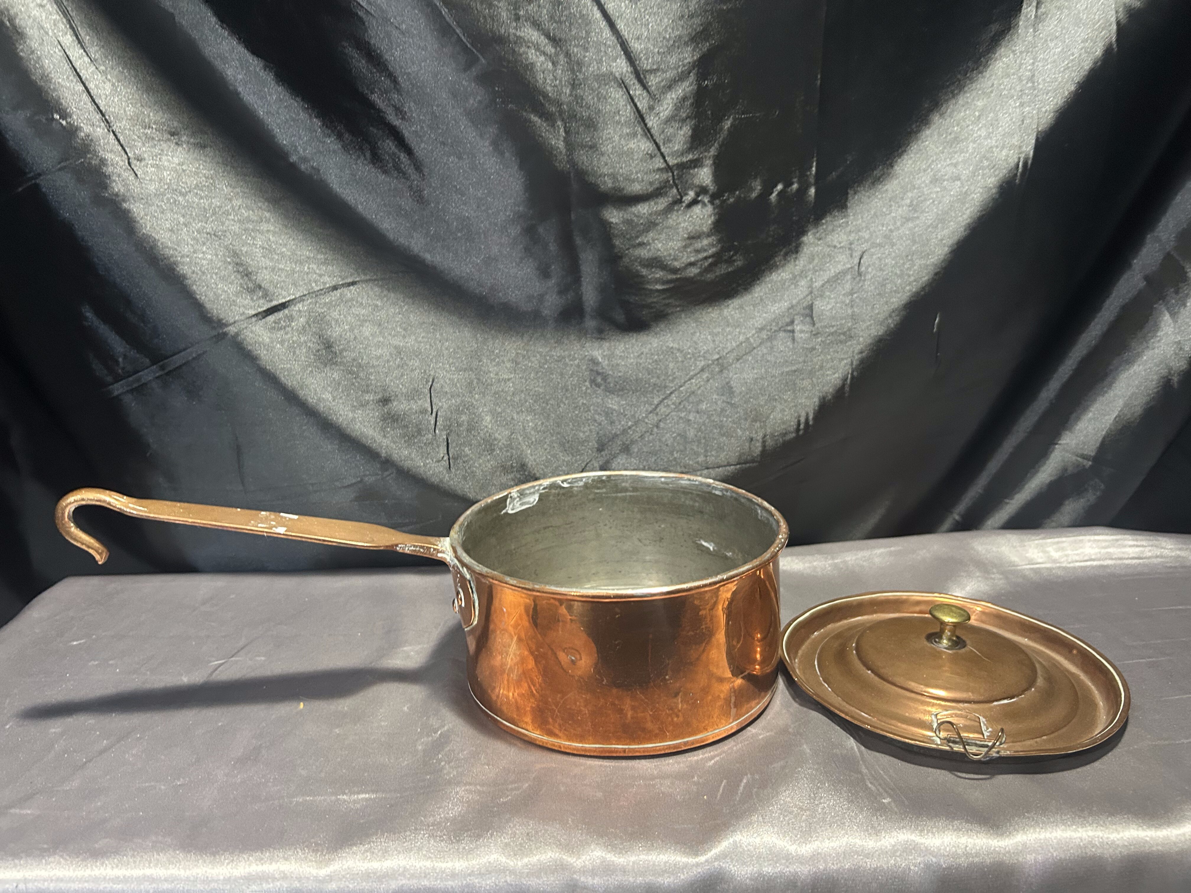Miedziany garnek z pokrywką – rondel ok. 1,5 l – klasyczny styl vintage