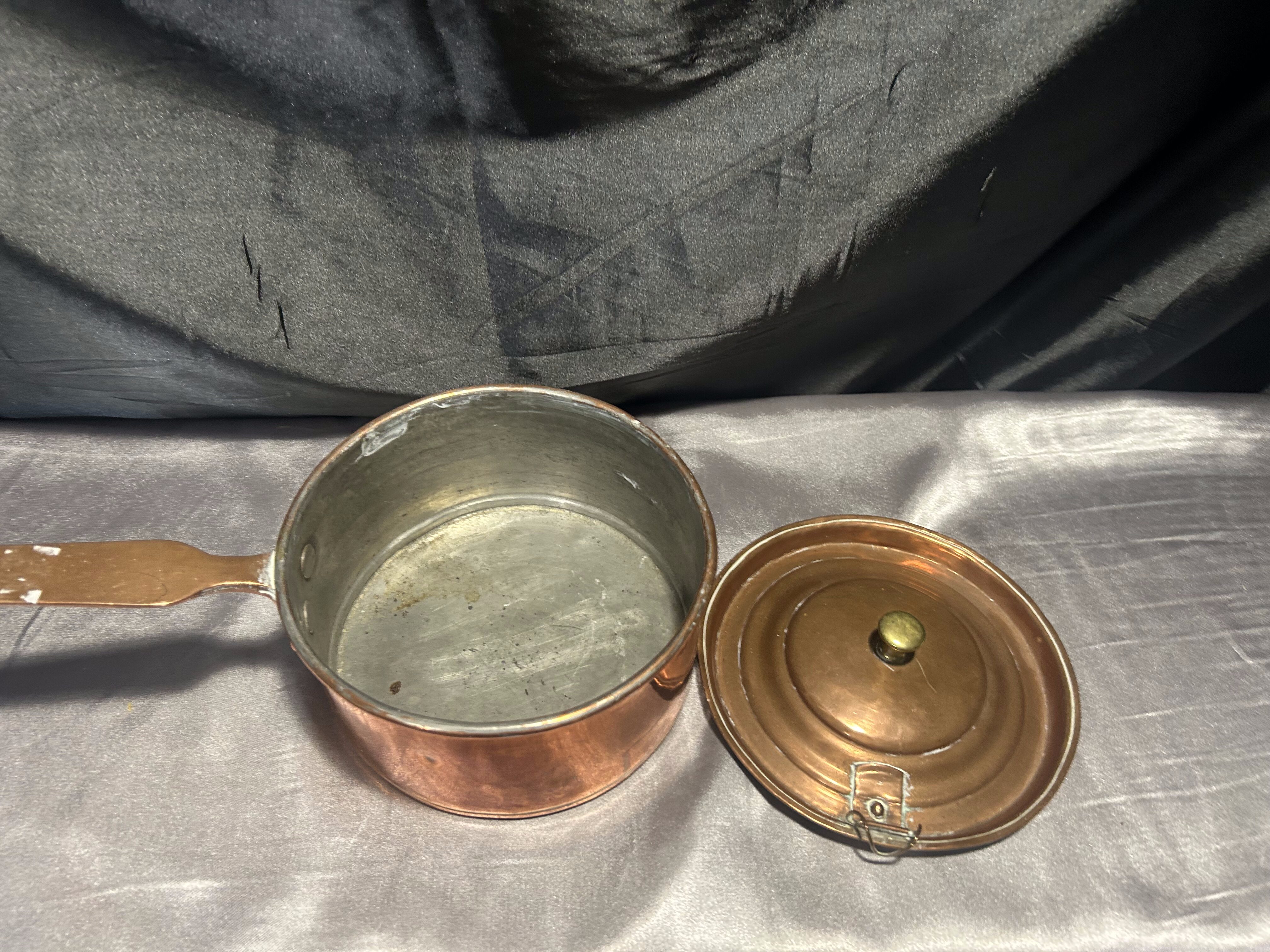 - Miedziany garnek z pokrywką – rondel ok. 1,5 l – klasyczny styl vintage