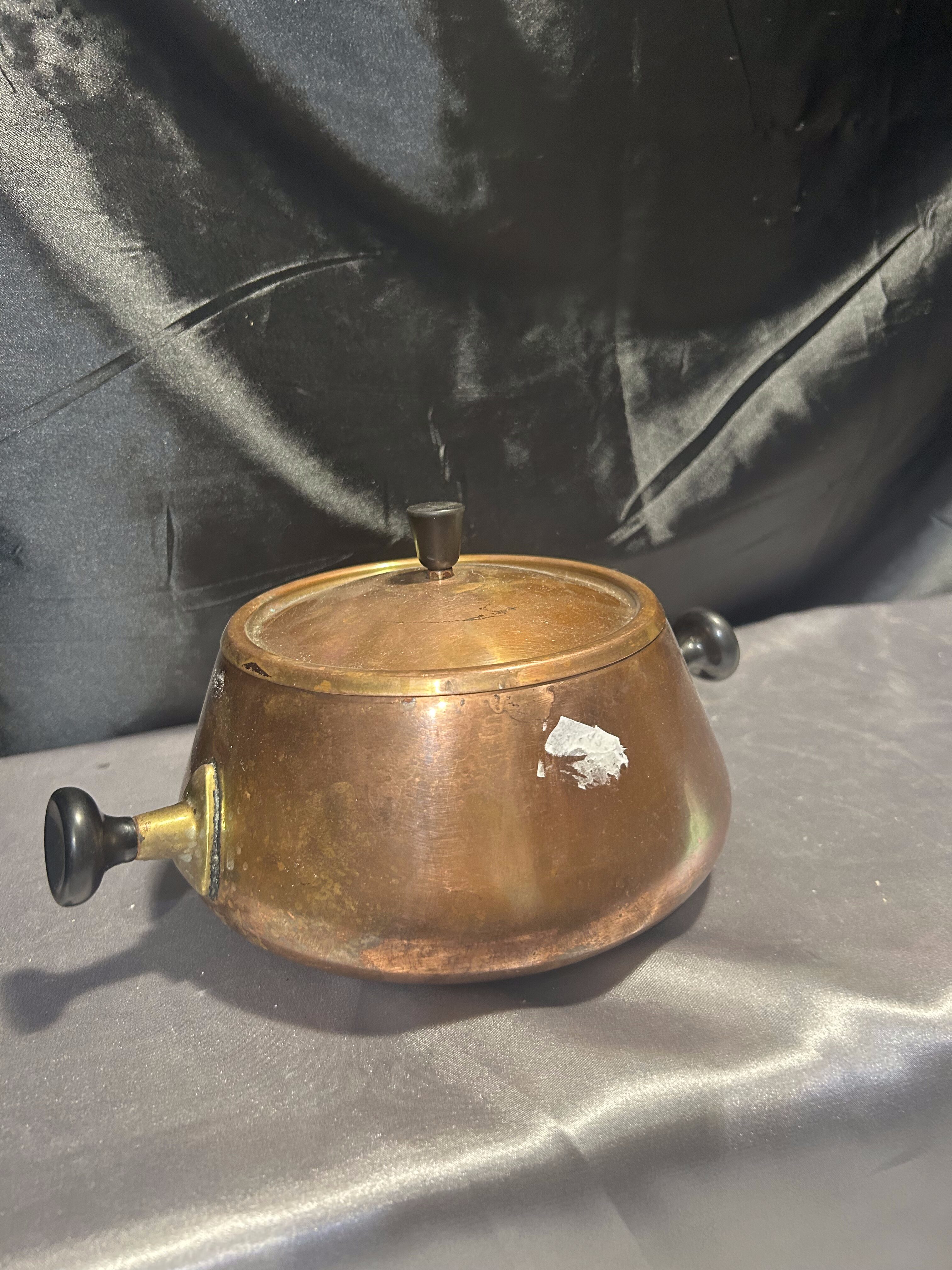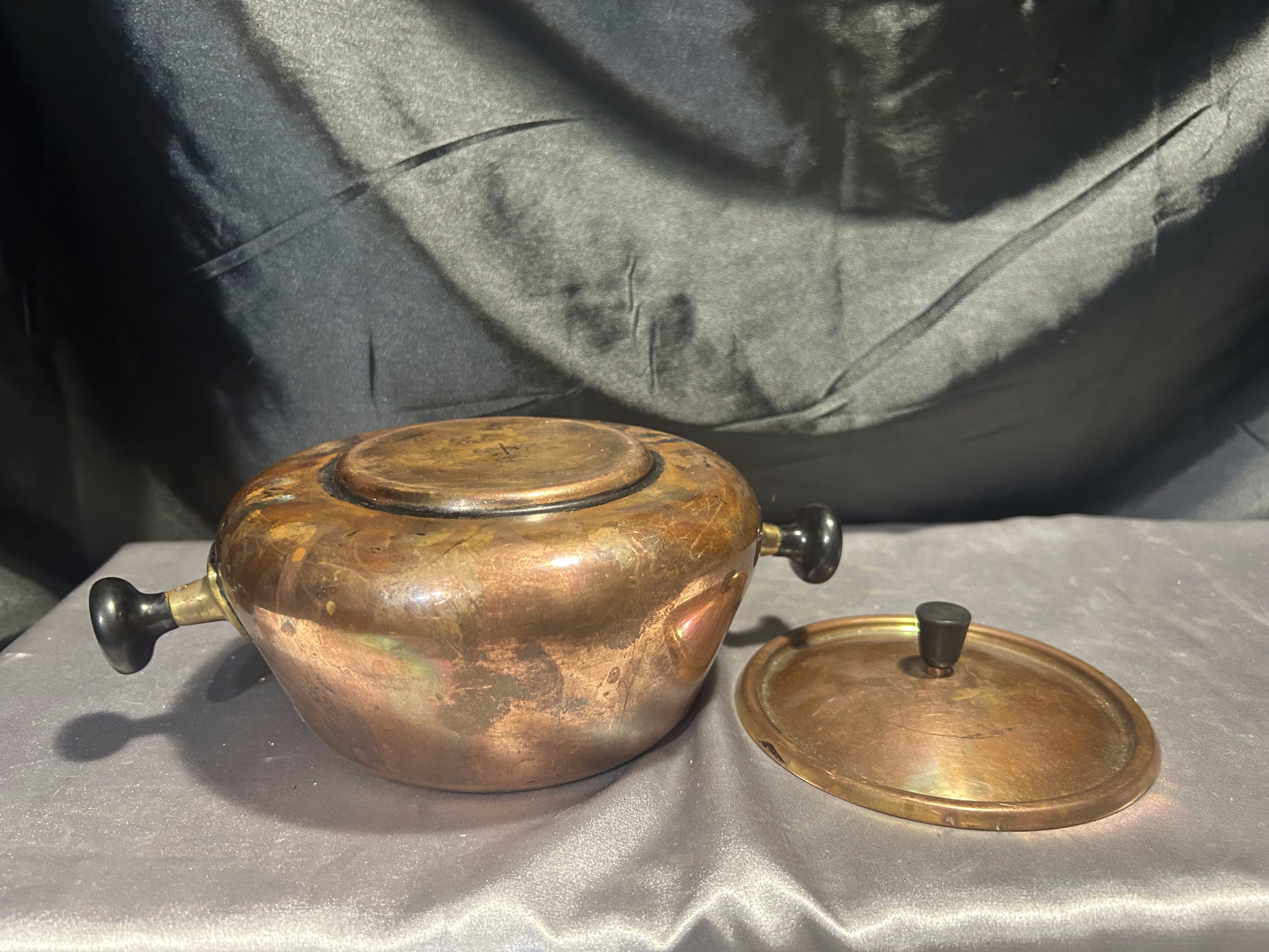 Miedziany Garnek z Pokrywką – Kute Uszy i Kute Kółko, 1 Litr
