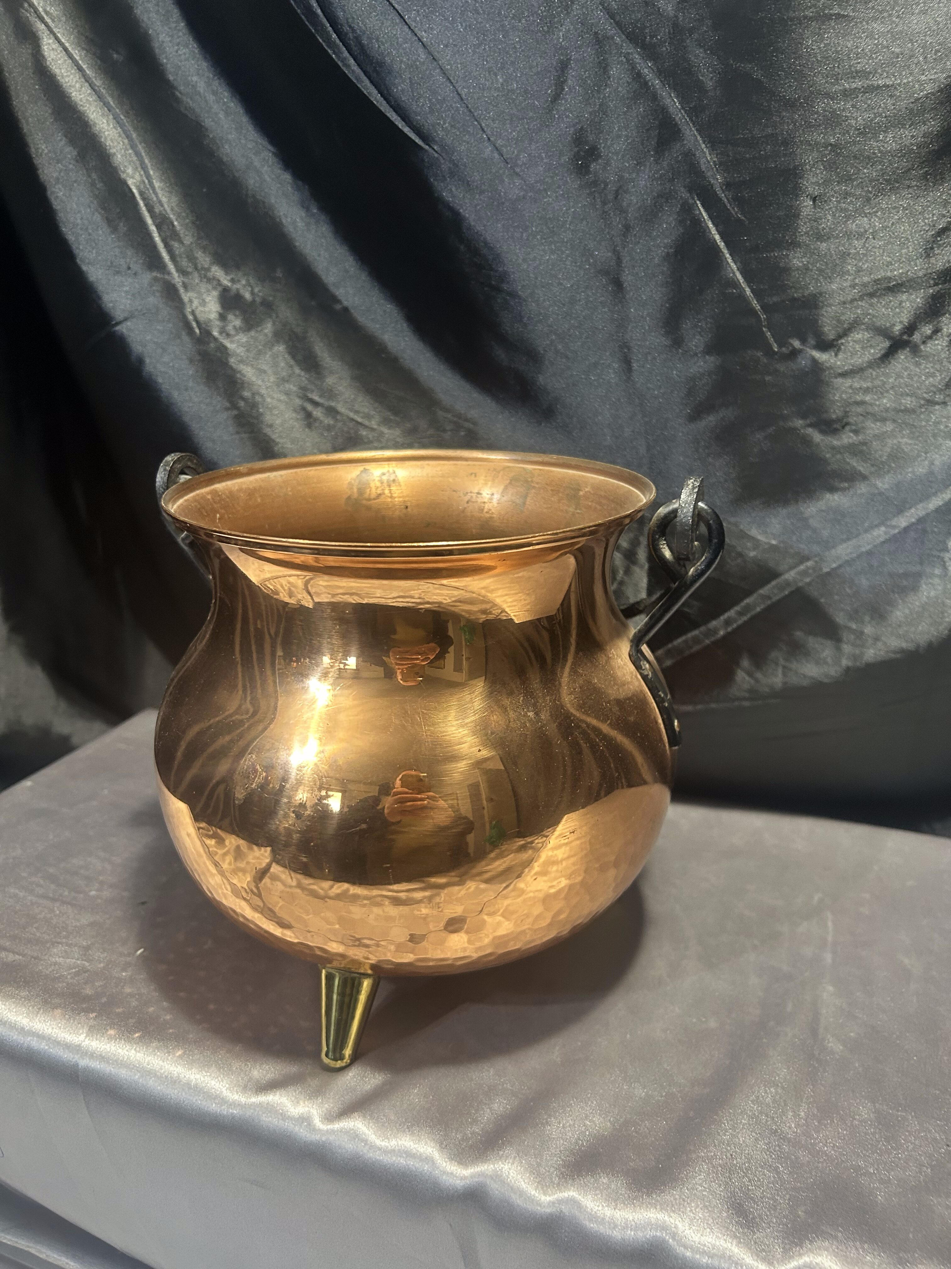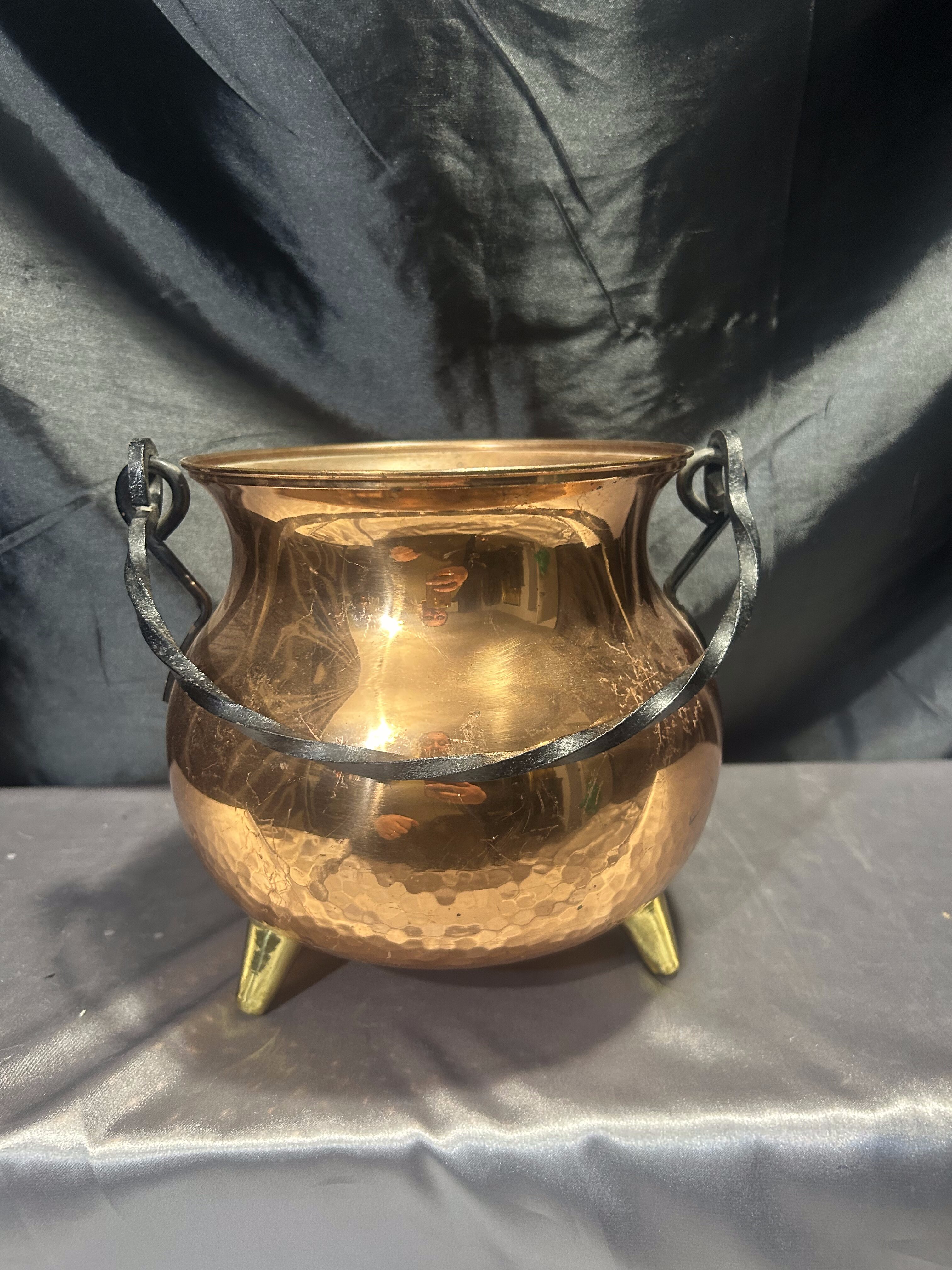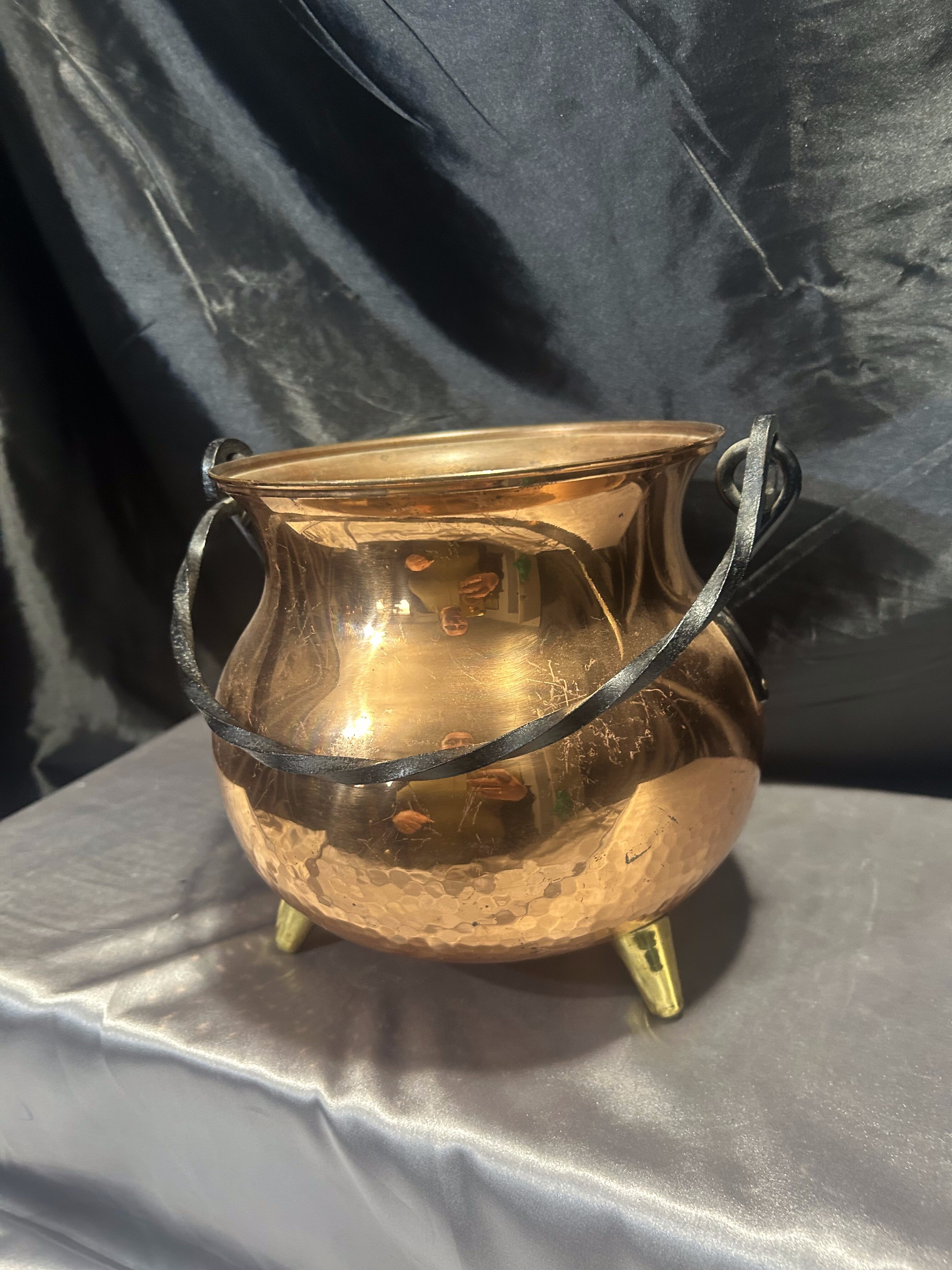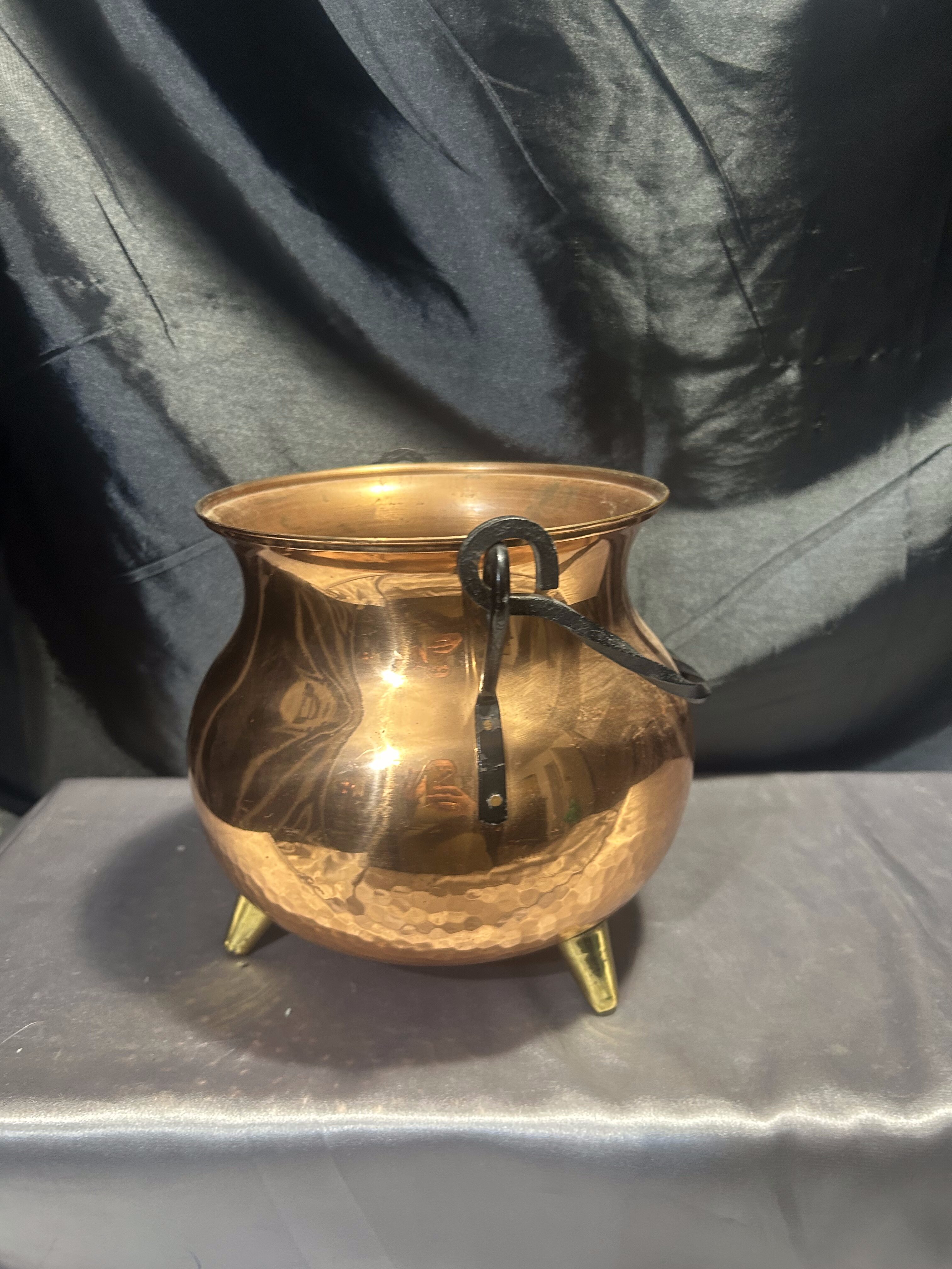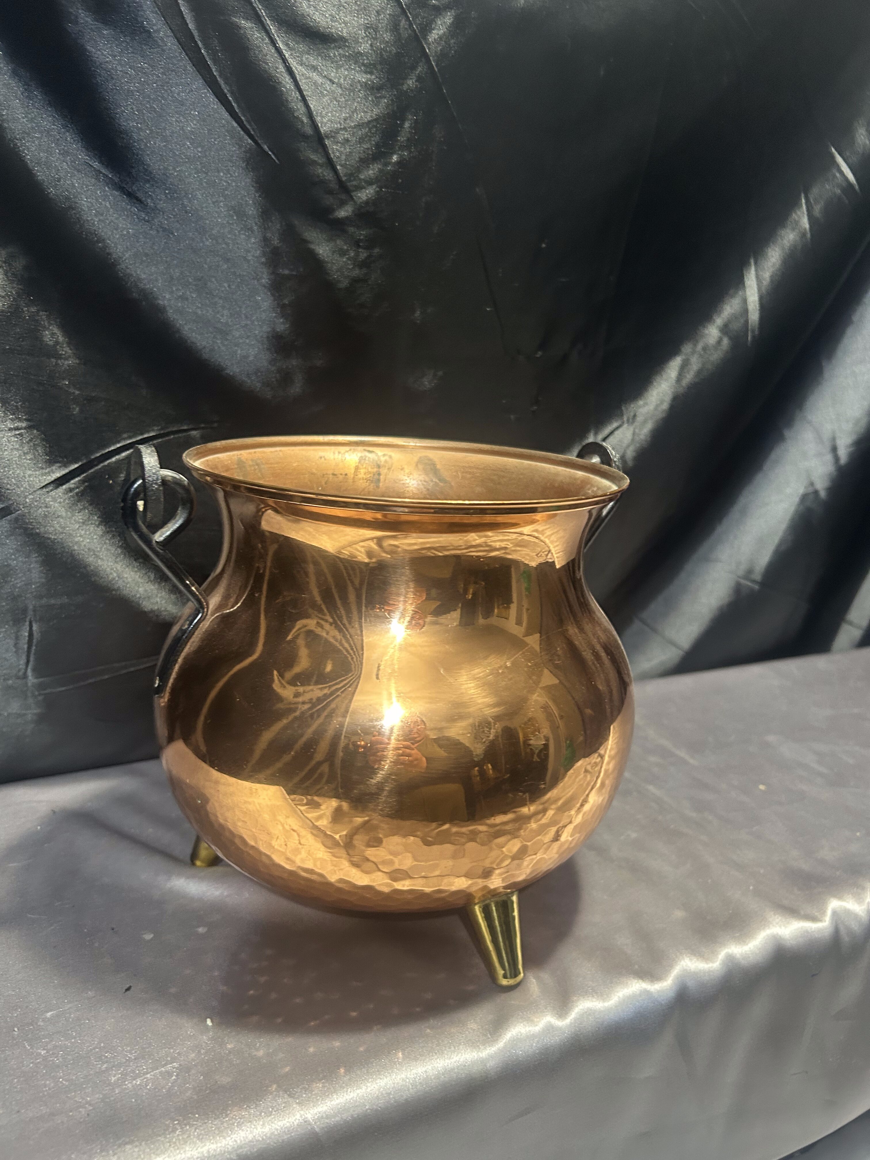 Miedziany kociołek wiedźmy – kwietnik na trzech mosiężnych nóżkach
