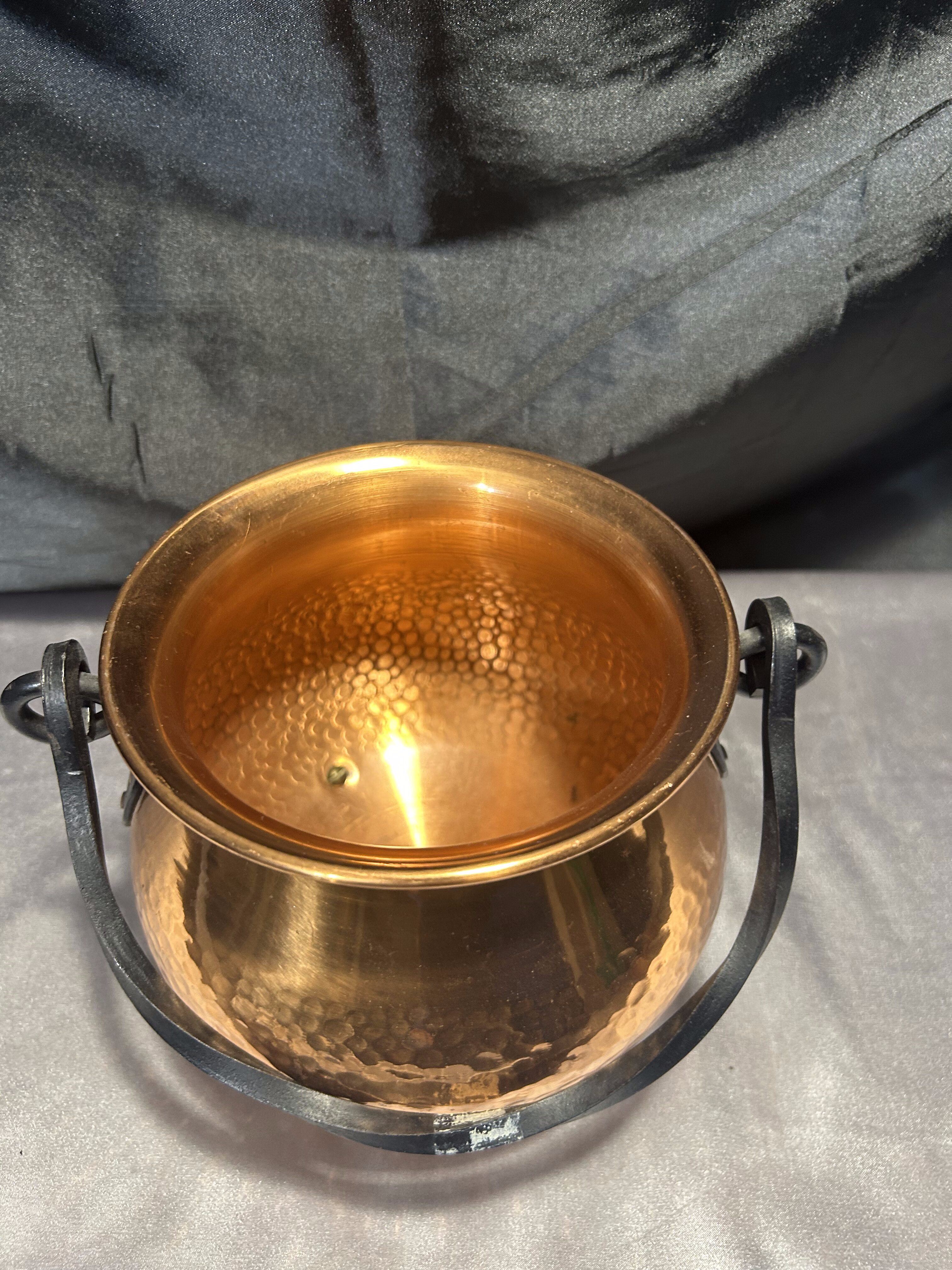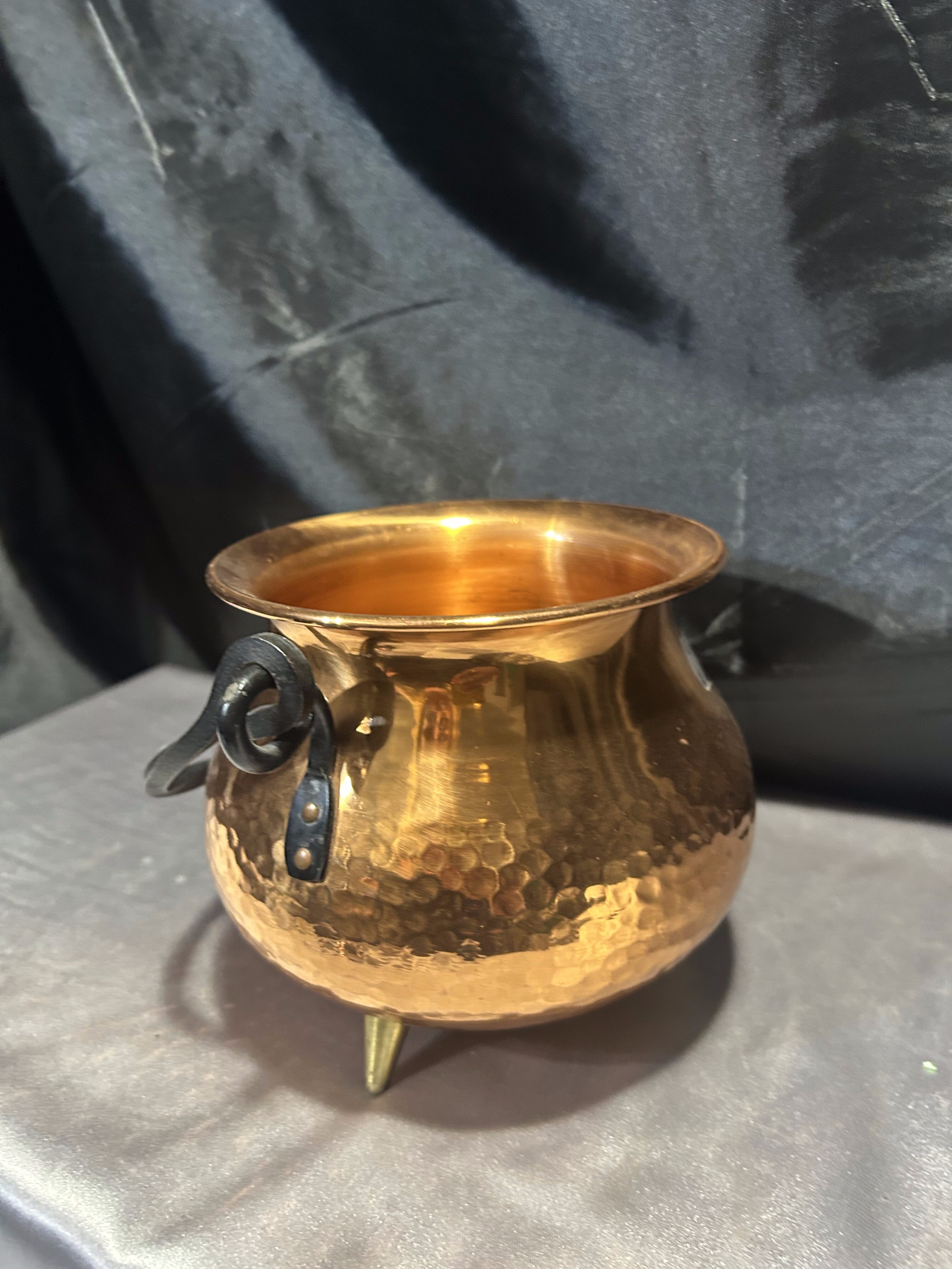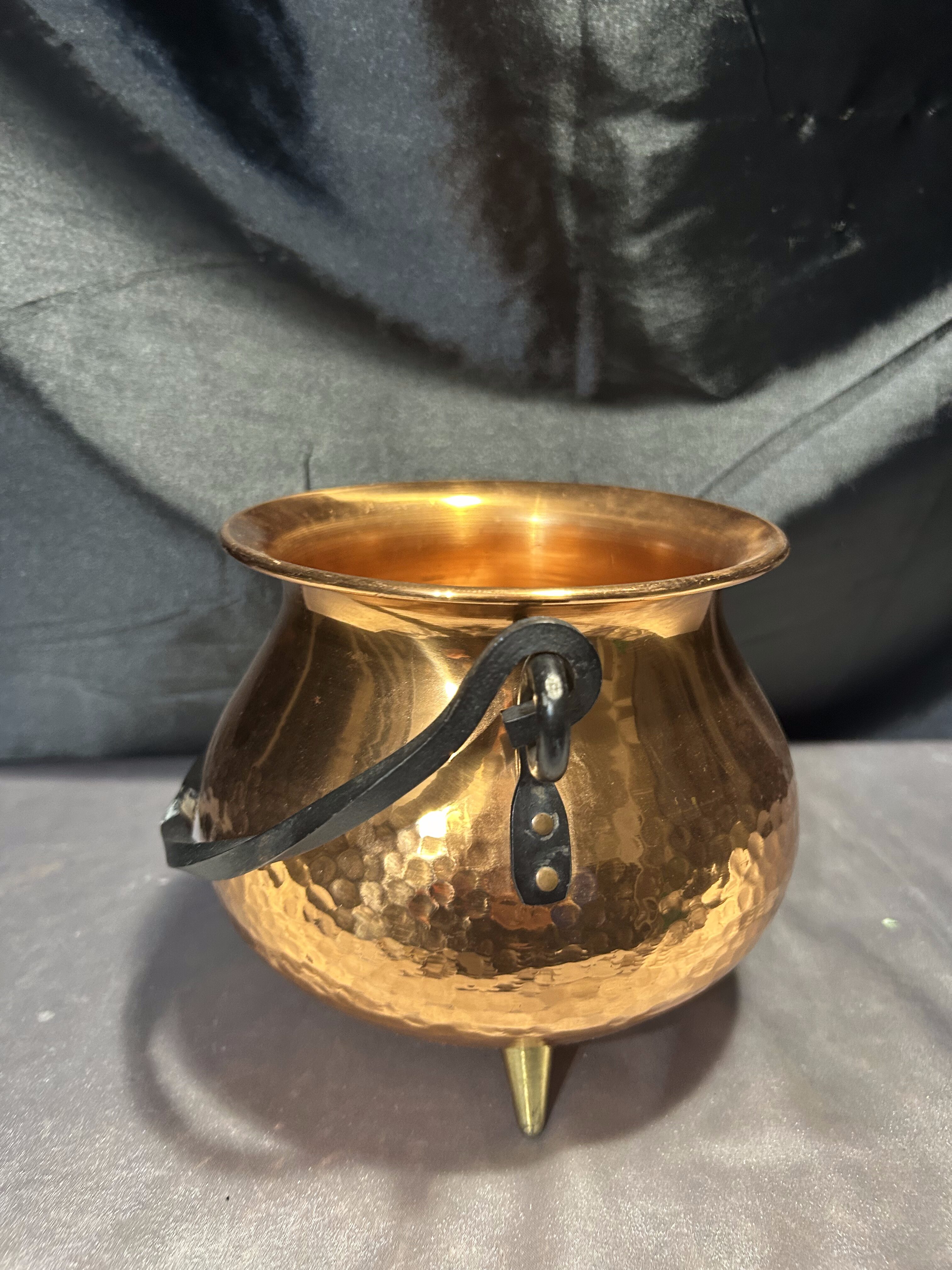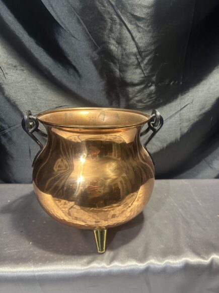 Miedziany „Kociołek Wiedźmy” – Kwietnik na Trzech Mosiężnych Nogach – Styl Magiczny