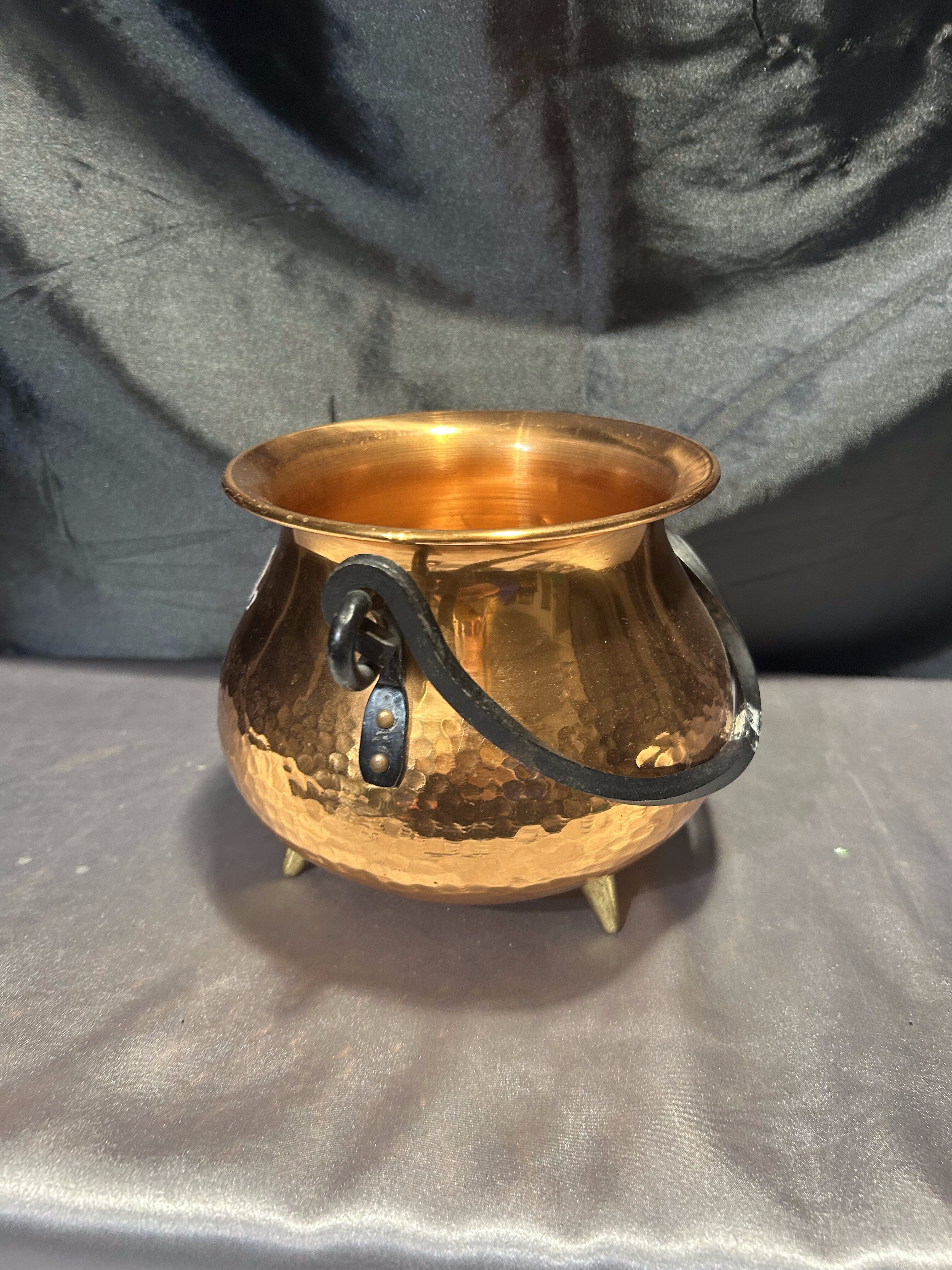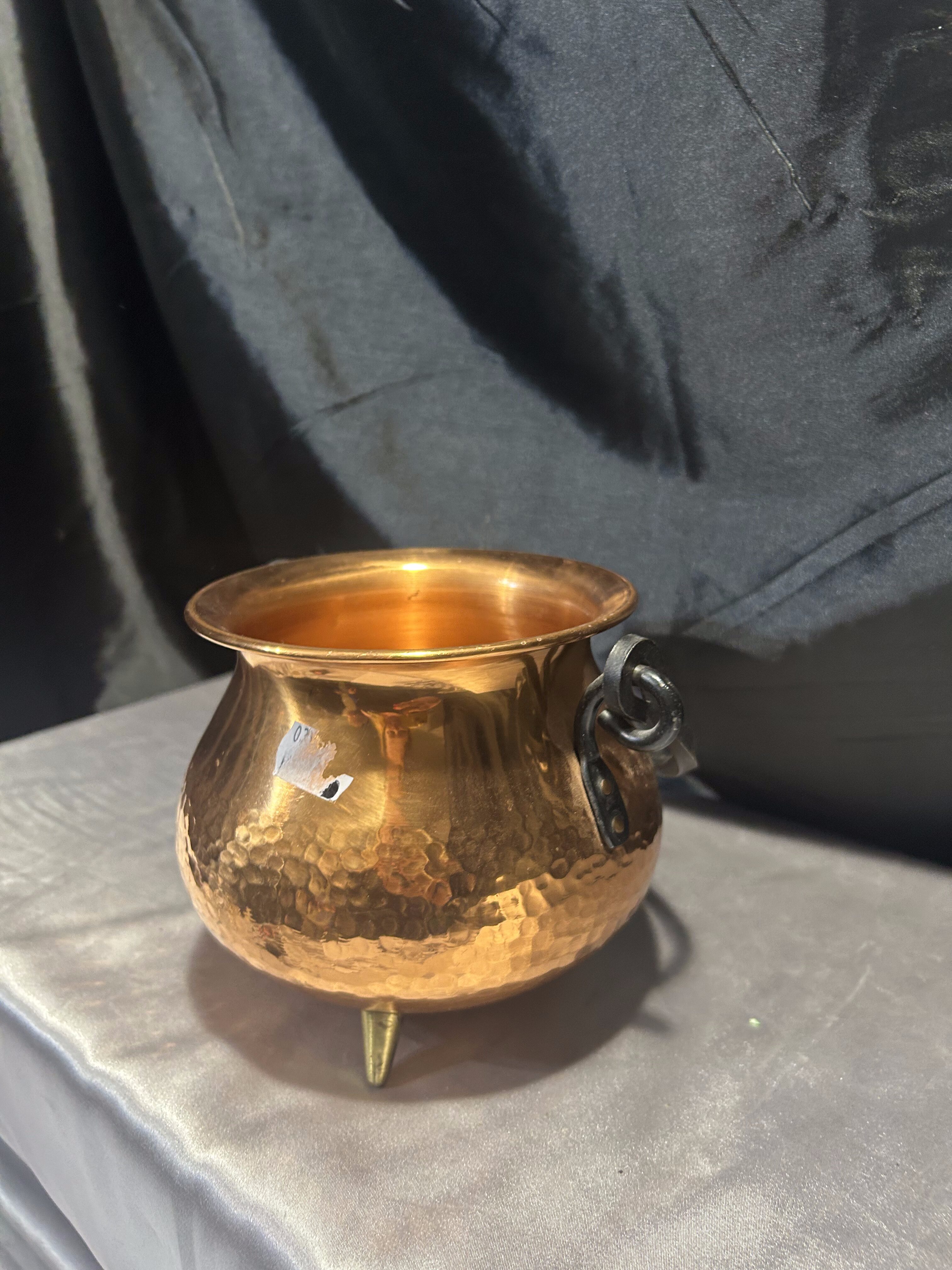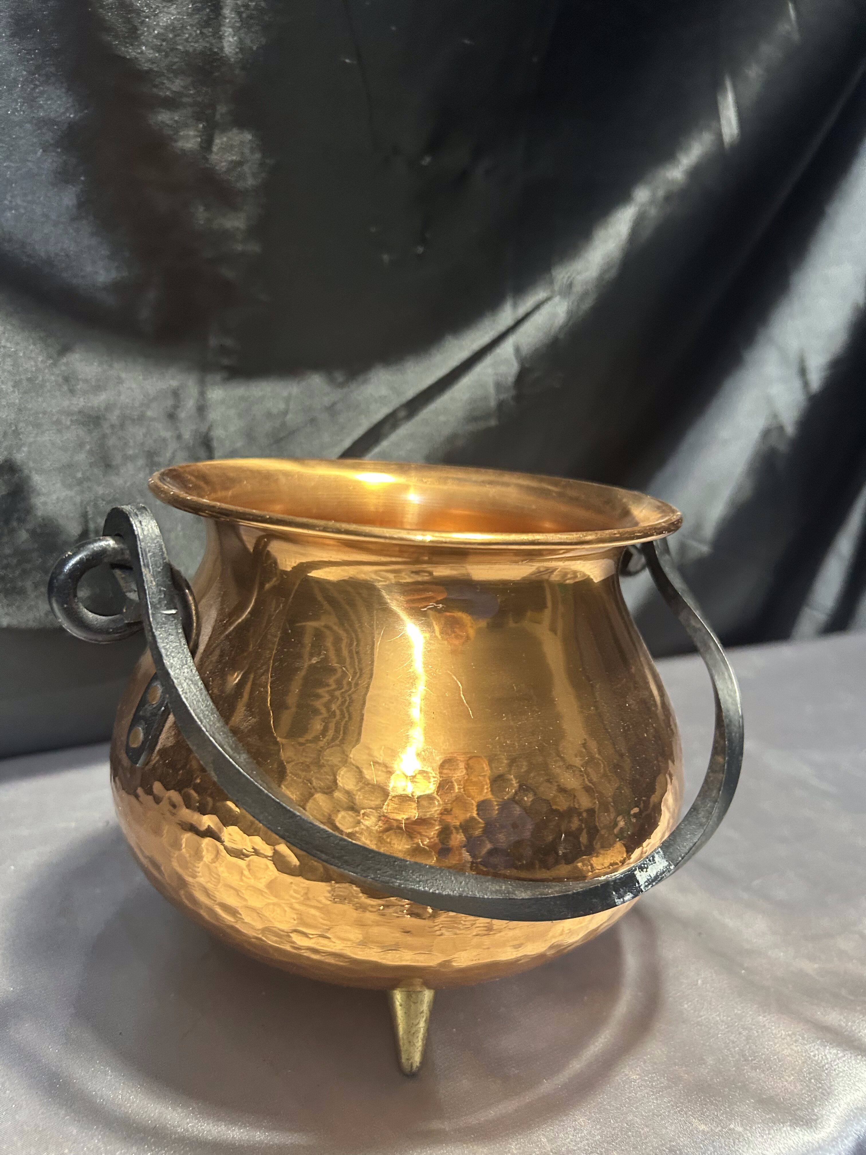 Miedziany „Kociołek Wiedźmy” – Kwietnik na Trzech Mosiężnych Nogach – Styl Magiczny