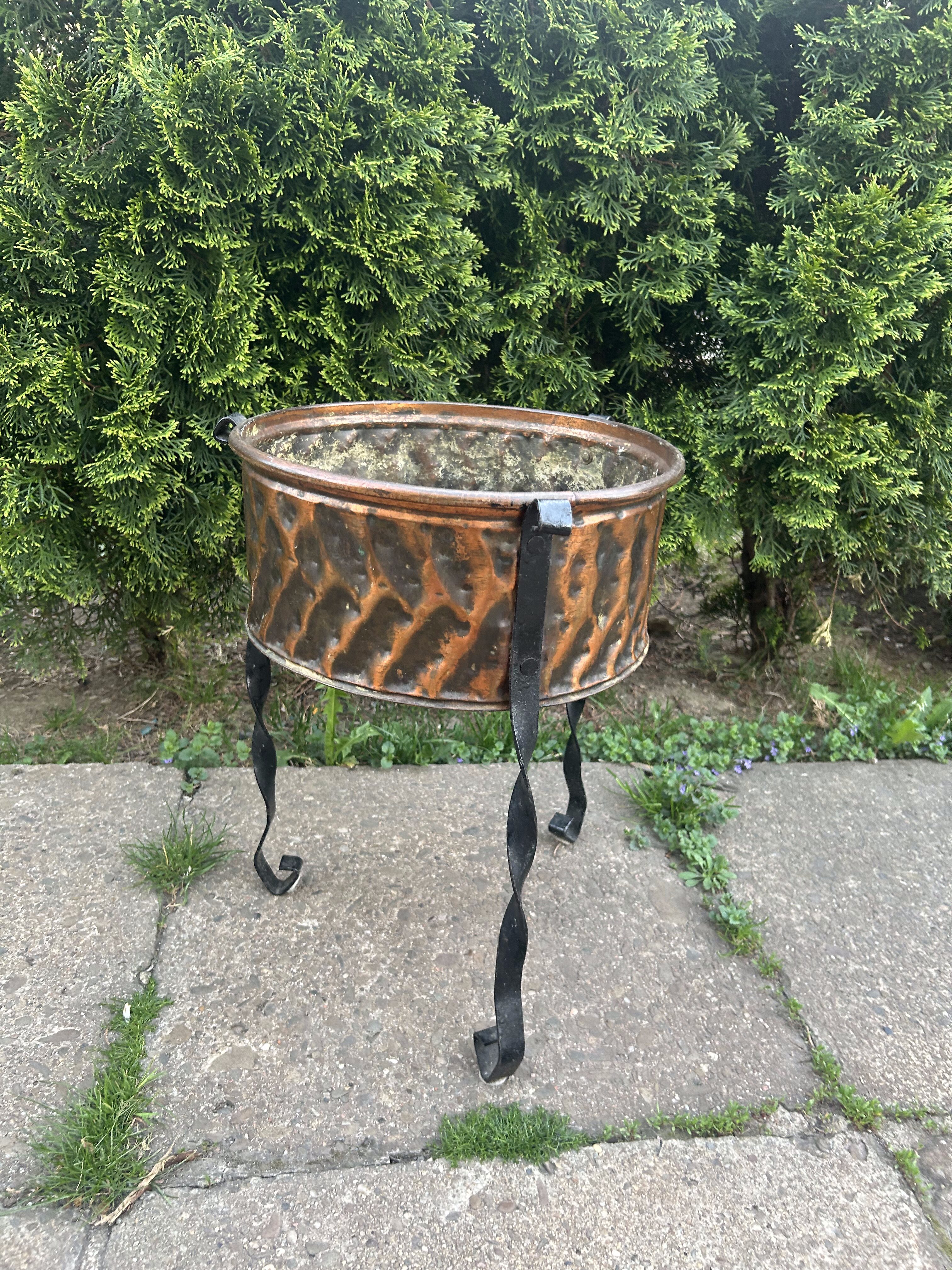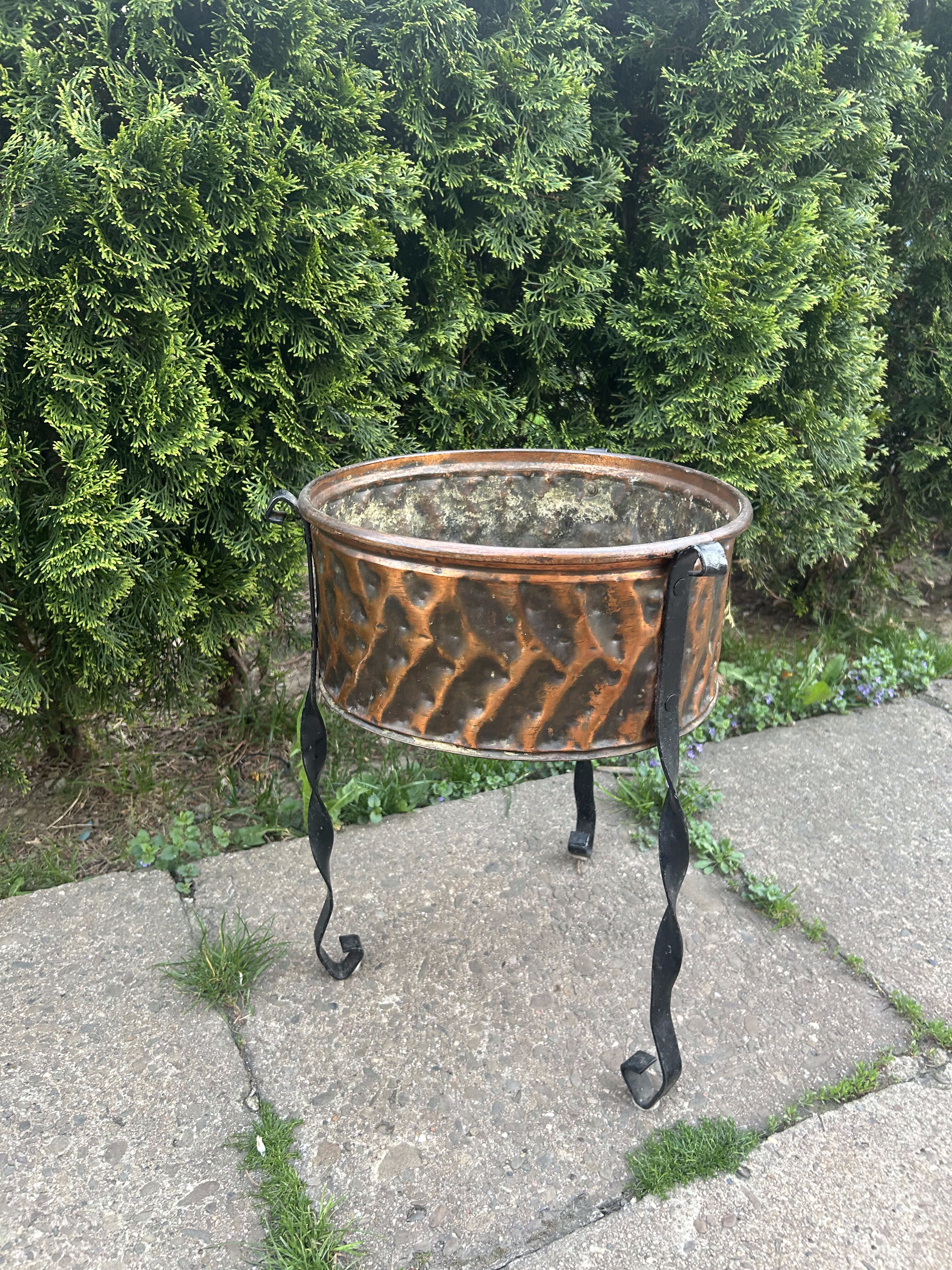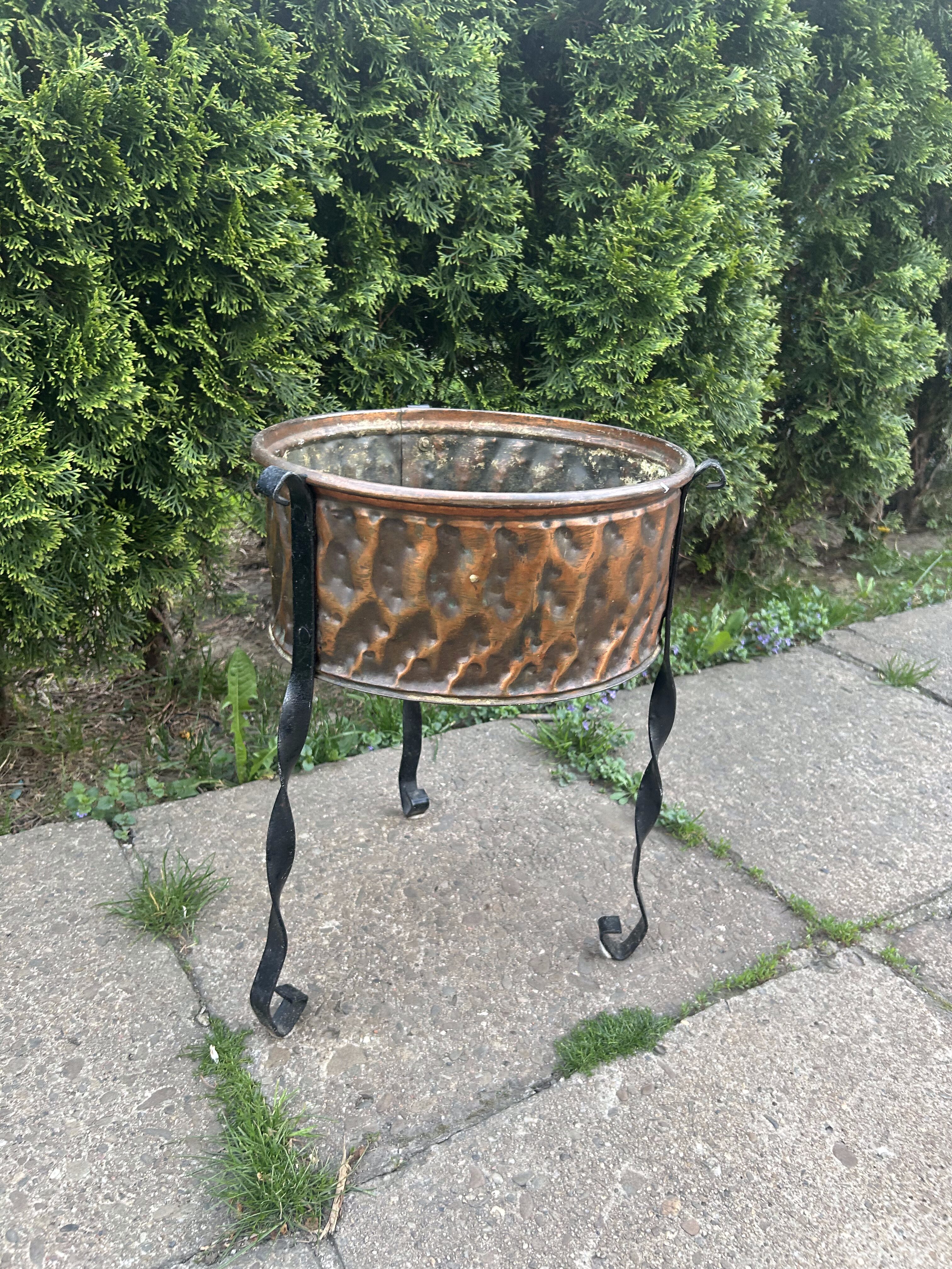 Miedziany kwietnik na kutych nogach – styl rustykalny