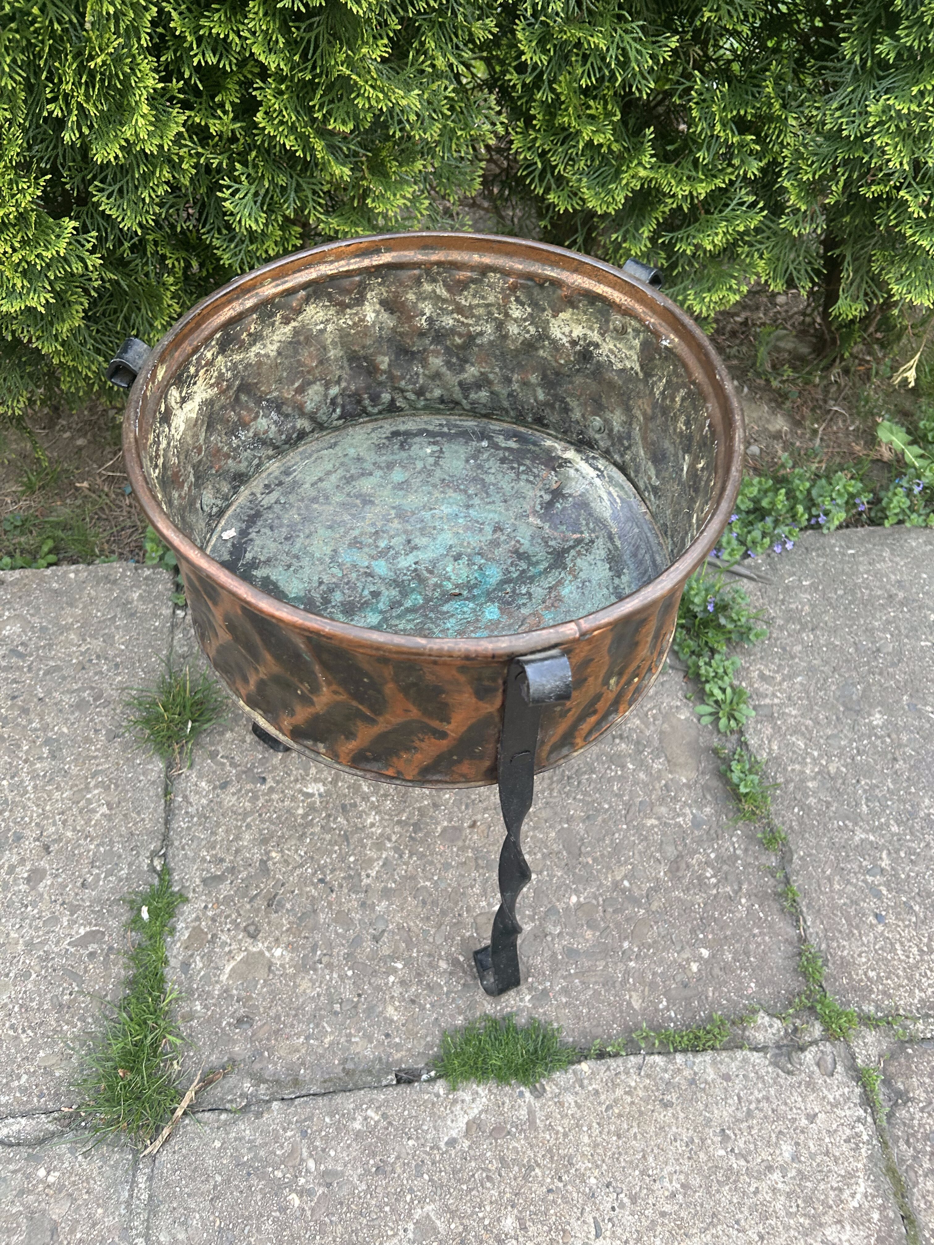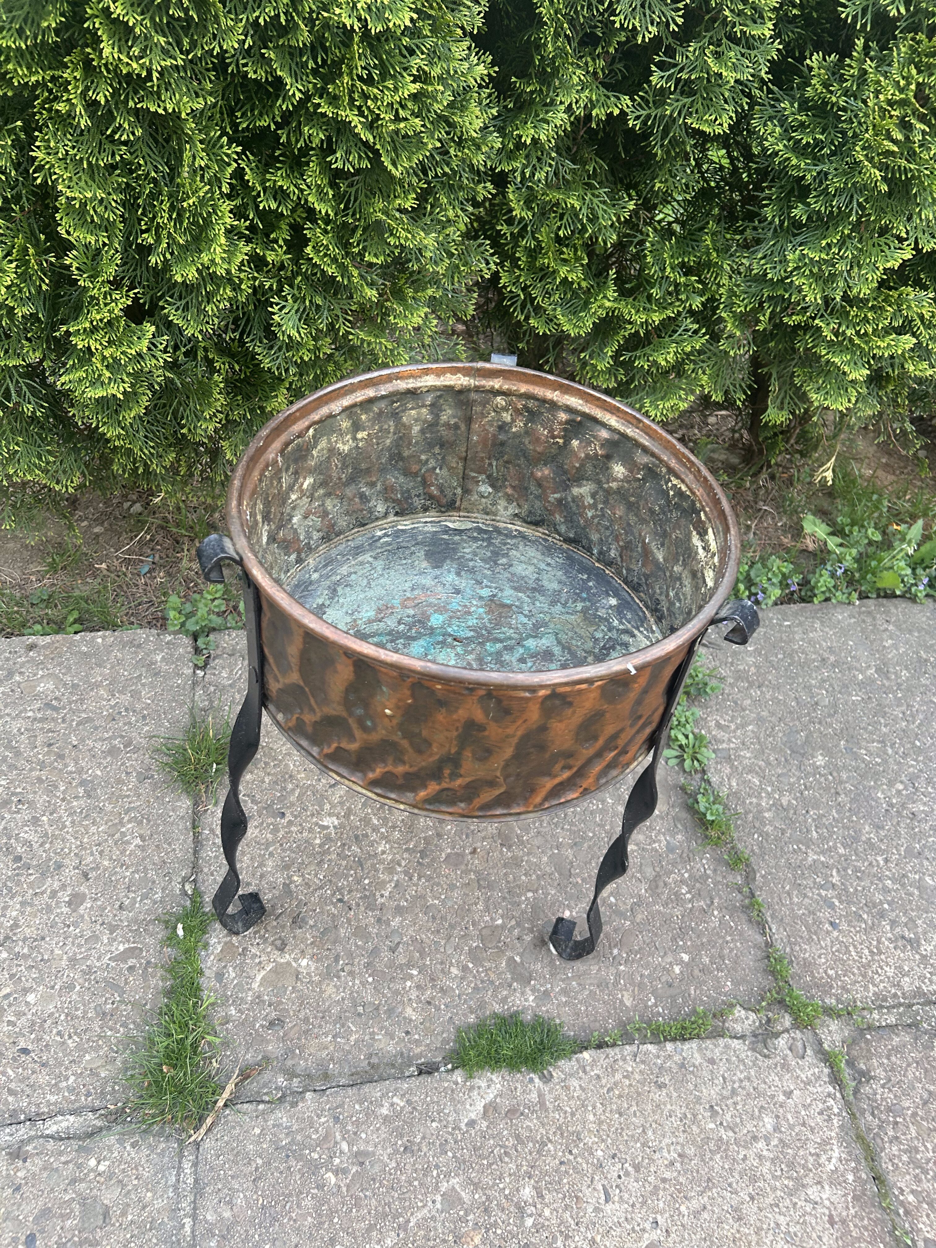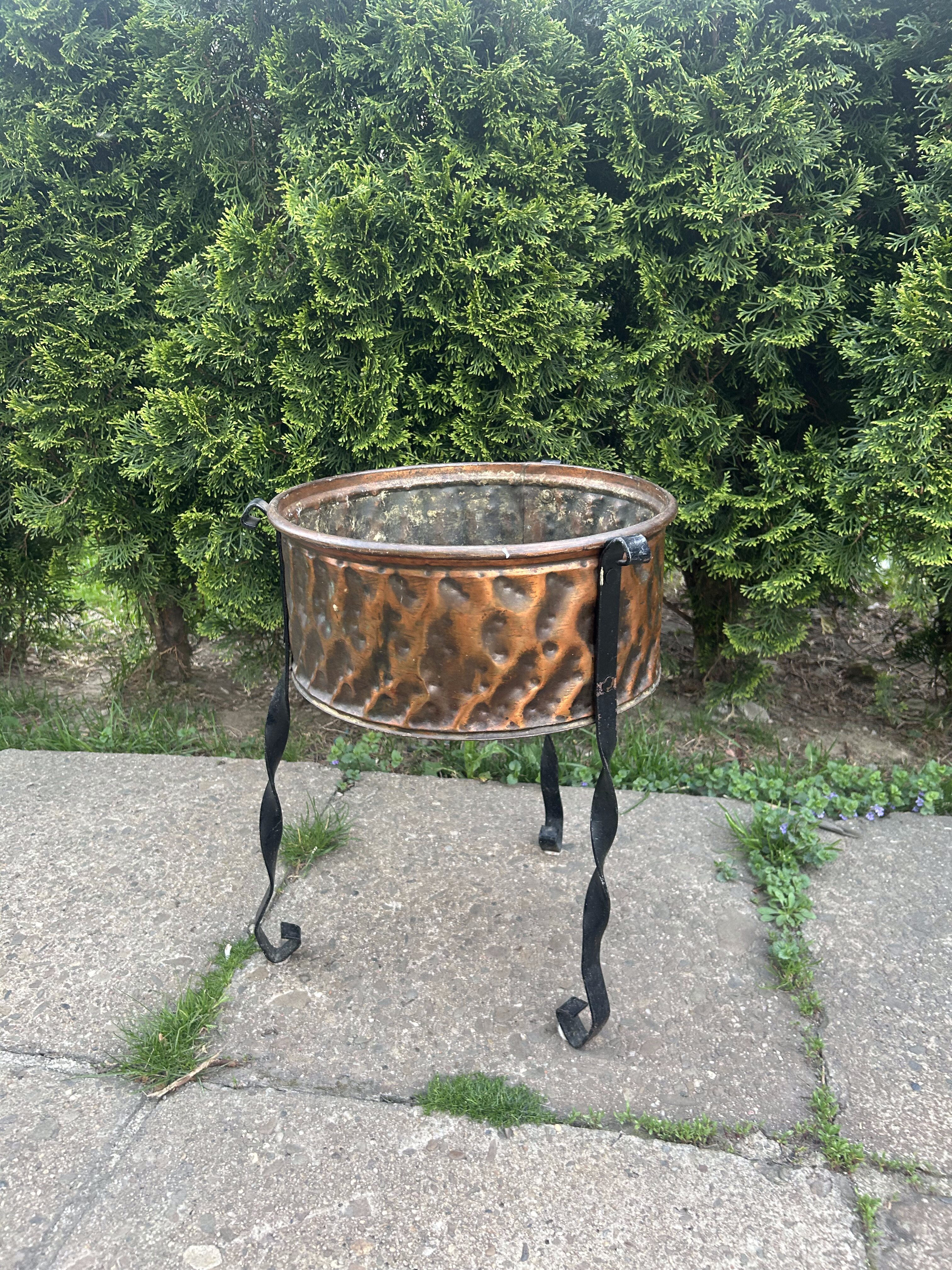 Miedziany kwietnik na kutych nogach – styl rustykalny