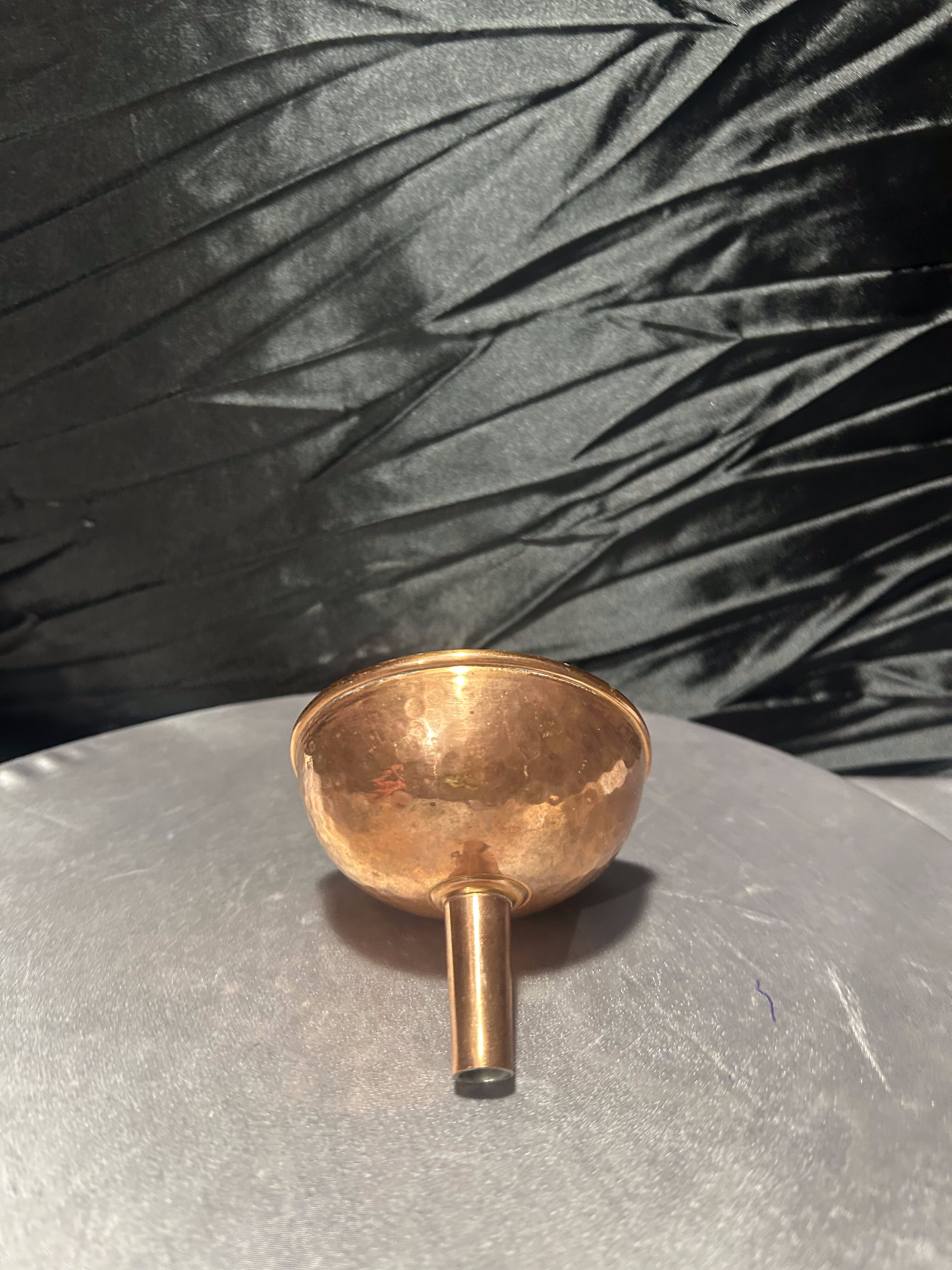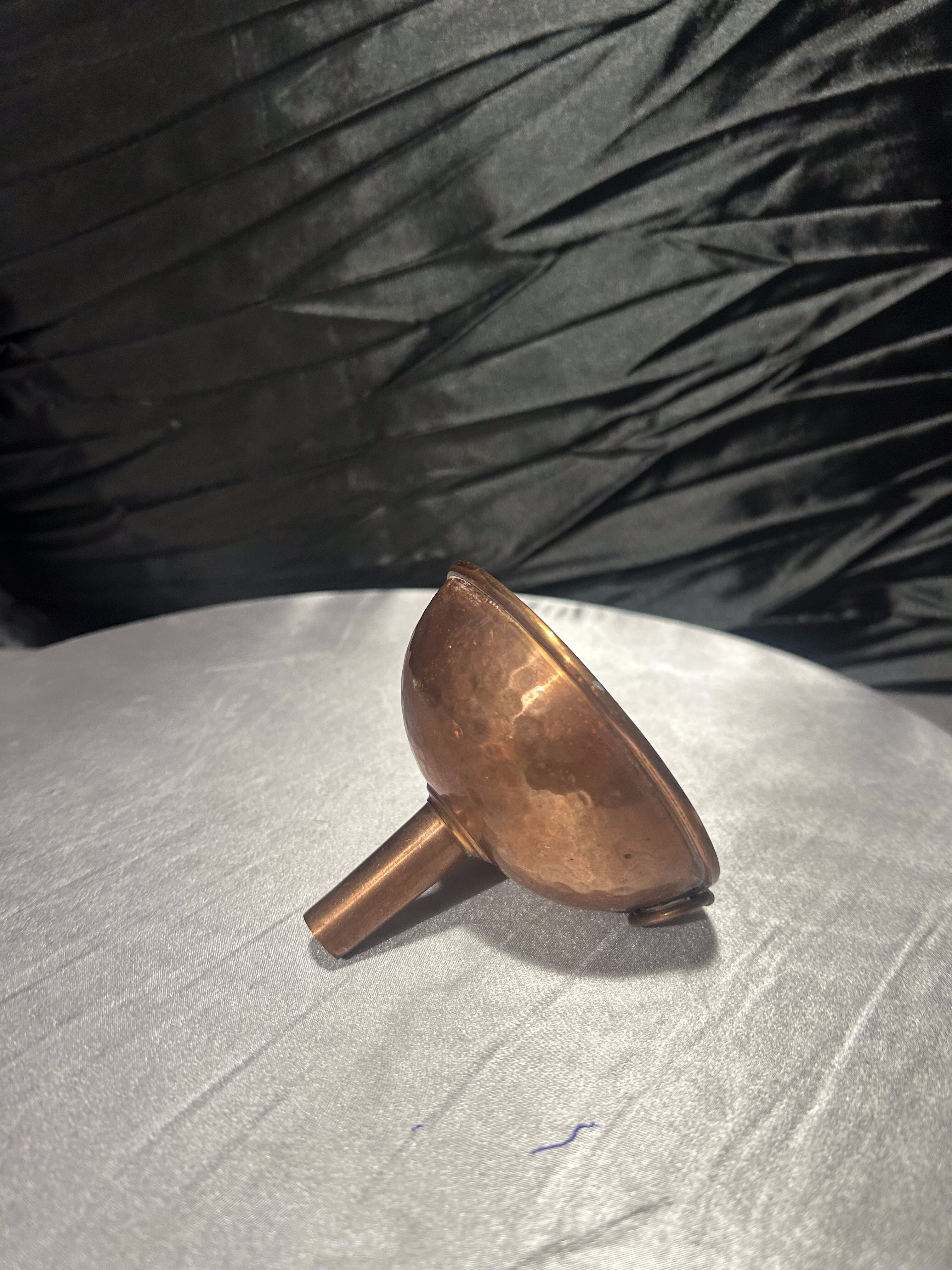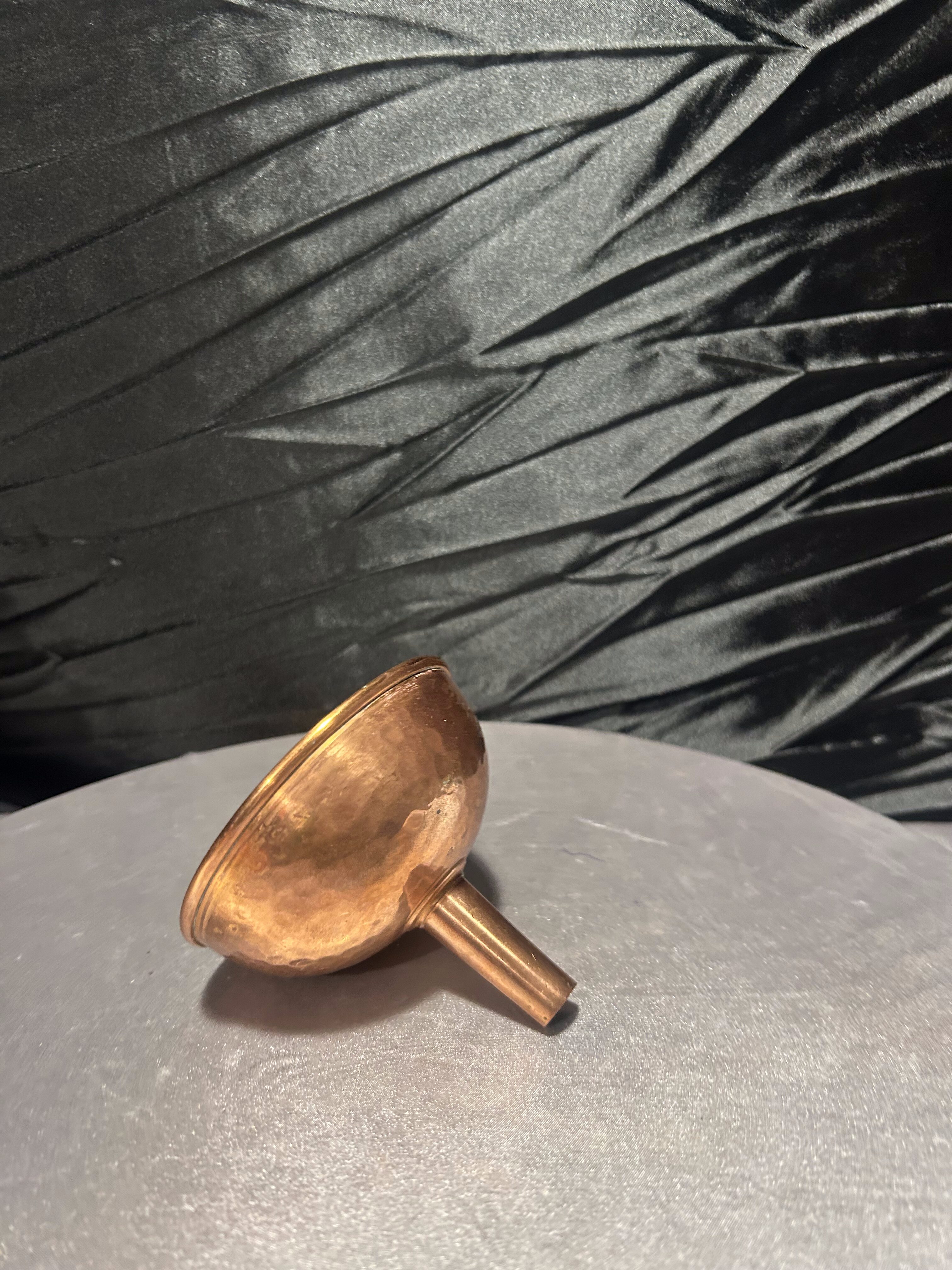 Stylowy lejek z miedzi, wykonany w tradycyjnej technice młotkowania. Połączenie funkcjonalności i elegancji vintage, które sprawia, że doskonale odnajdzie się zarówno w codziennym użytku, jak i jako dekoracyjny akcent w kuchni.