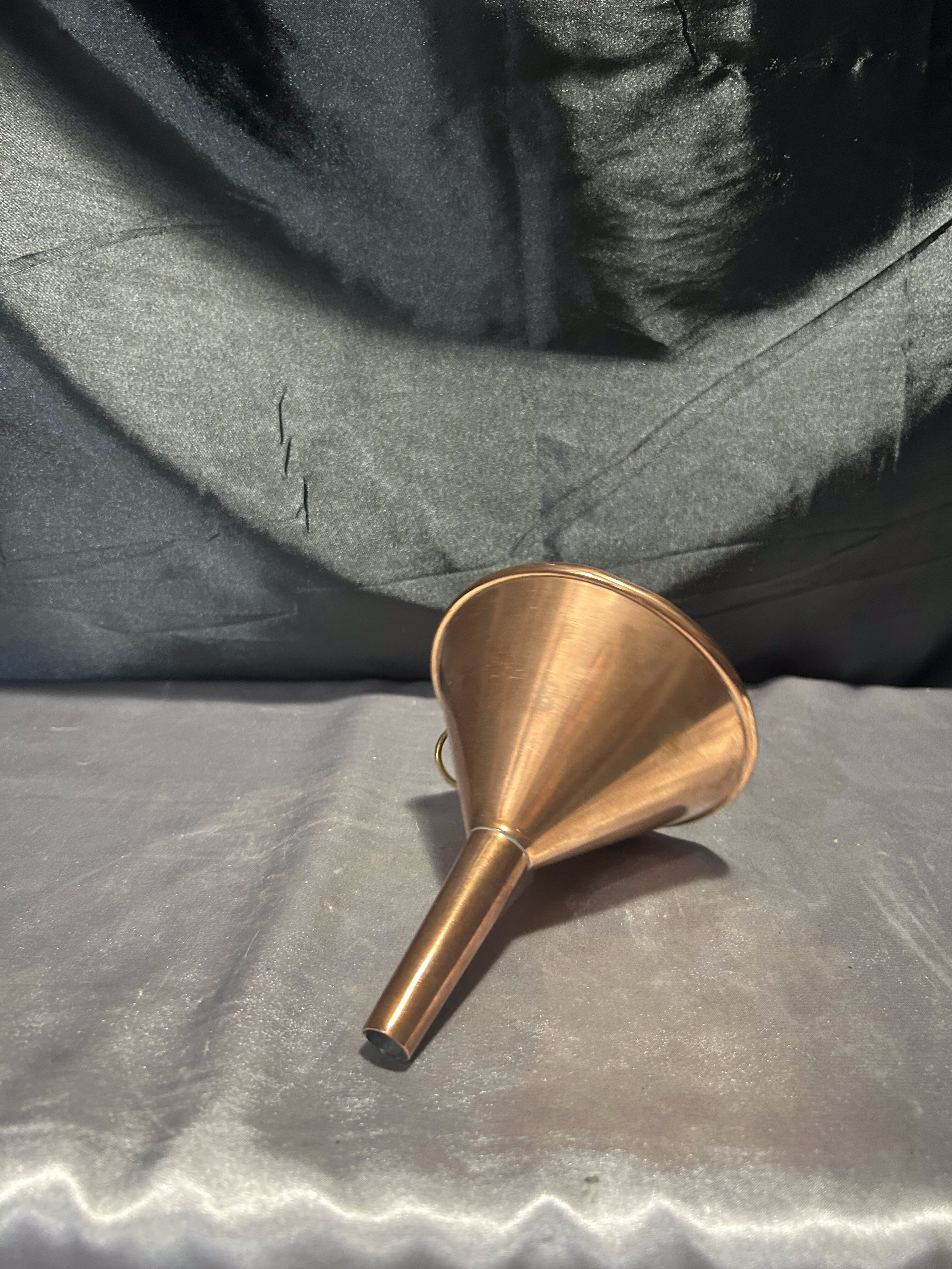 Praktyczny i dekoracyjny lejek kuchenny wykonany z miedzi, zachowany w klasycznej formie z rozszerzaną czaszą i prostą szyjką. Wyposażony w funkcjonalne oczko umożliwiające wygodne zawieszenie – dzięki czemu doskonale sprawdzi się zarówno jako narzędzie użytkowe, jak i stylowa dekoracja kuchni w stylu rustykalnym, prowansalskim lub retro.