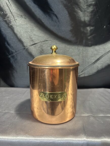 Pojemnik kuchenny miedziany – Z napisem SUKKER – Skandynawski styl vintage