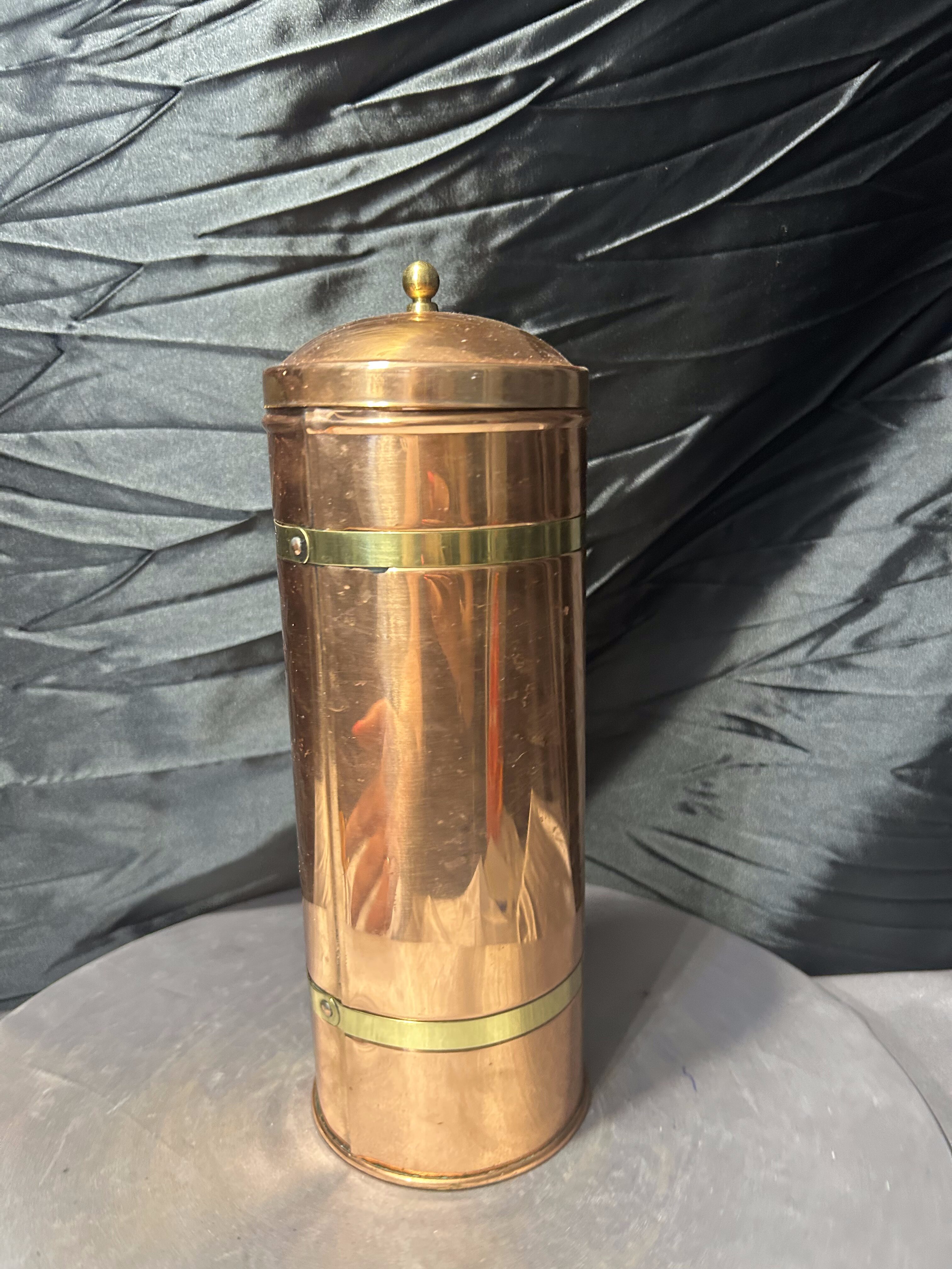Elegancki, wysoki pojemnik kuchenny wykonany z miedzi, przeznaczony do przechowywania makaronu spaghetti. Prosta, klasyczna forma w połączeniu z naturalnym blaskiem miedzi sprawia, że przedmiot pełni zarówno funkcję praktyczną, jak i dekoracyjną. Idealny do kuchni w stylu vintage, klasycznym lub rustykalnym.