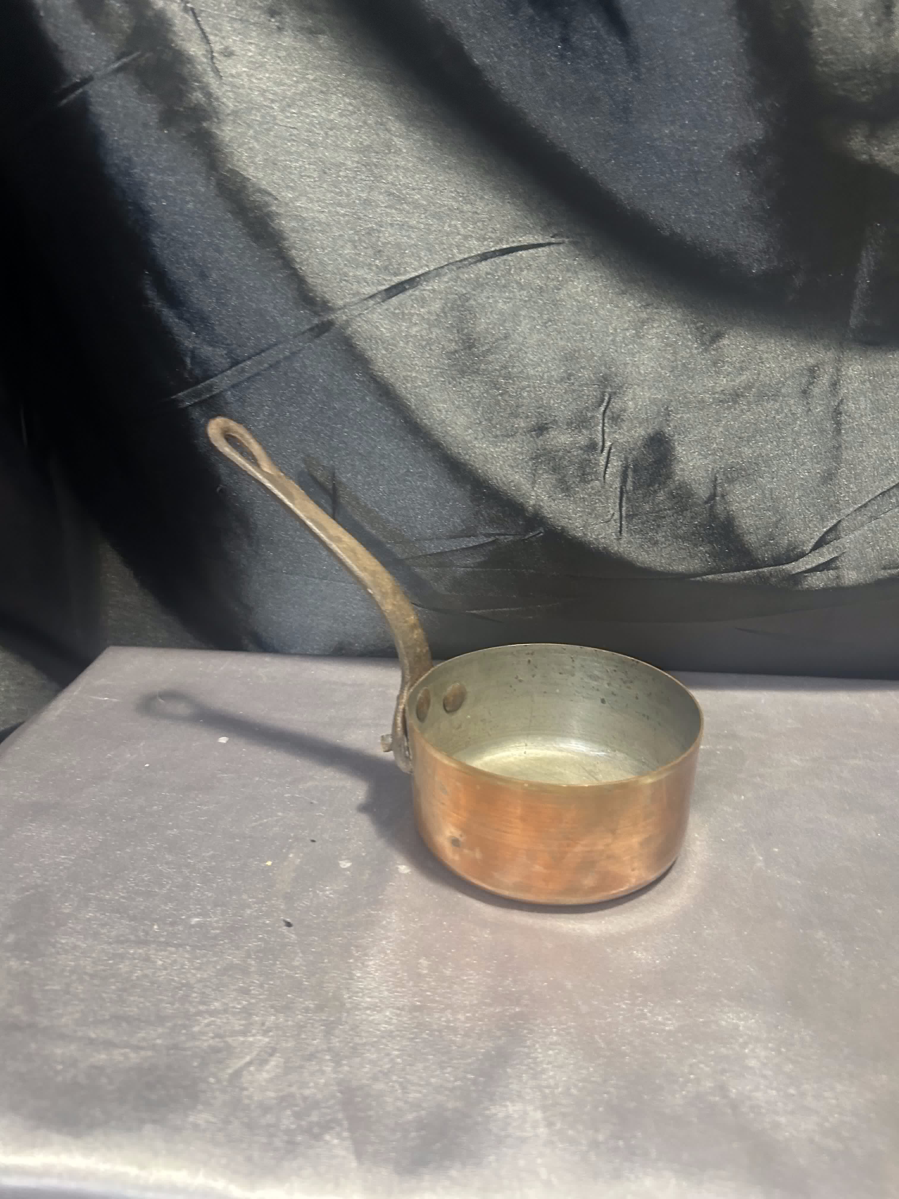 Materiał: miedź, stal (rączka kuta)