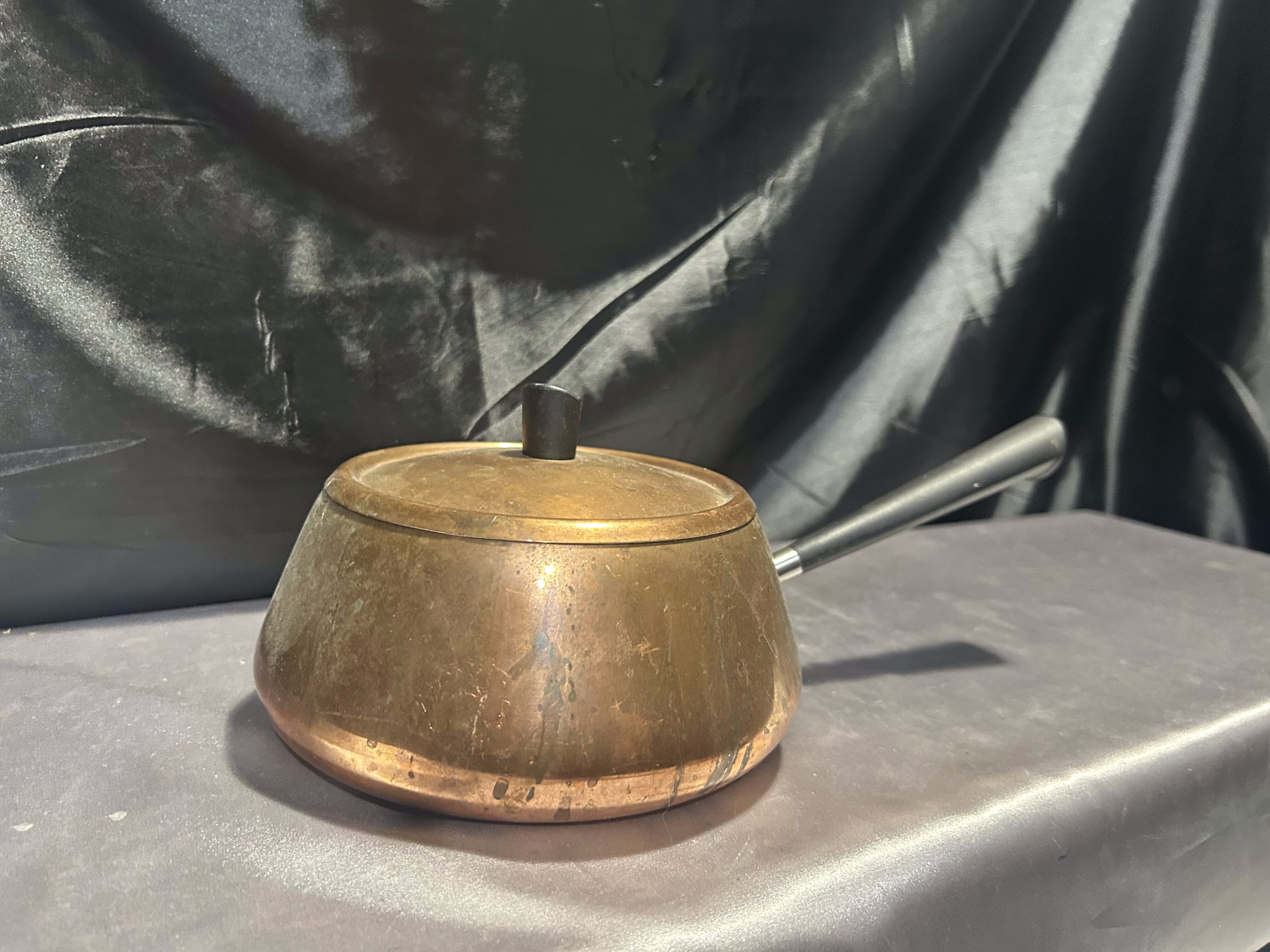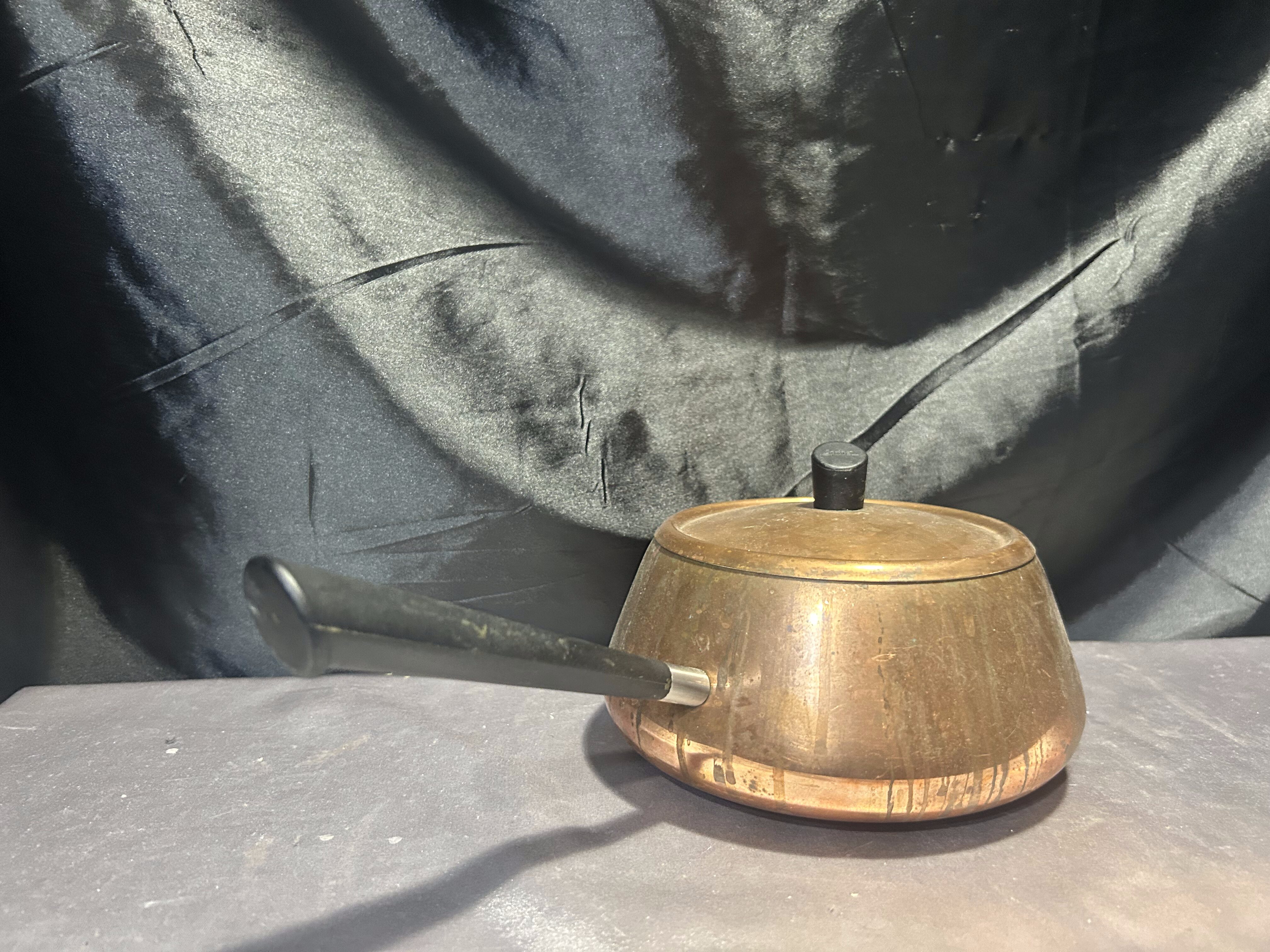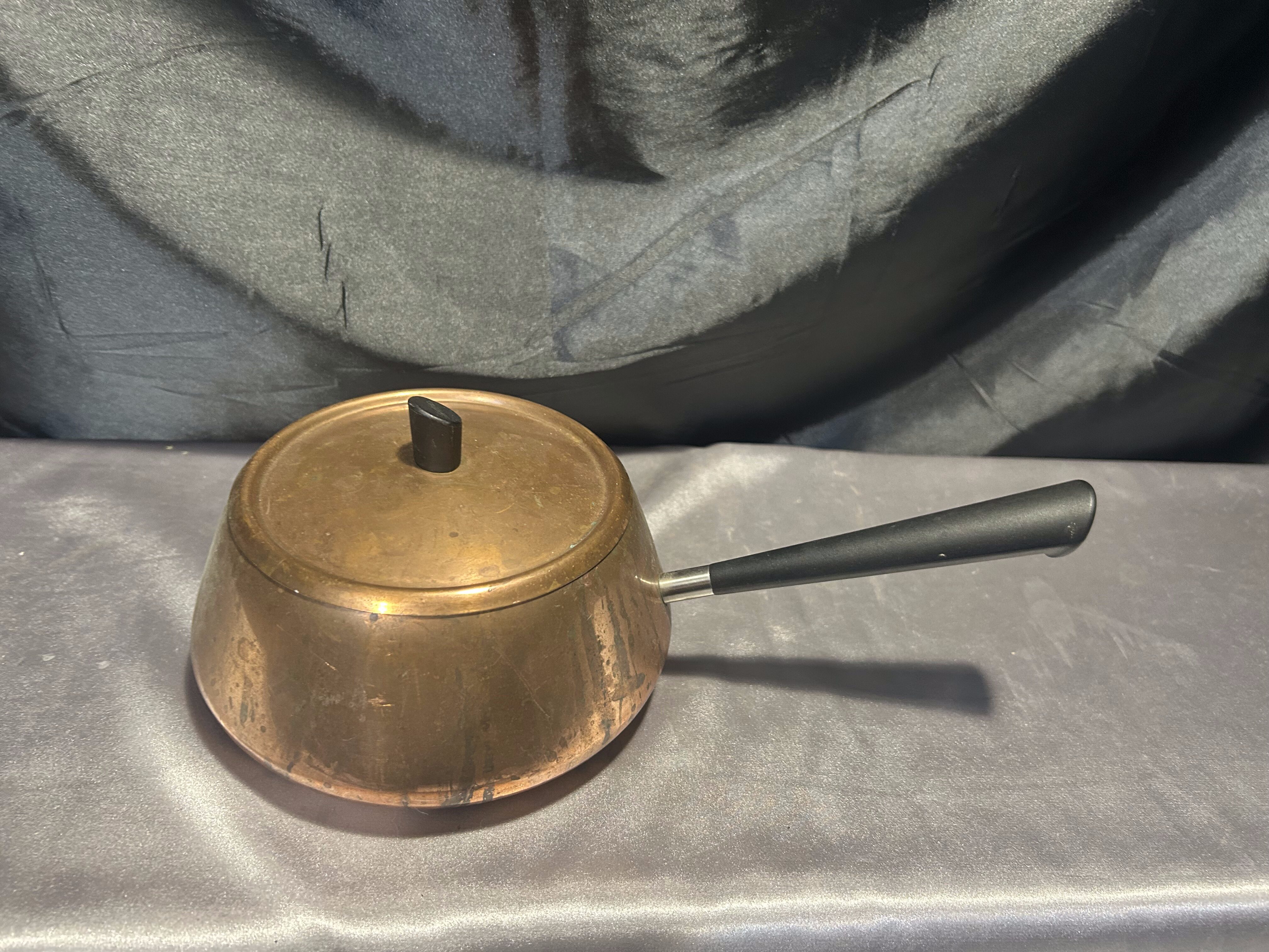 - Kolor: miedziany z czarnym wykończeniem rączki i uchwytu pokrywki
