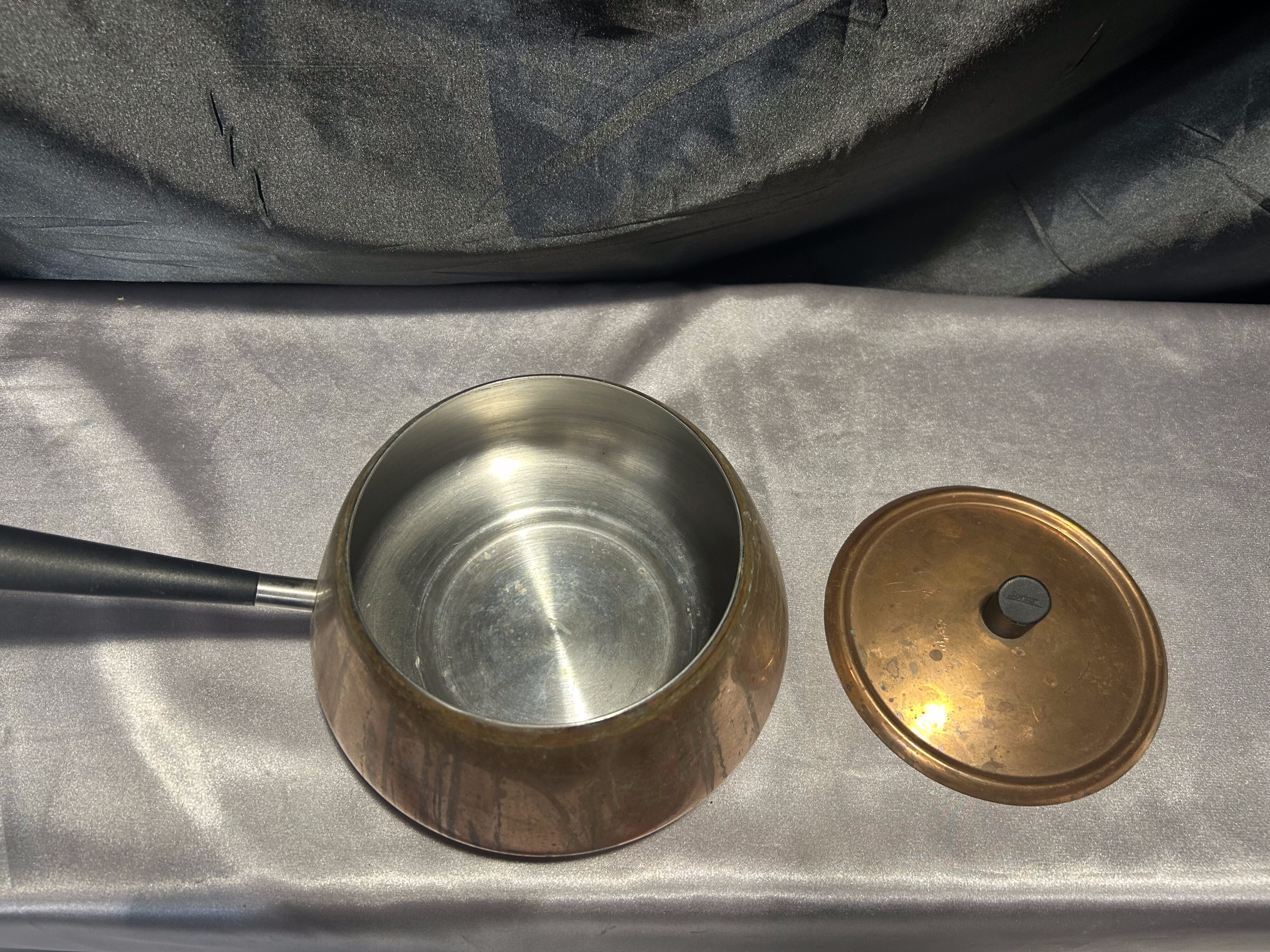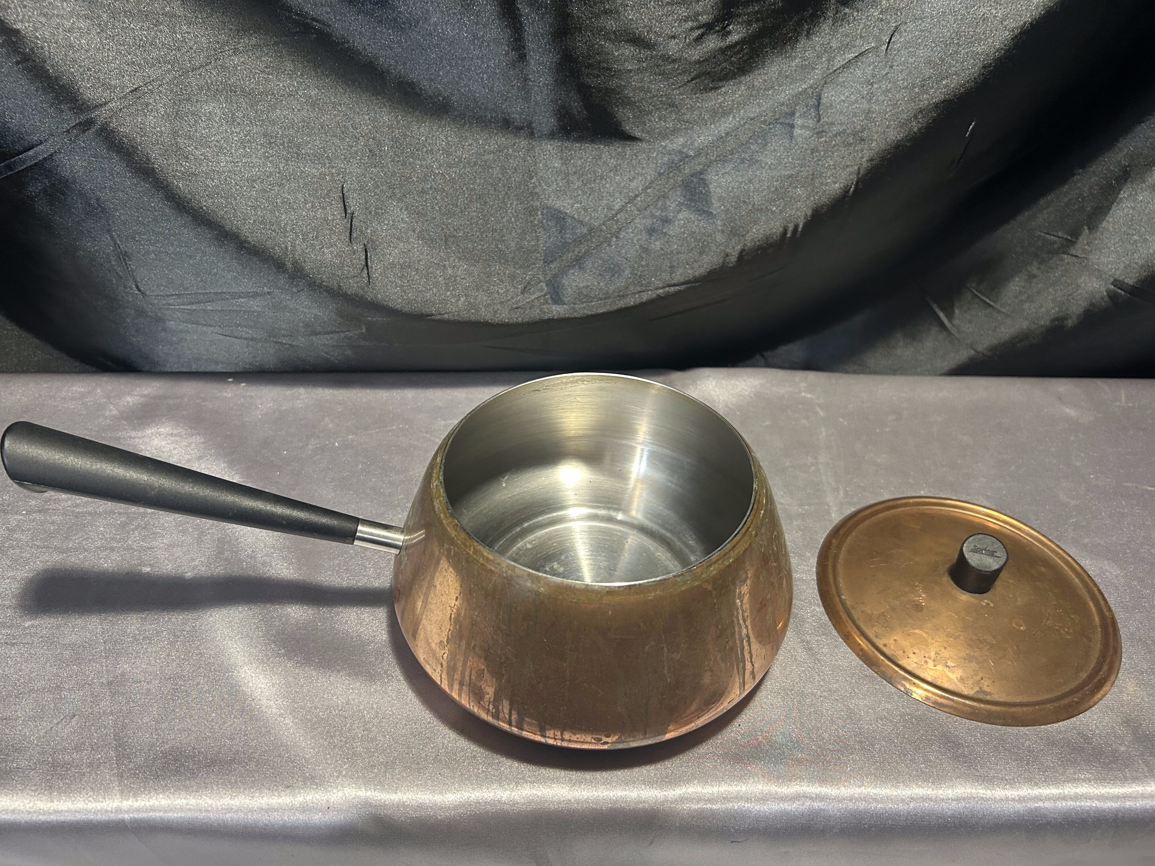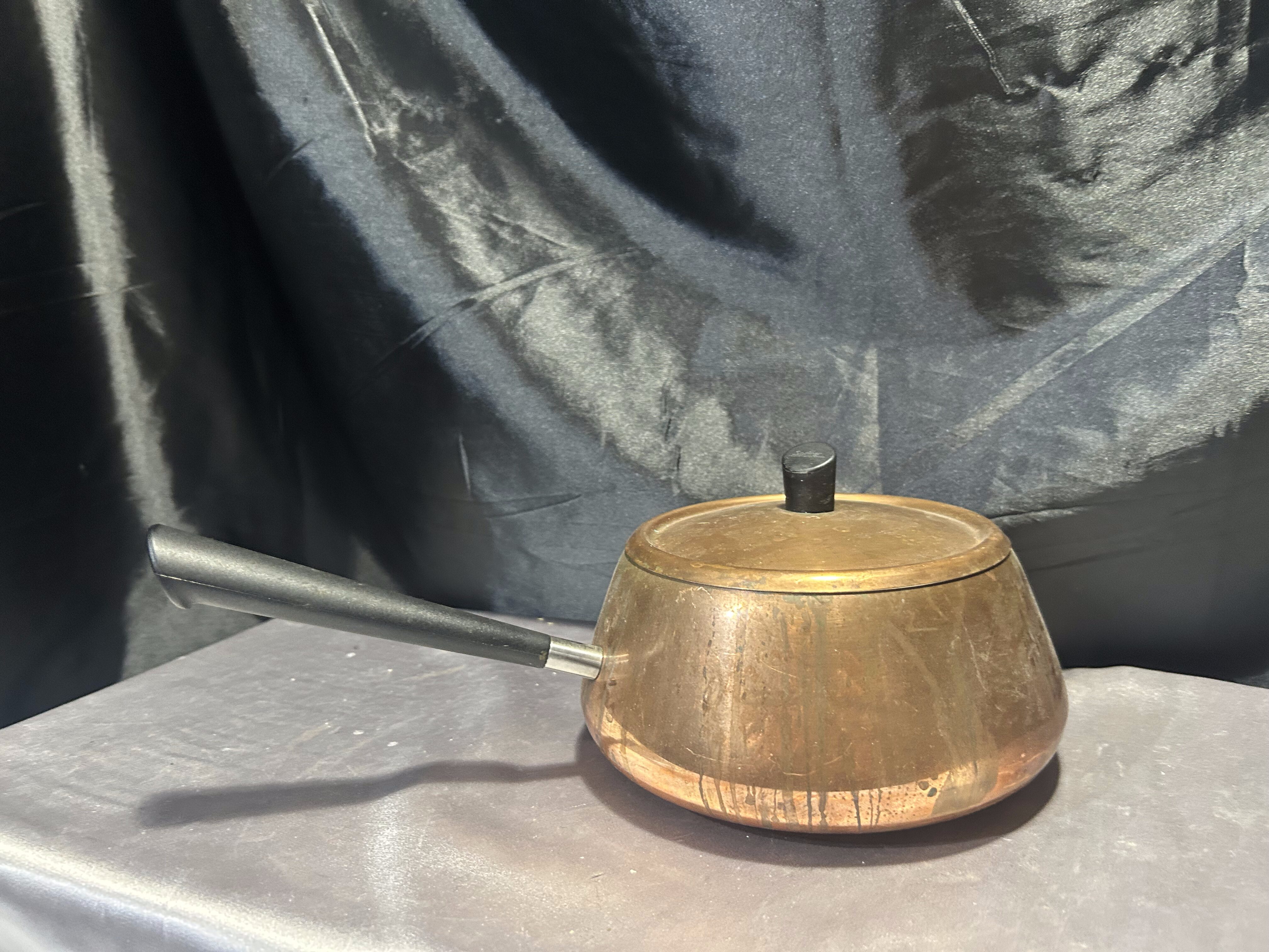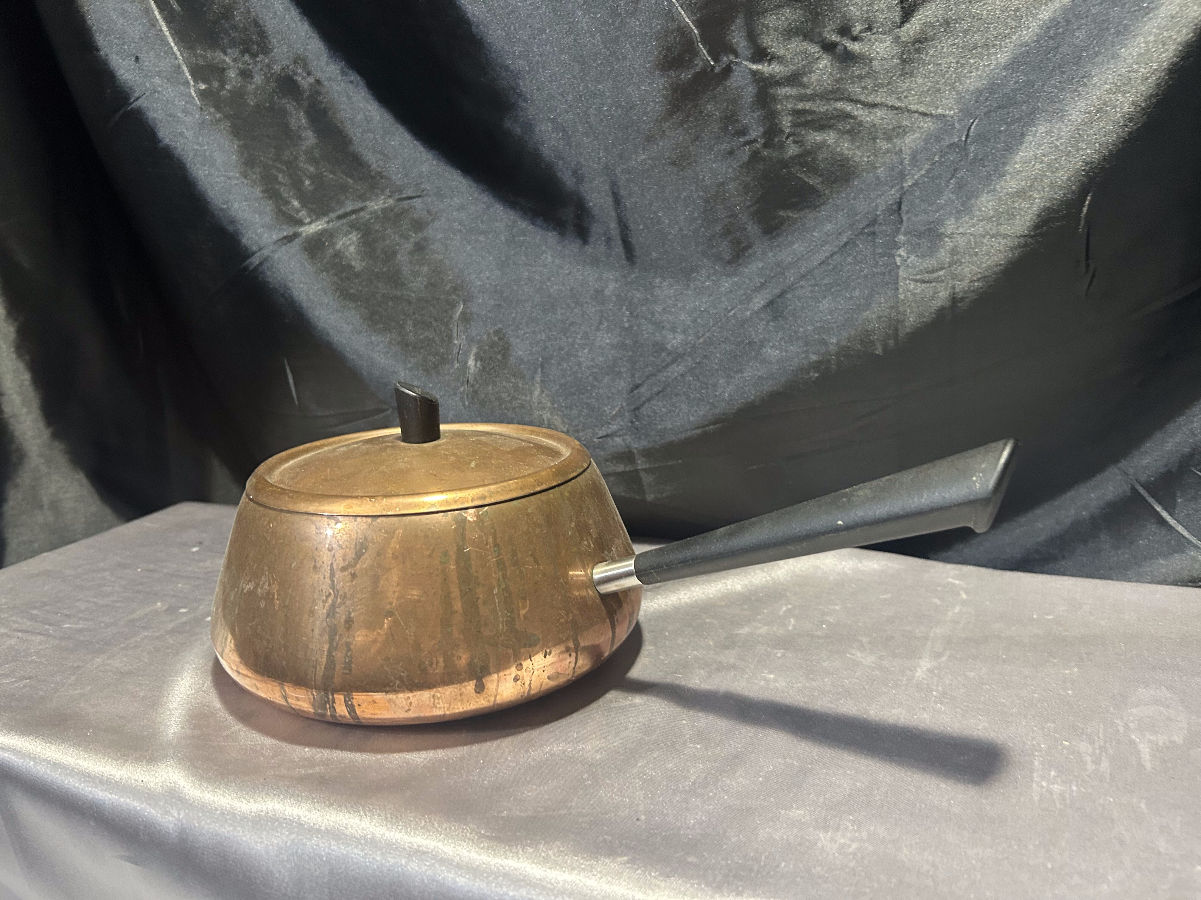 - Kolor: miedziany z czarnym wykończeniem rączki i uchwytu pokrywki
