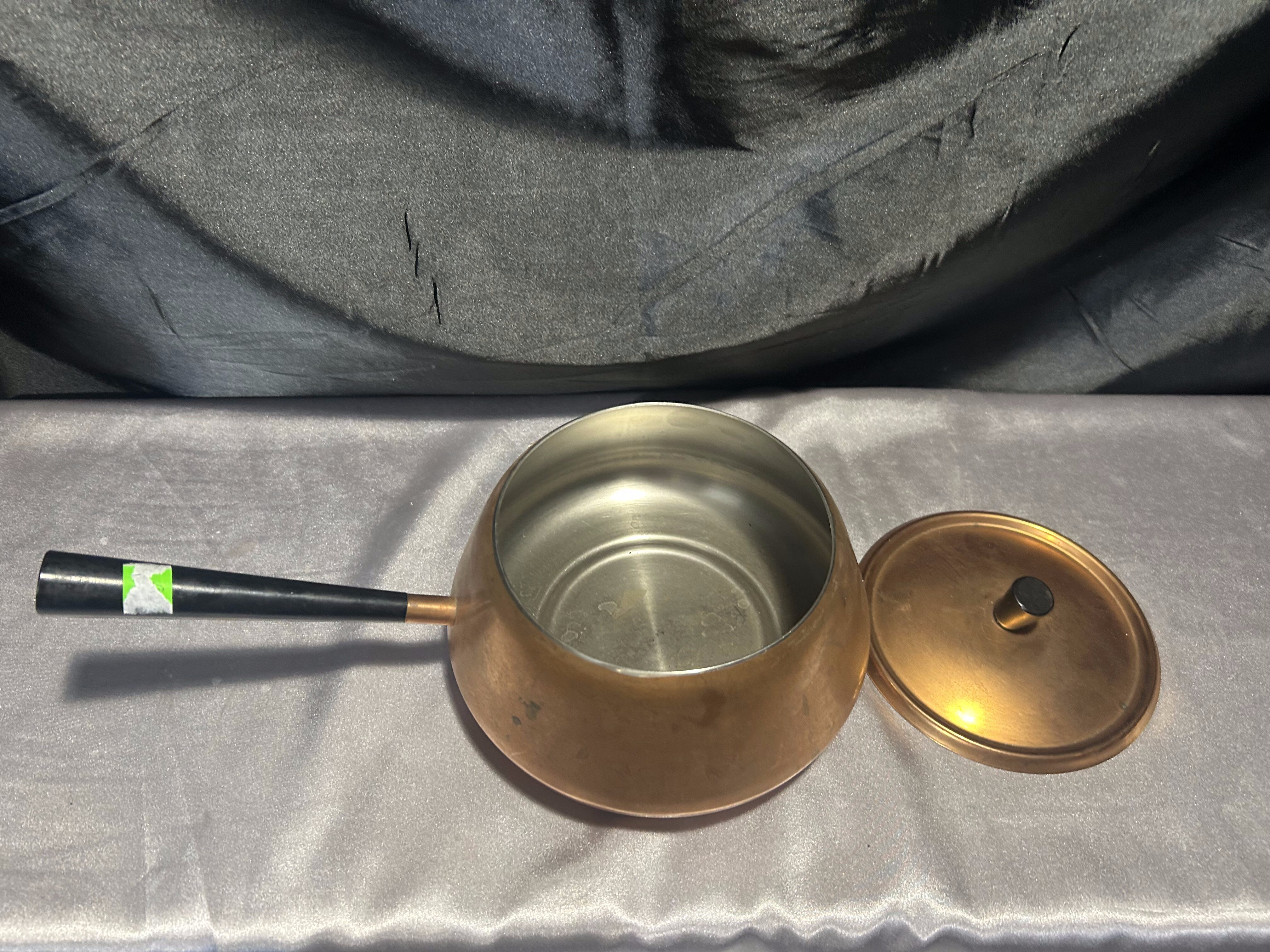 Miedziany Rondel z Pokrywką – Czarna Rączka, 1,5 Litra