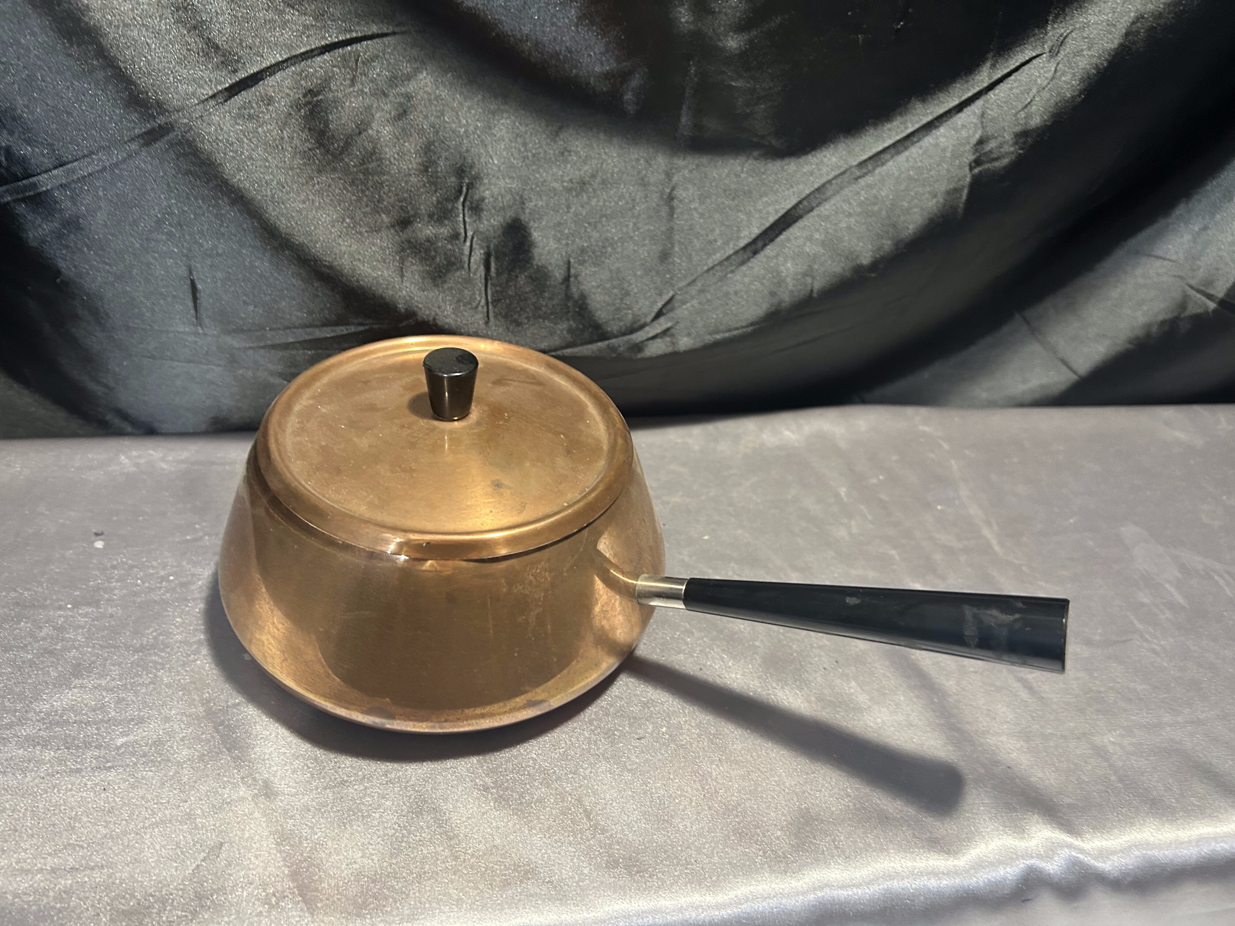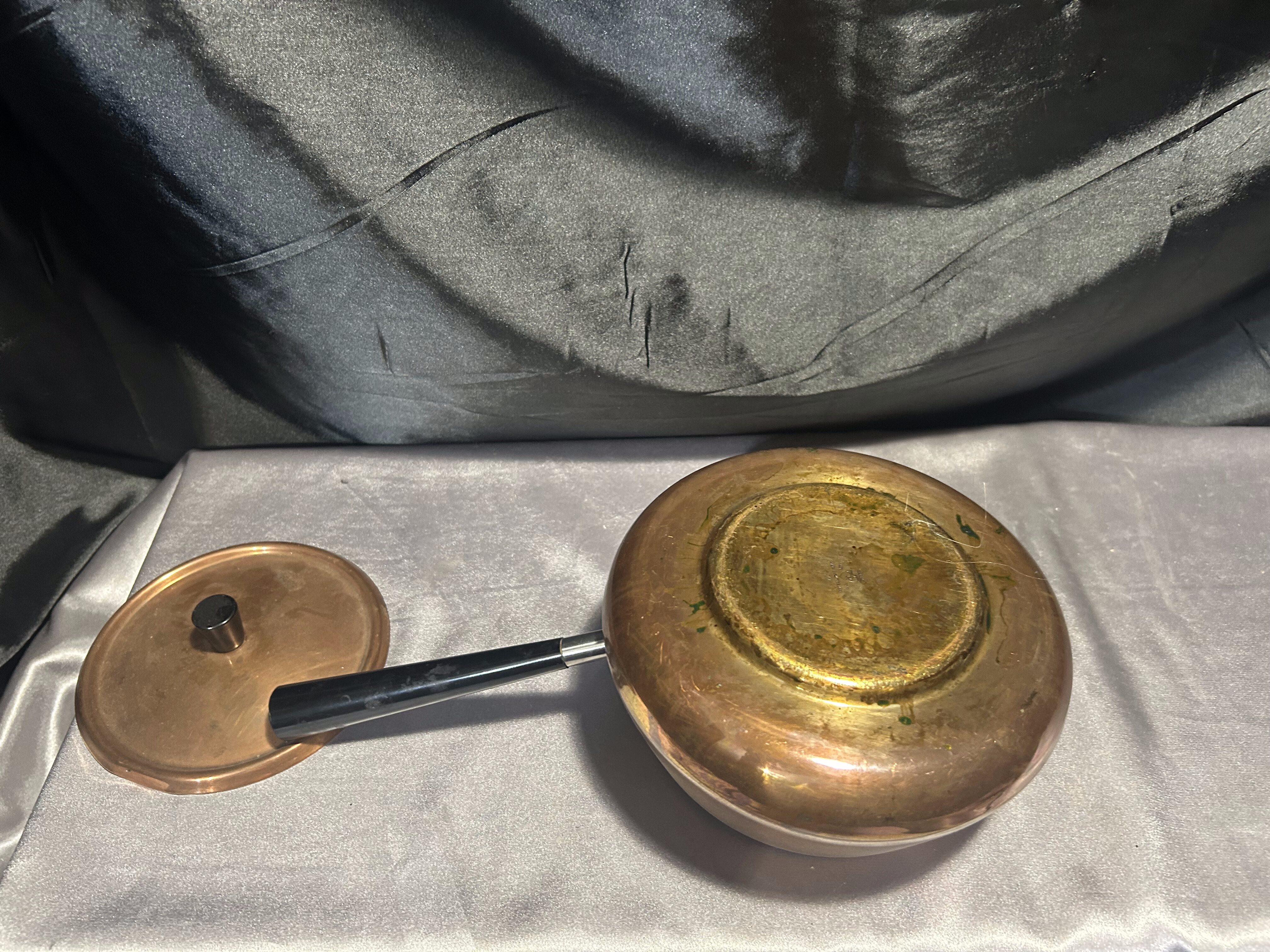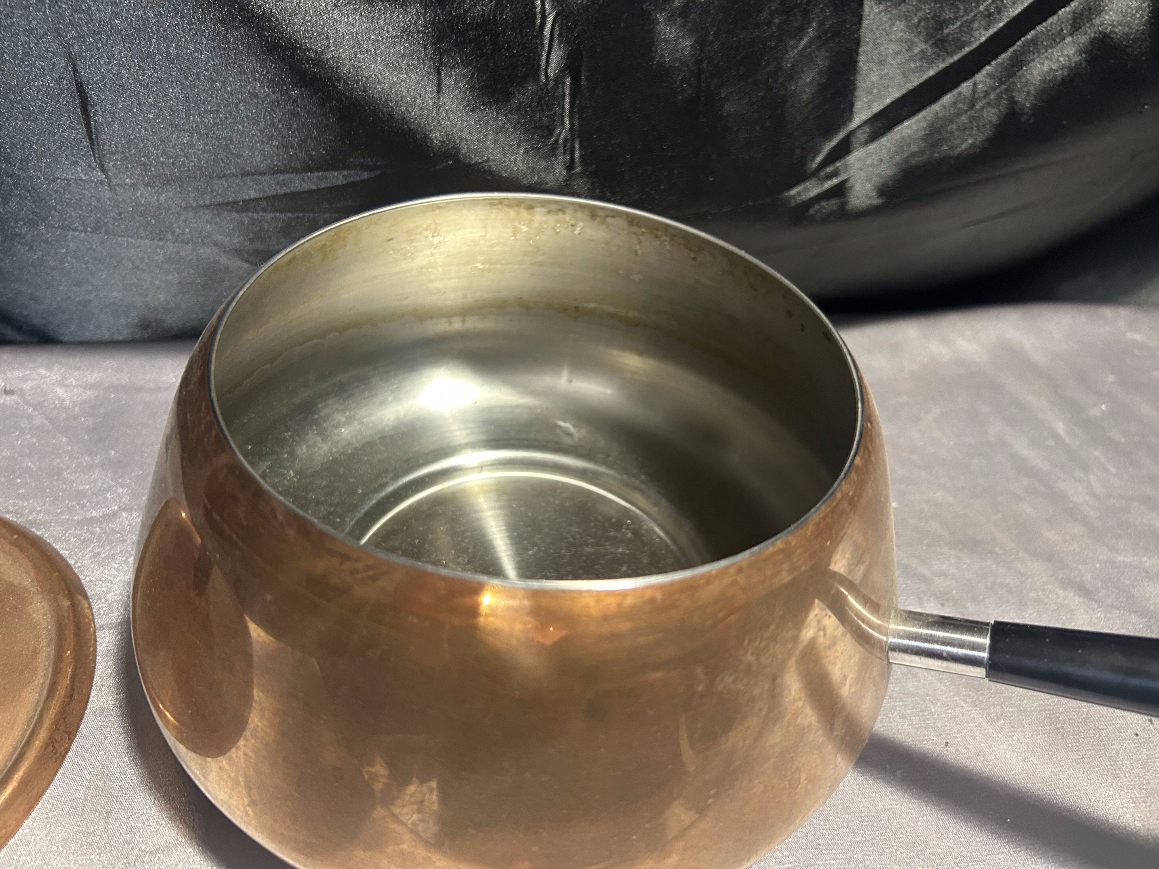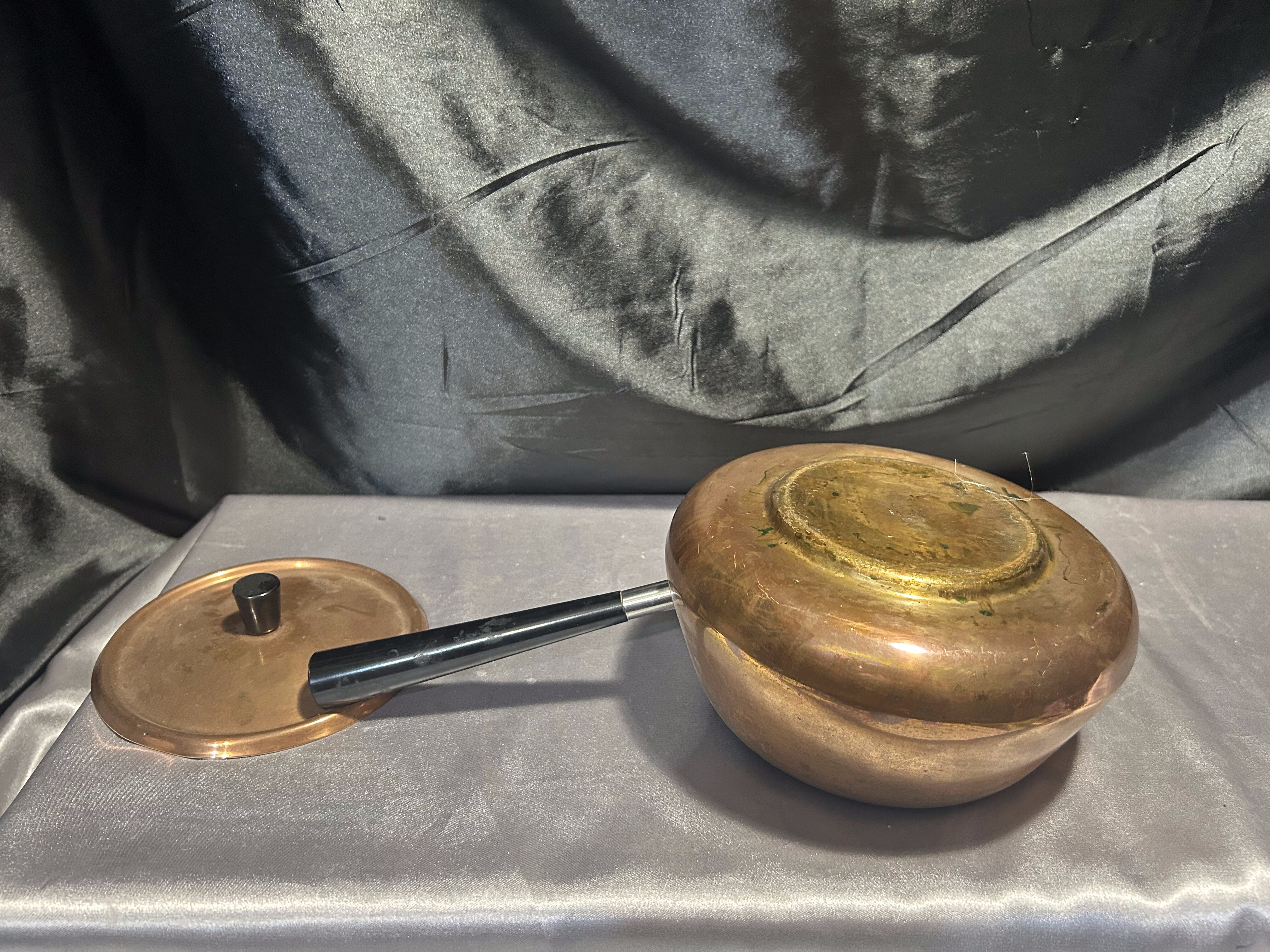 - Miedziany Rondel z Pokrywką – Sygnowany, Czarna Rączka, 1,5 Litra