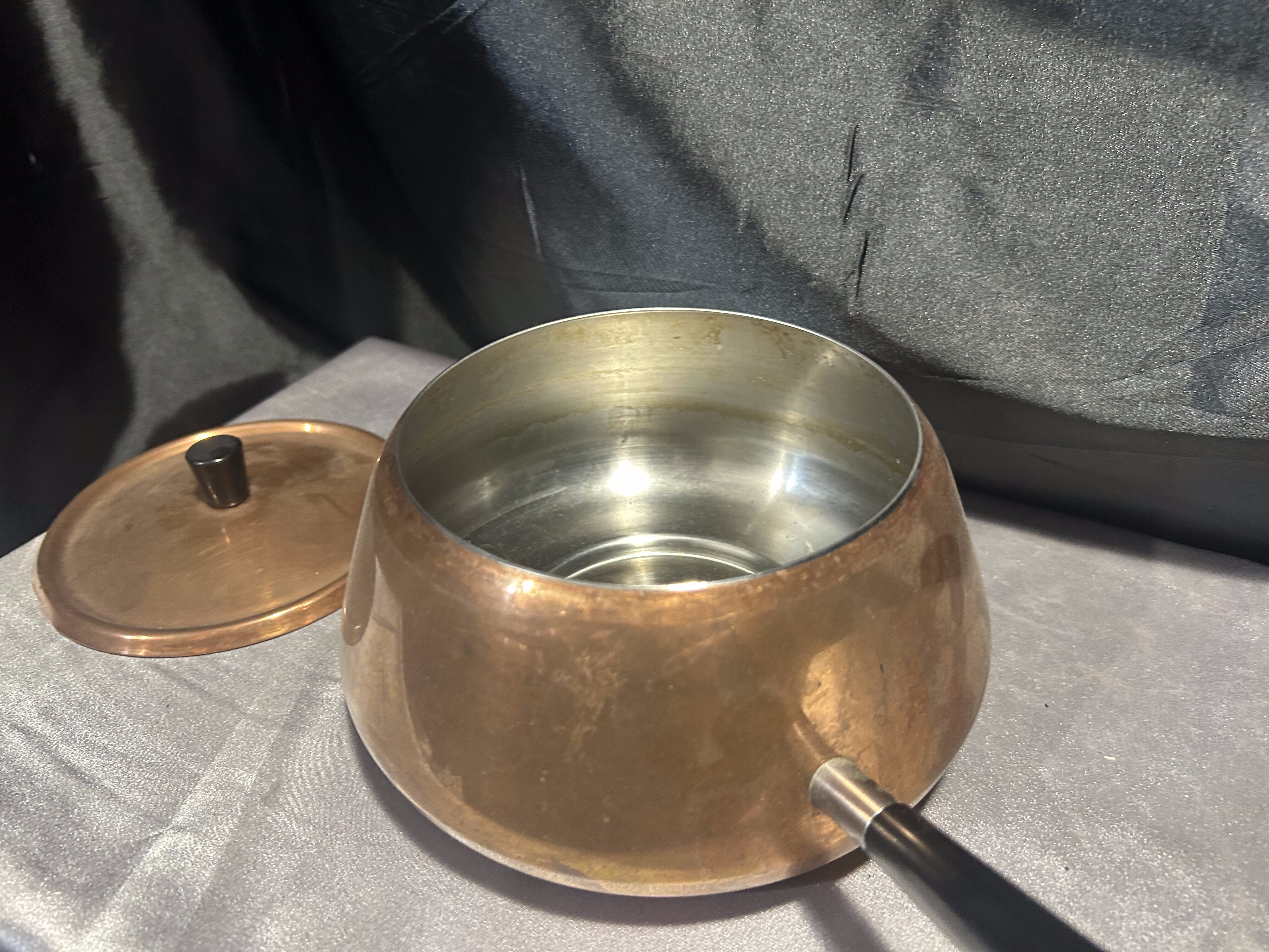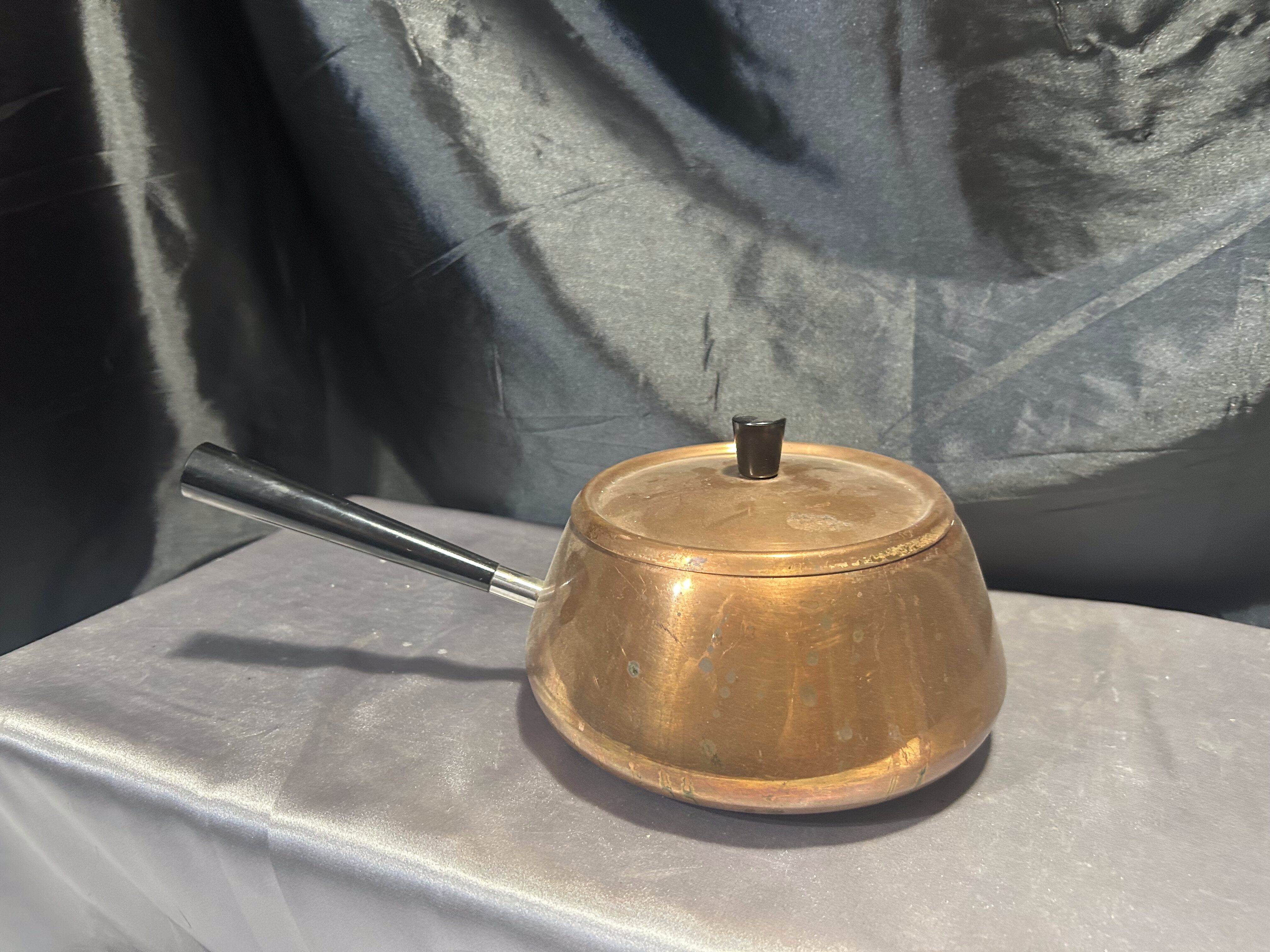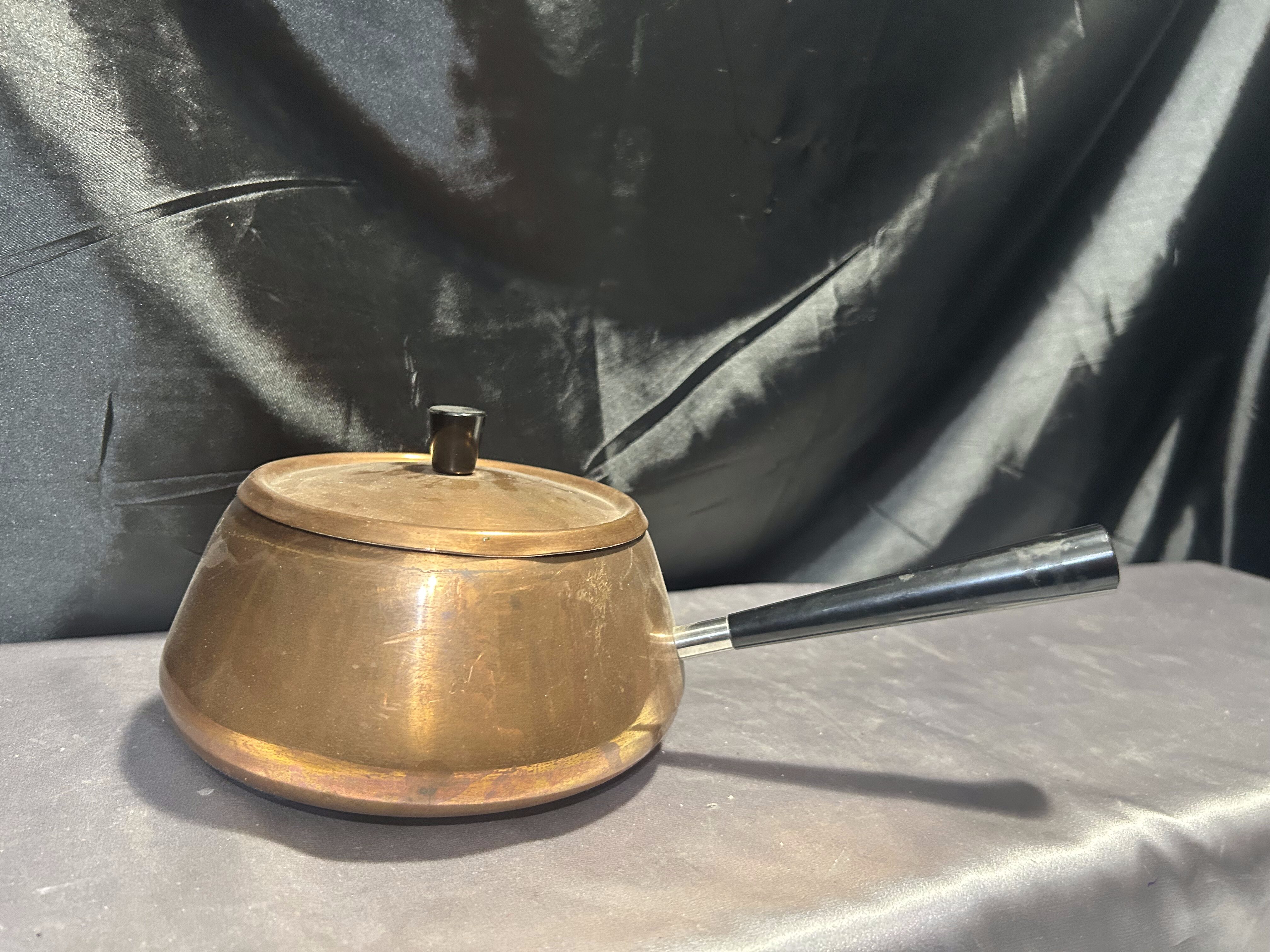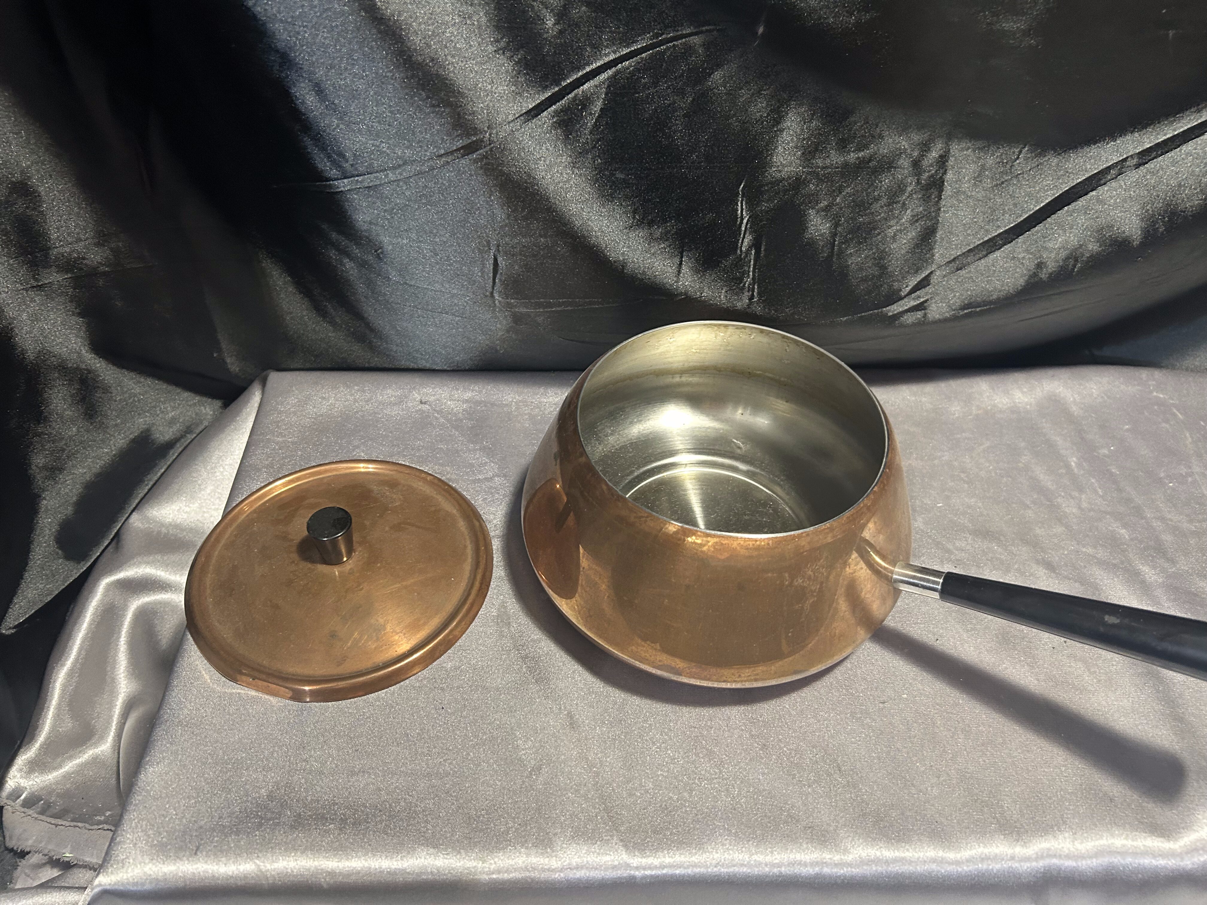 - Miedziany Rondel z Pokrywką – Sygnowany, Czarna Rączka, 1,5 Litra