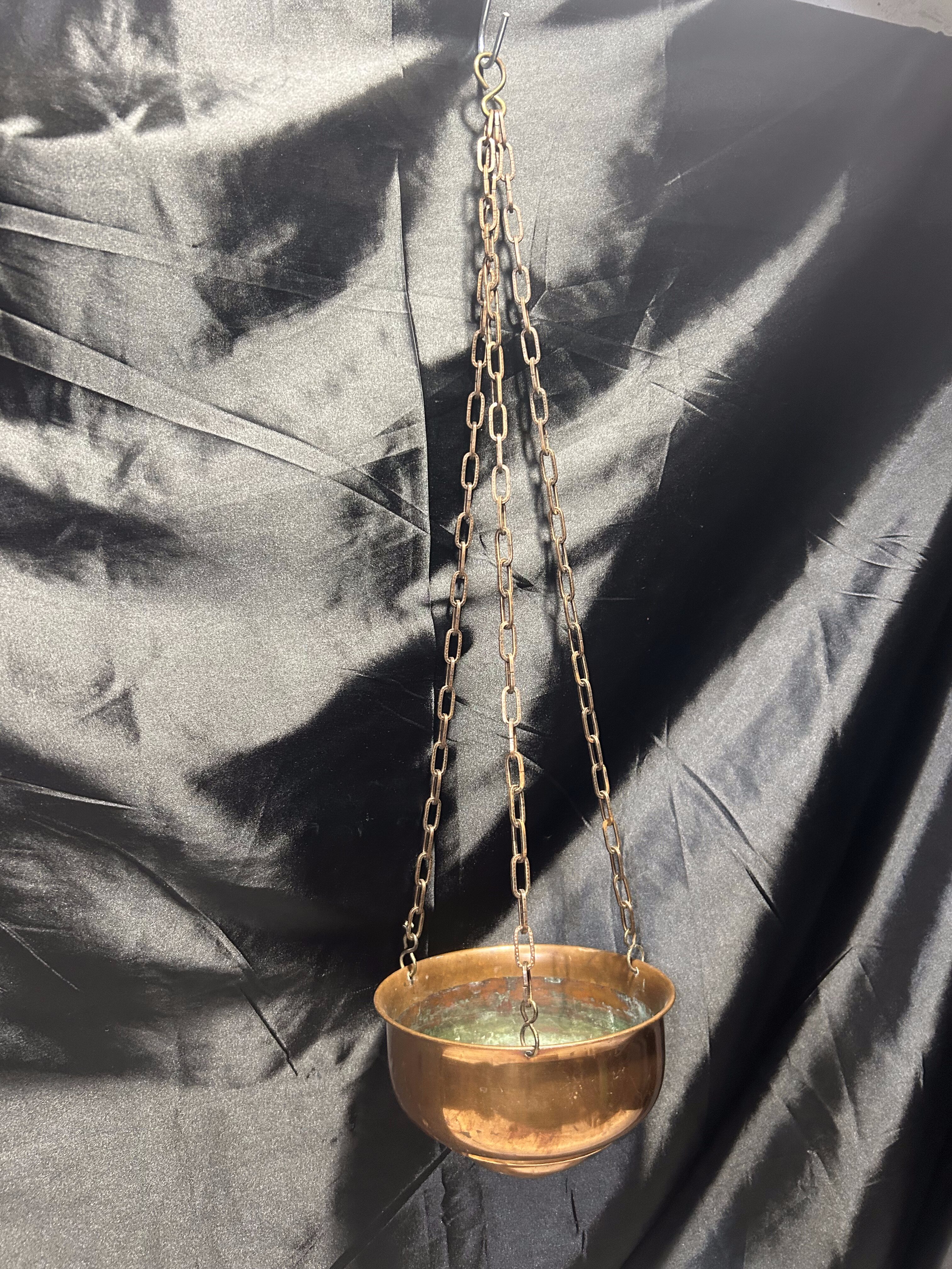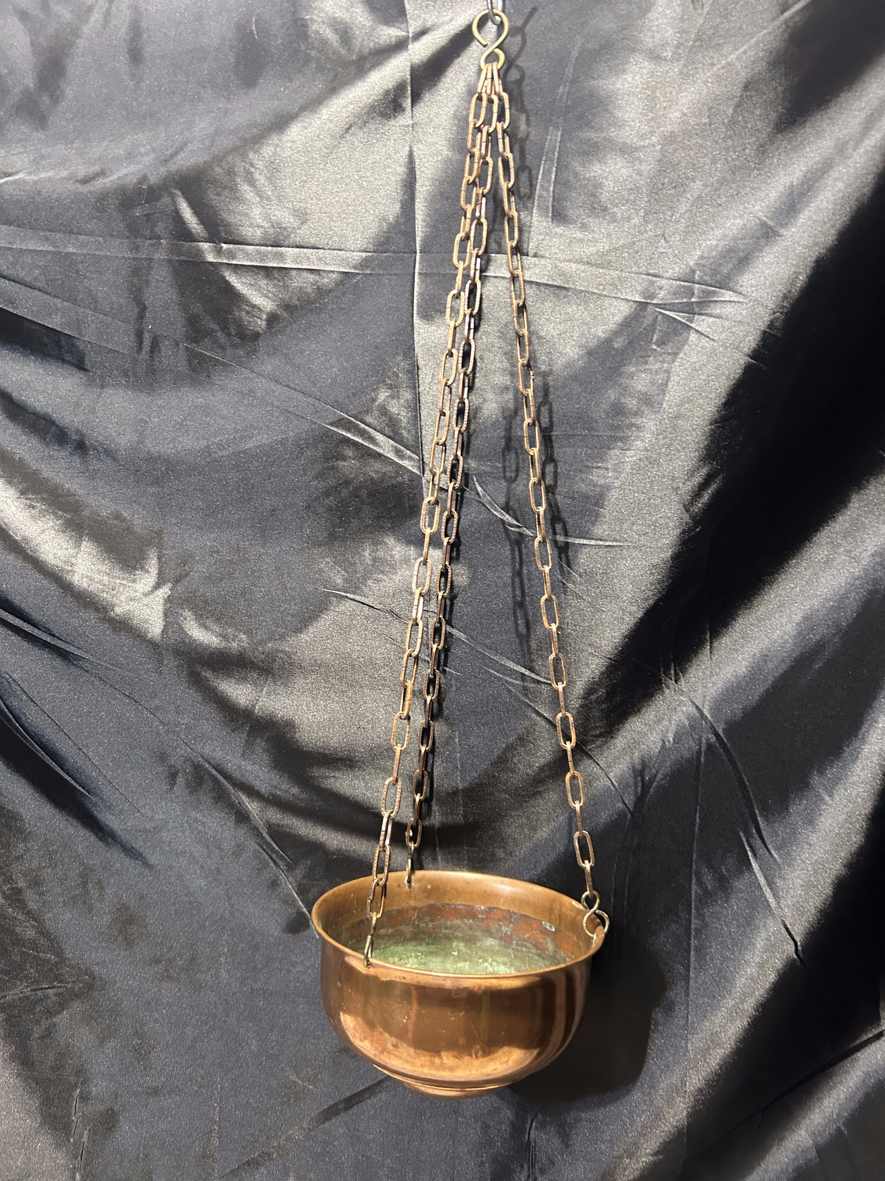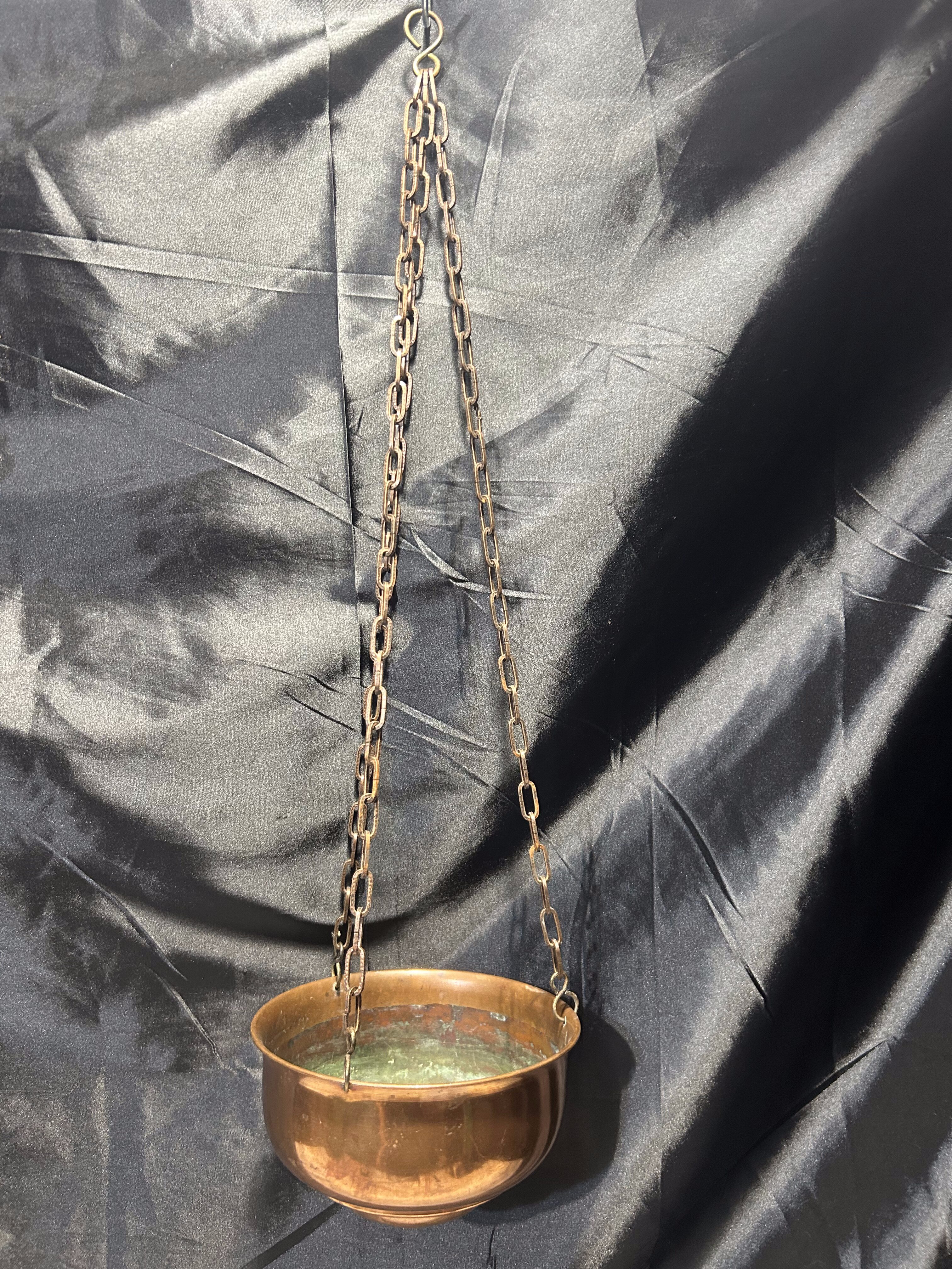 Miedziany Wiszący Kwietnik – Na Trzech Łańcuszkach – Styl Vintage