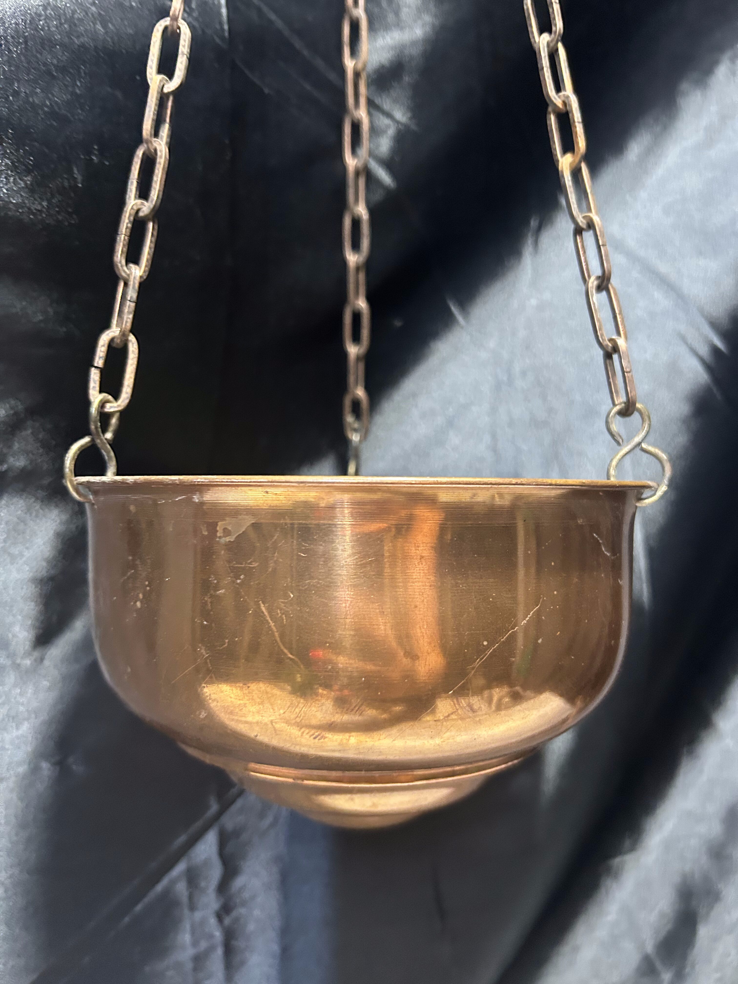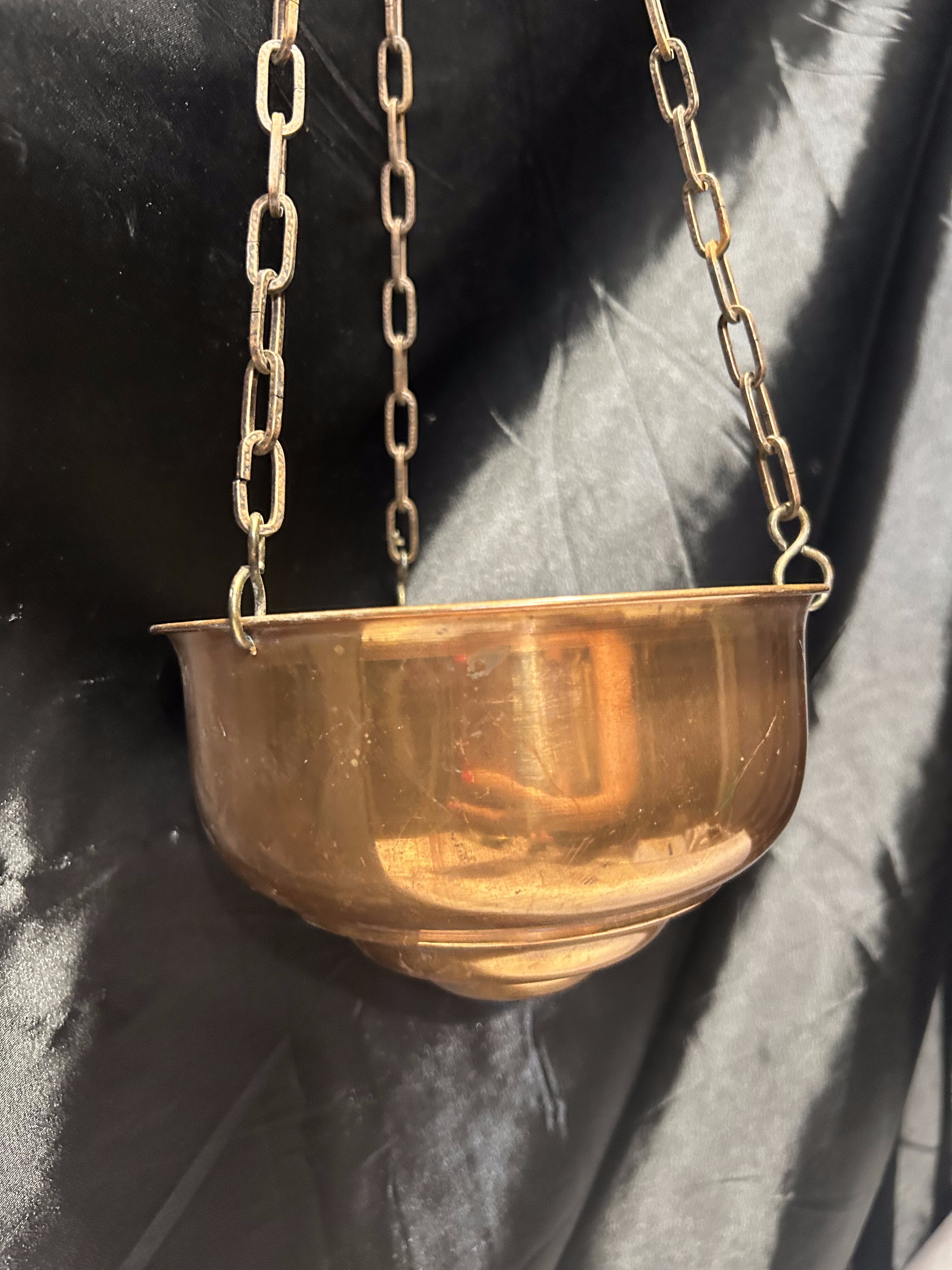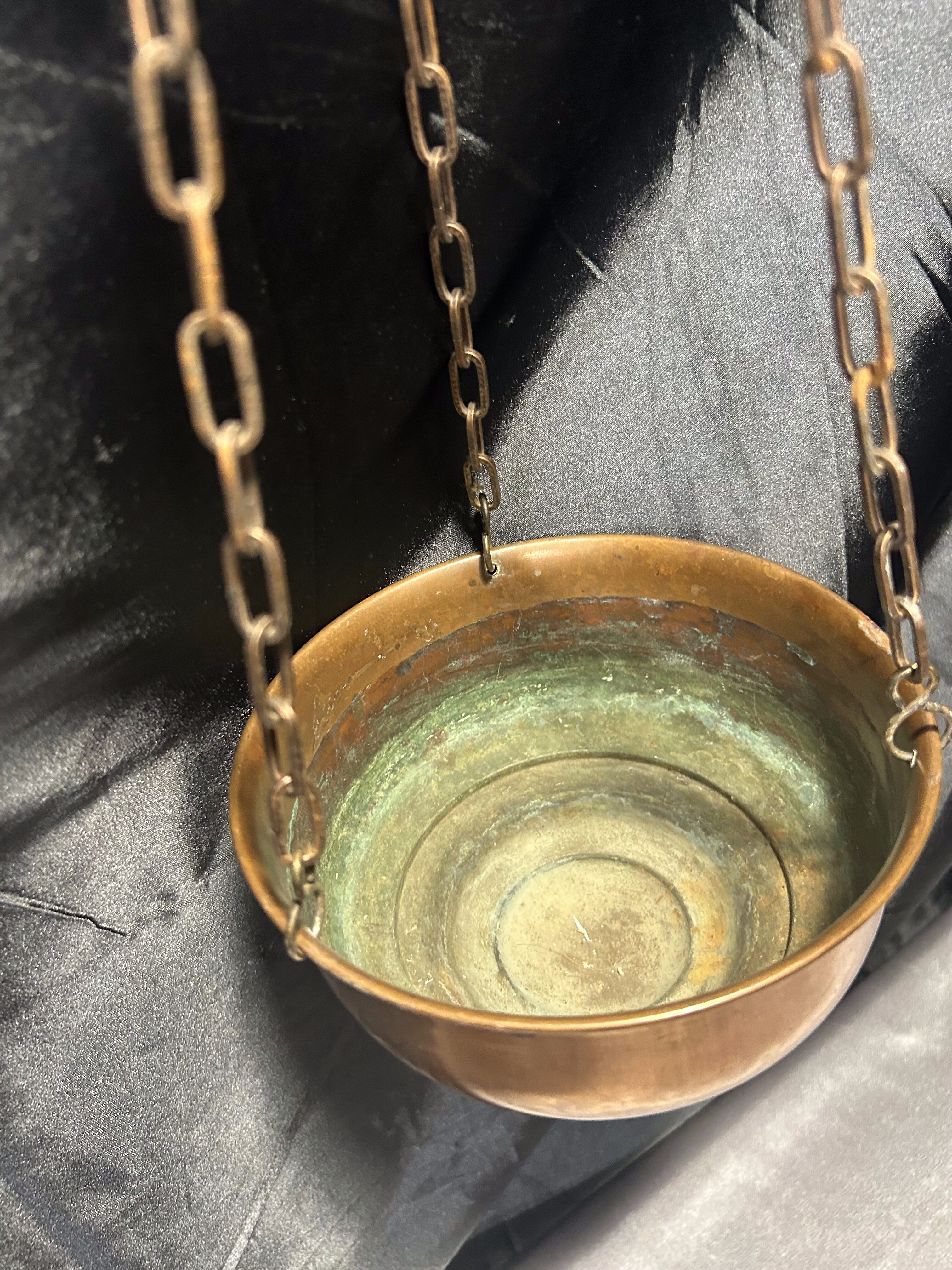 Miedziany Wiszący Kwietnik – Na Trzech Łańcuszkach – Styl Vintage