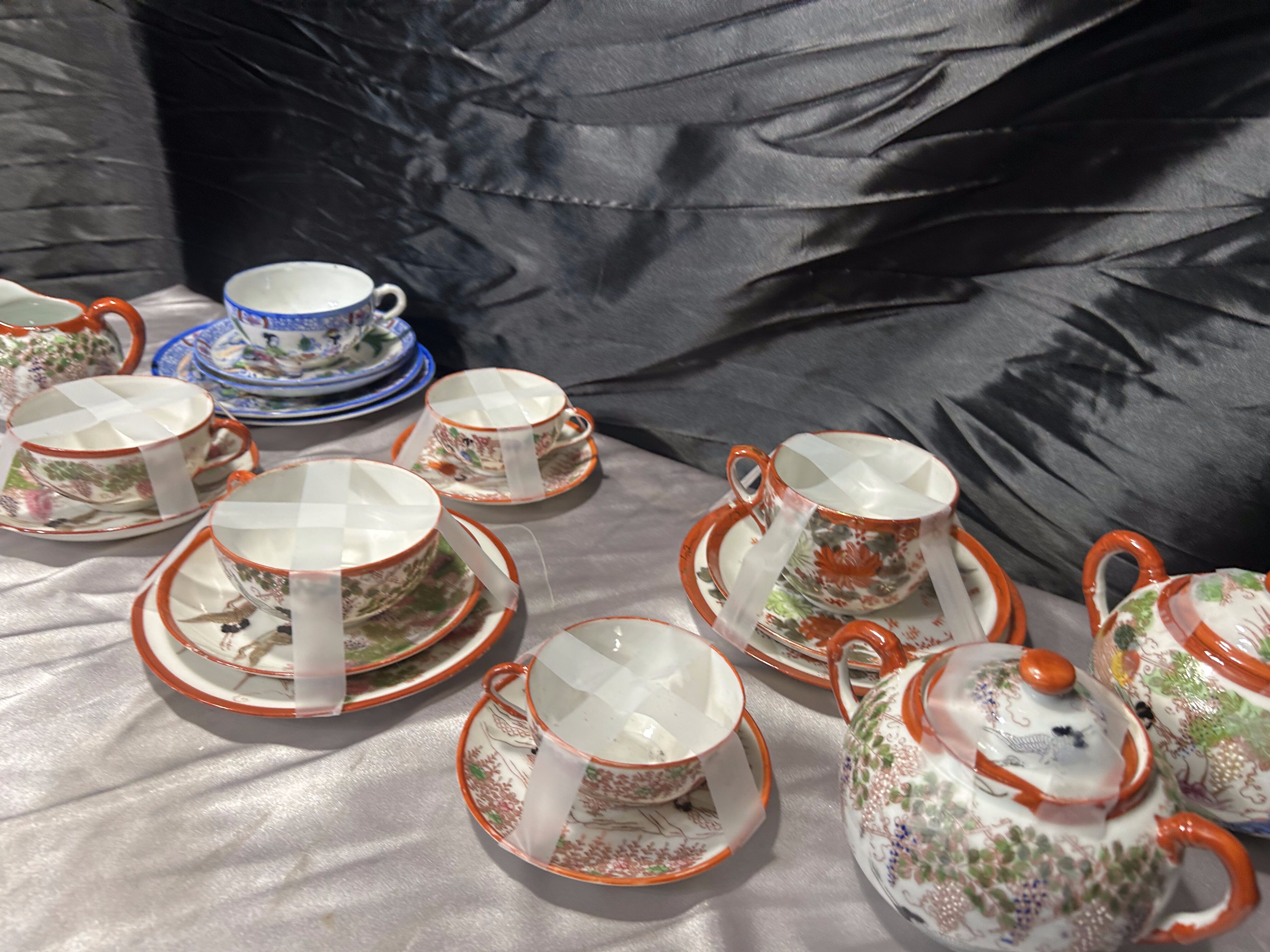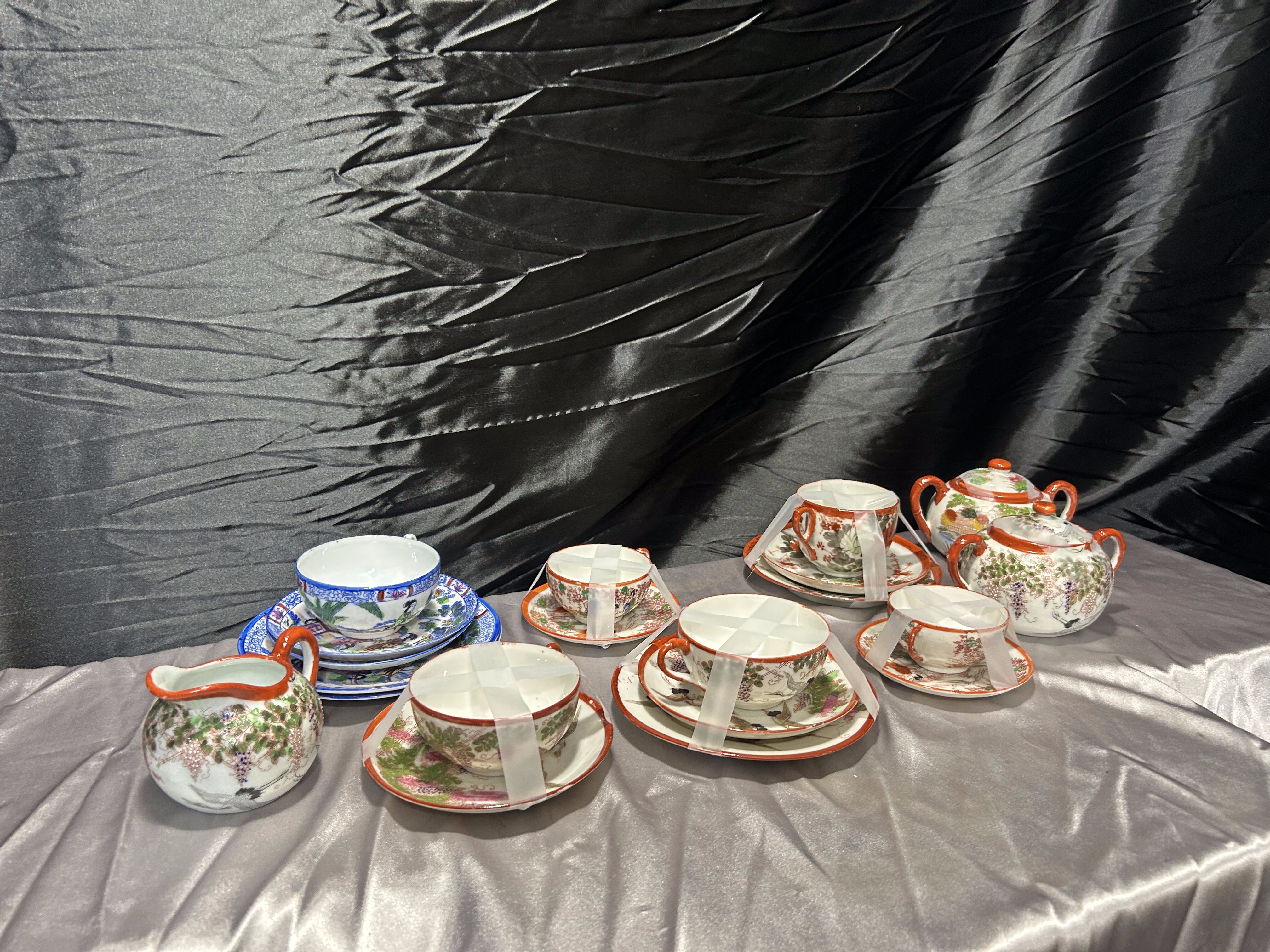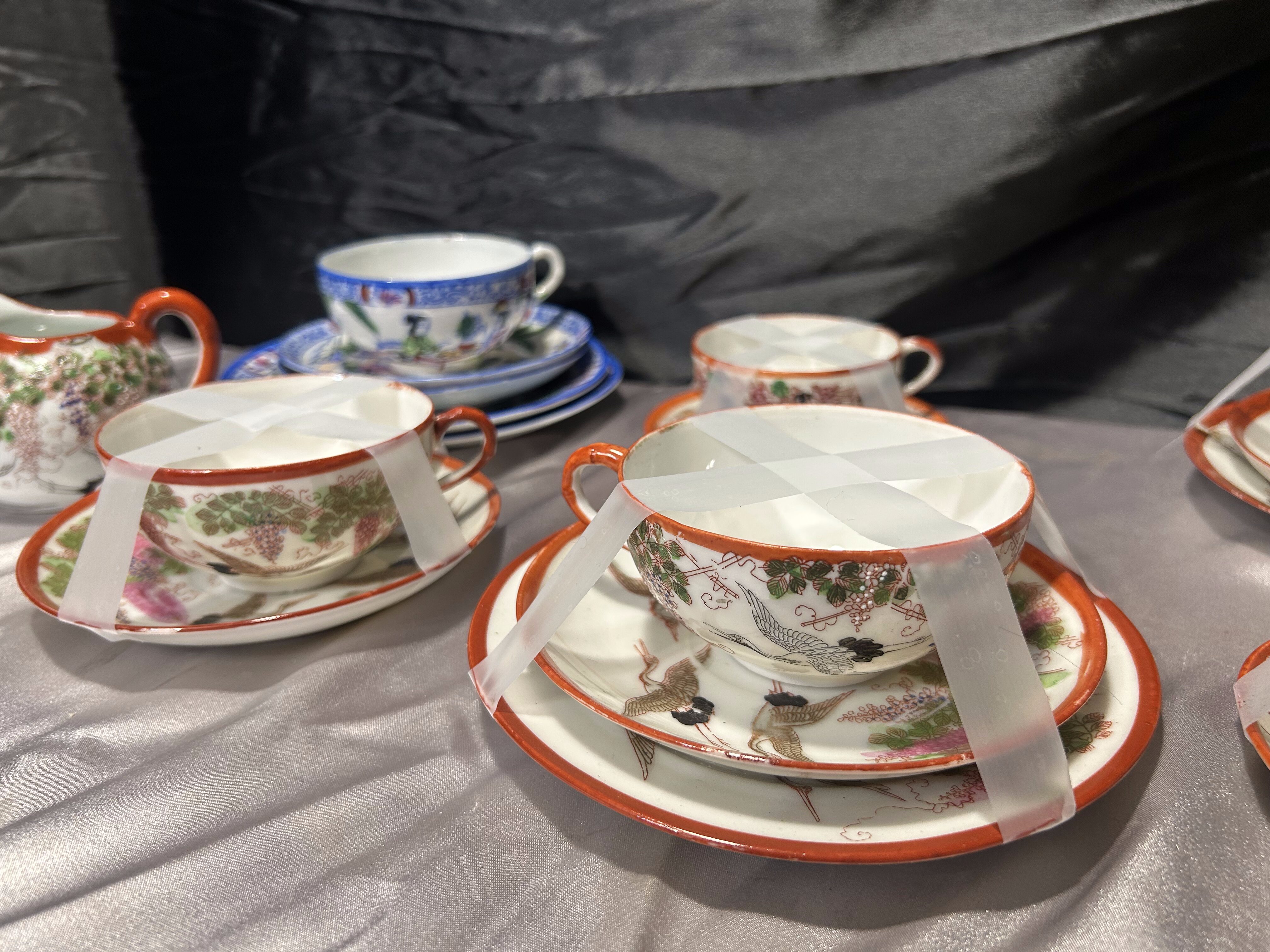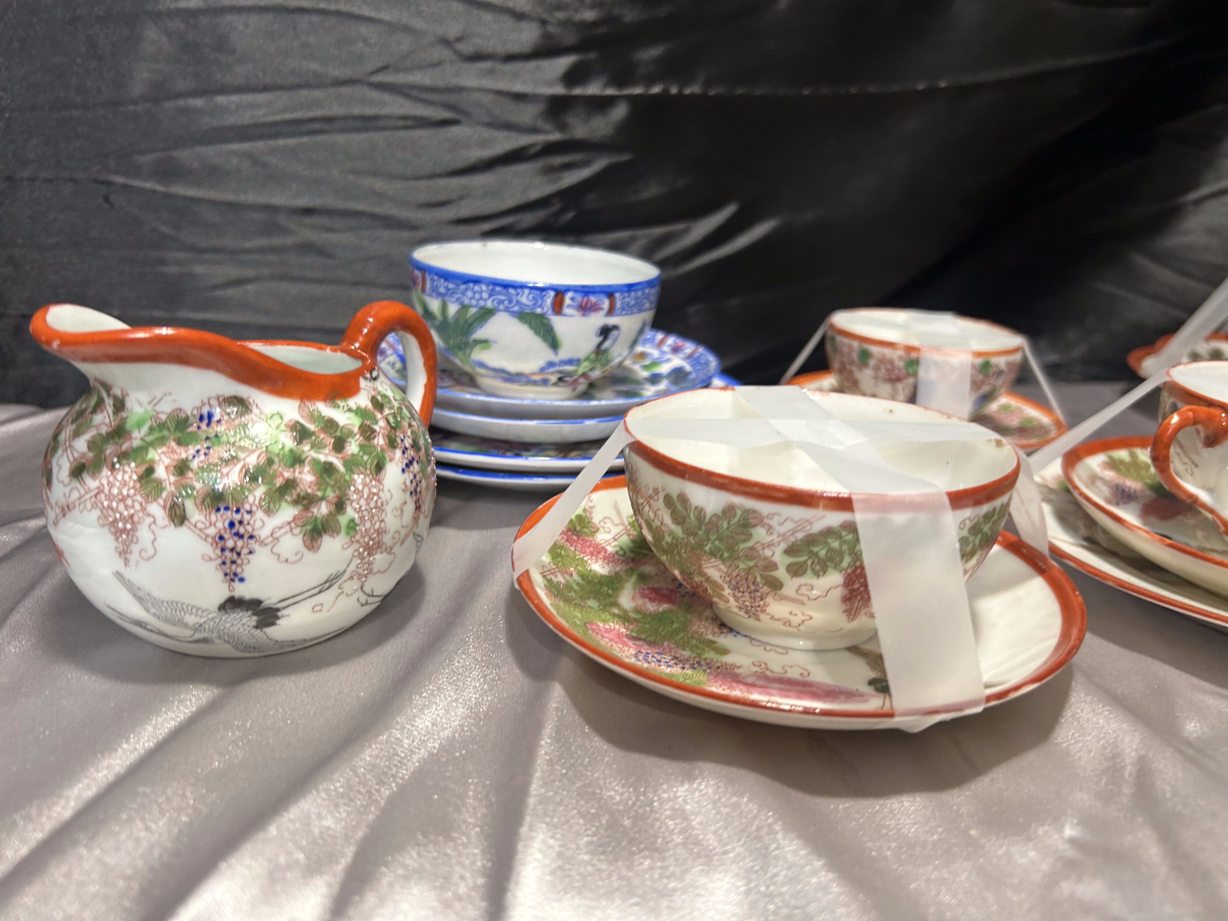Miks porcelany japońskiej – filiżanki z podstawkami, cukiernice, mlecznik – styl orientalny