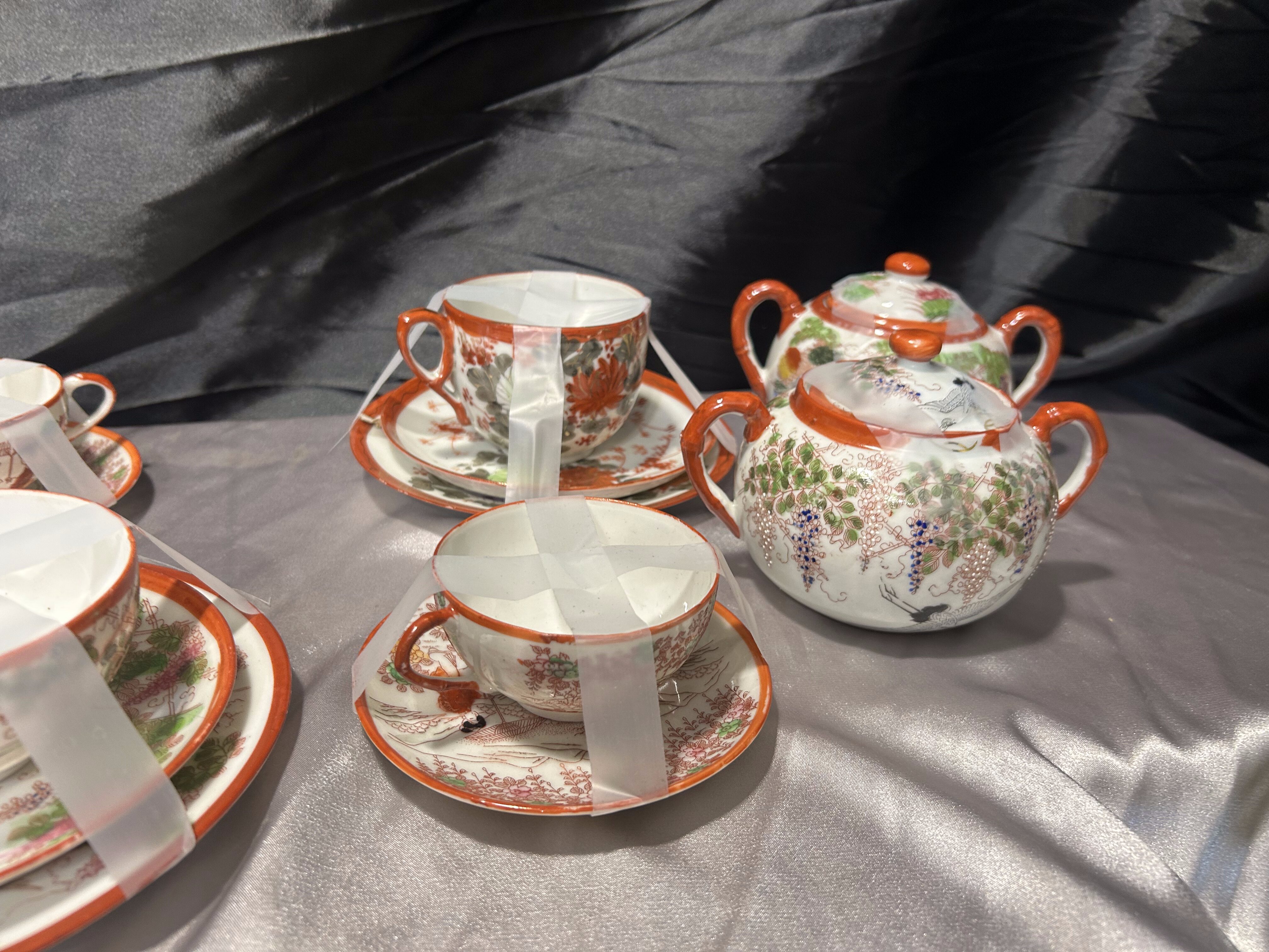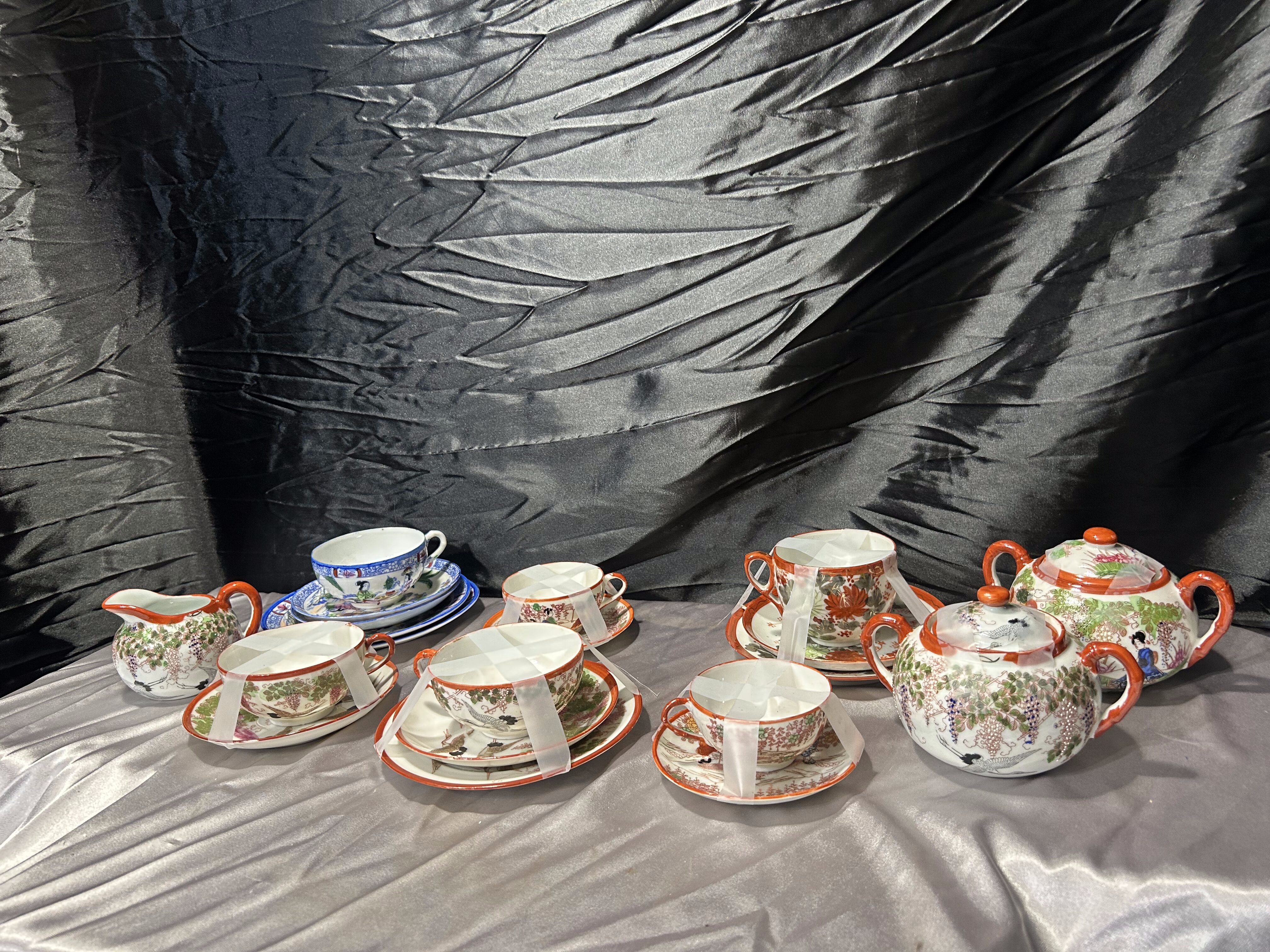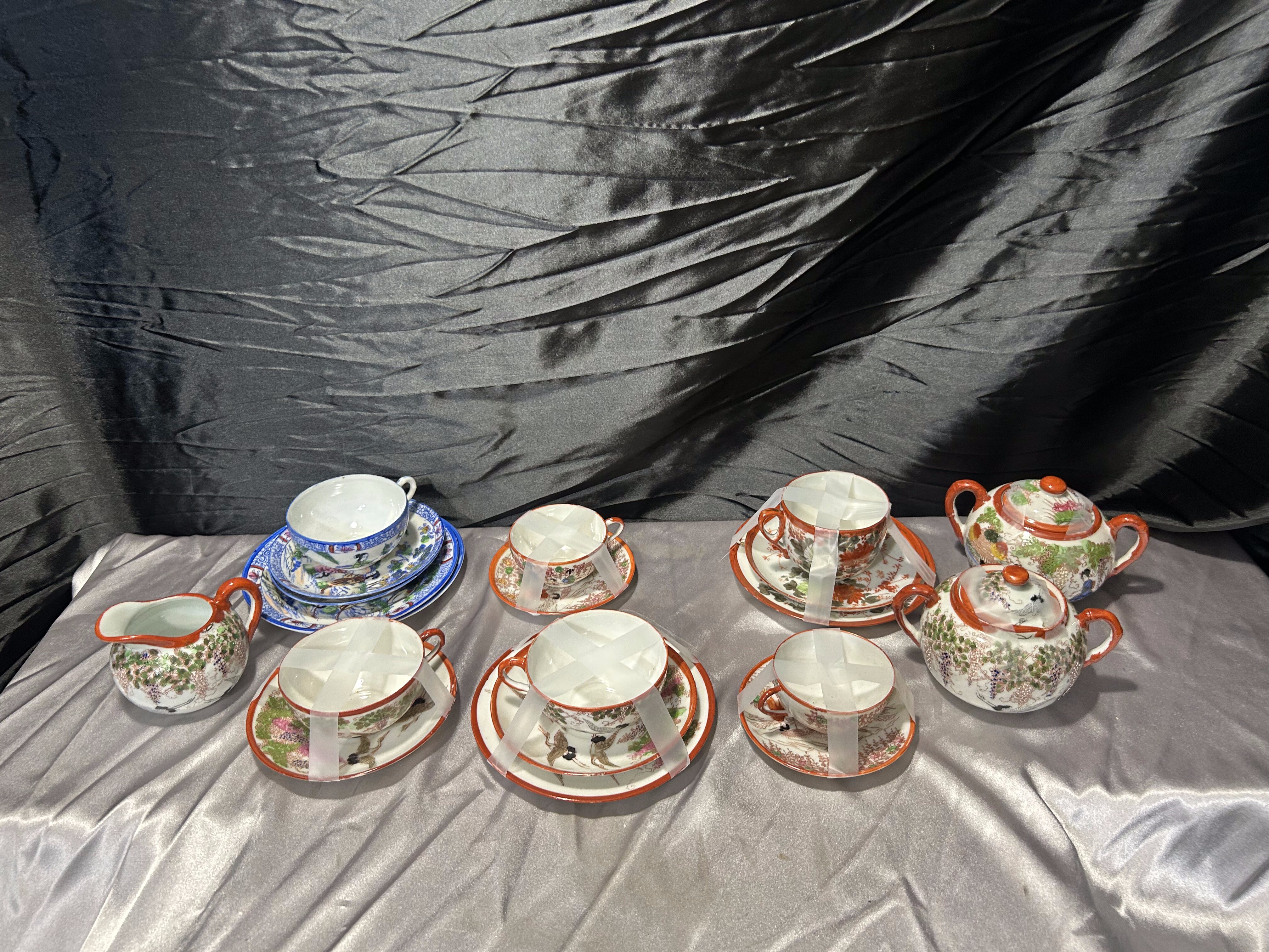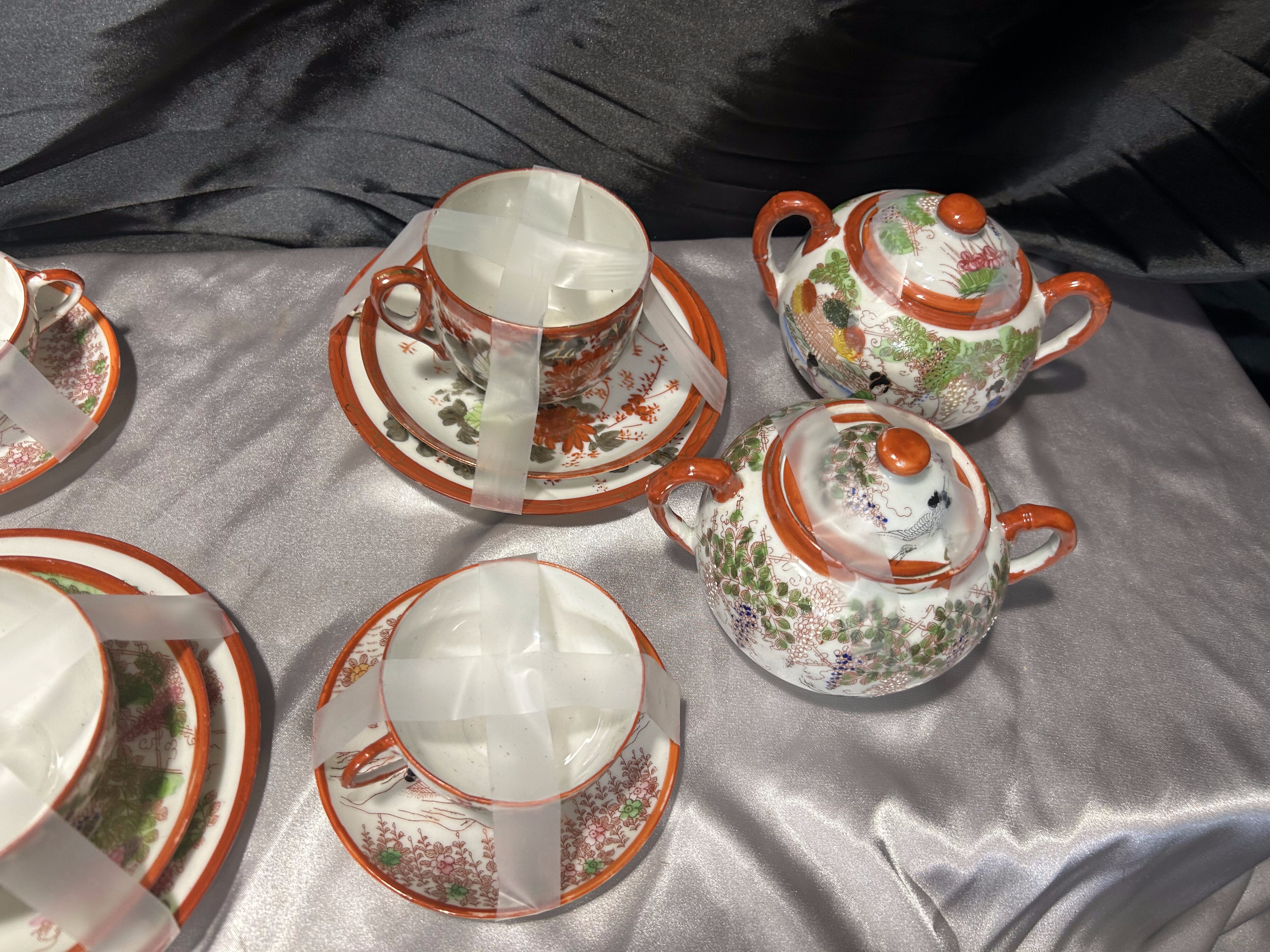 Miks porcelany japońskiej – filiżanki z podstawkami, cukiernice, mlecznik – styl orientalny