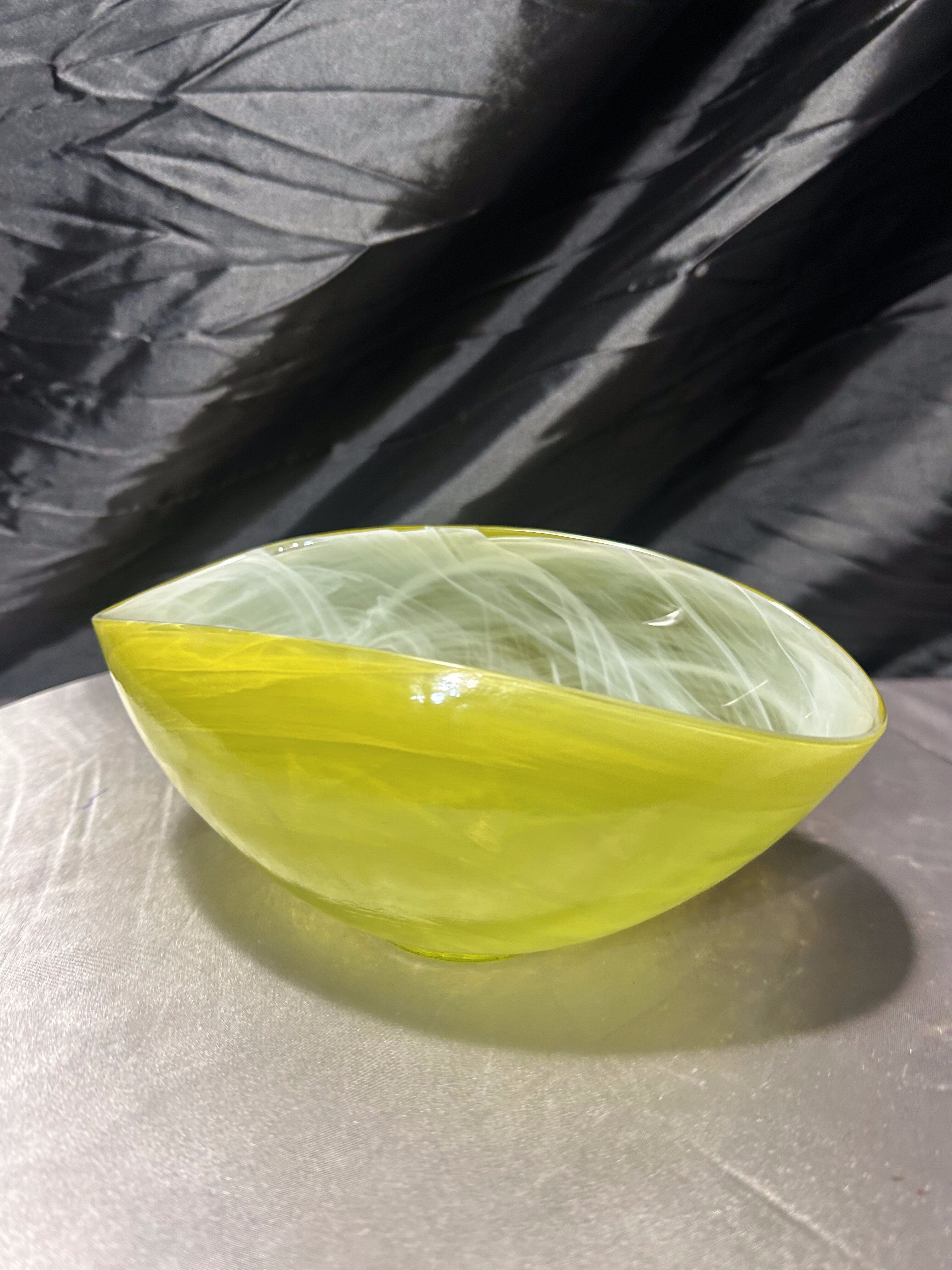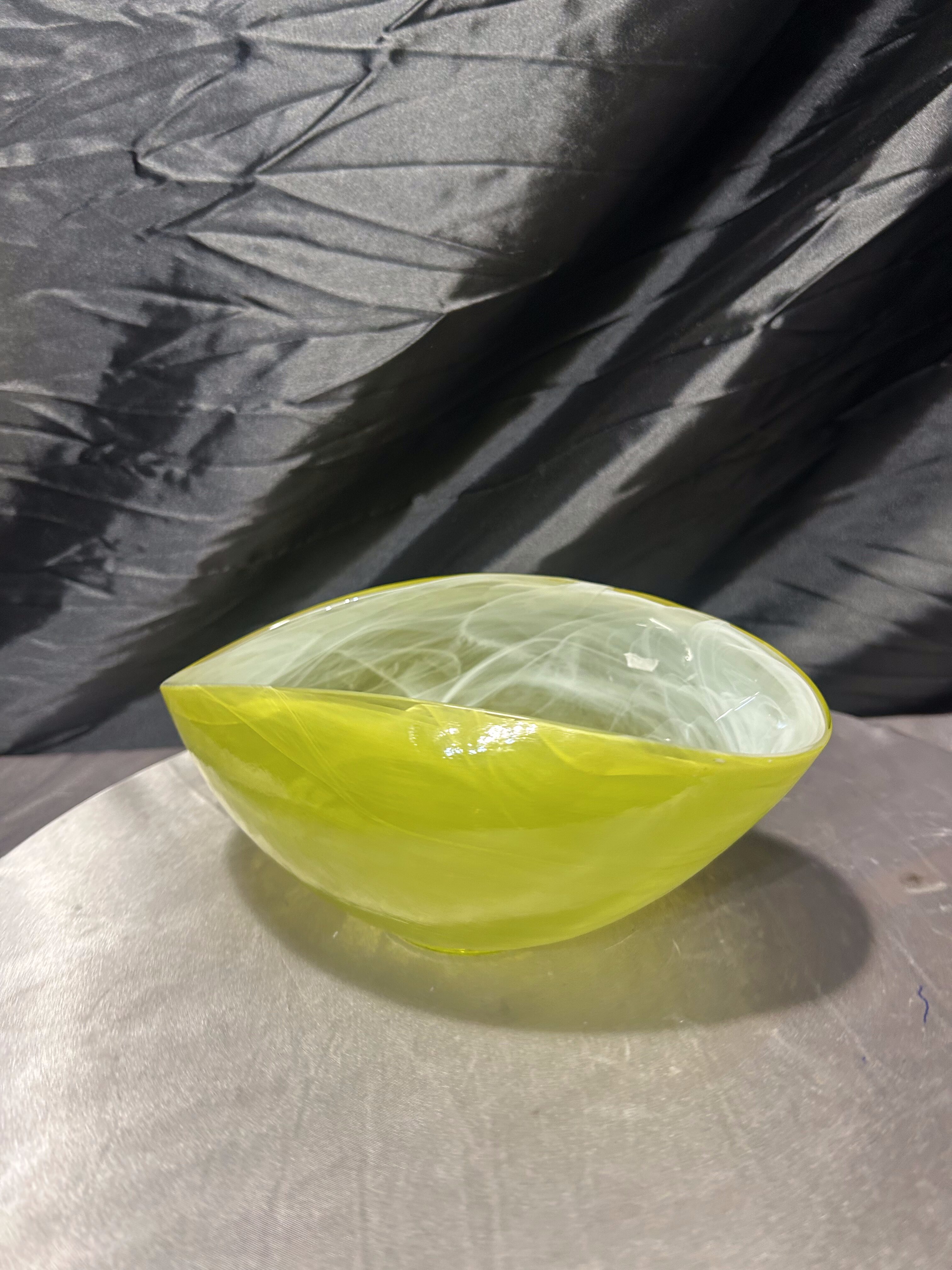 Misa artystyczna ze szkła – ręcznie formowana – żółta łódeczka