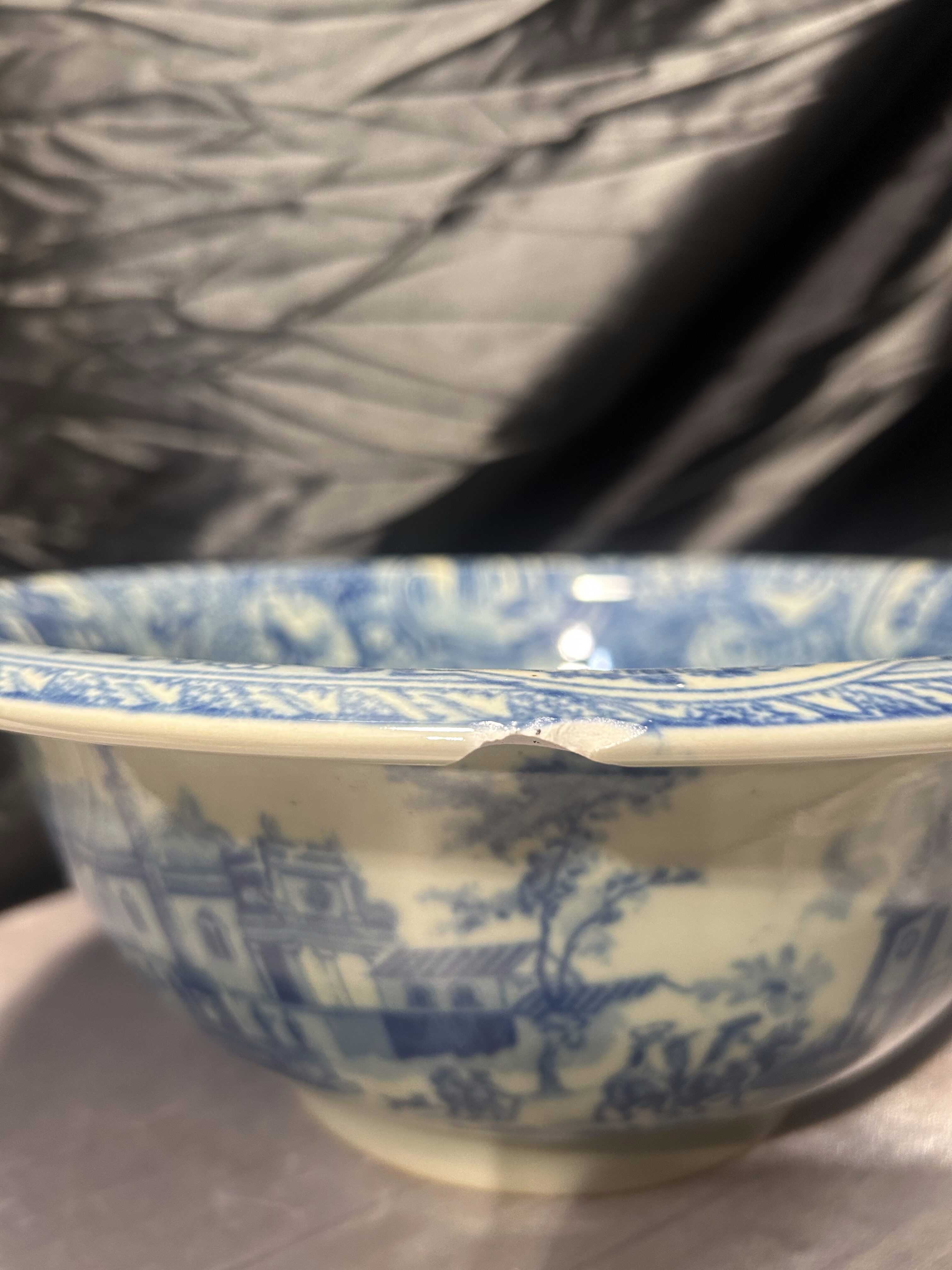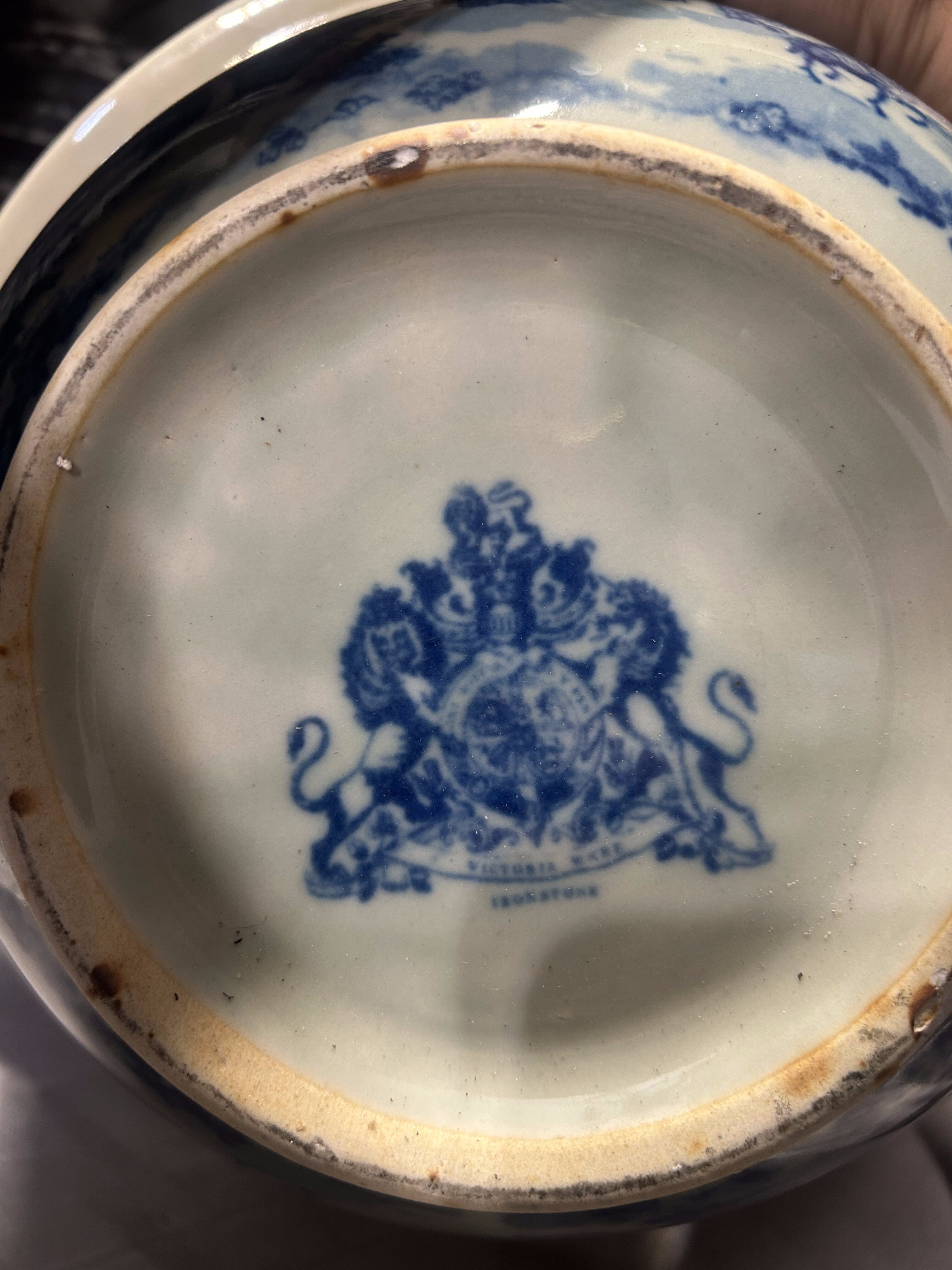 - Misa ceramiczna Victoria Ware Ironstone – niebieski pejzaż miejski – styl flow blue