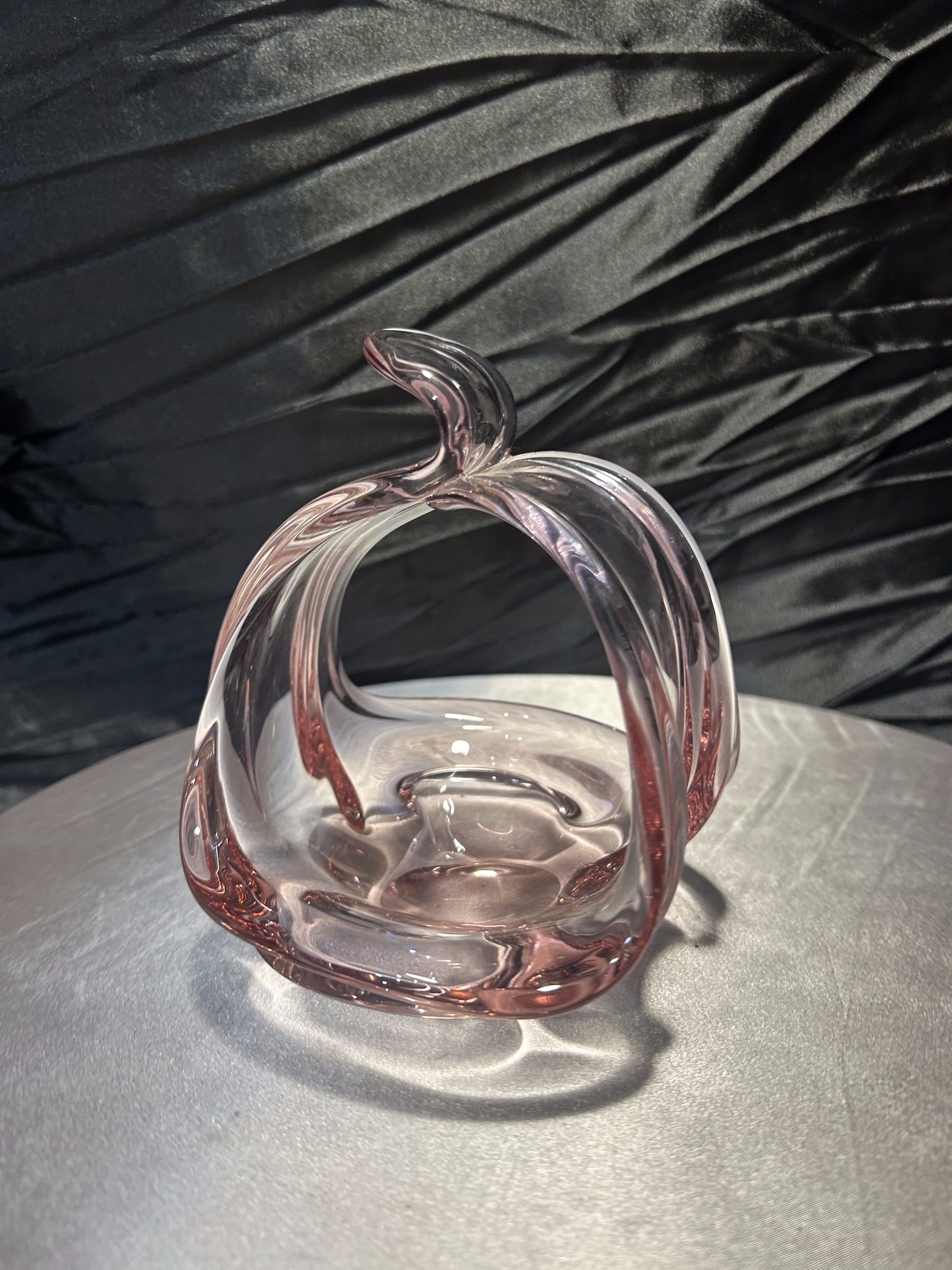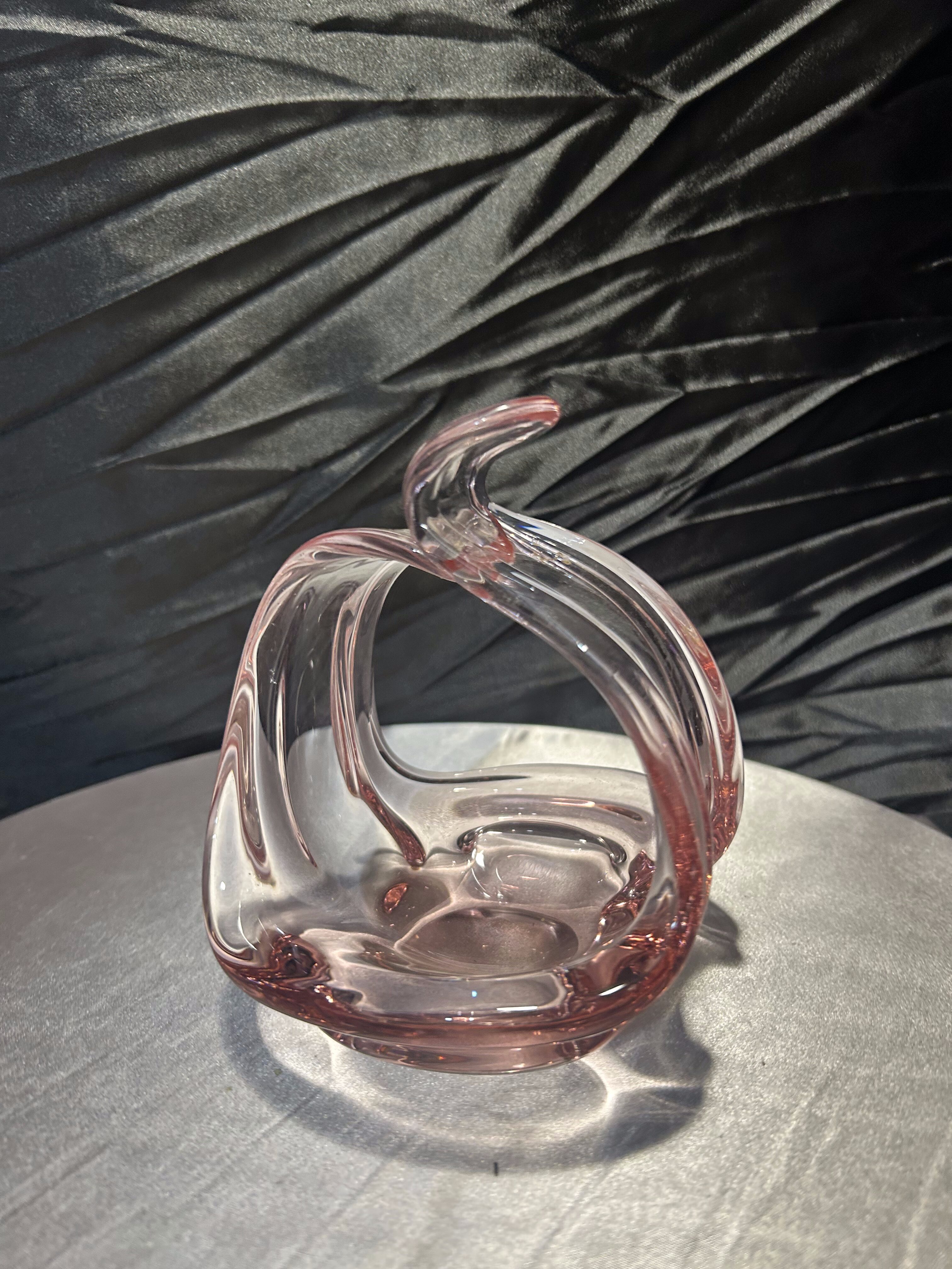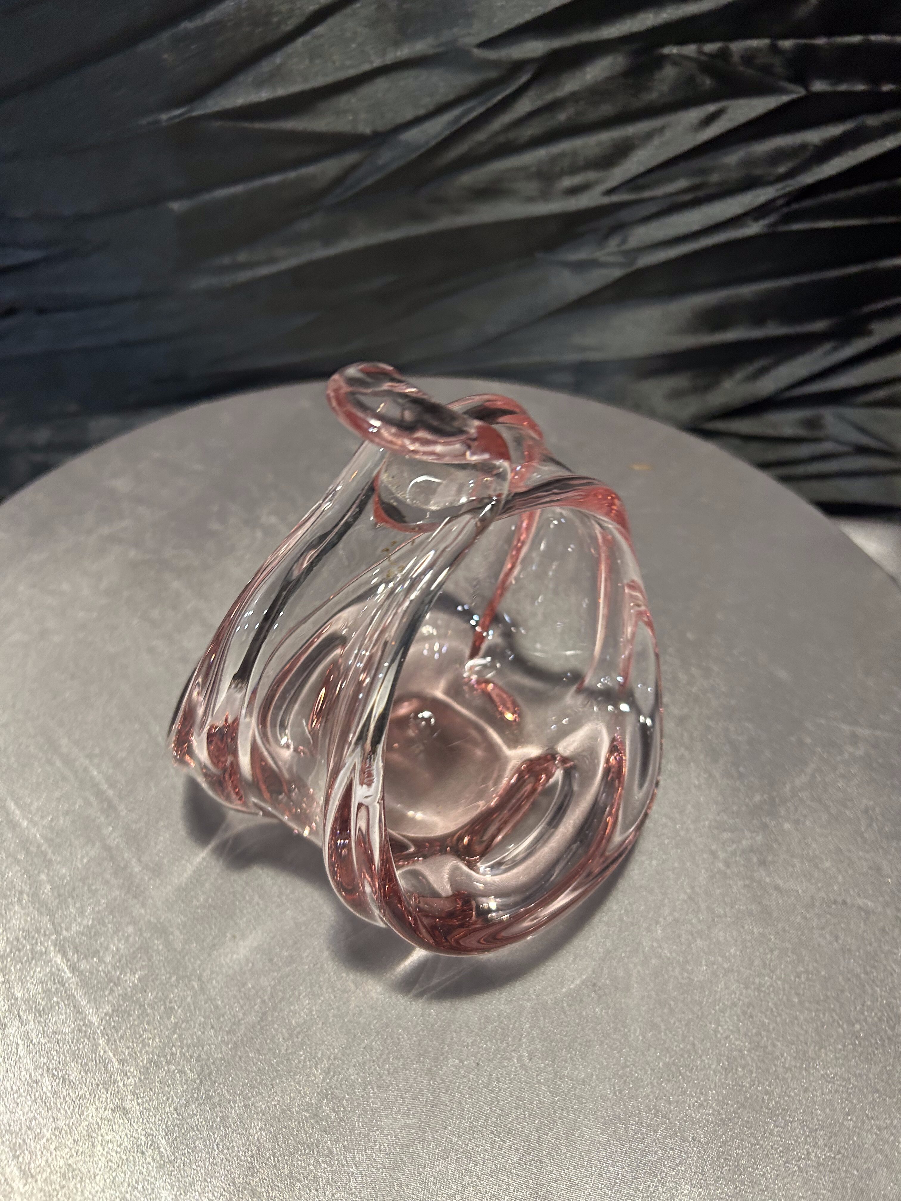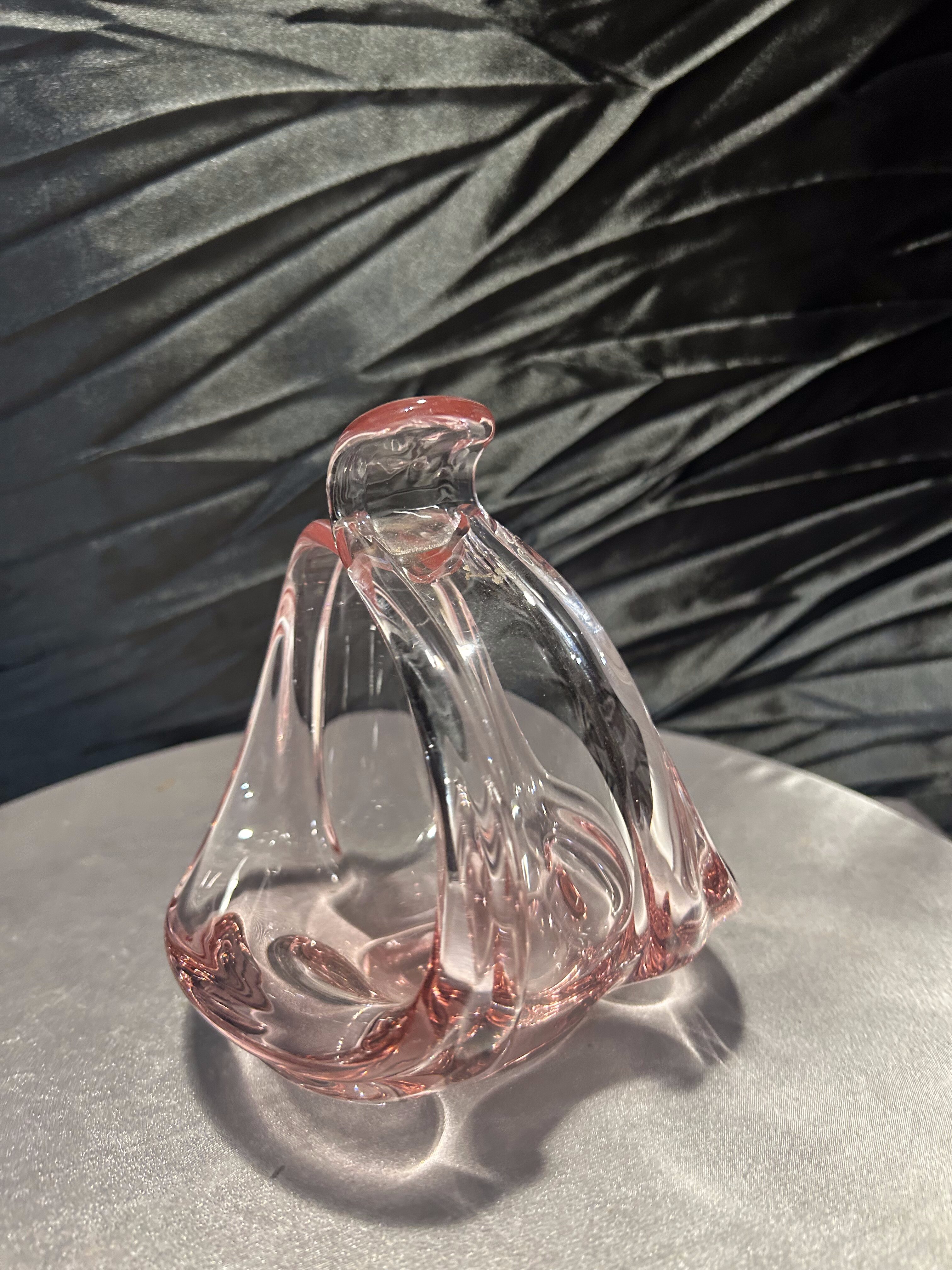 Misa-koszyczek z różowego szkła artystycznego – styl vintage