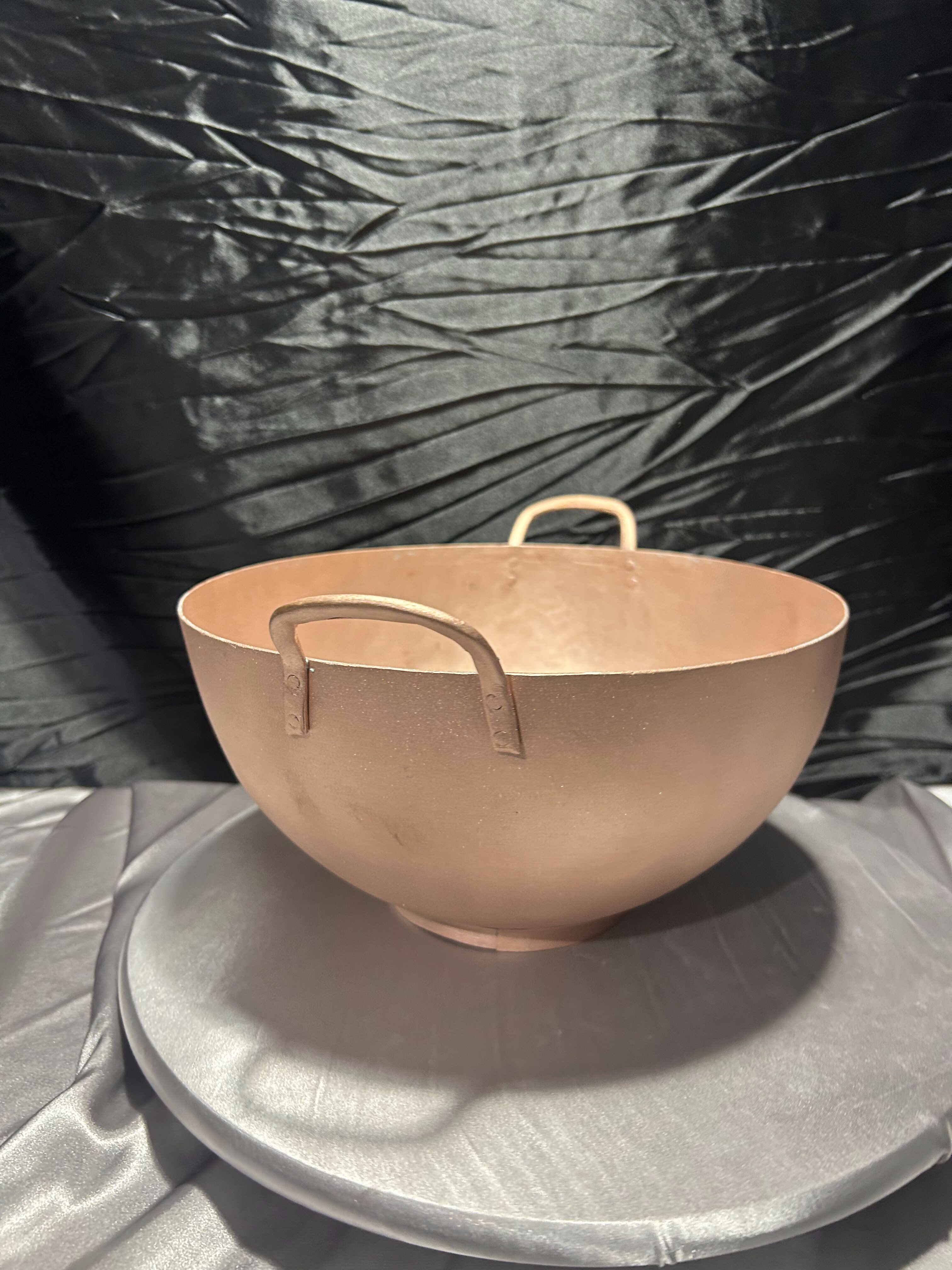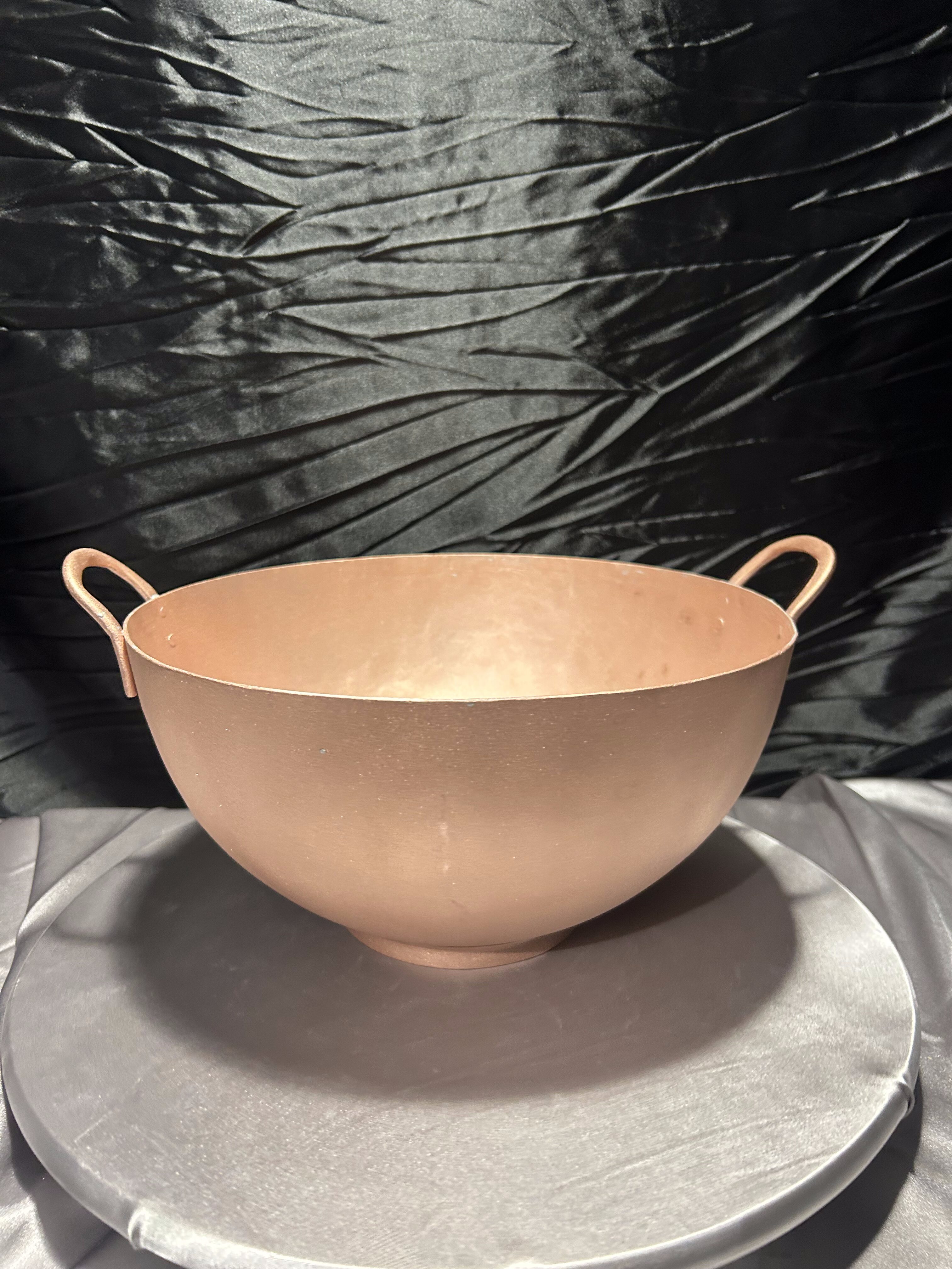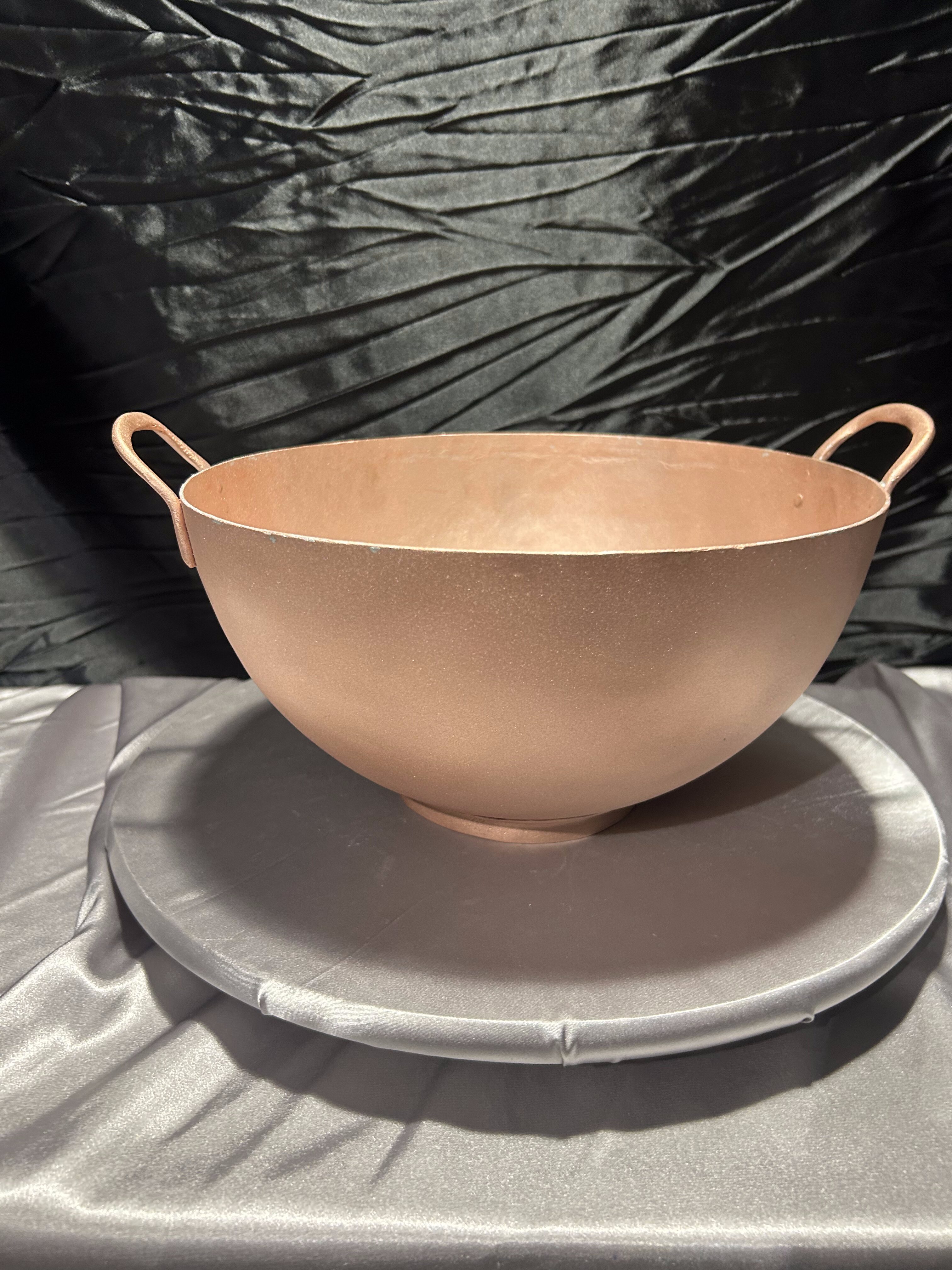 Oferuję elegancką misę miedzianą o prostej, klasycznej formie. Solidnie wykonana, z dwoma uchwytami po bokach, stanowi zarówno praktyczne naczynie, jak i wyjątkowy element dekoracyjny we wnętrzu.