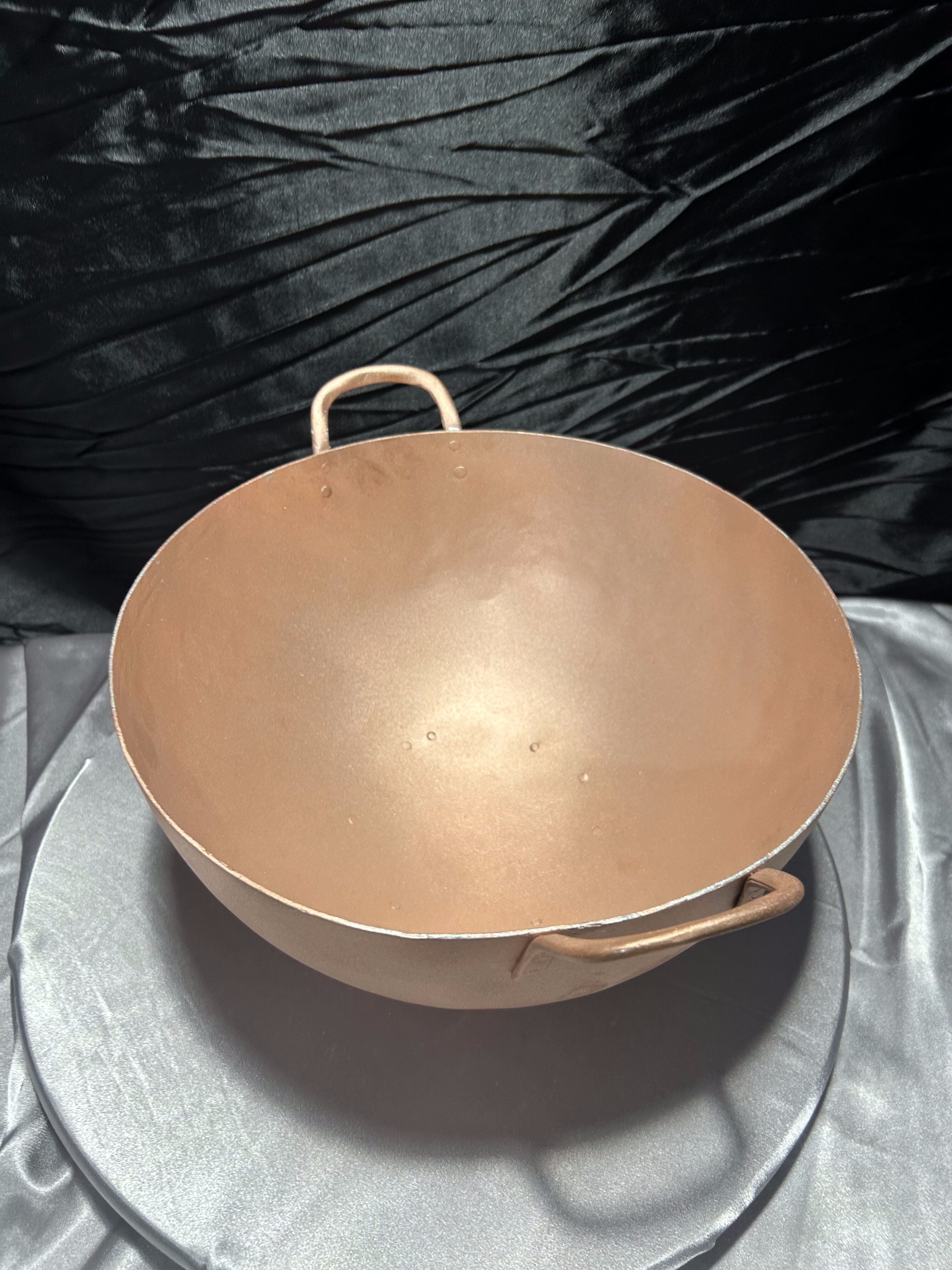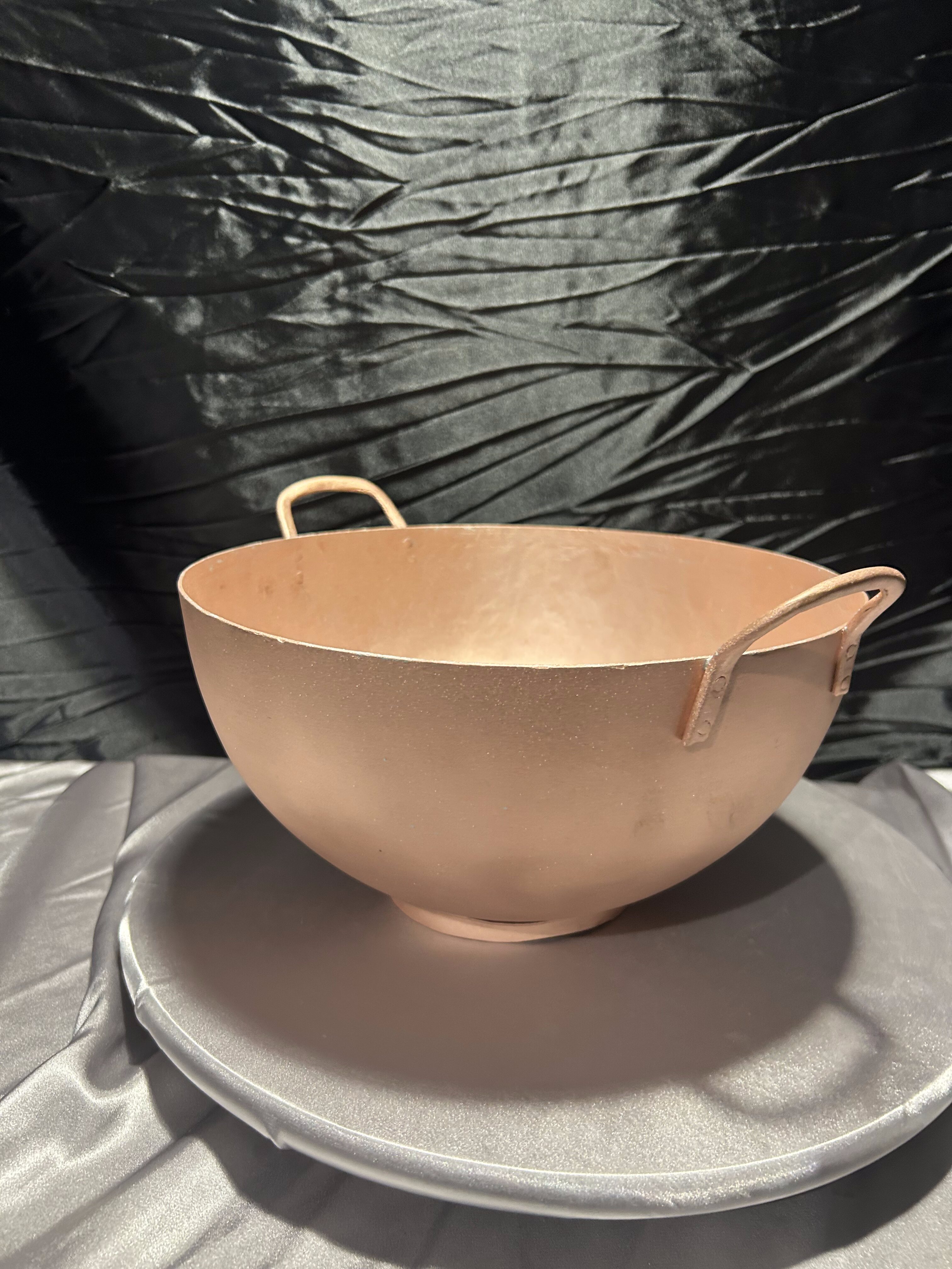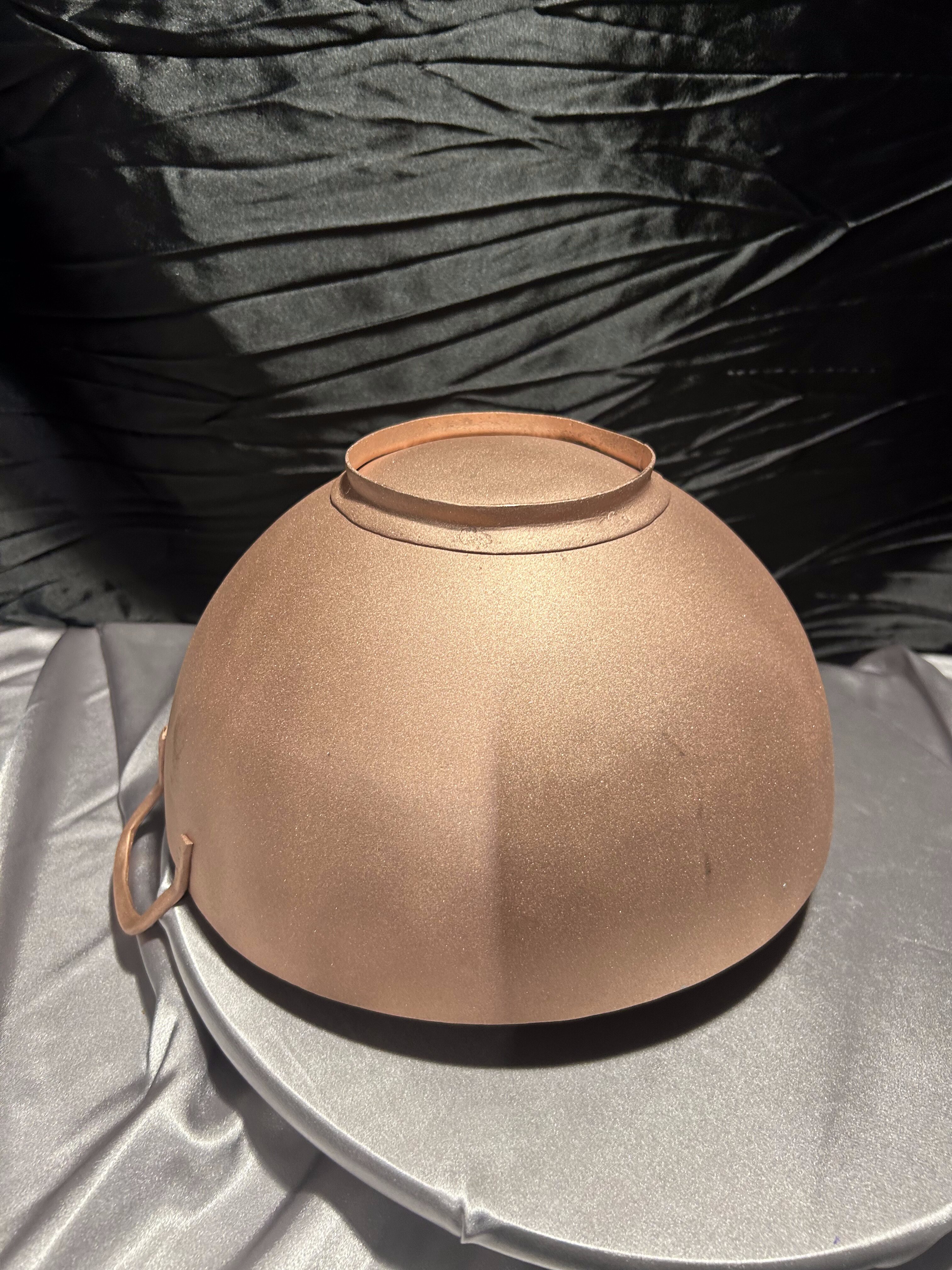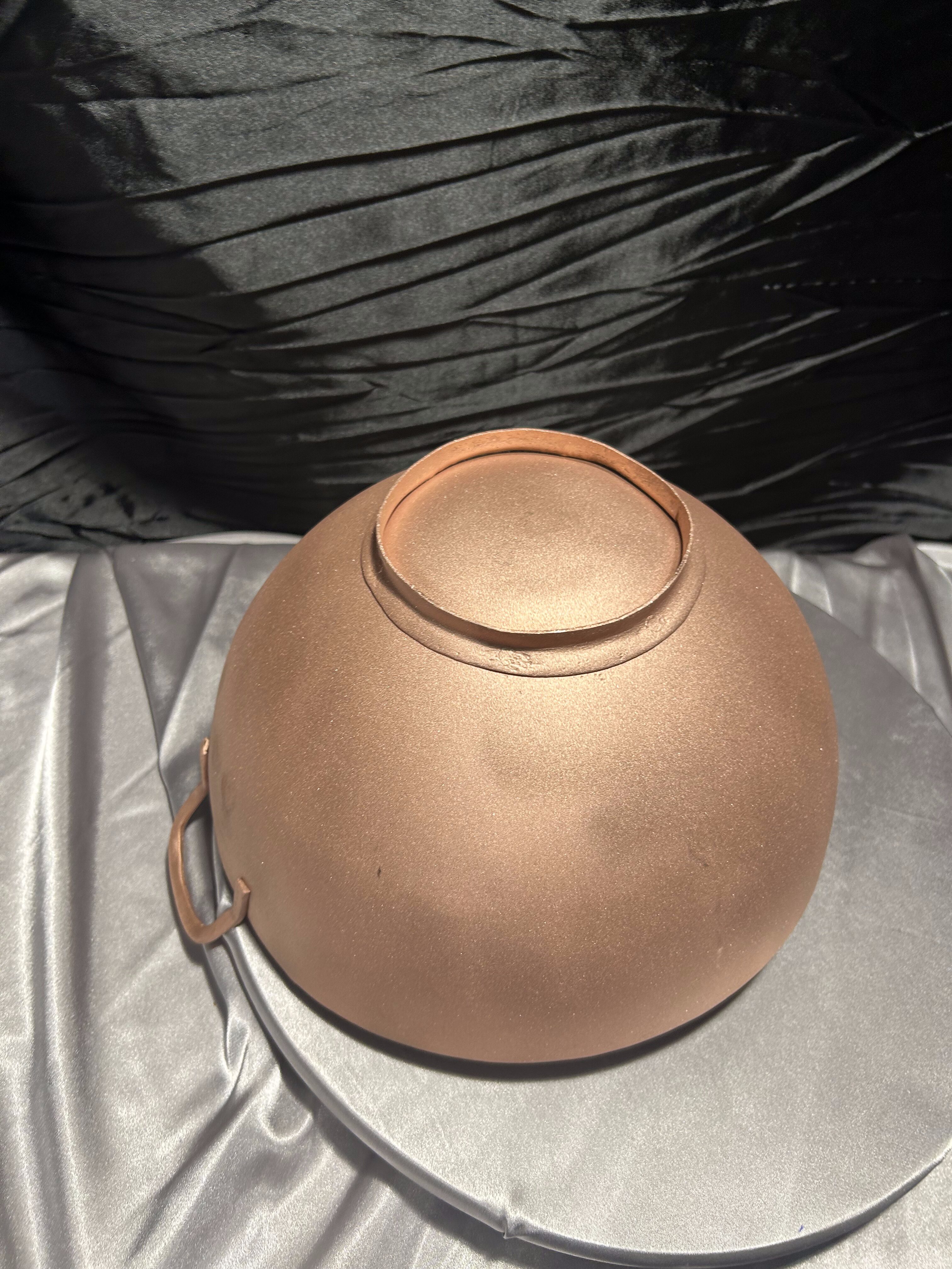 Oferuję elegancką misę miedzianą o prostej, klasycznej formie. Solidnie wykonana, z dwoma uchwytami po bokach, stanowi zarówno praktyczne naczynie, jak i wyjątkowy element dekoracyjny we wnętrzu.