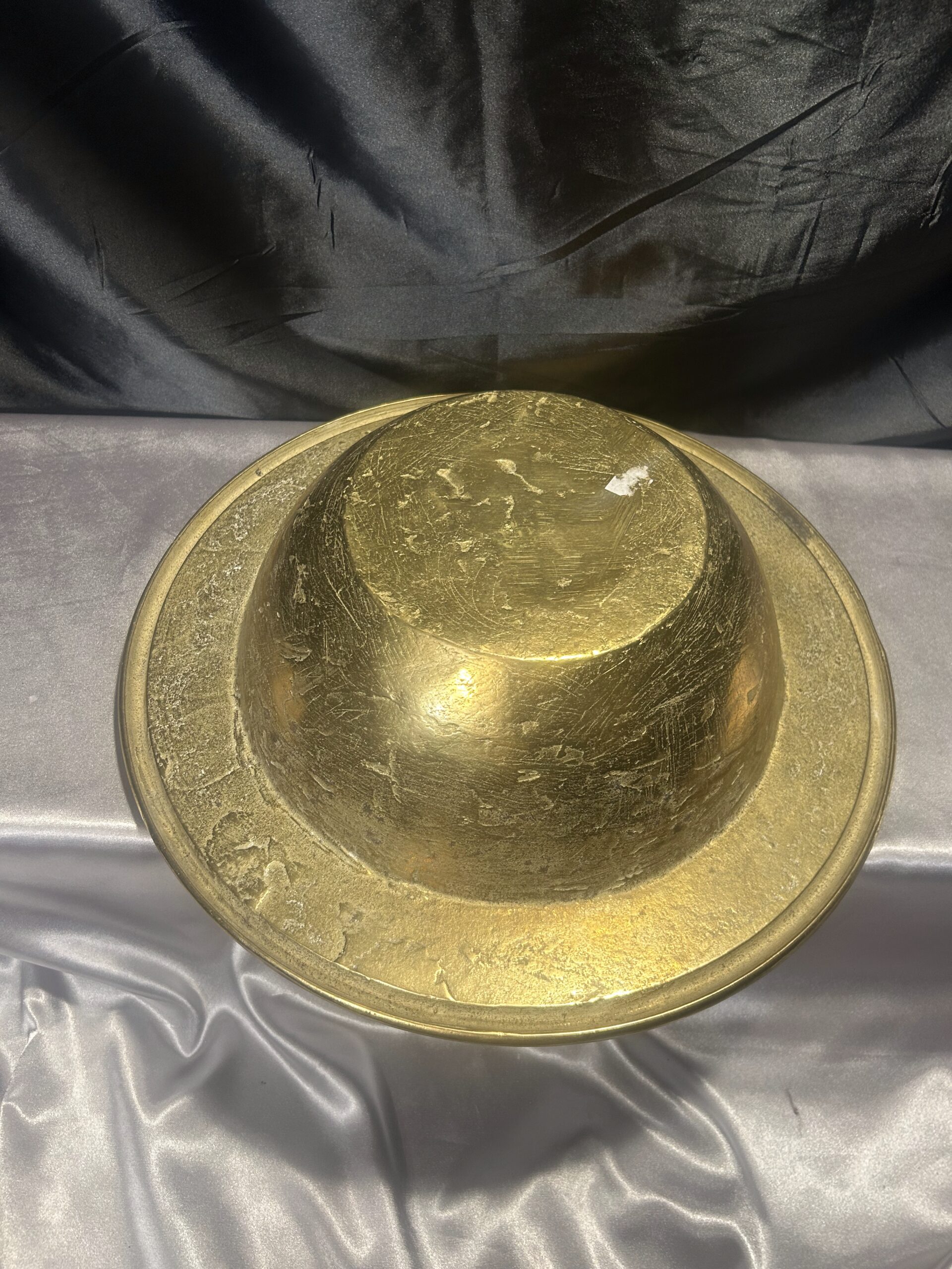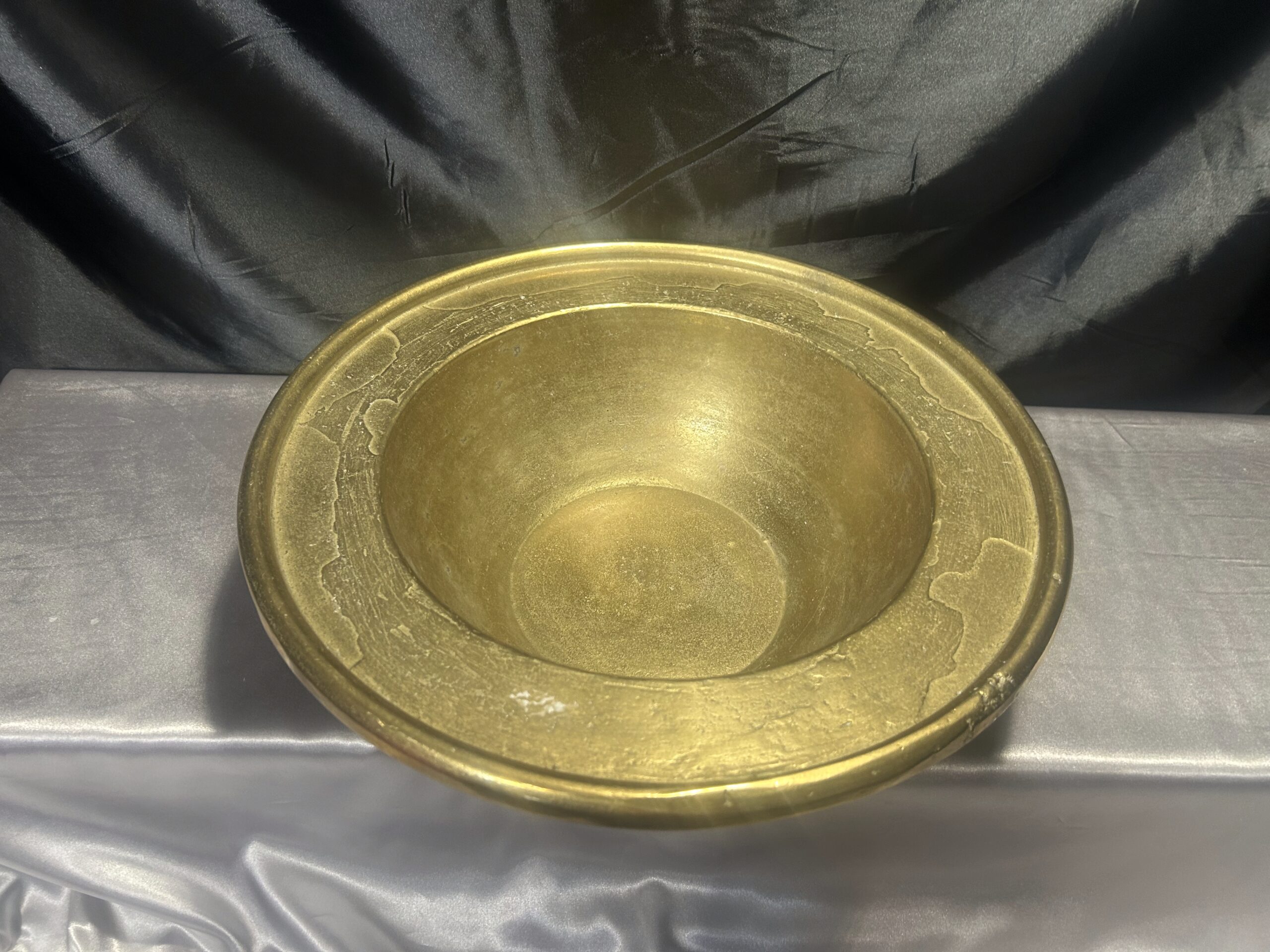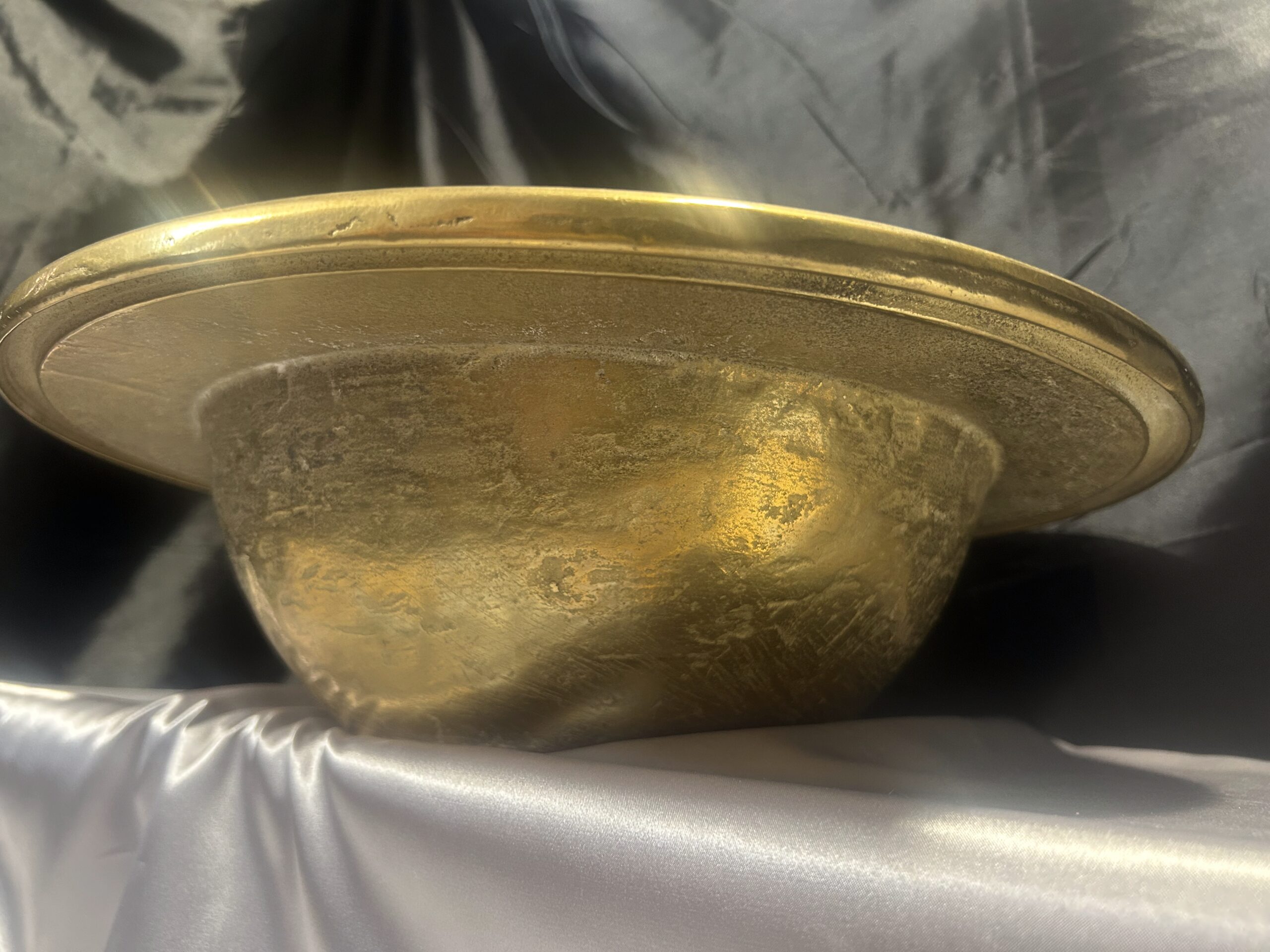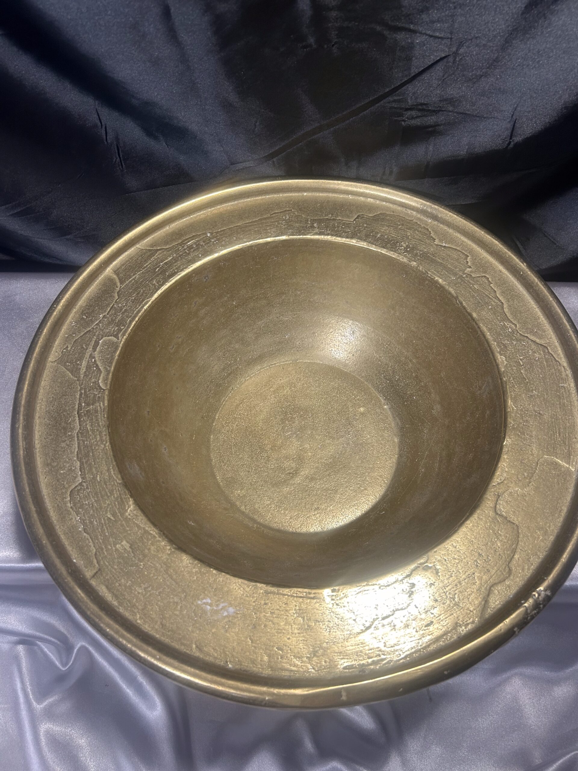 Niepowtarzalna i wyjątkowa misa patera wykonana z wysokiej jakości mosiądzu. Charakteryzuje się masywną konstrukcją (waga 5,8 kg), szerokim zdobionym rantem oraz głębokim, eleganckim kształtem. Idealna jako element dekoracyjny lub funkcjonalny do przechowywania.