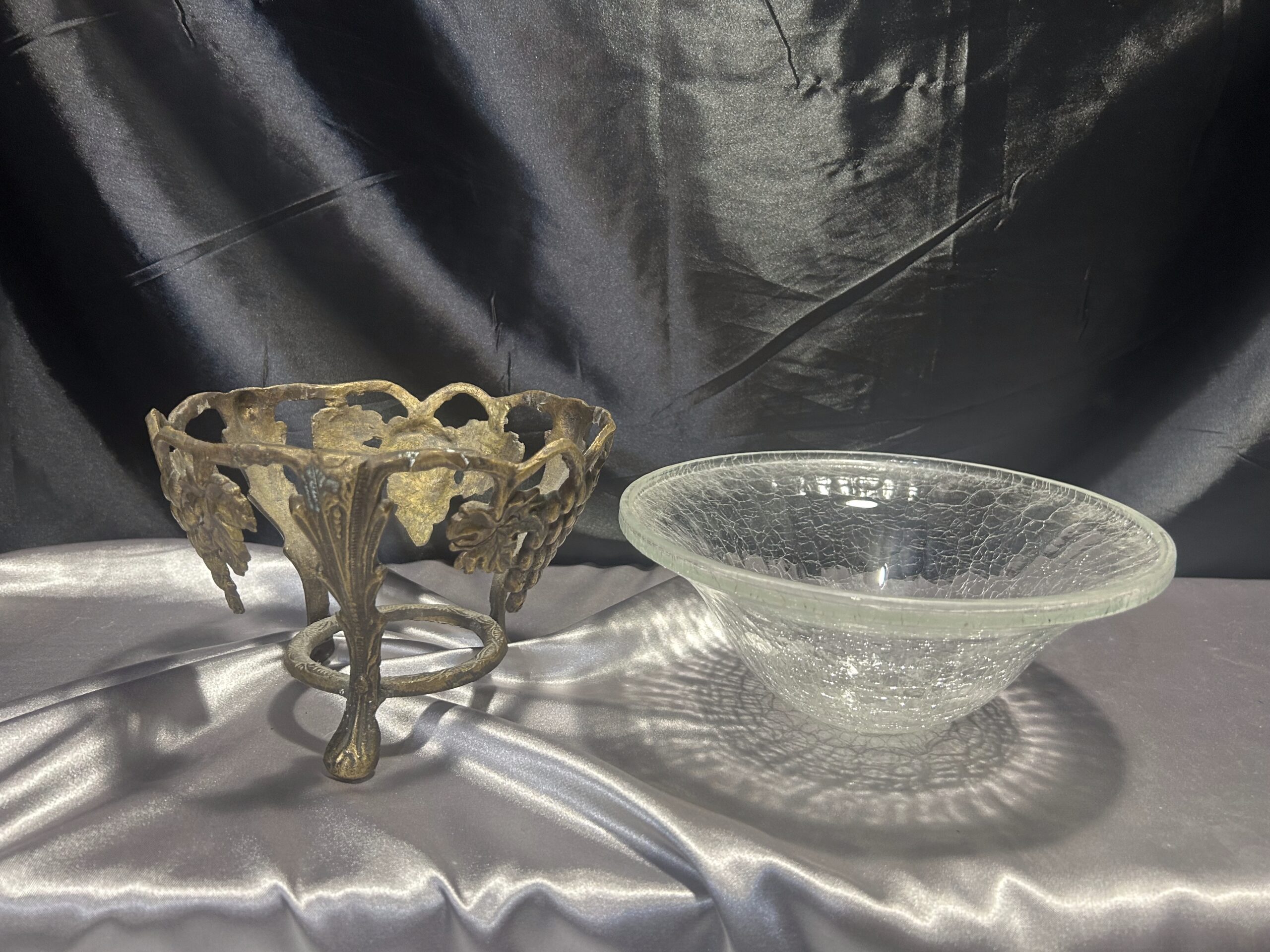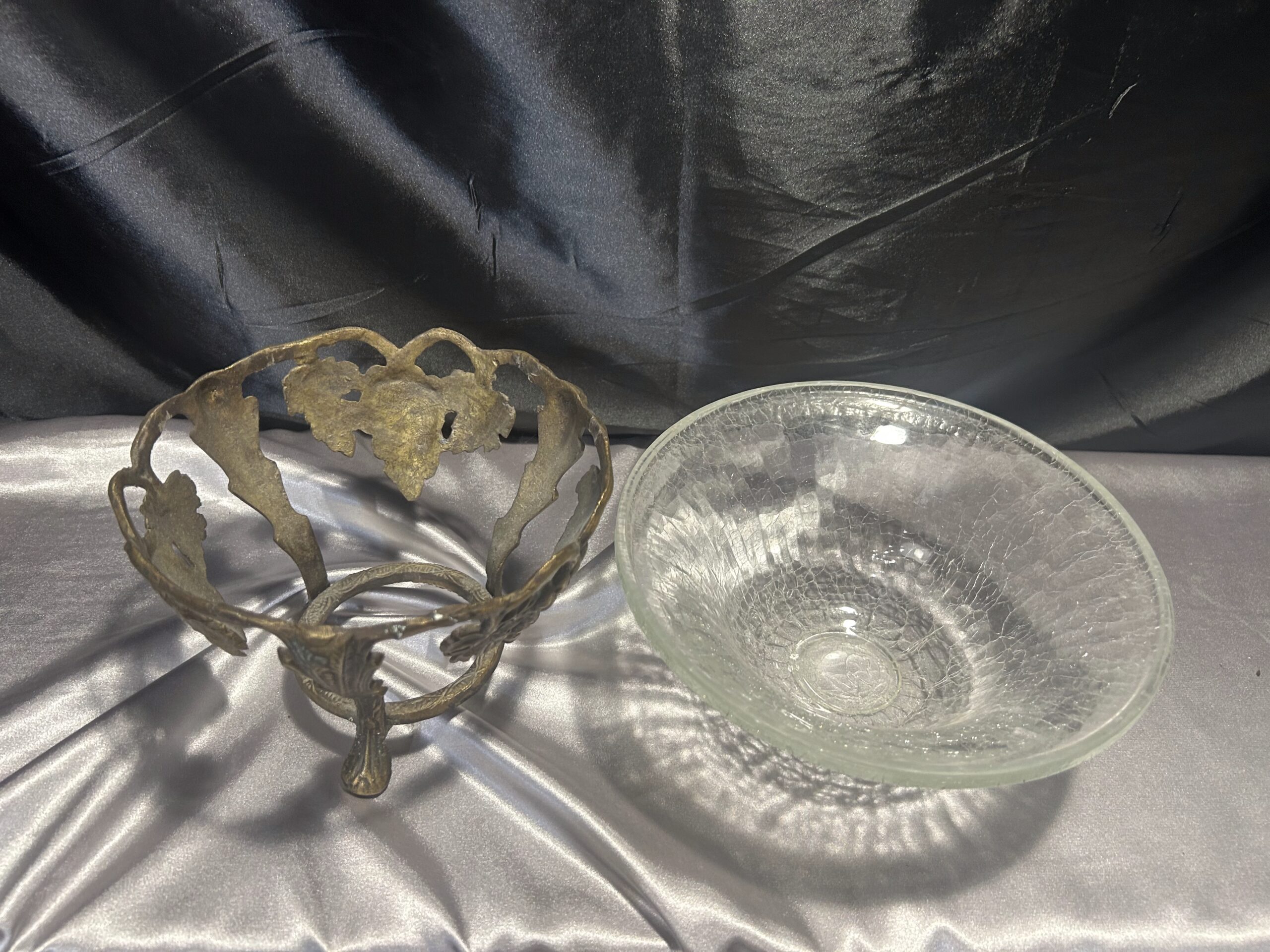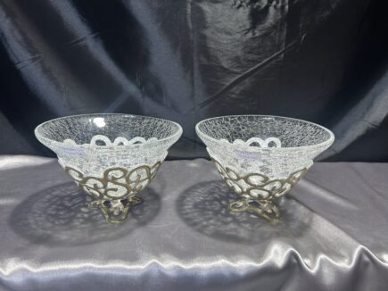 Zestaw Dwóch Mis / Pater – Połączenie Popękanego Szkła i Zdobionego Metalu