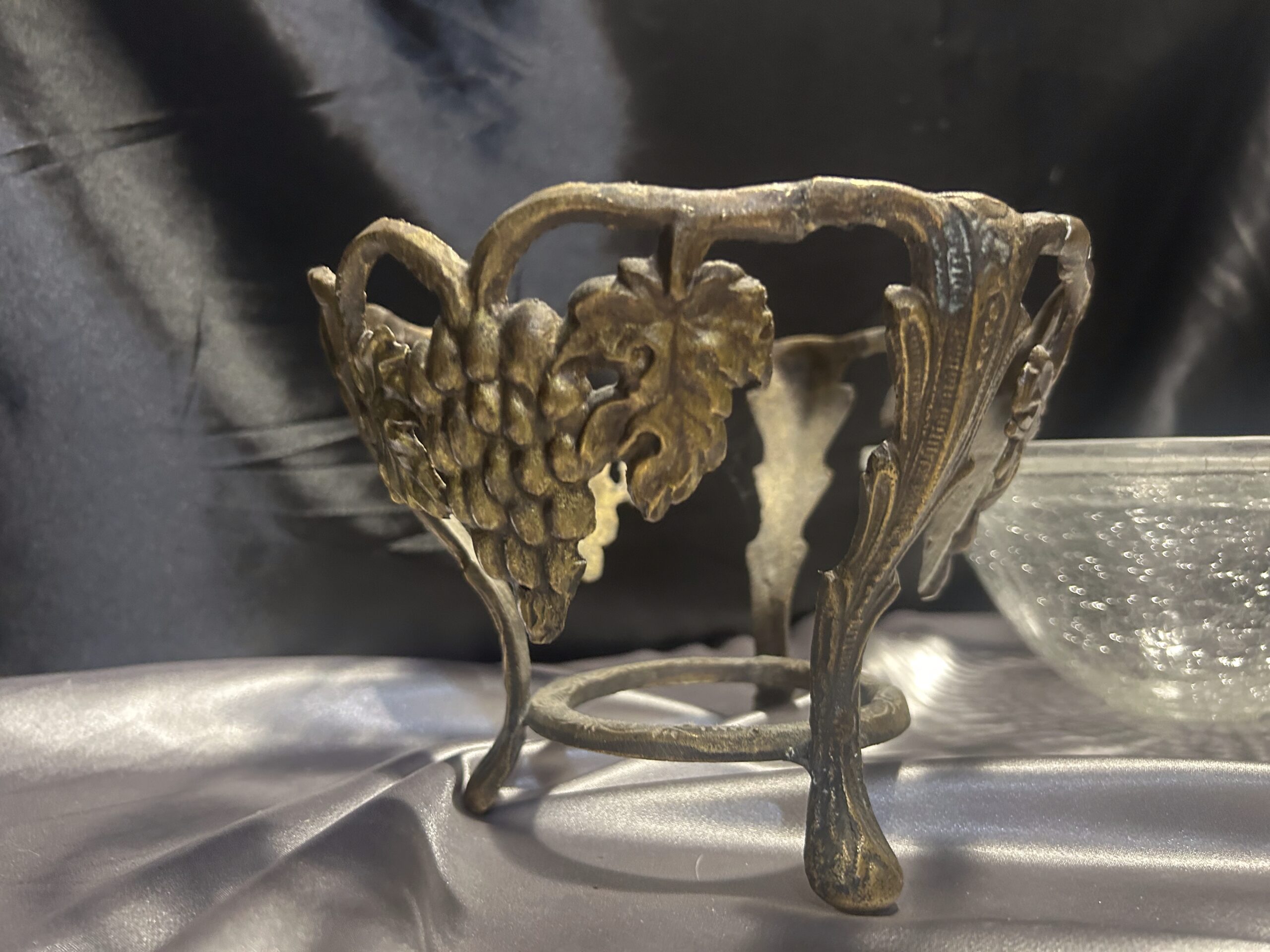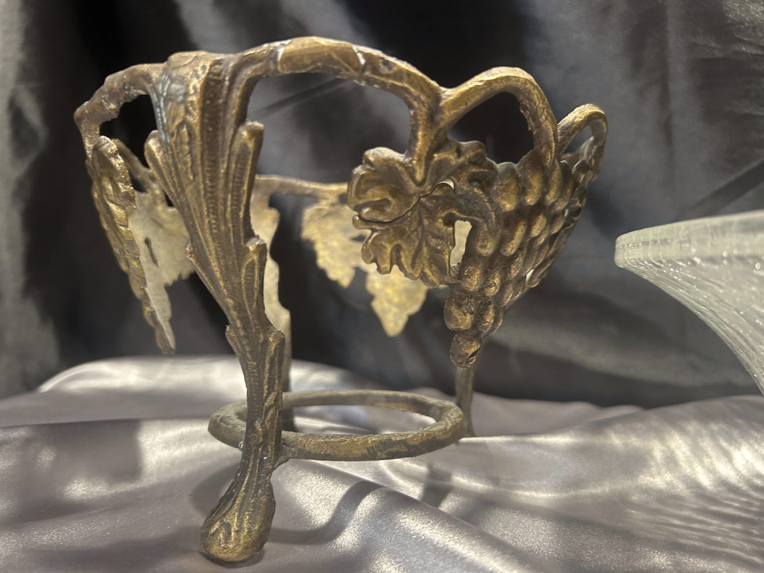 - Misa / Patera z Popękanego Szkła i Zdobionego Mosiądzu – Motyw Winogron