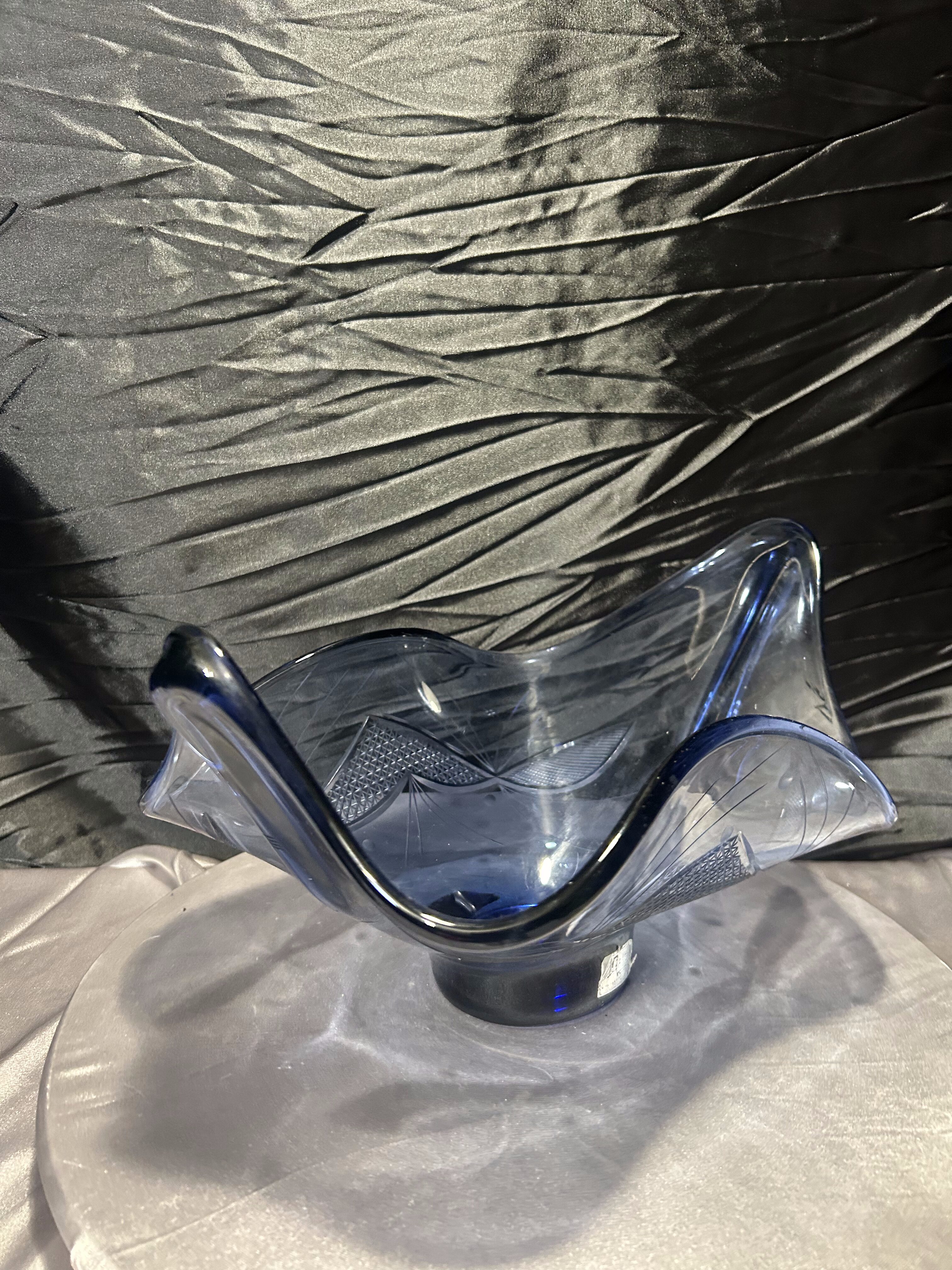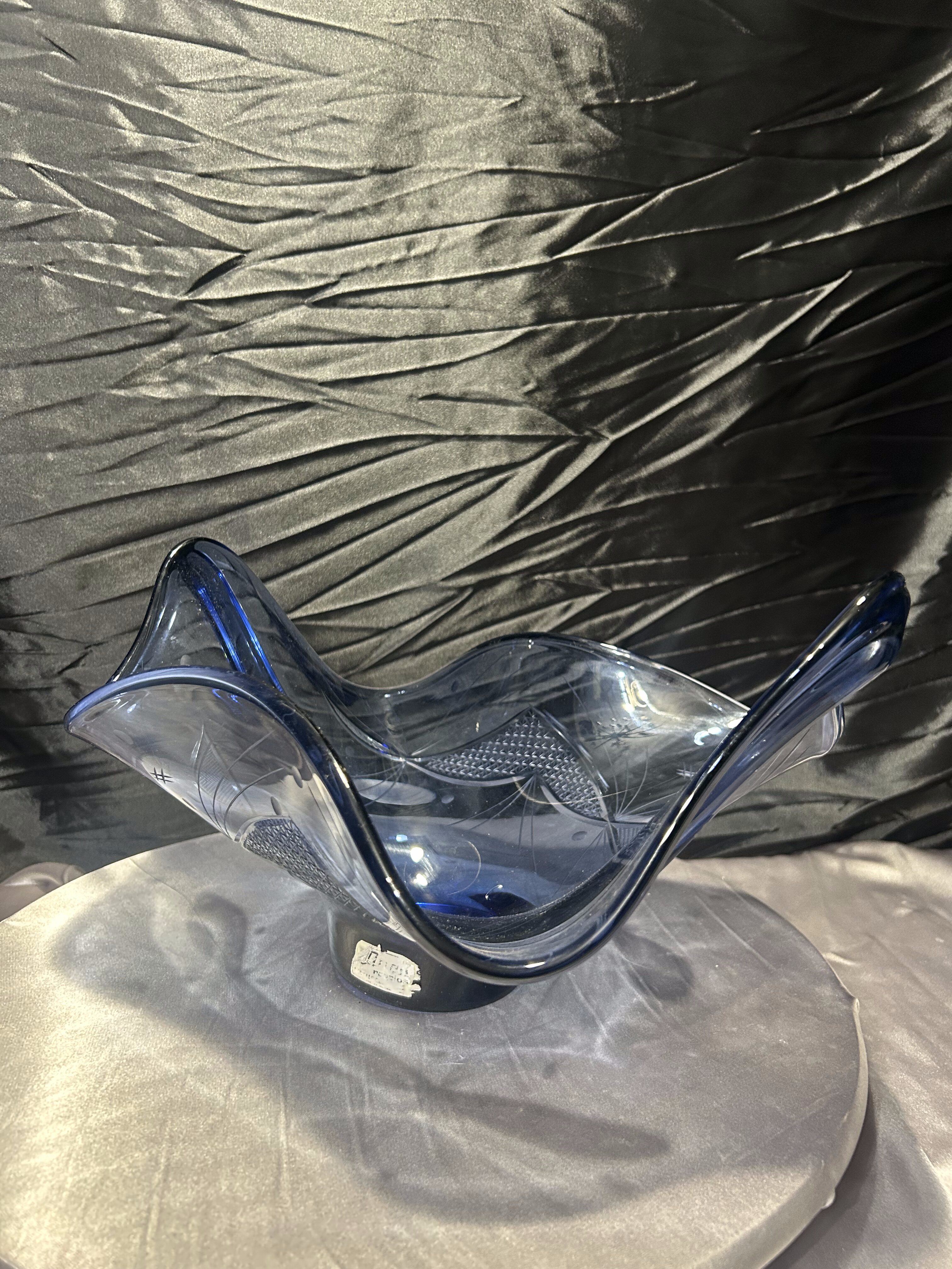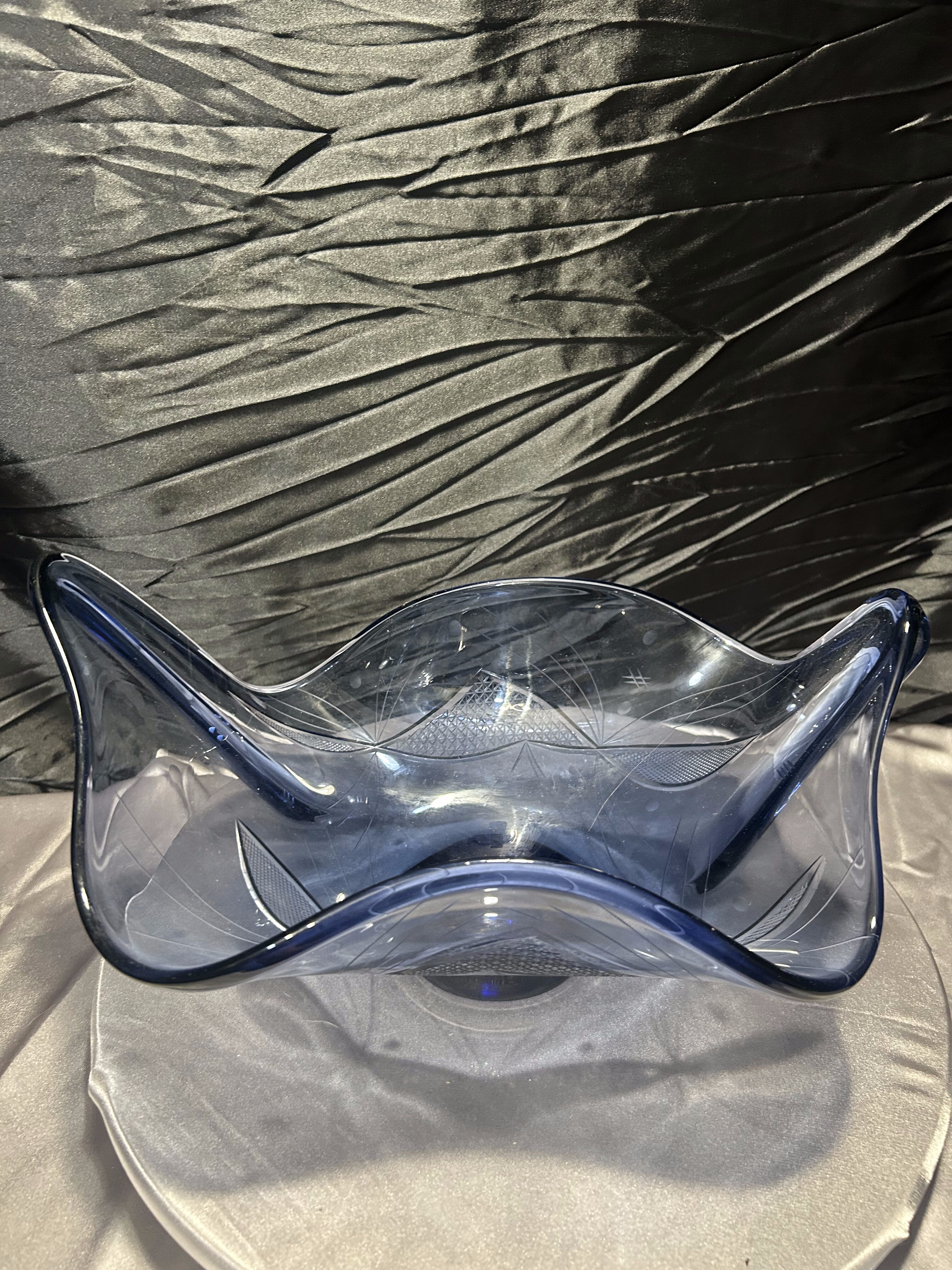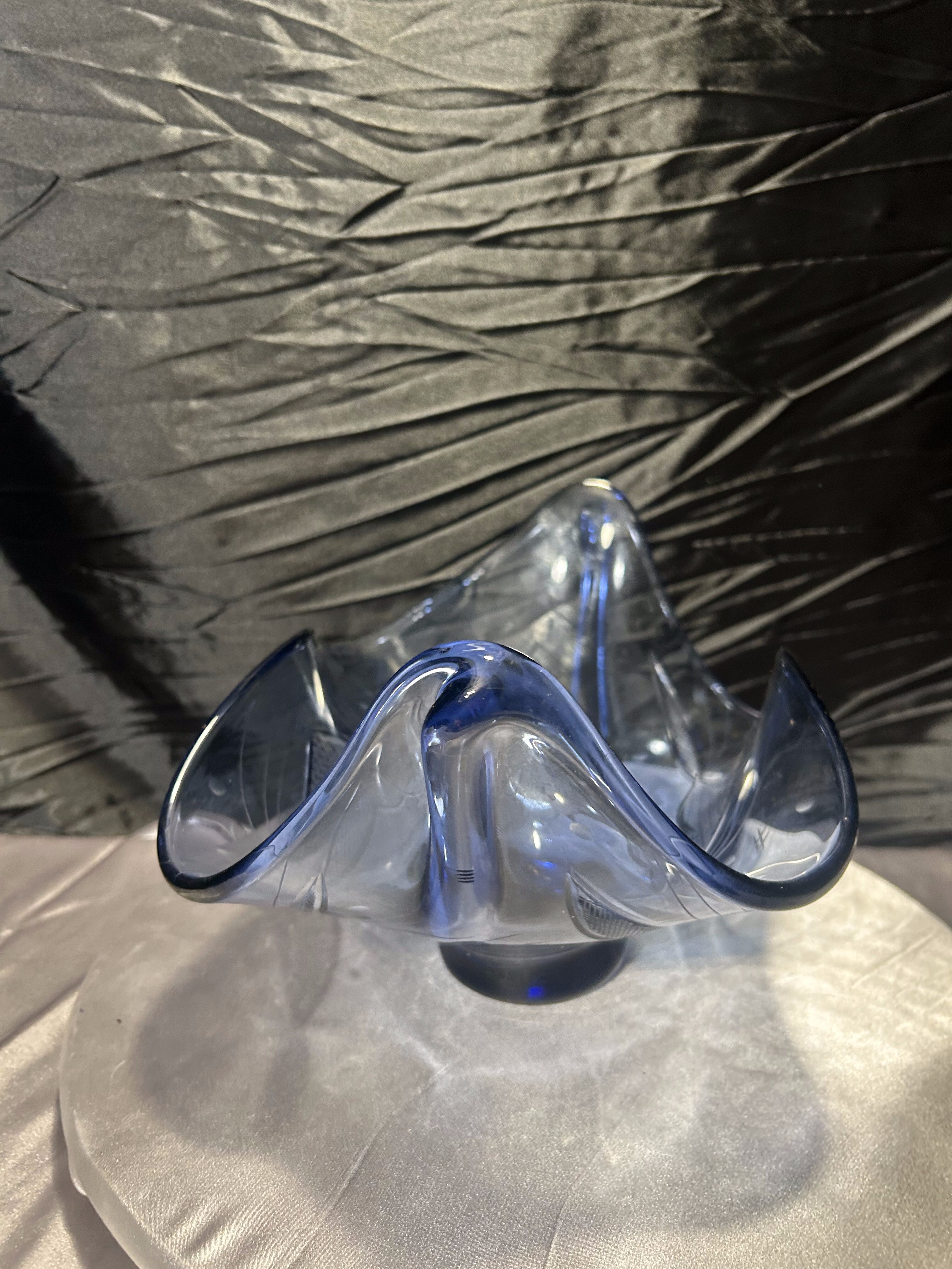 Misa szklana Erel – niebieska z falującym brzegiem – szkło artystyczne