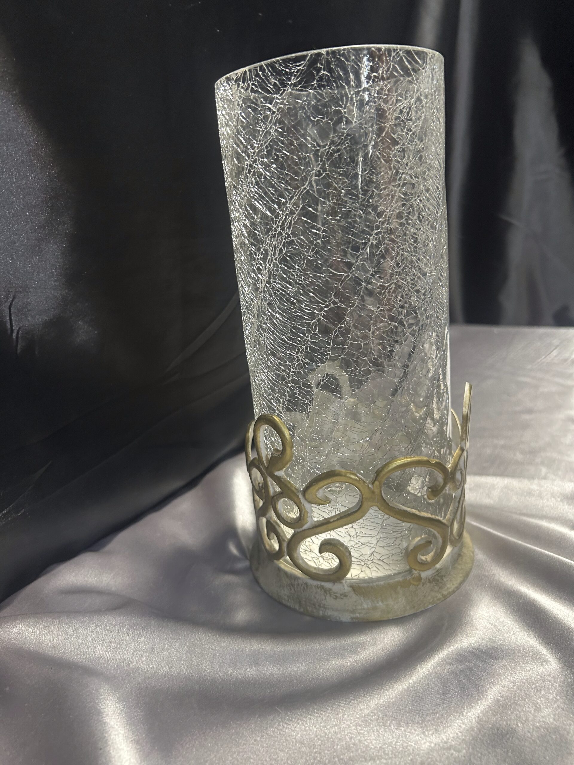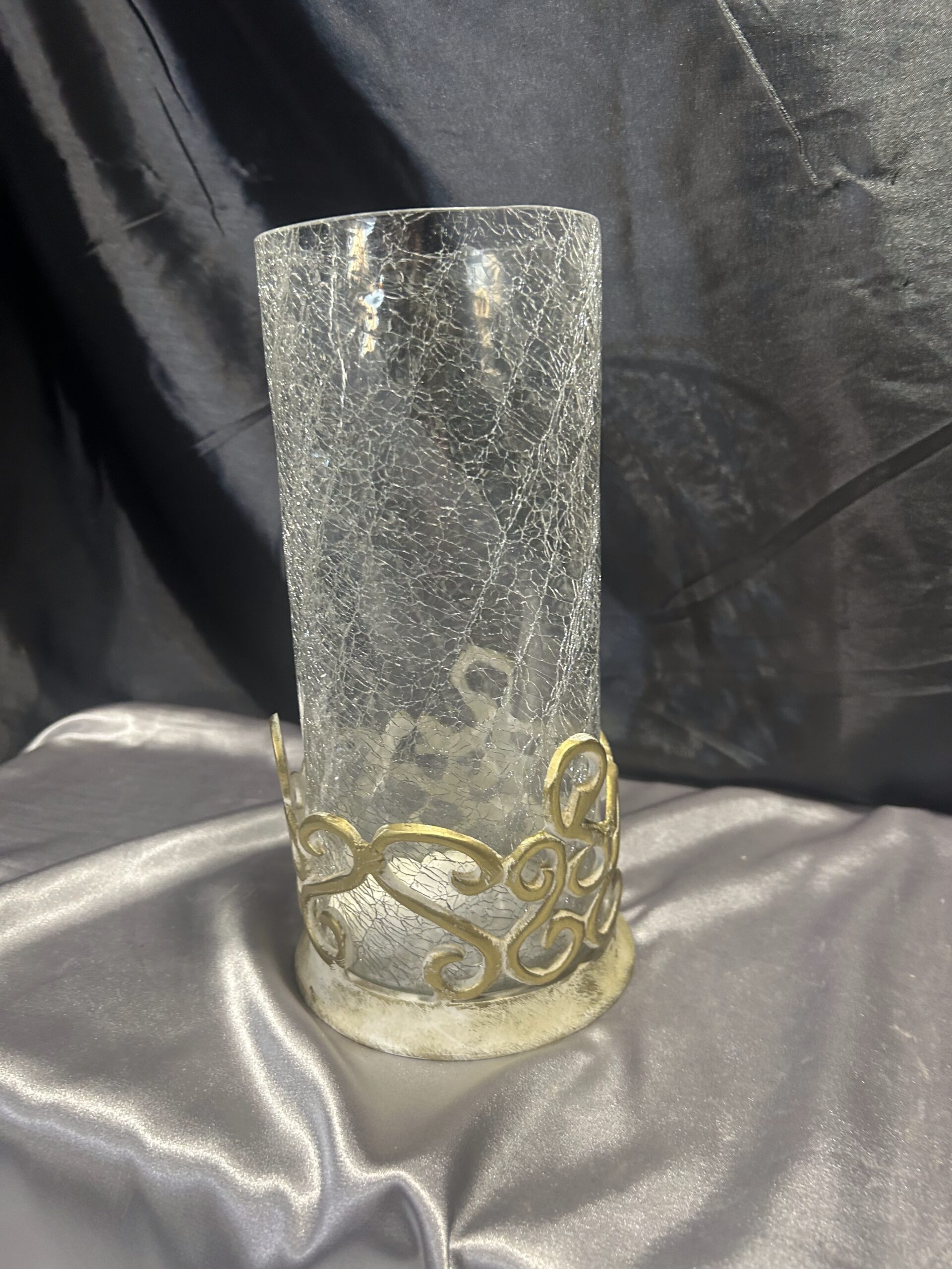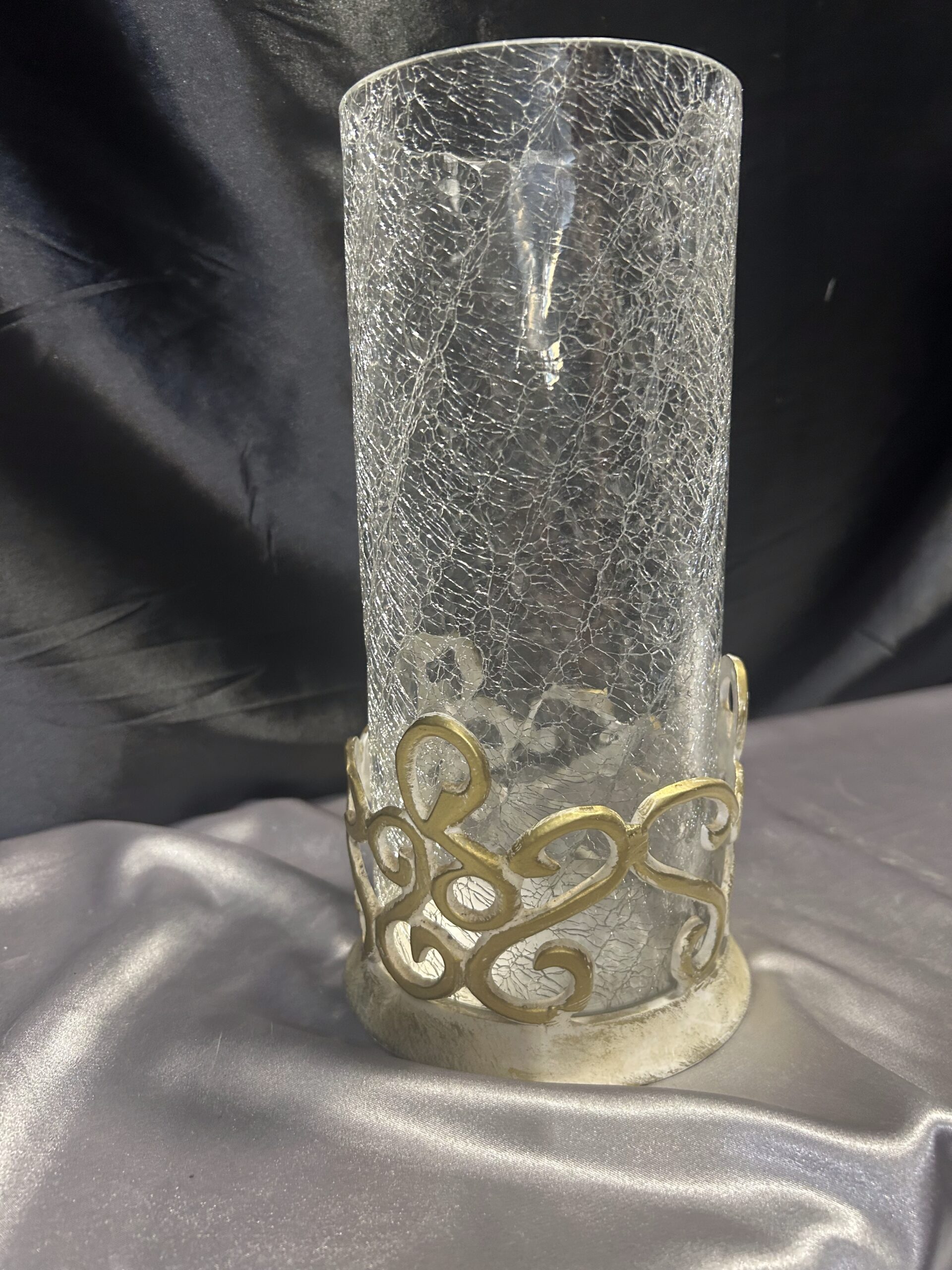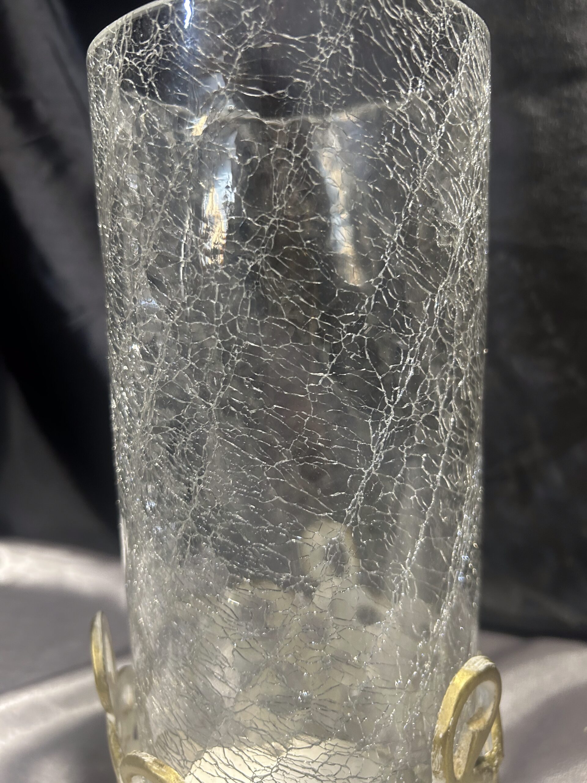 - Materiał: szkło popękane, zdobiony metal