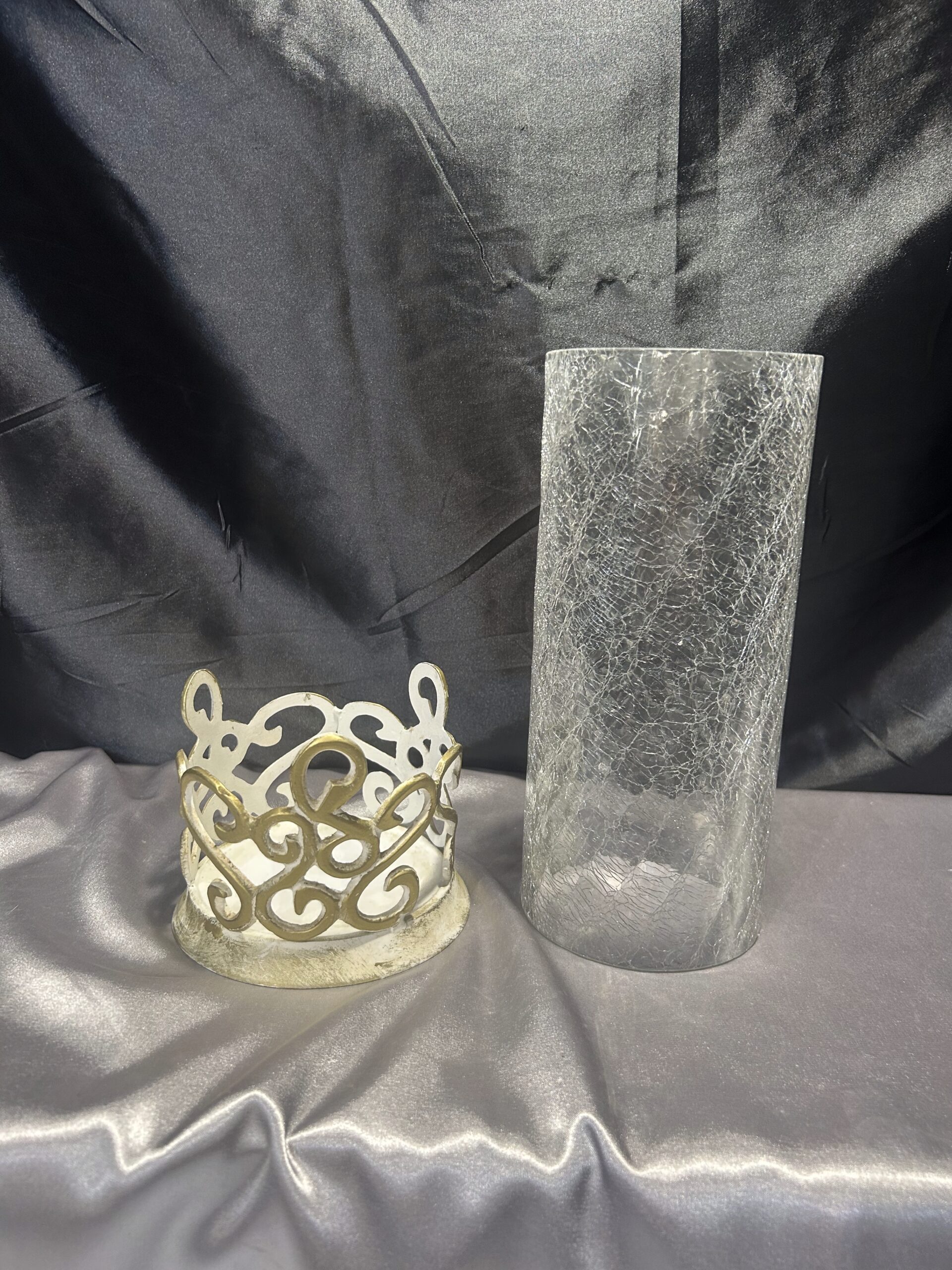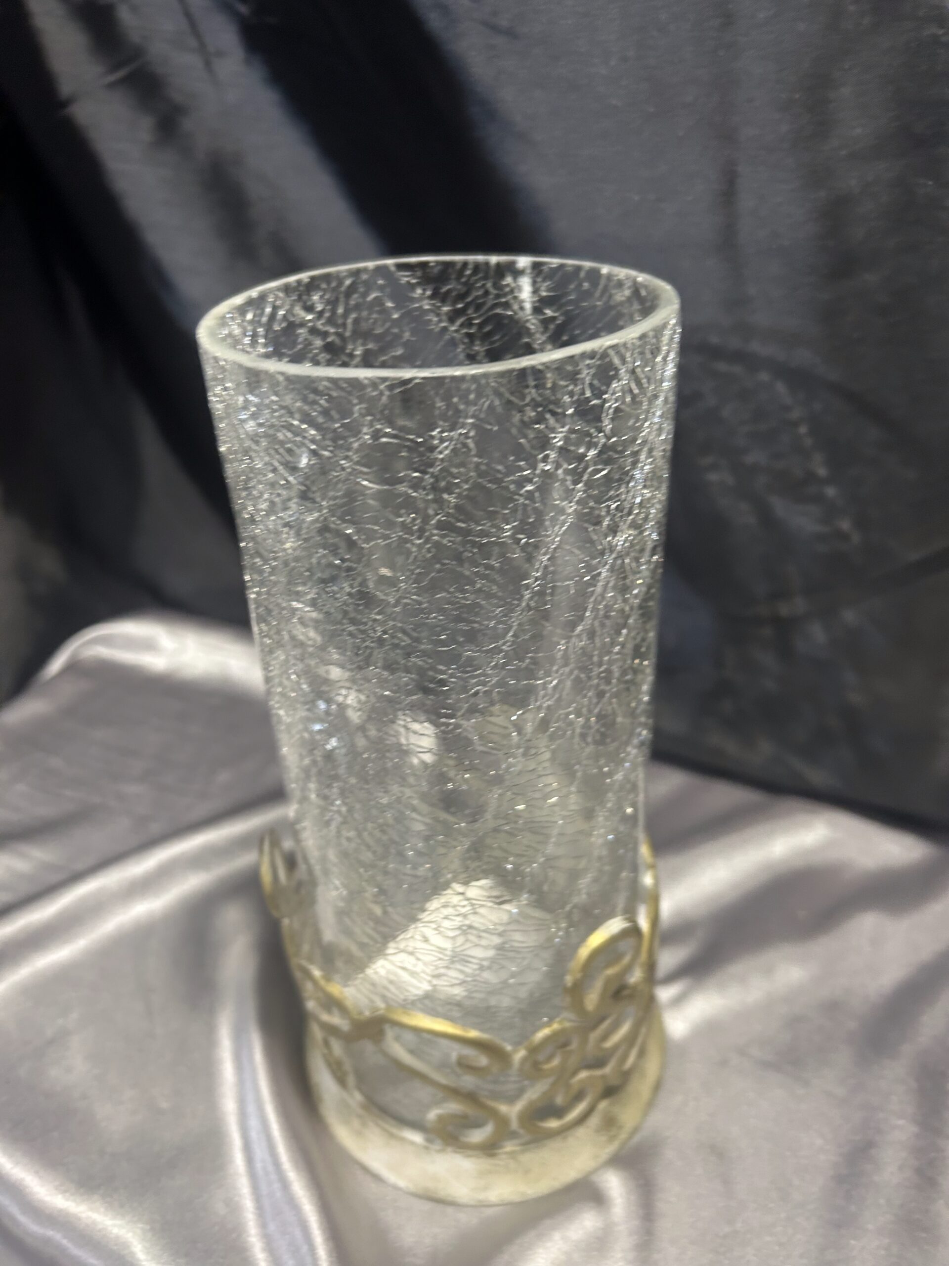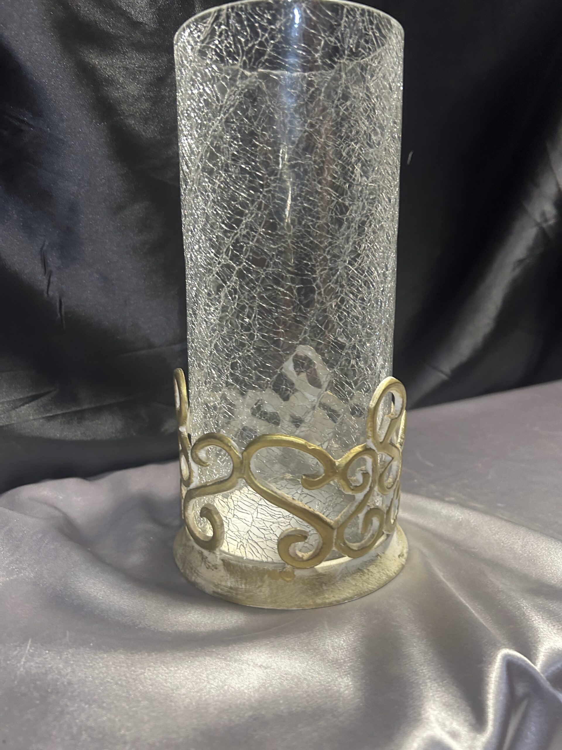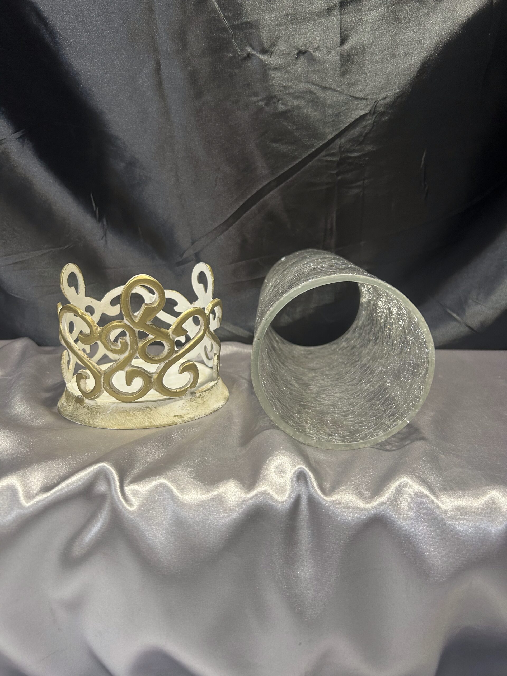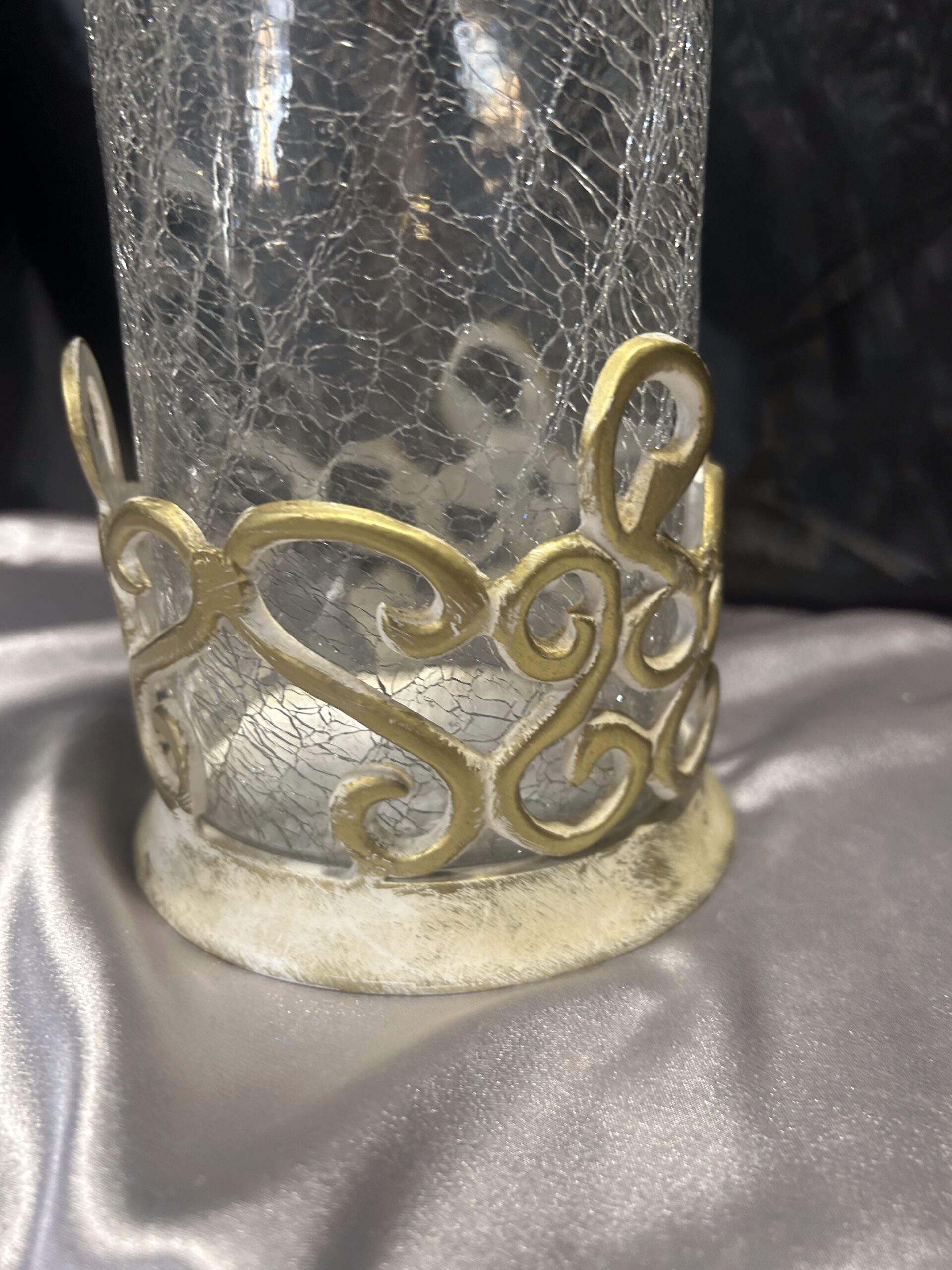- Materiał: szkło popękane, zdobiony metal