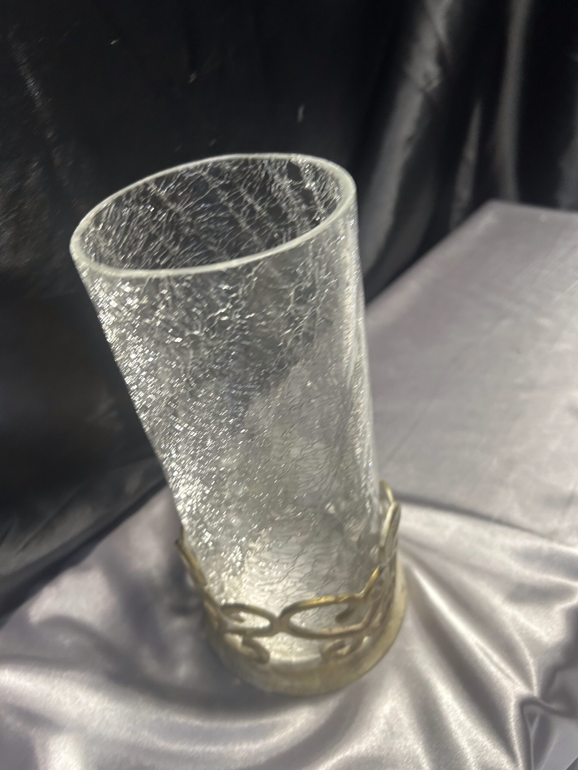 Misa w Formie Flakonu bez Spodu – Popękane Szkło i Zdobiony Metal