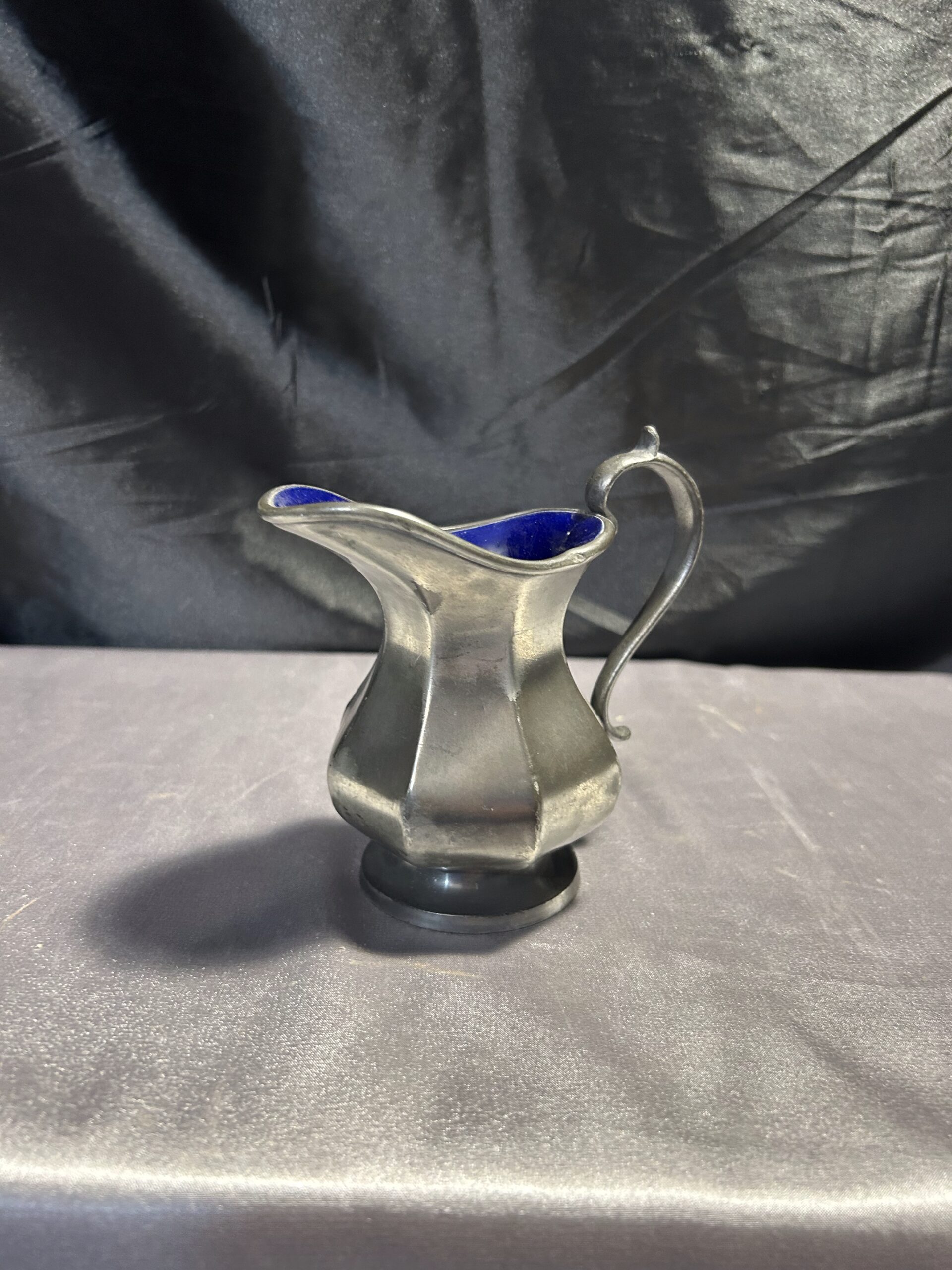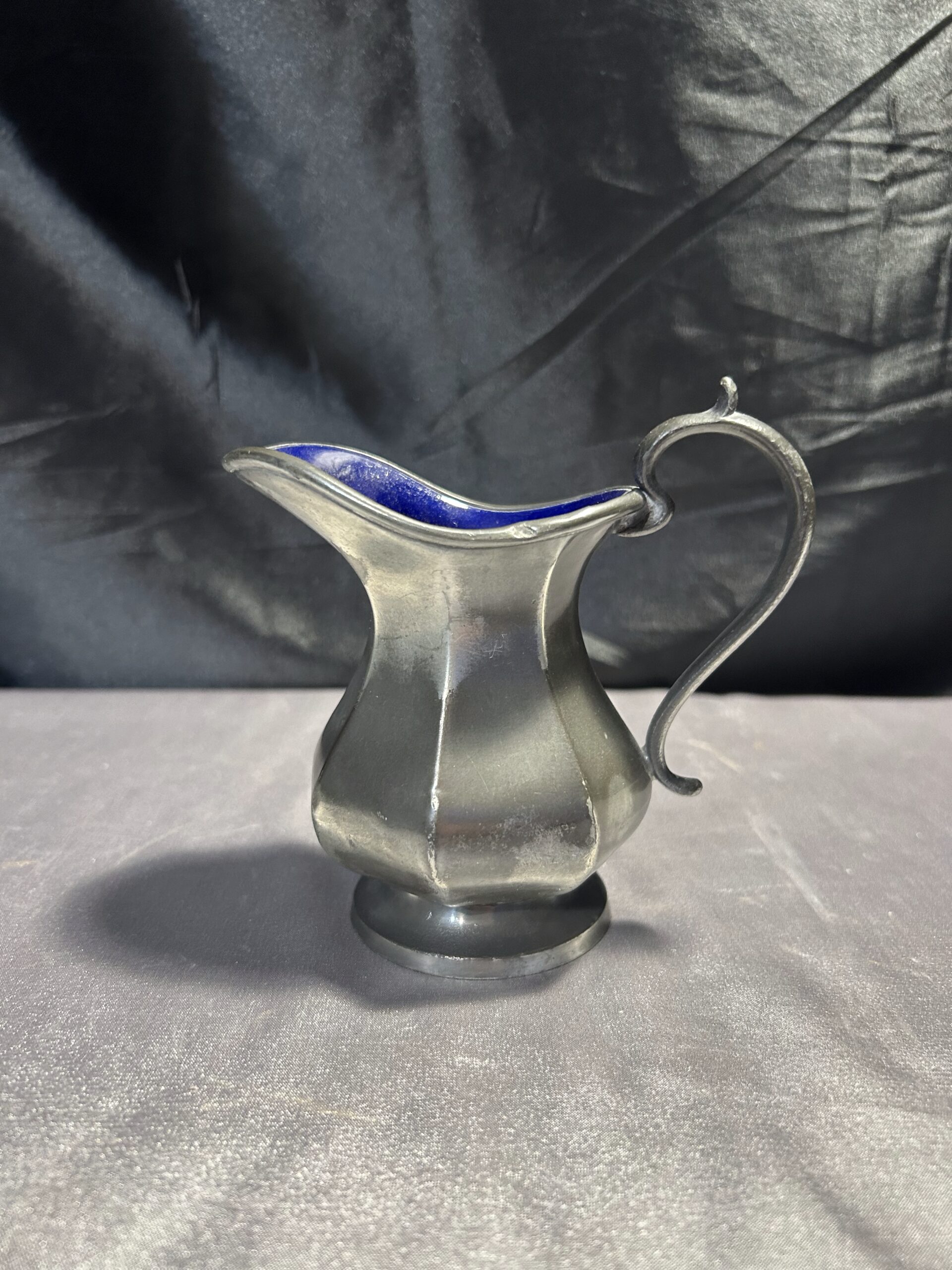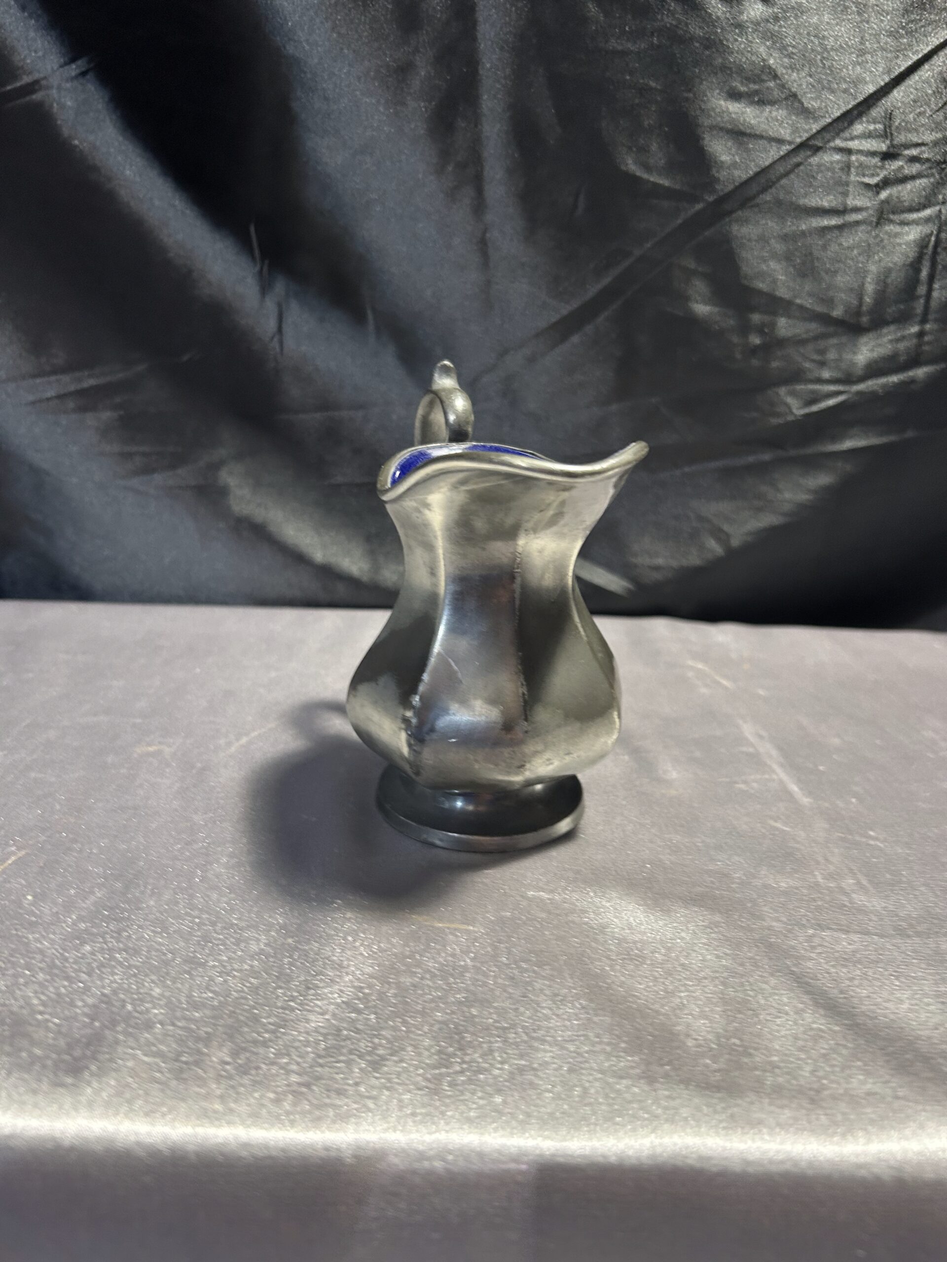 Stylowy metalowy mlecznik w srebrnym kolorze, powlekany błyszczącą powłoką w granatowym kolorze wewnątrz. Klasyczna forma i sygnatura BROADHEAD & ATKIN IELD 5696 czynią go wyjątkowym dodatkiem do stołowej zastawy.
