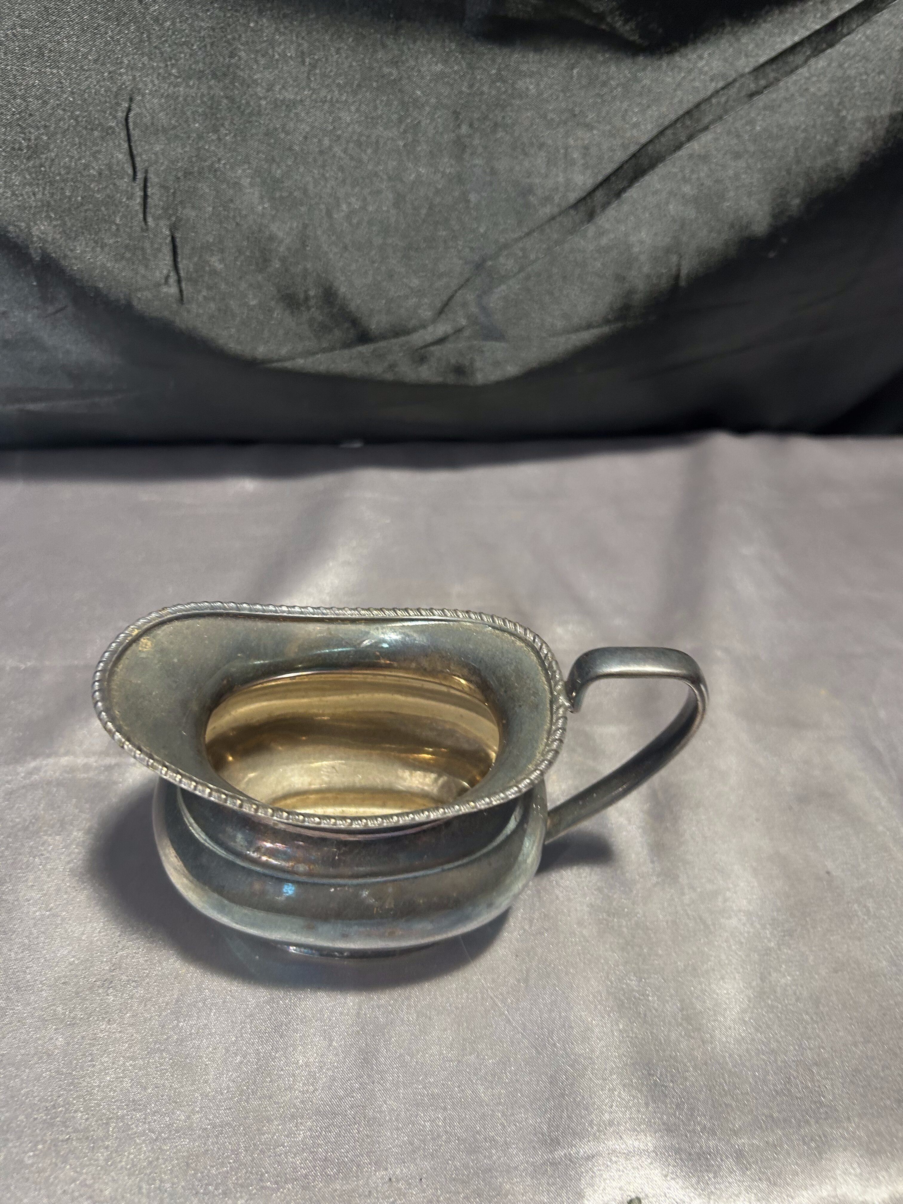 Opis: Przedstawiam elegancki mlecznik wykonany w renomowanym ośrodku sztuki srebrniczej – Sheffield w Anglii. Produkt sygnowany inicjałami EHP, z oznaczeniem EPNS (Electro Plated Nickel Silver), świadczącym o wysokiej jakości wykonania: bazą jest niklowany stop metali, na który metodą galwaniczną naniesiono cienką warstwę srebra.