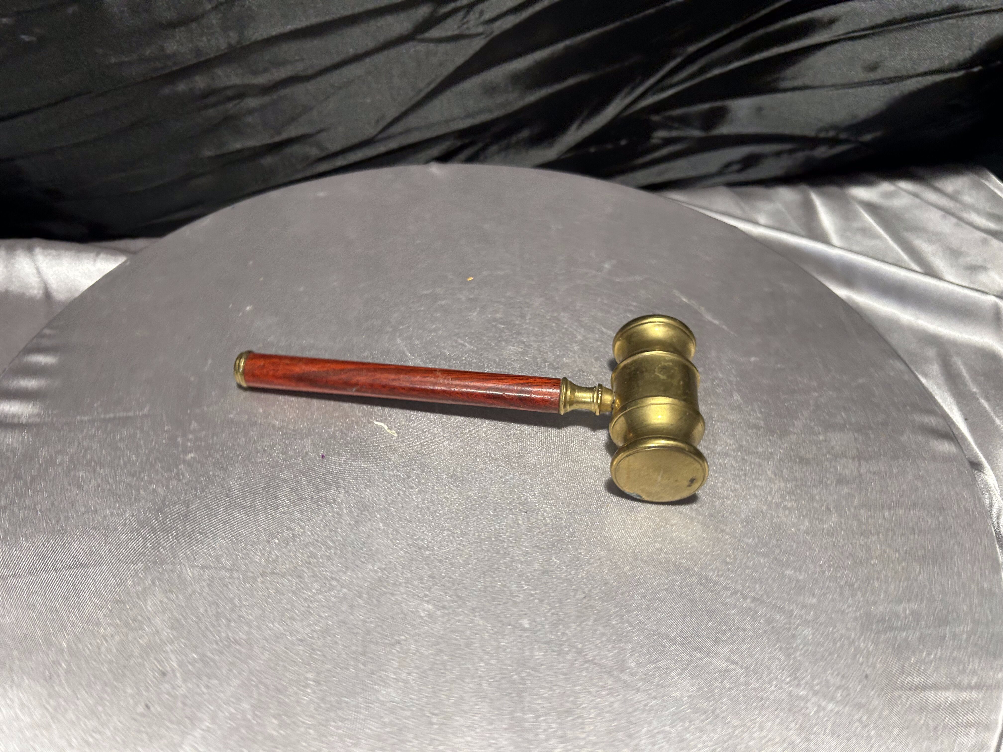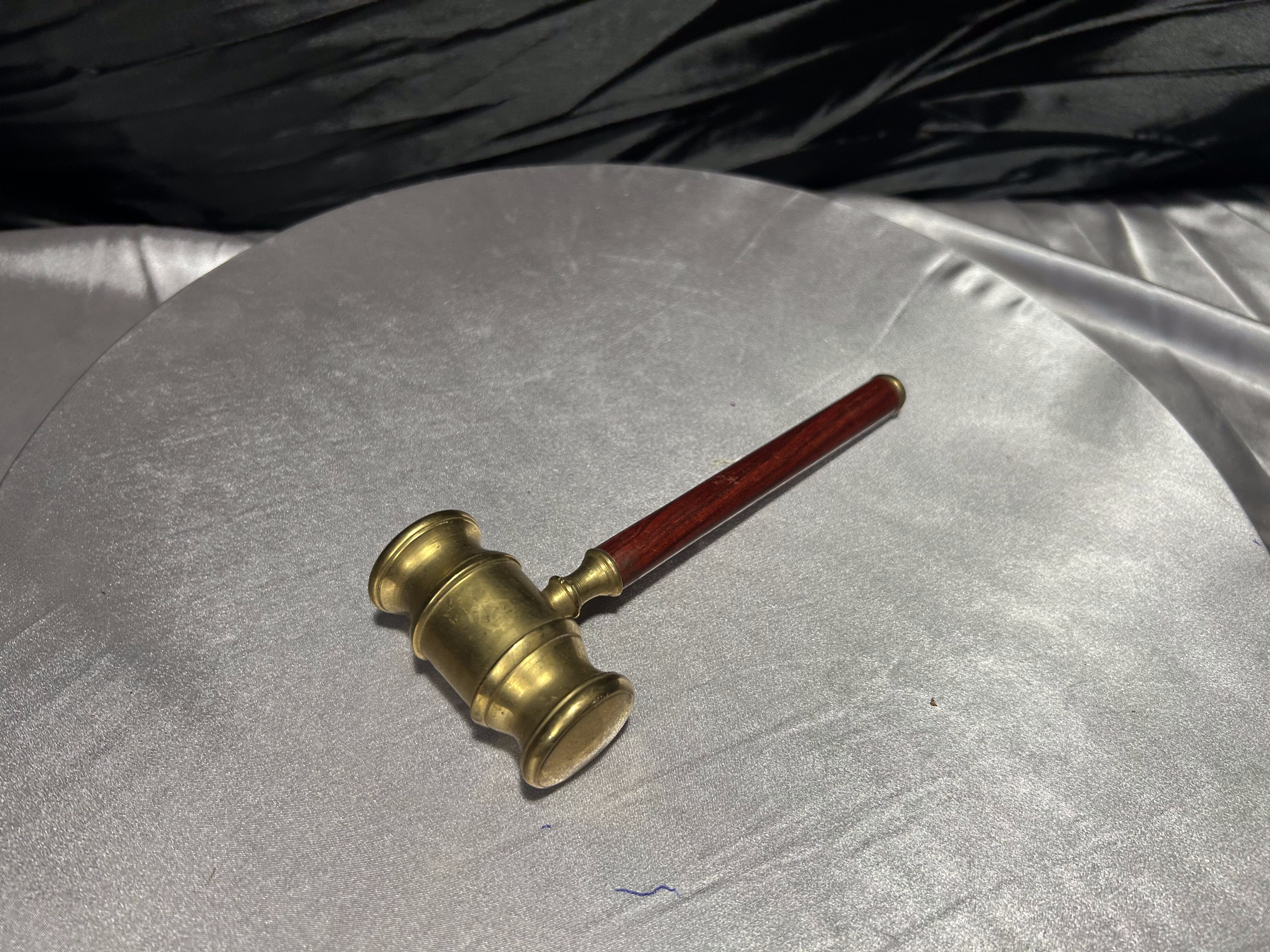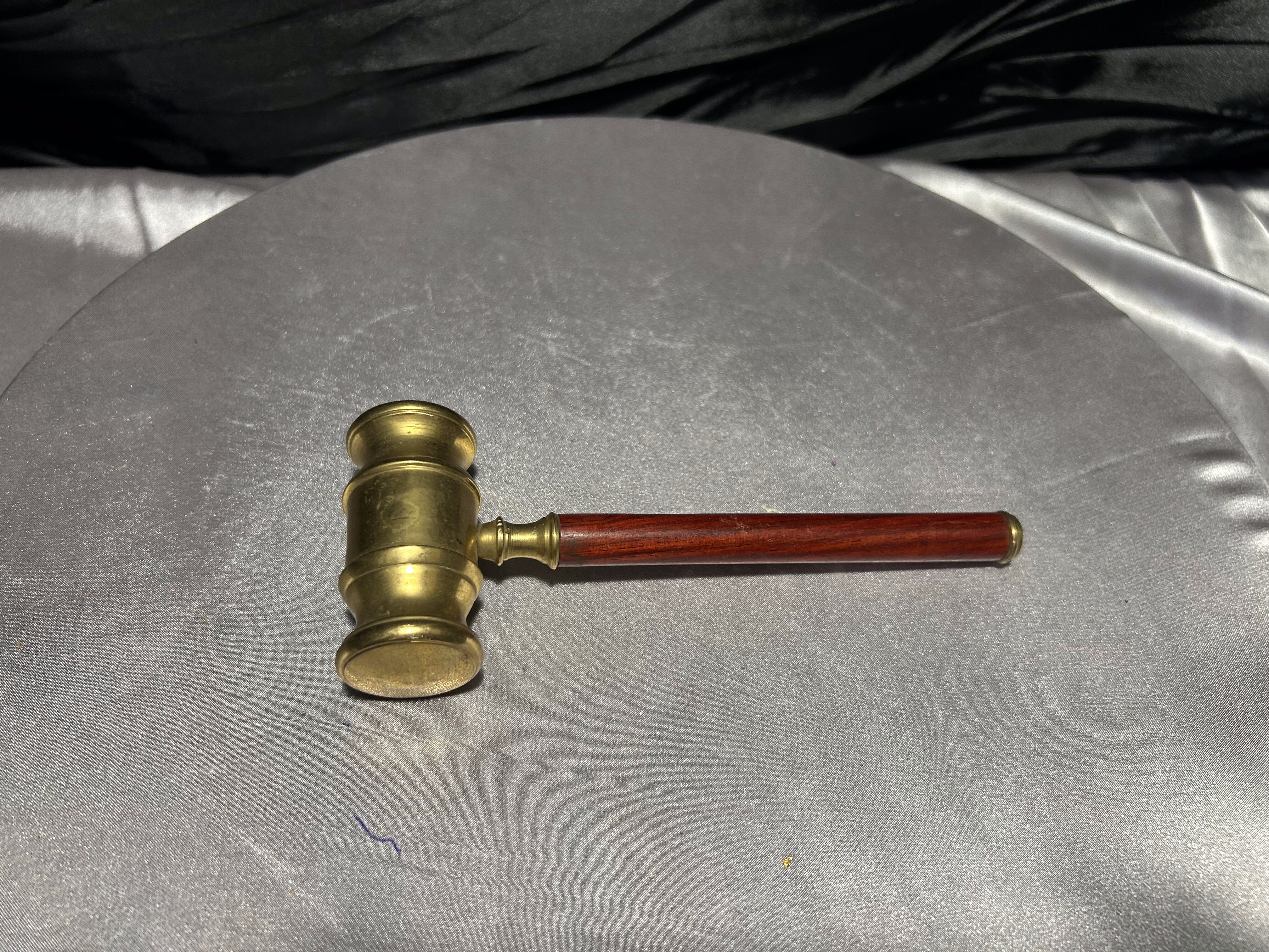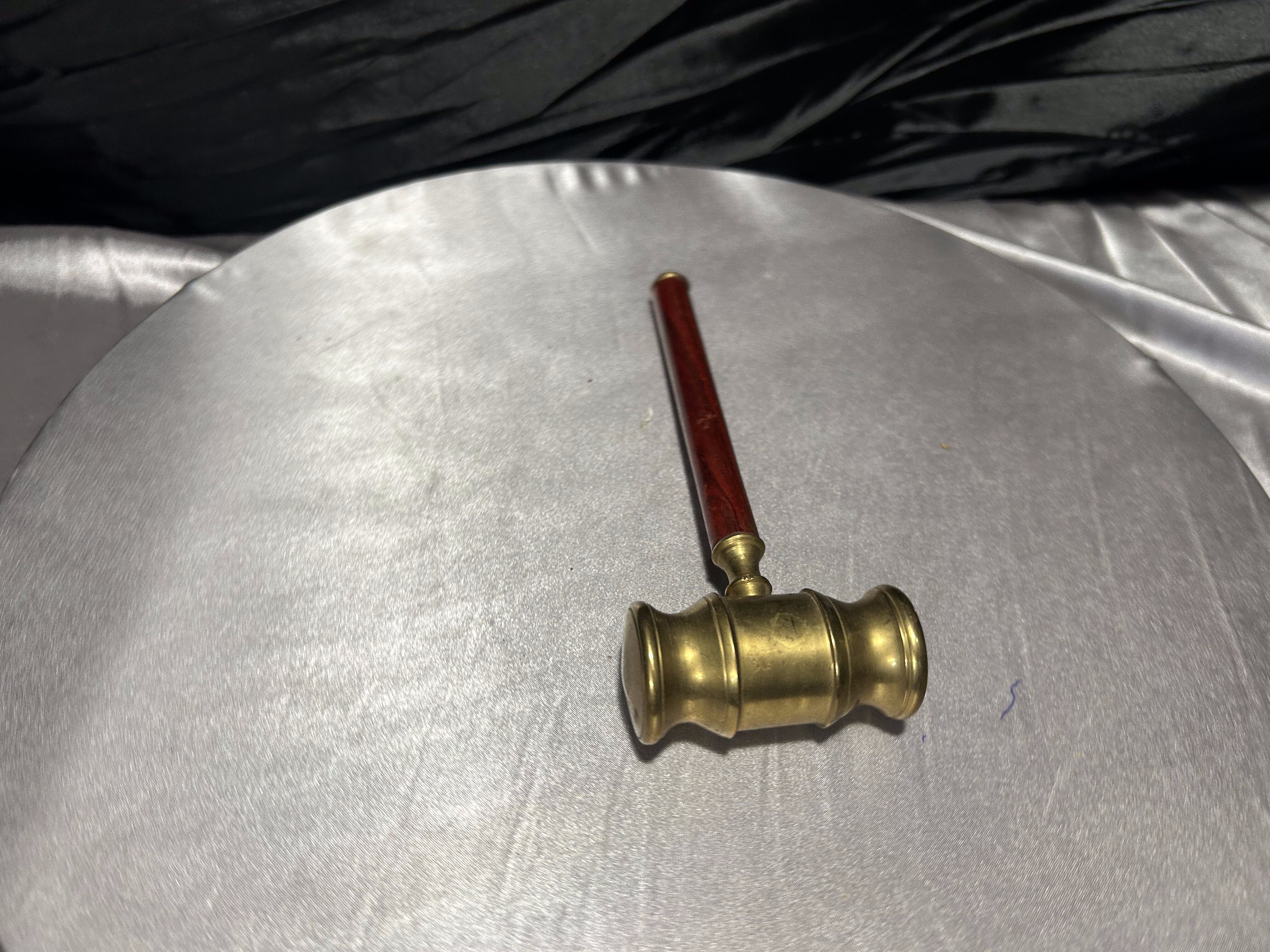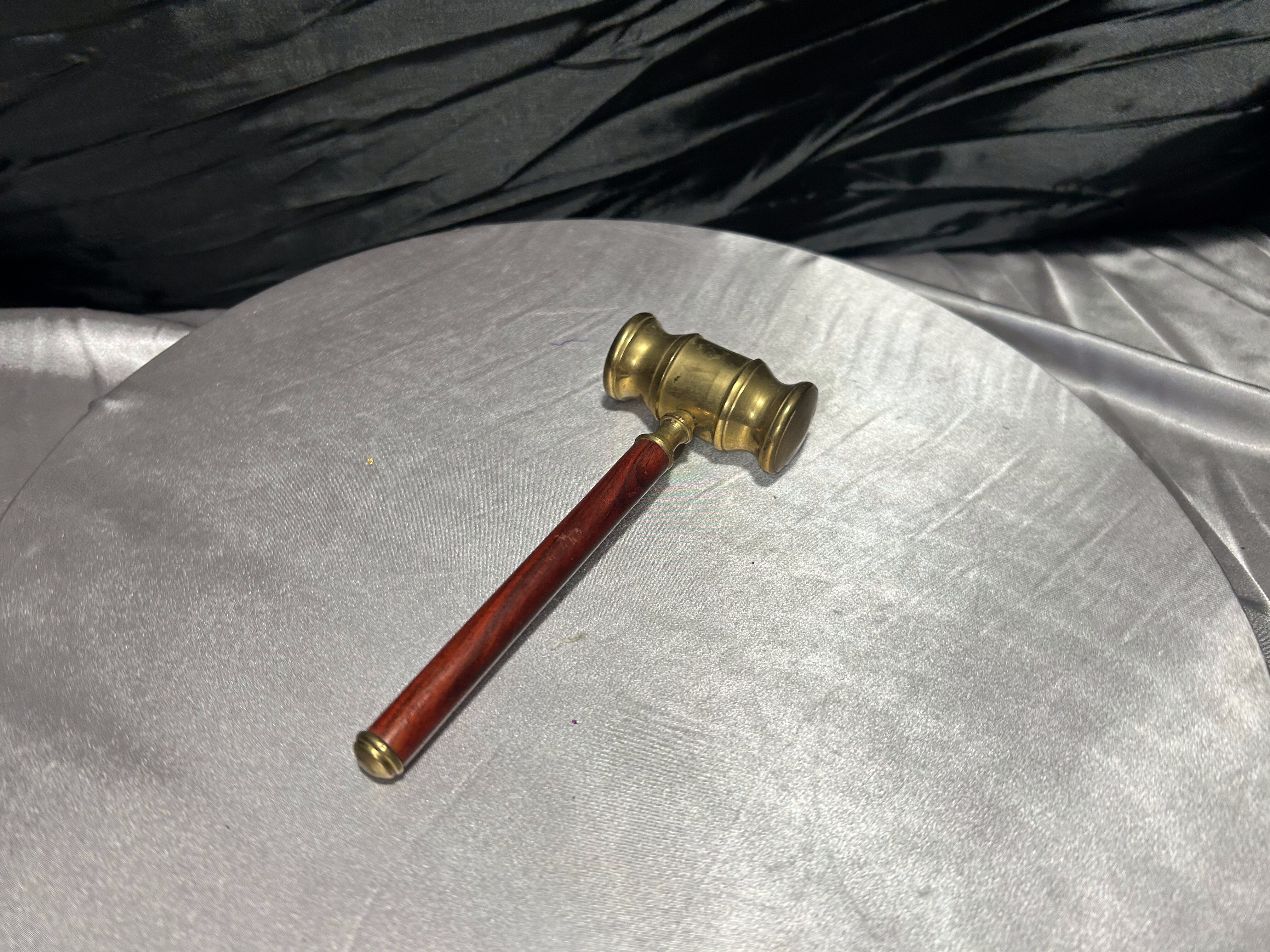 Młotek aukcyjny – mosiądz i drewno – klasyczny styl