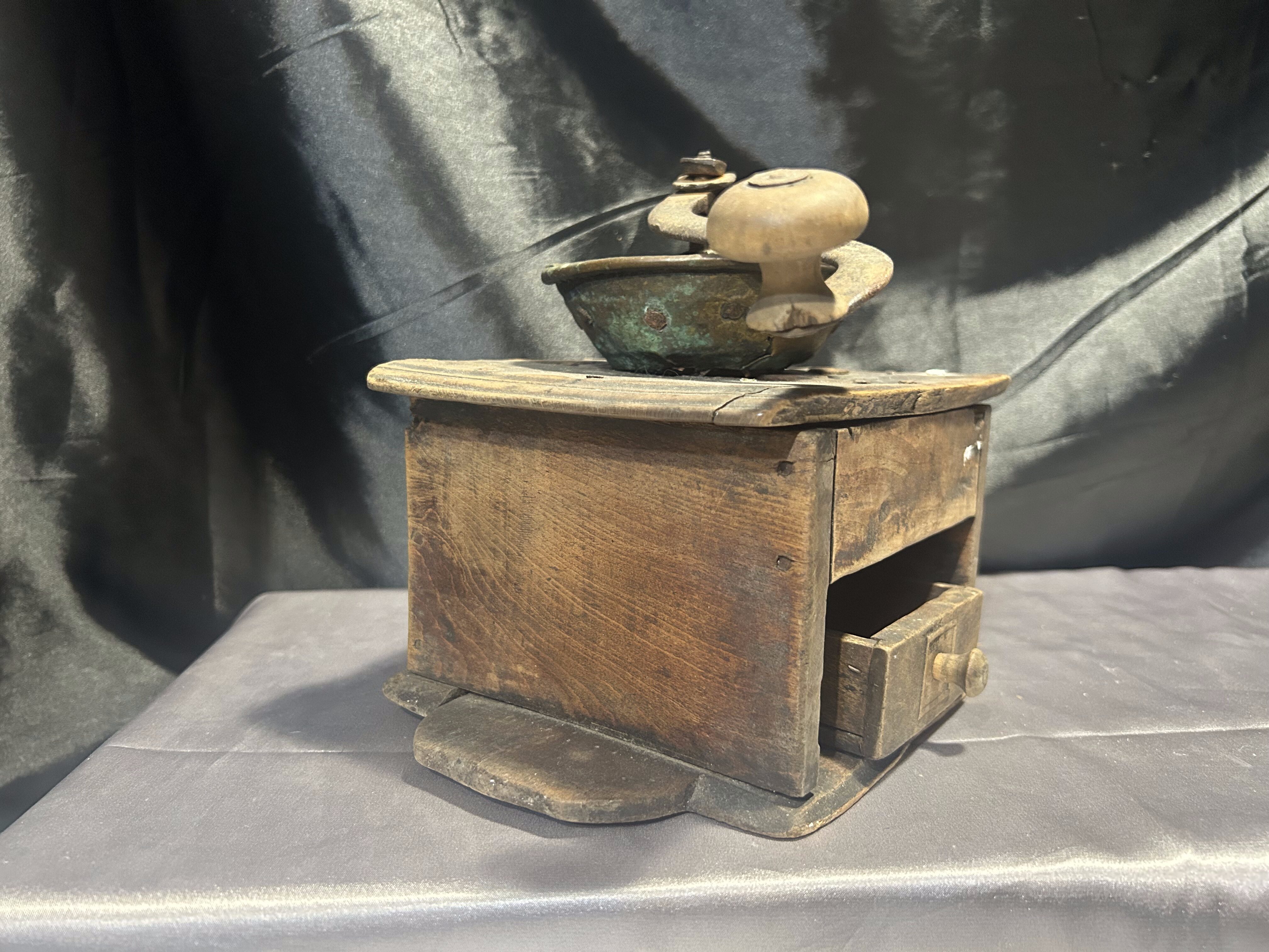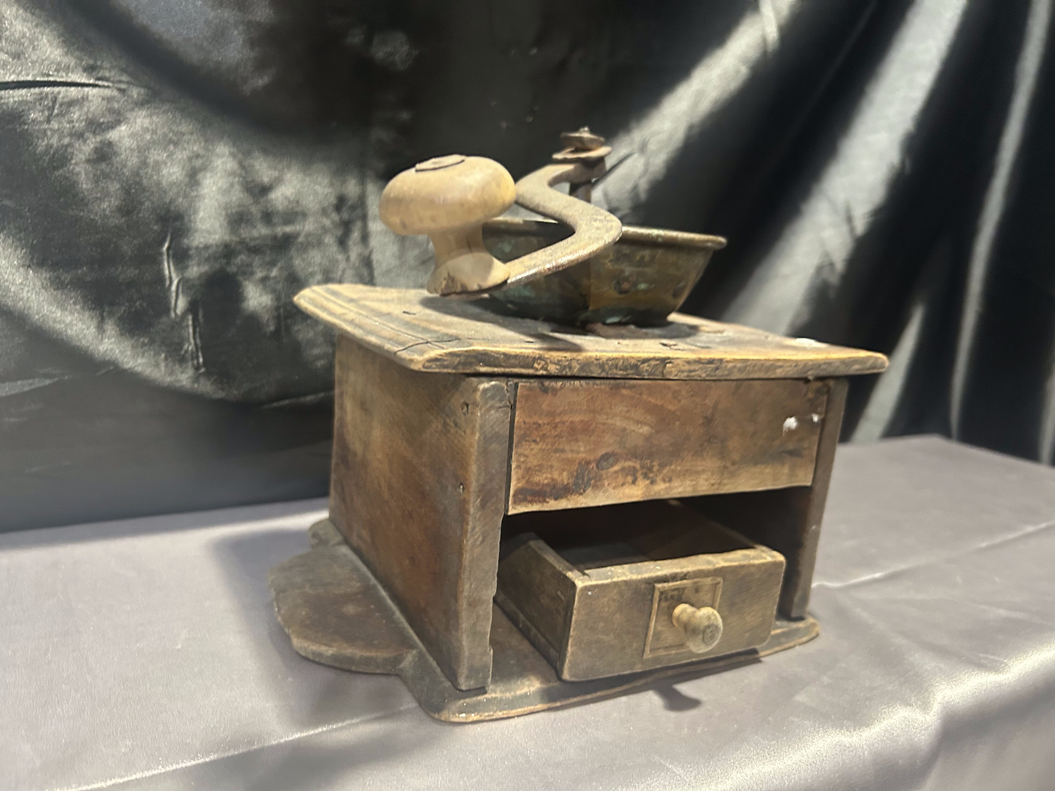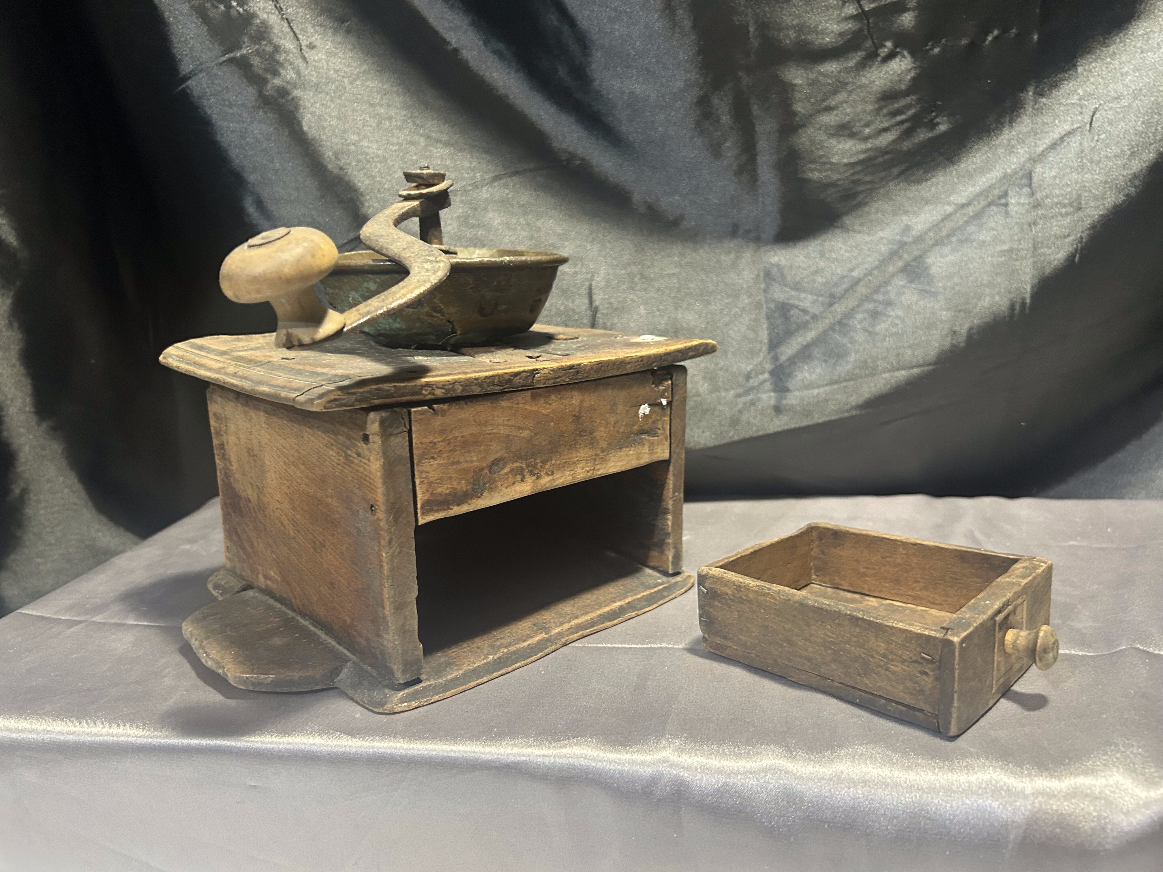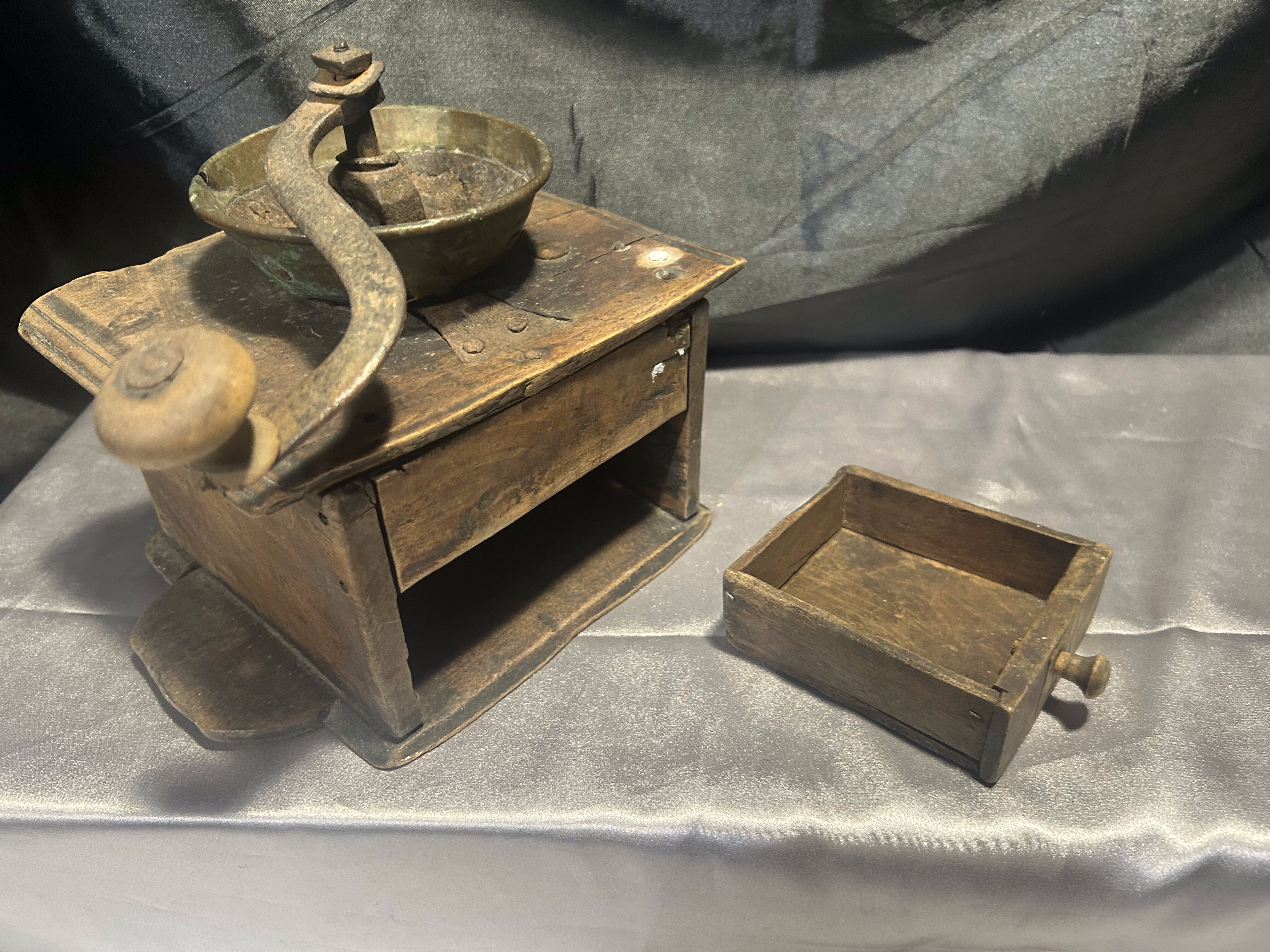 Młynek do kawy – Drewniany, stary – Z dorabianą szufladką – Styl retro