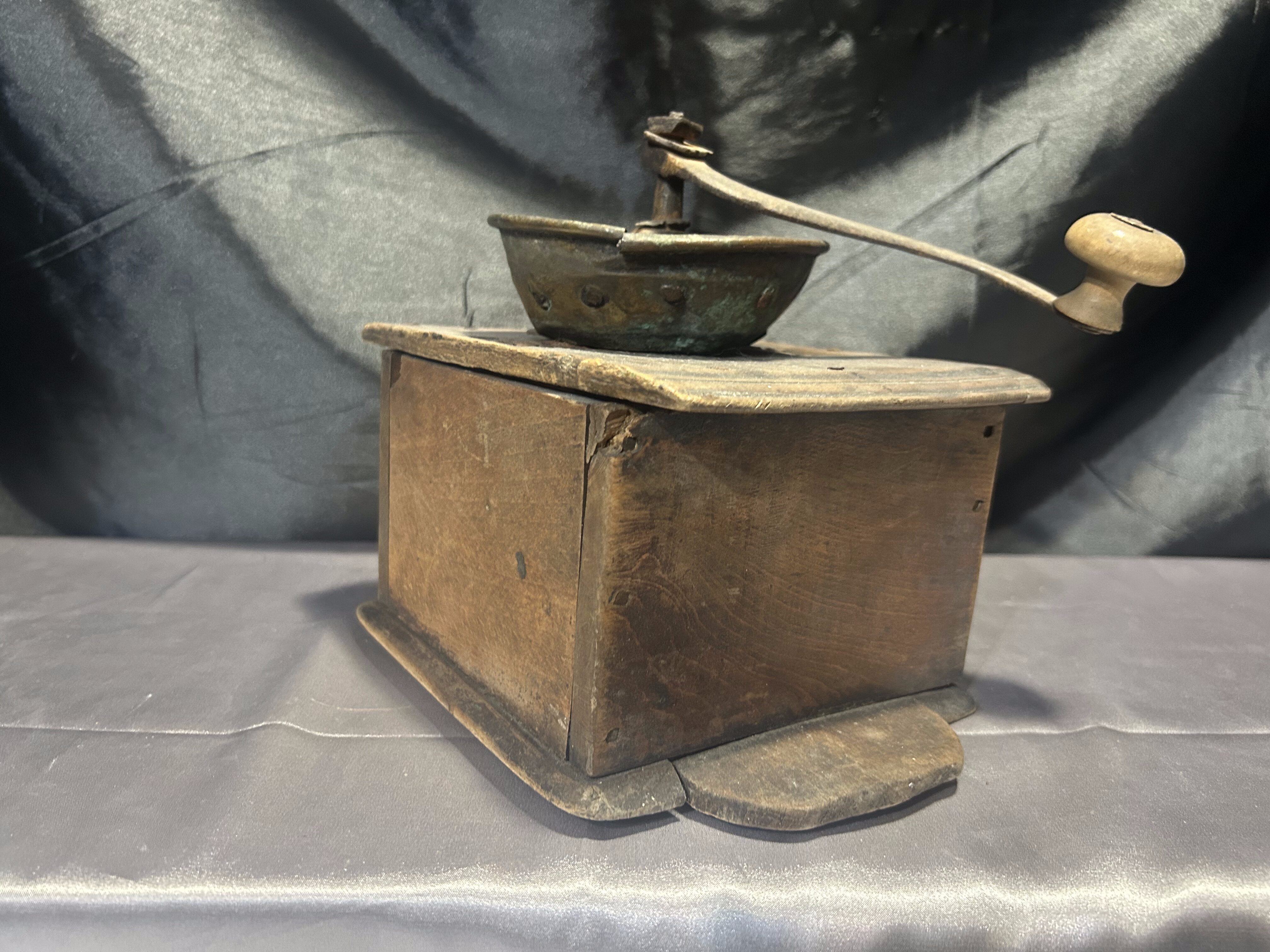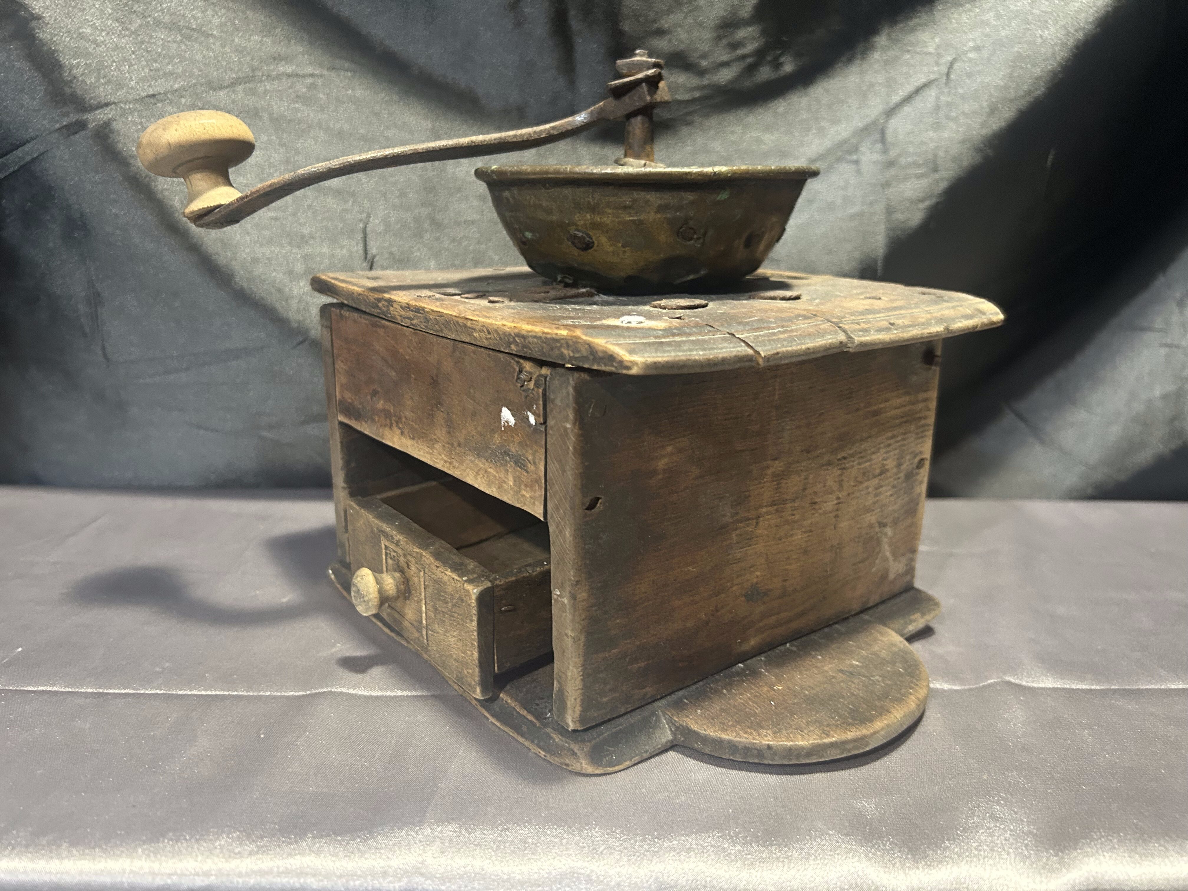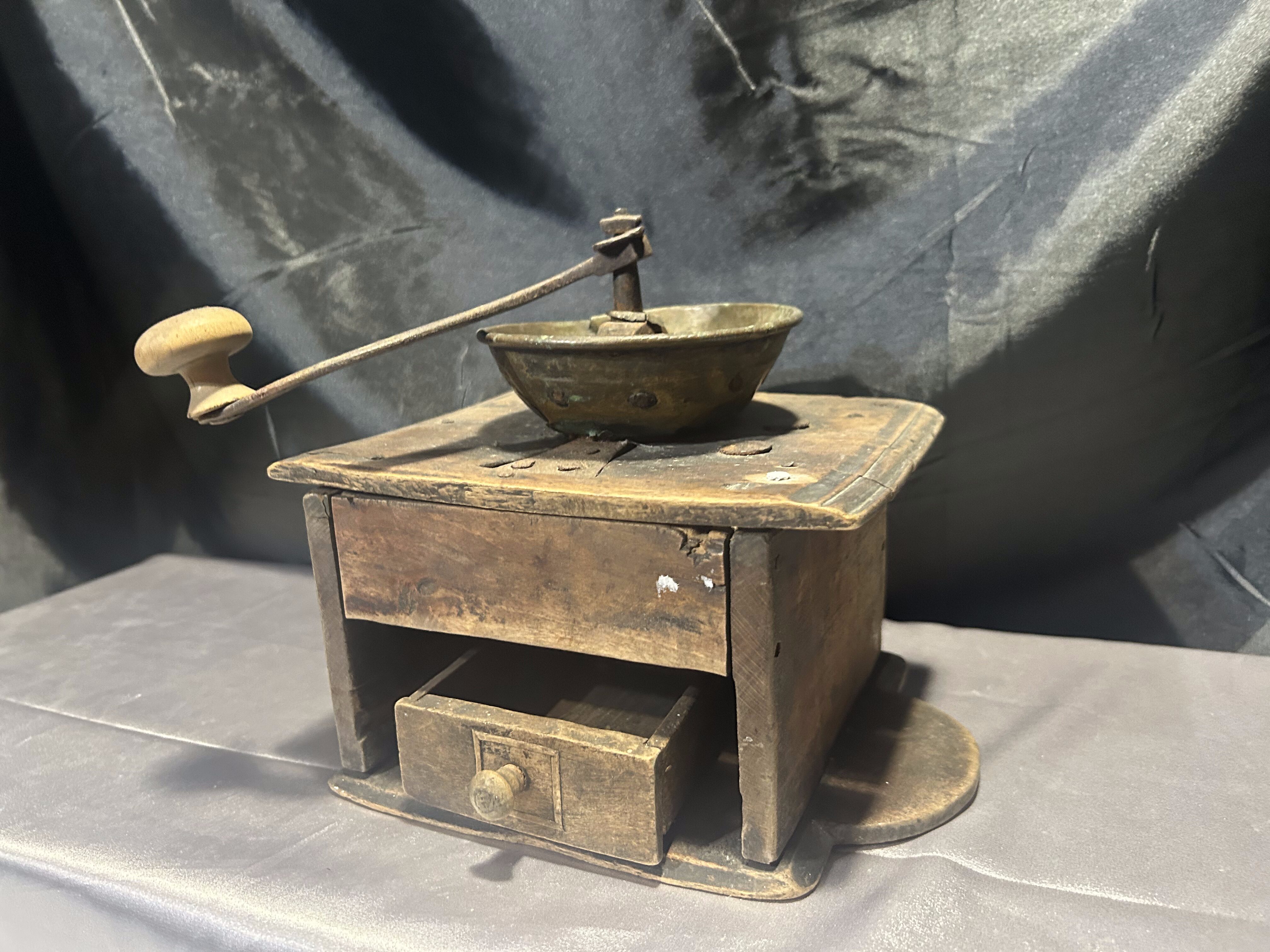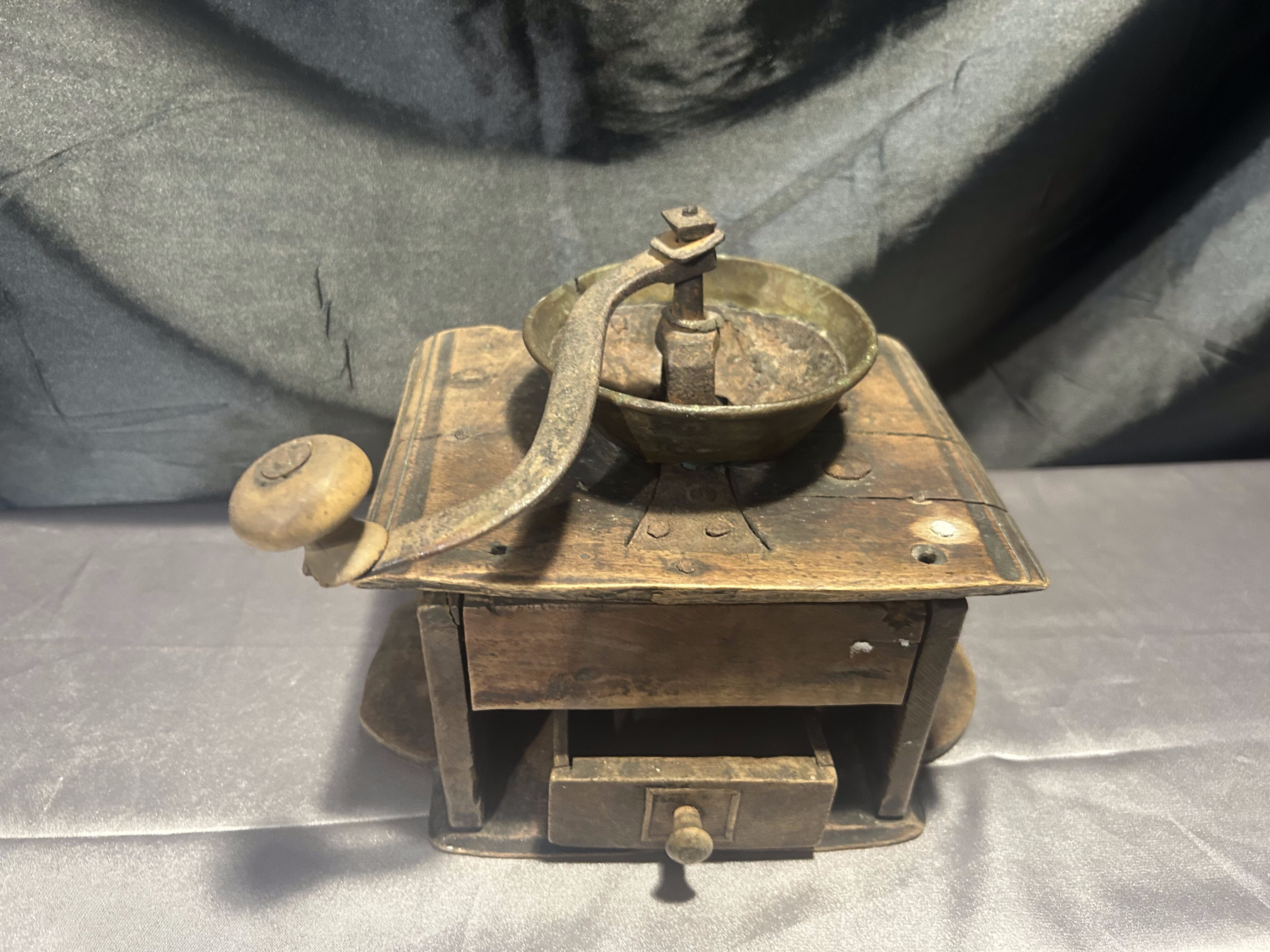 Młynek do kawy – Drewniany, stary – Z dorabianą szufladką – Styl retro